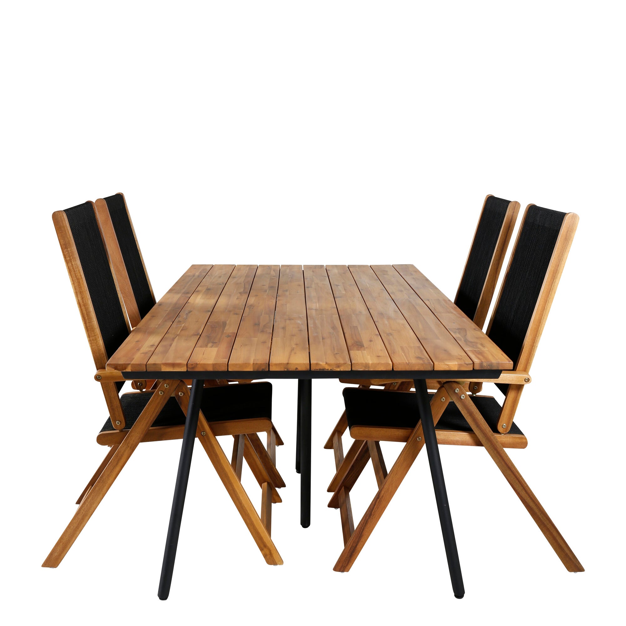 Jídelní stůl Chan - černá ocel / akácie (týkový vzhled) - 200 cm + skládací židle Little John - lano / akácie_4