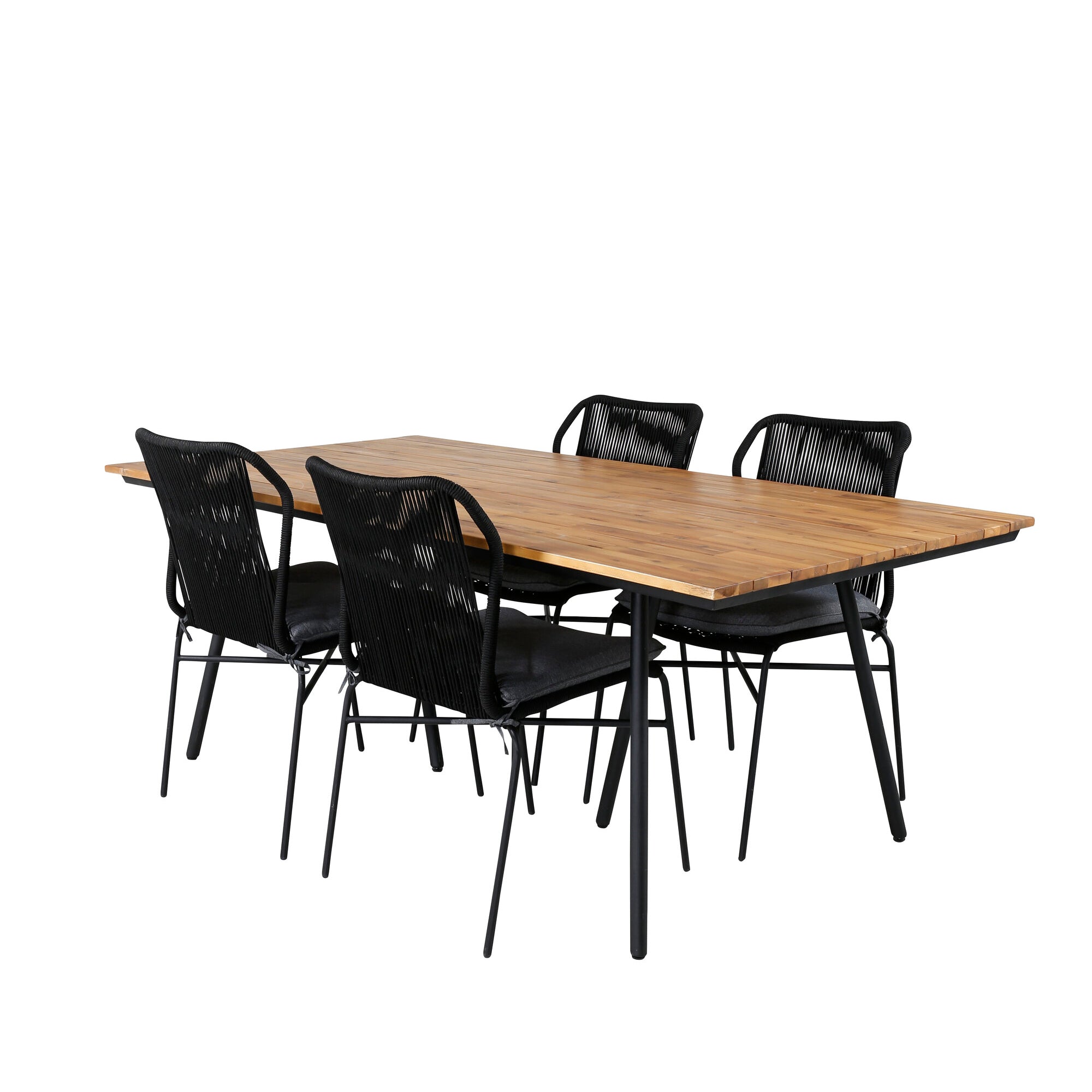 Jídelní stůl Chan - černá ocel / akácie (týkový vzhled) - 200 cm + jídelní židle Lina - Black_4