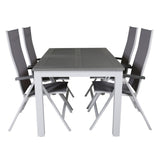 Moderní potravinová skupina na terasu v nadčasové barevné škále! Zde kombinujeme jídelní stůl Albany v klasickém stylu s trendy a skládacími jídelními židlemi ze stejné série. Nechte terasu charakterizovat vaši novou poutavou skupinu jídel, která pojme místo pro všechny blízké!