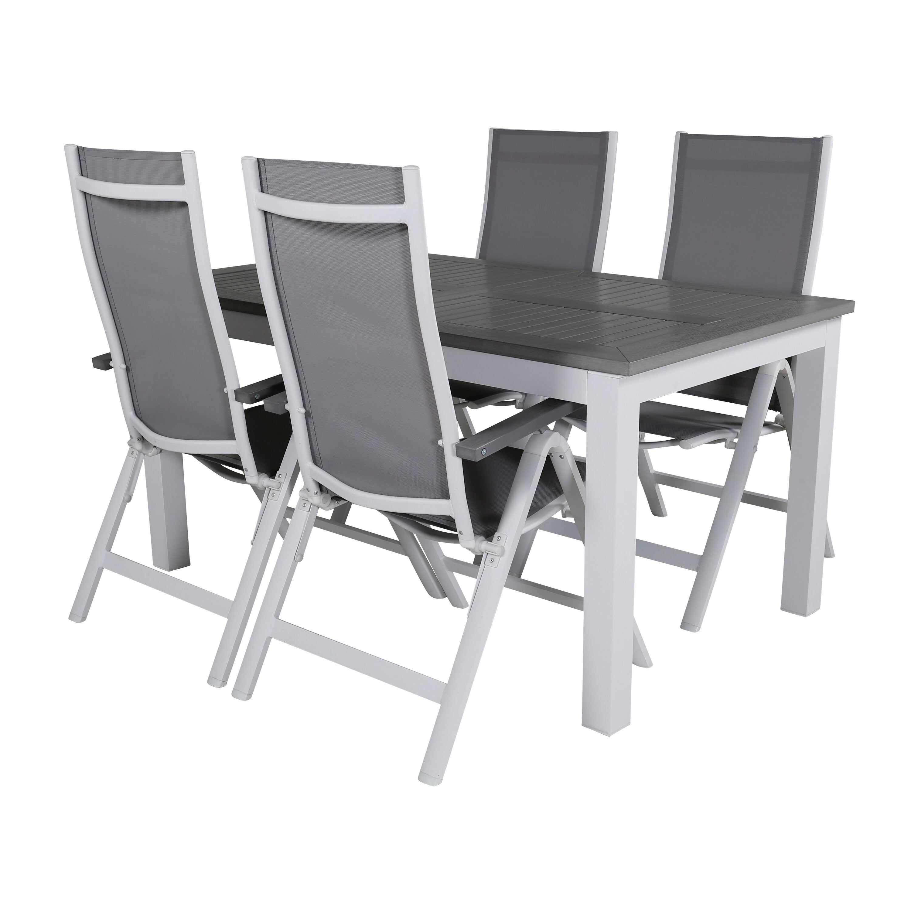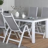 Albany stůl - 160/240 - Bílá/Šedá+Albany Světlá 5dílná bílá alu / Šedá Textilene_4