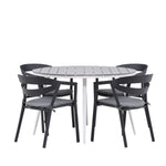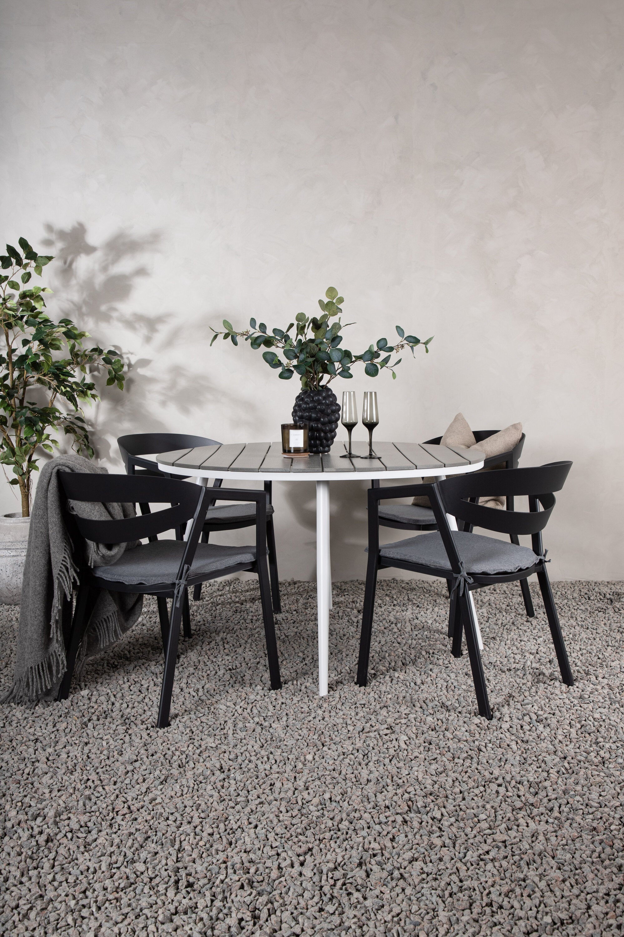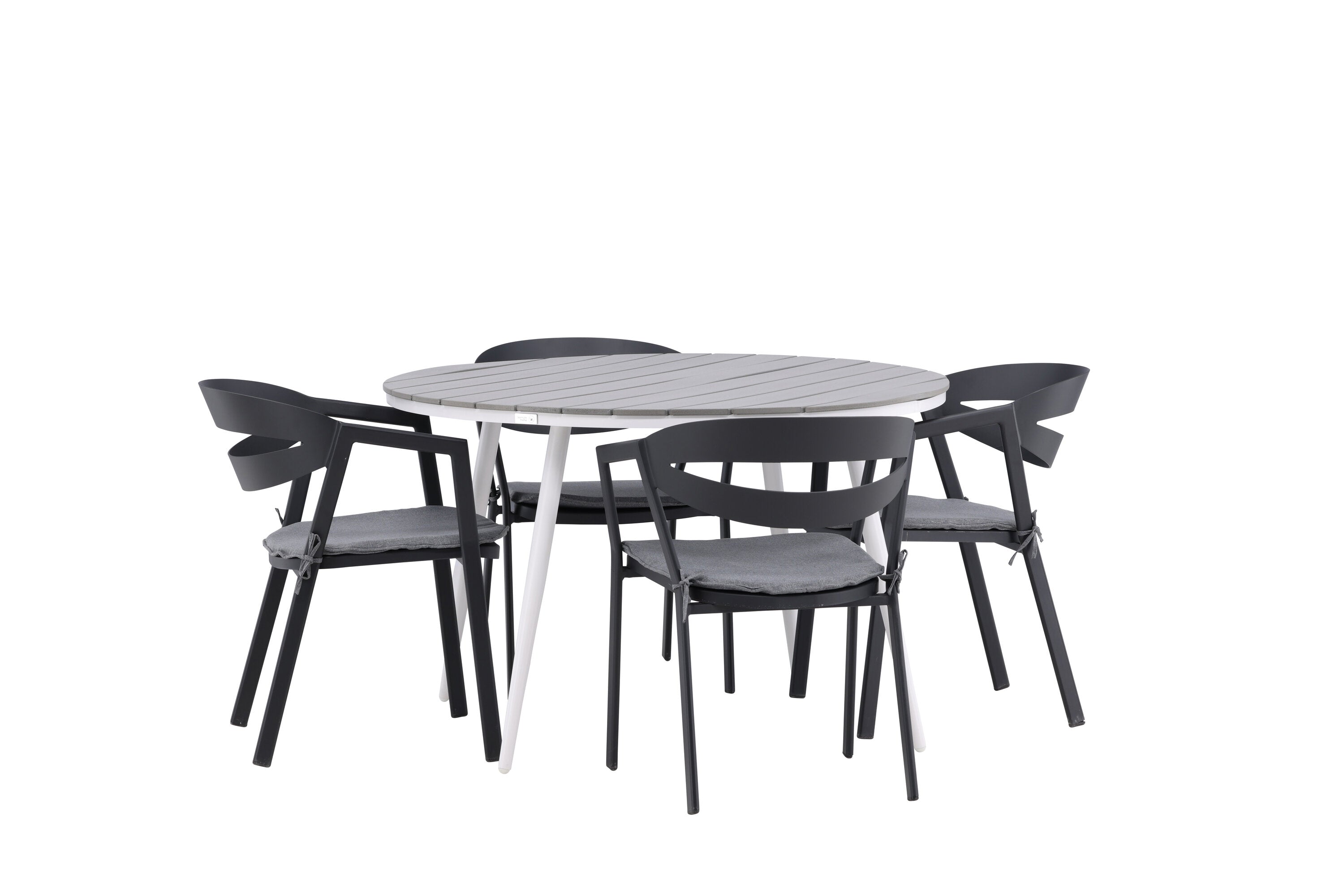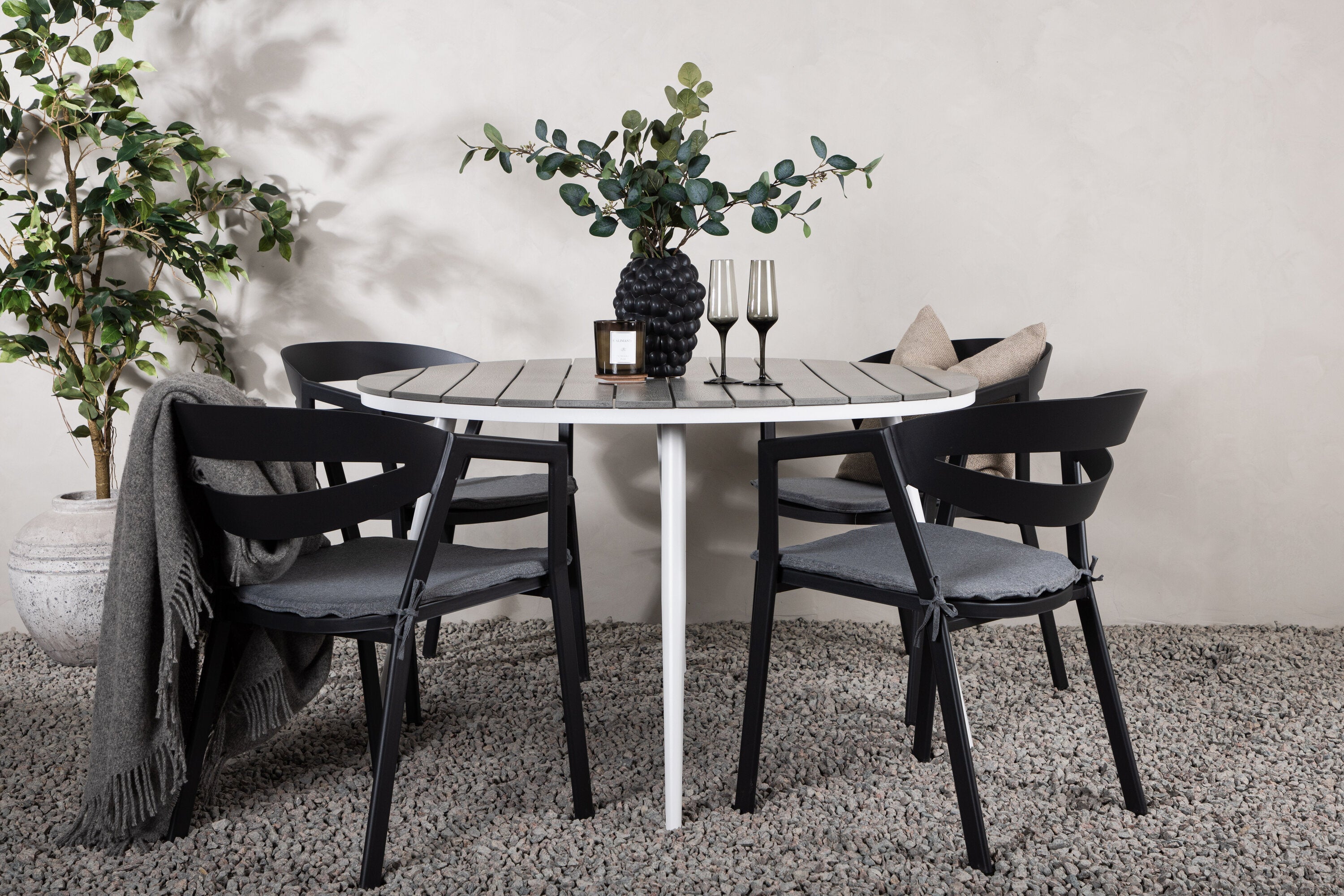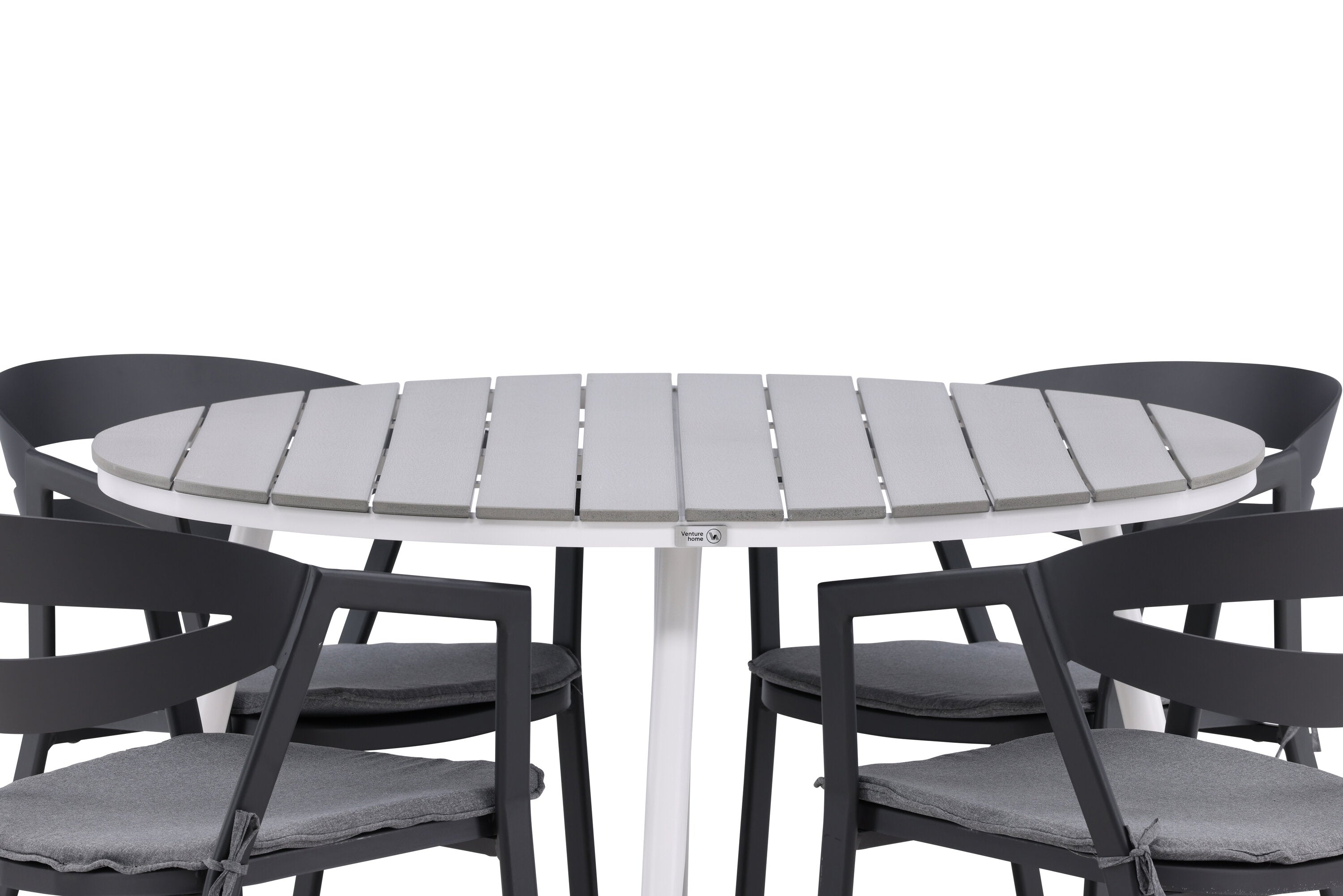 Break - Jídelní stůl kulatý - Bílá / Šedá - Alu / Aintwood - 120ø _1+ Štěrbina - Jídelní židle vč. Polštář - Černá / Šedá - Hliník - _4