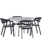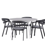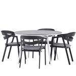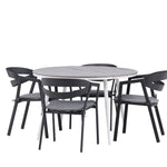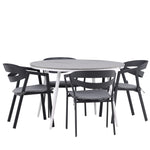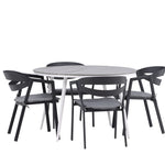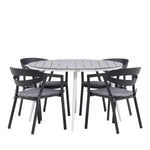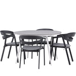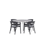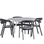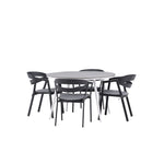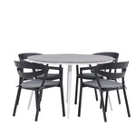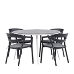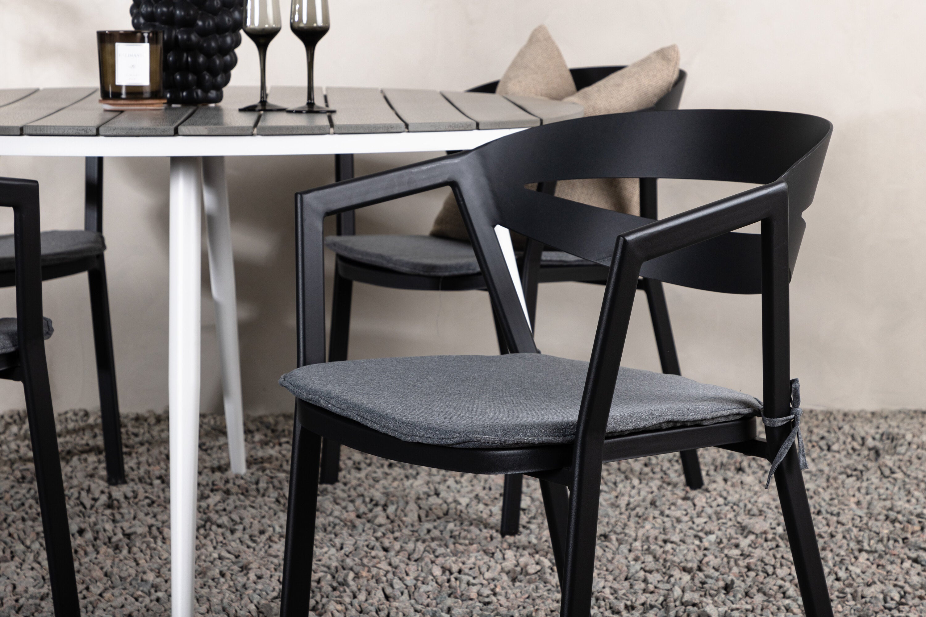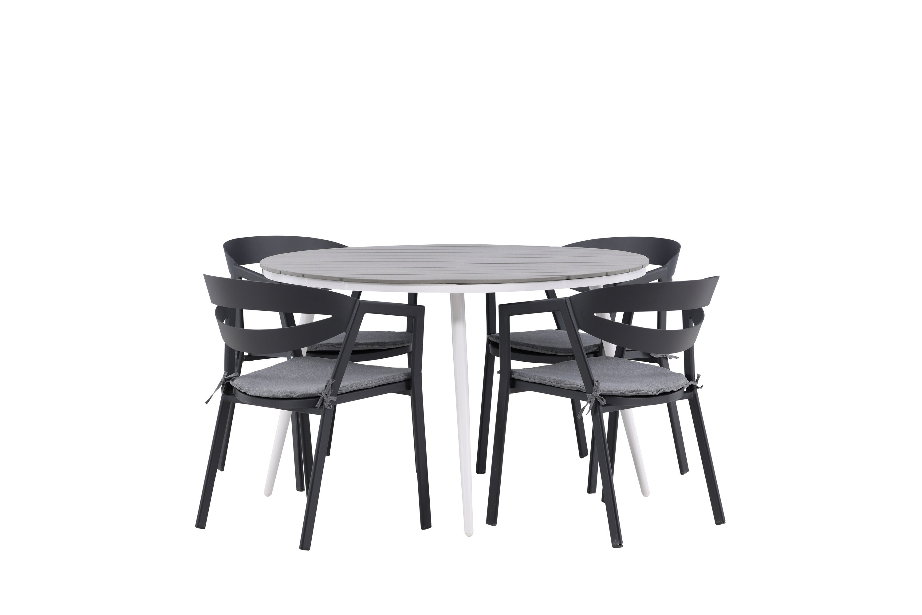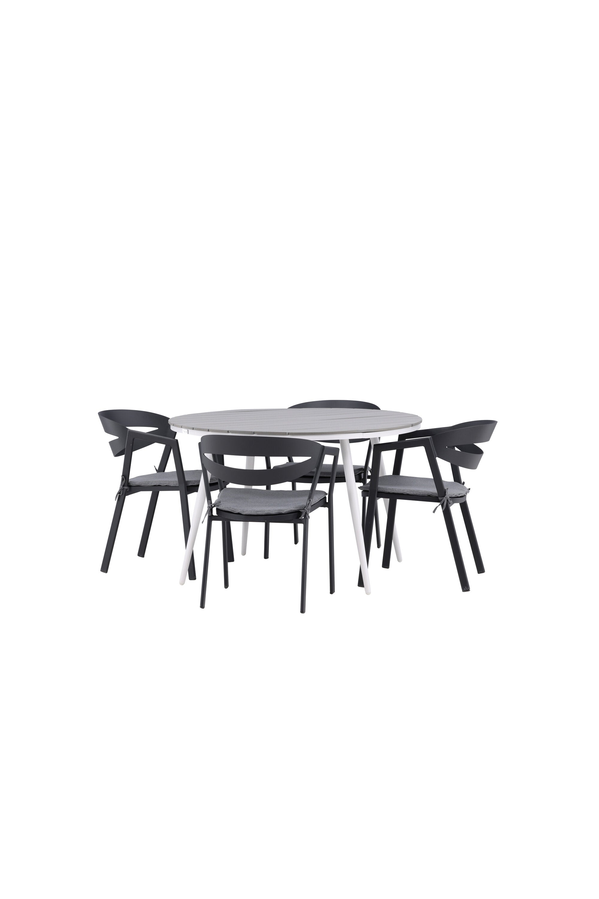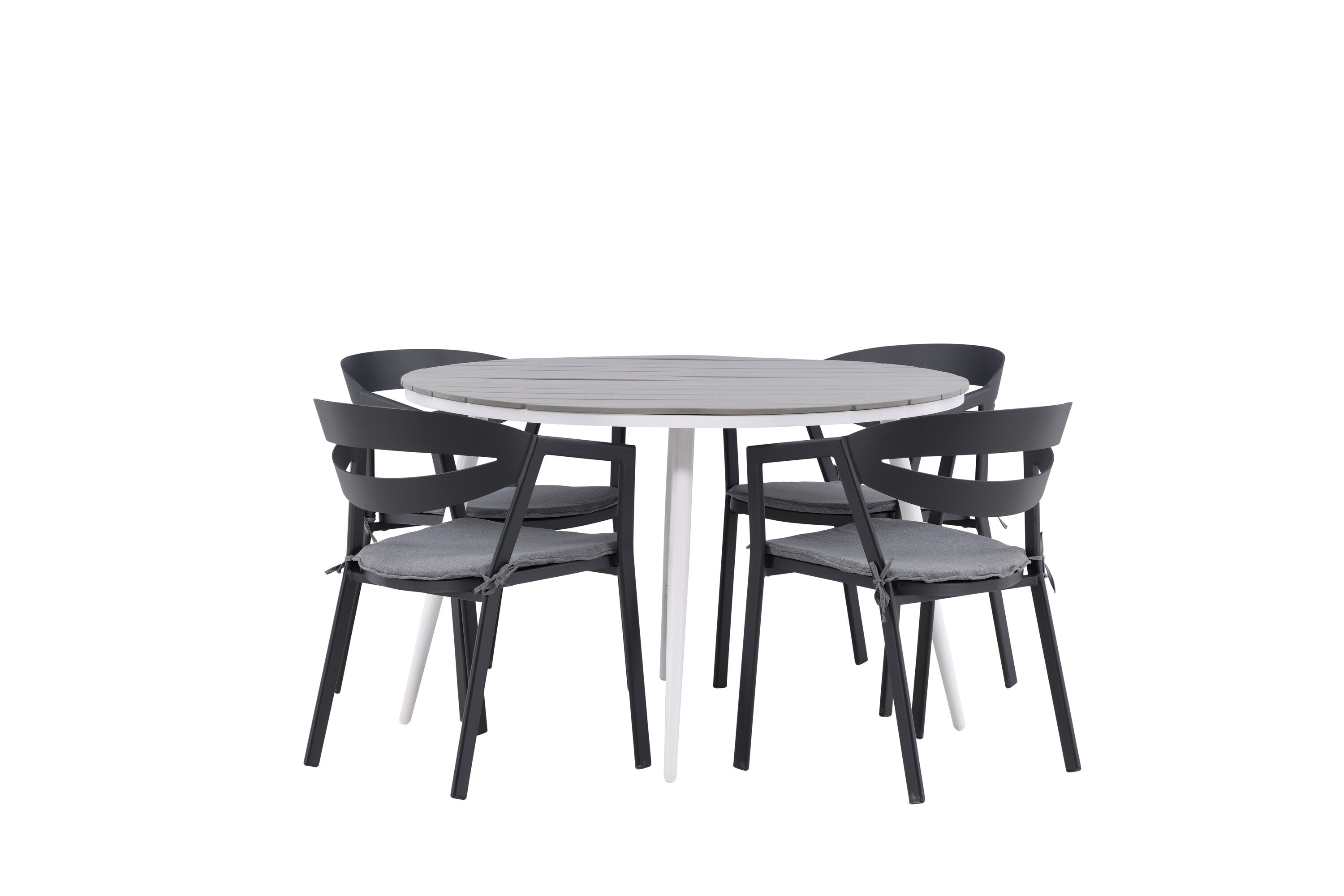 Break - Jídelní stůl kulatý - Bílá / Šedá - Alu / Aintwood - 120ø _1+ Štěrbina - Jídelní židle vč. Polštář - Černá / Šedá - Hliník - _4