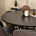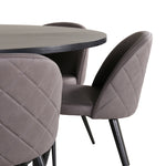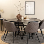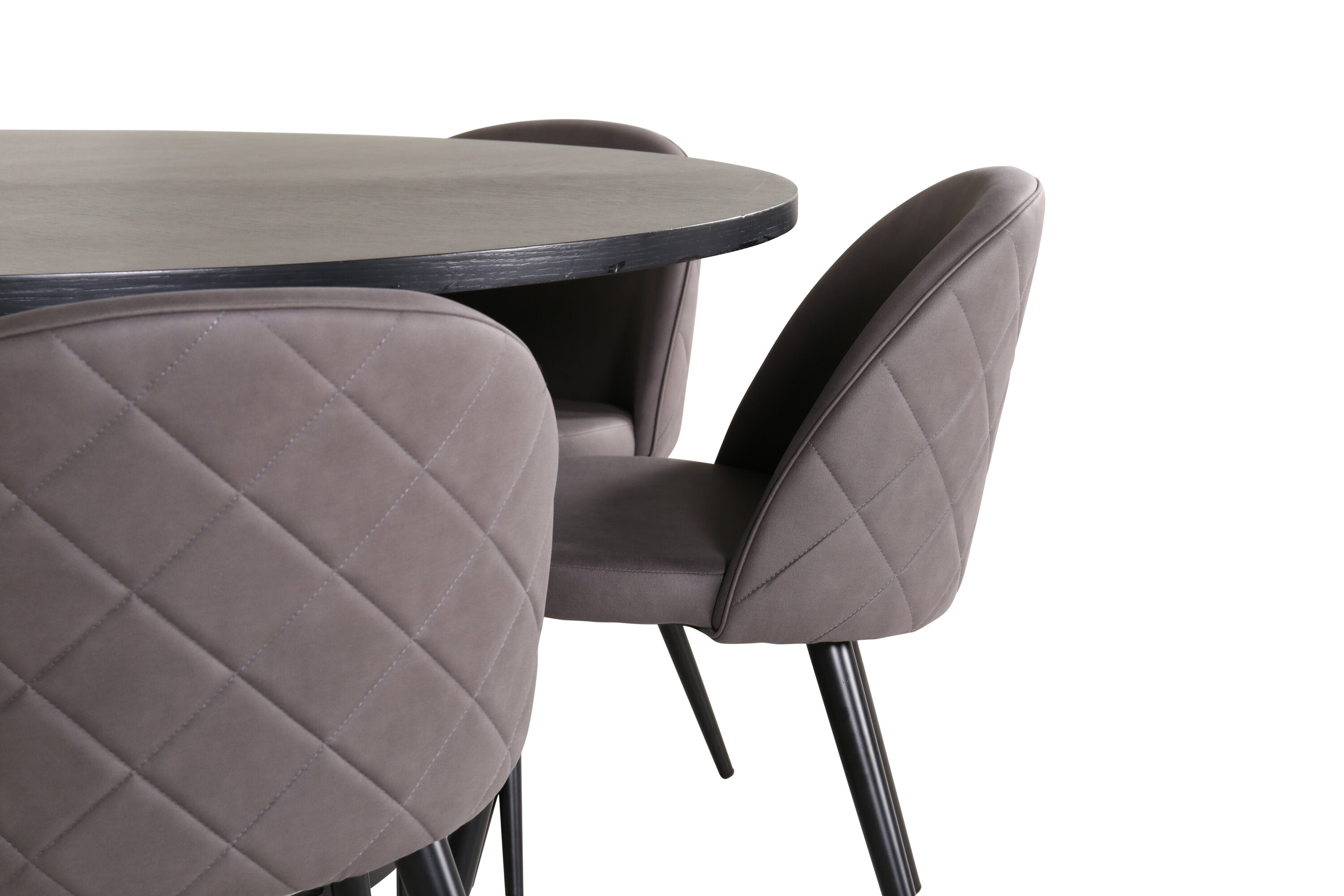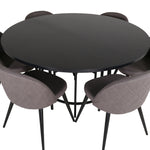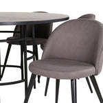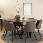 Copenhagen - Jídelní stůl kulatý - Černá / Černá + židle se sametovými stehy - Černá / Šedá Micro Fibre_6