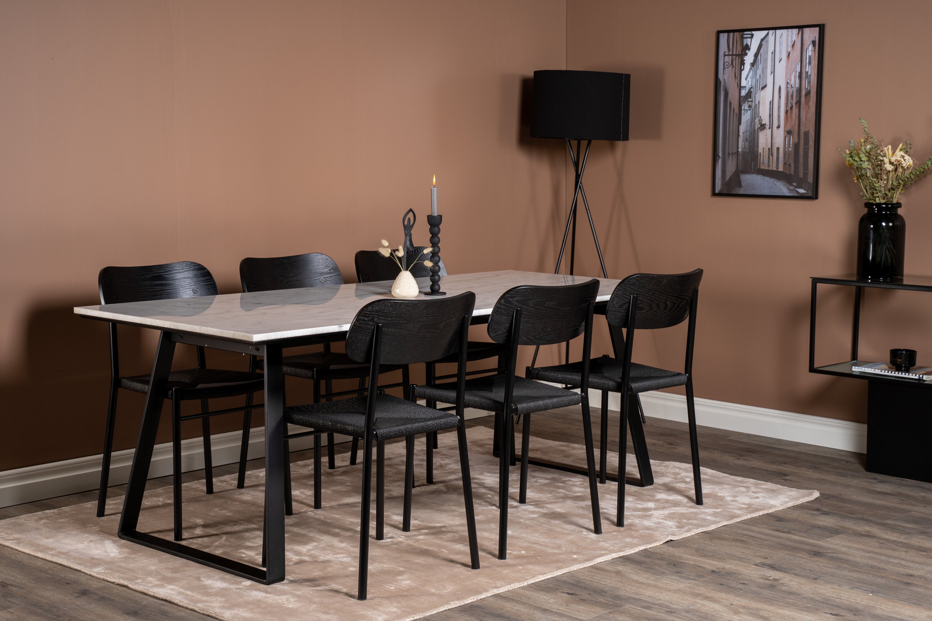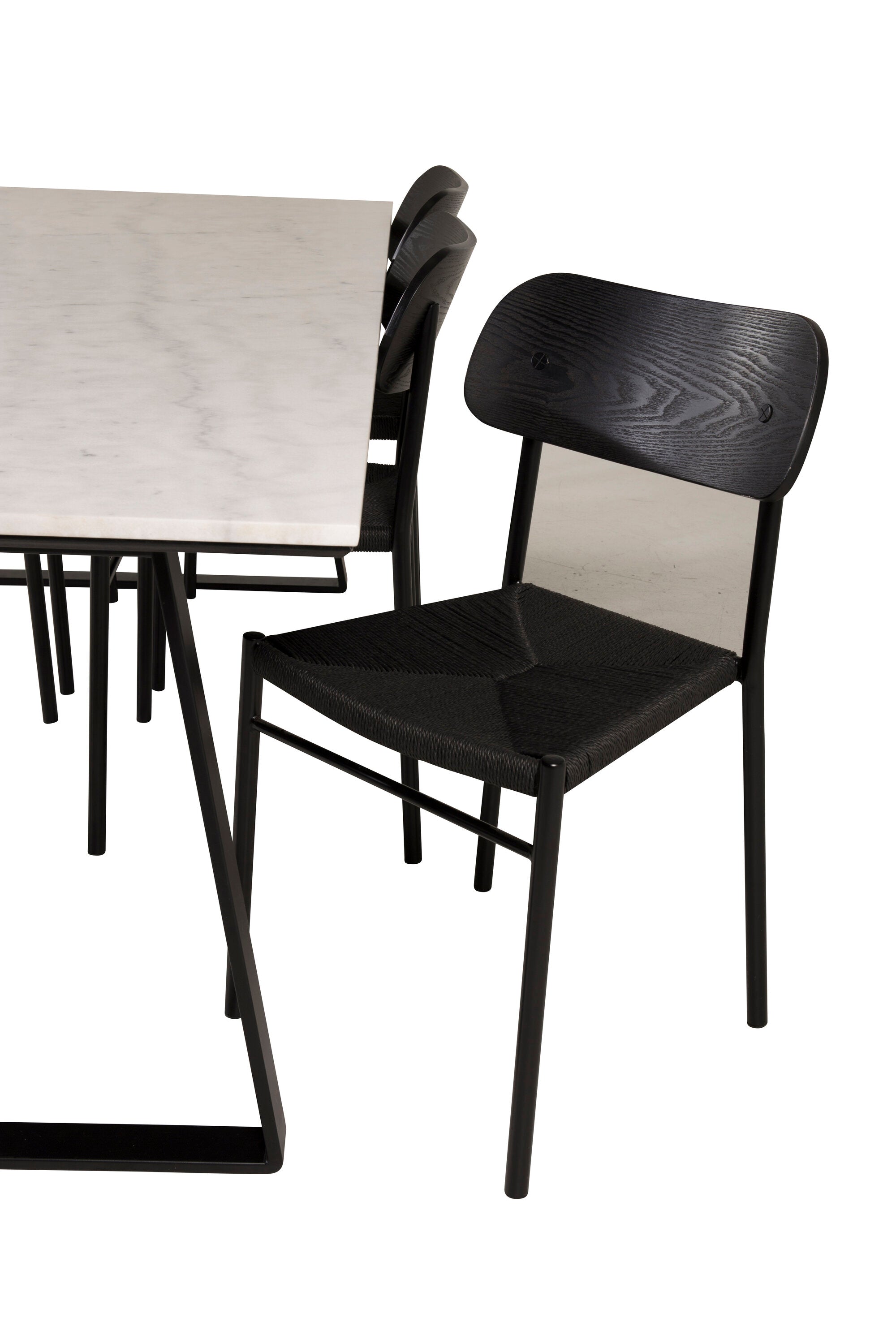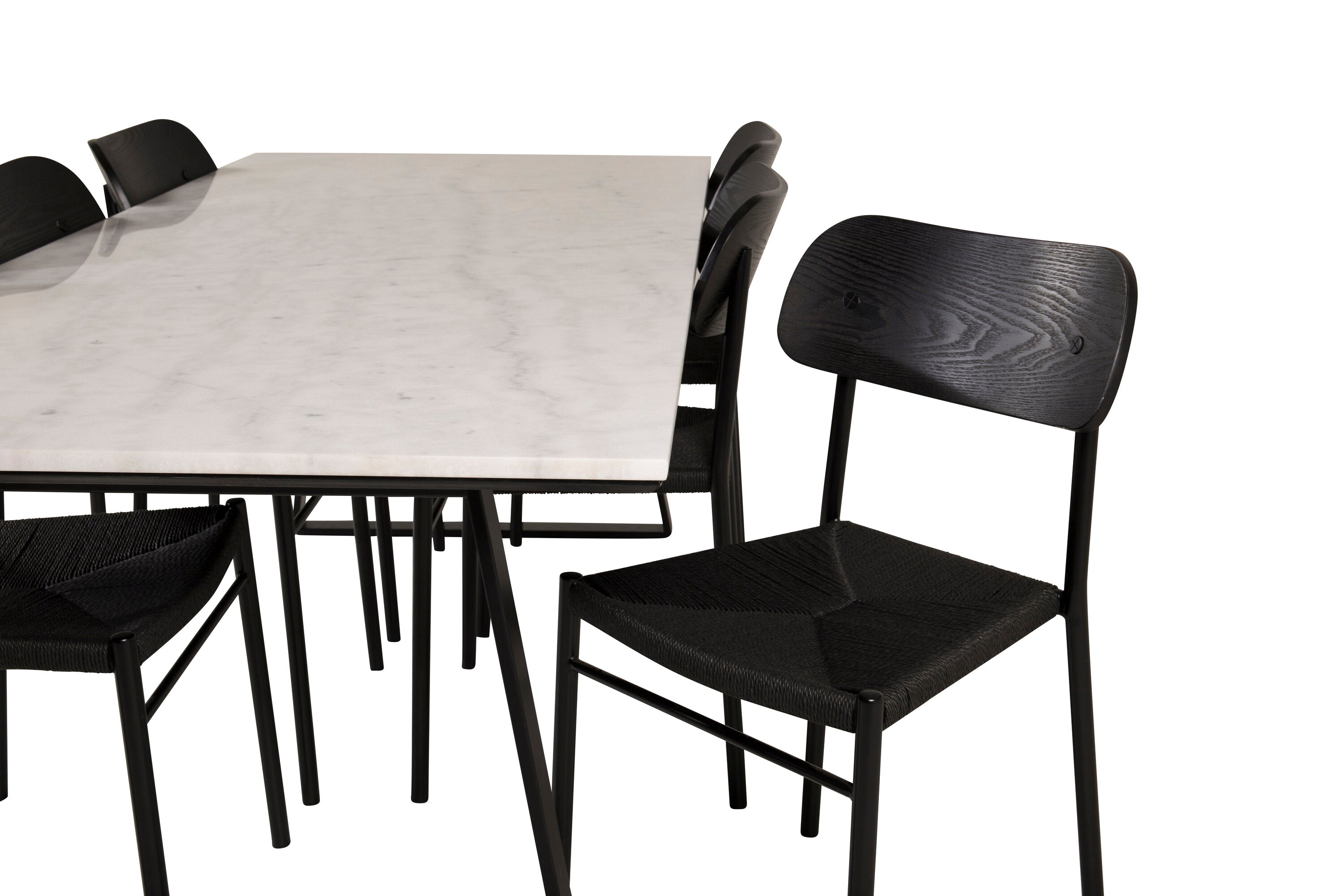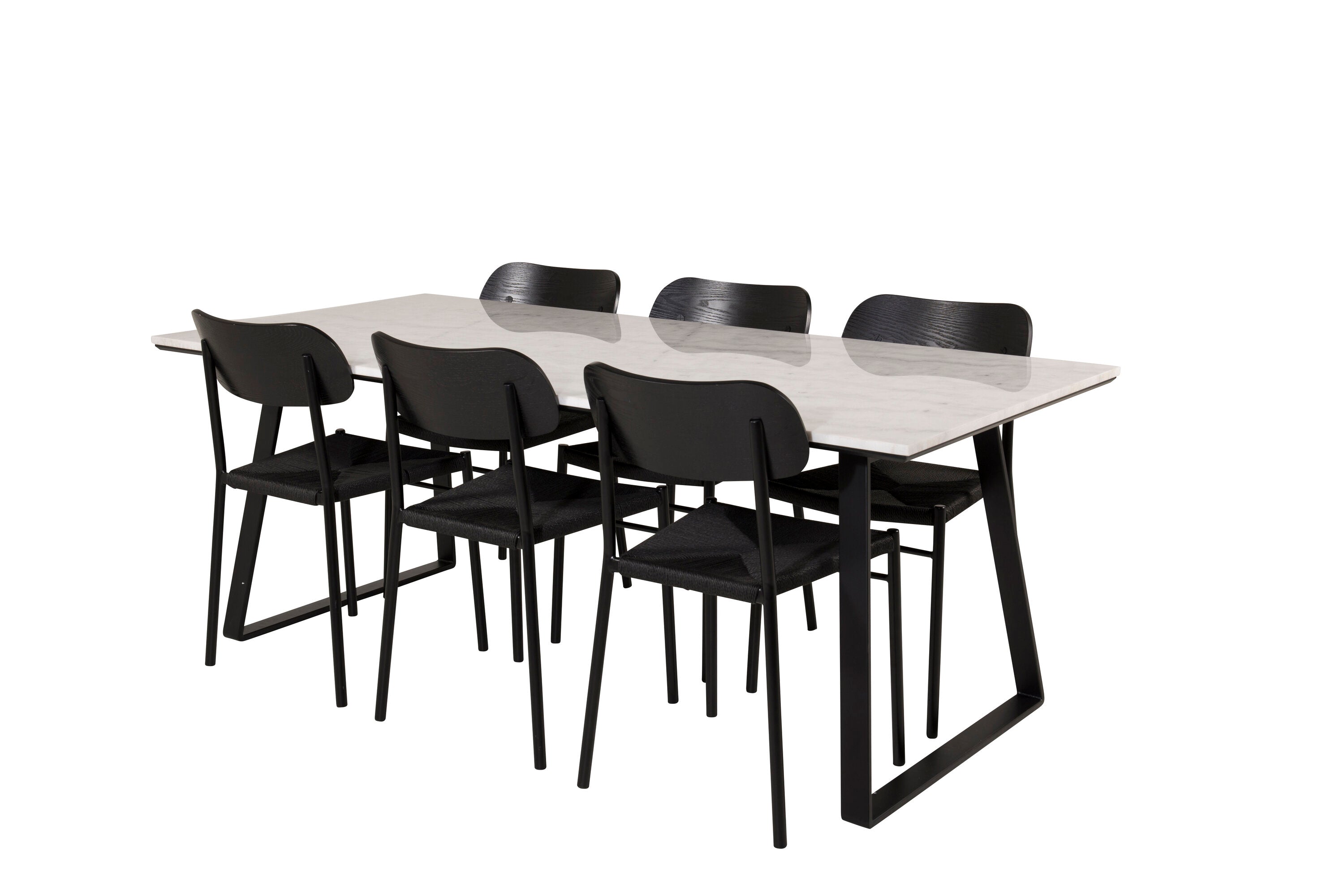 Estelle Jídelní stůl Stůl 200*90 Bílý mramor / Černé nohy + Jídelní židle Polly - Černá / Černá _6