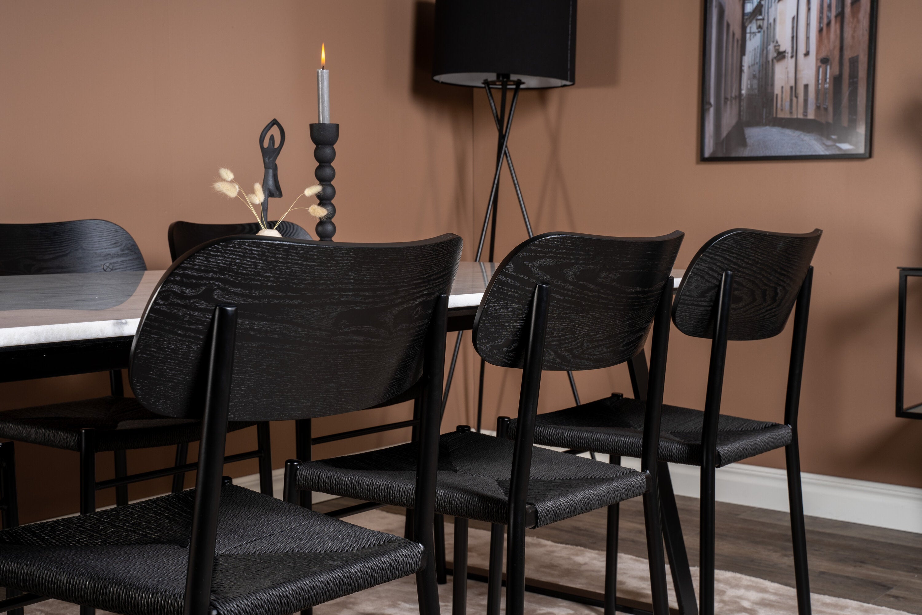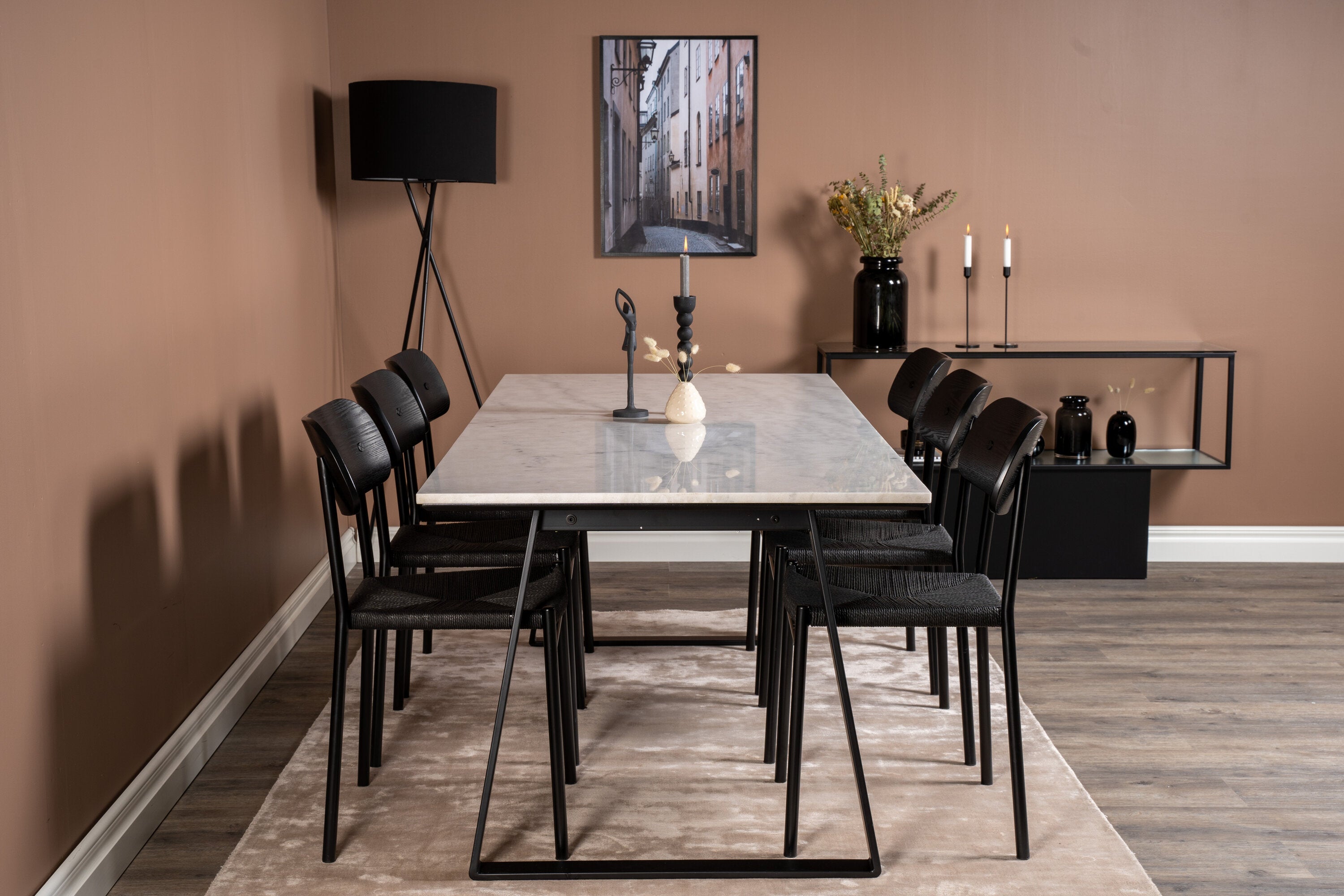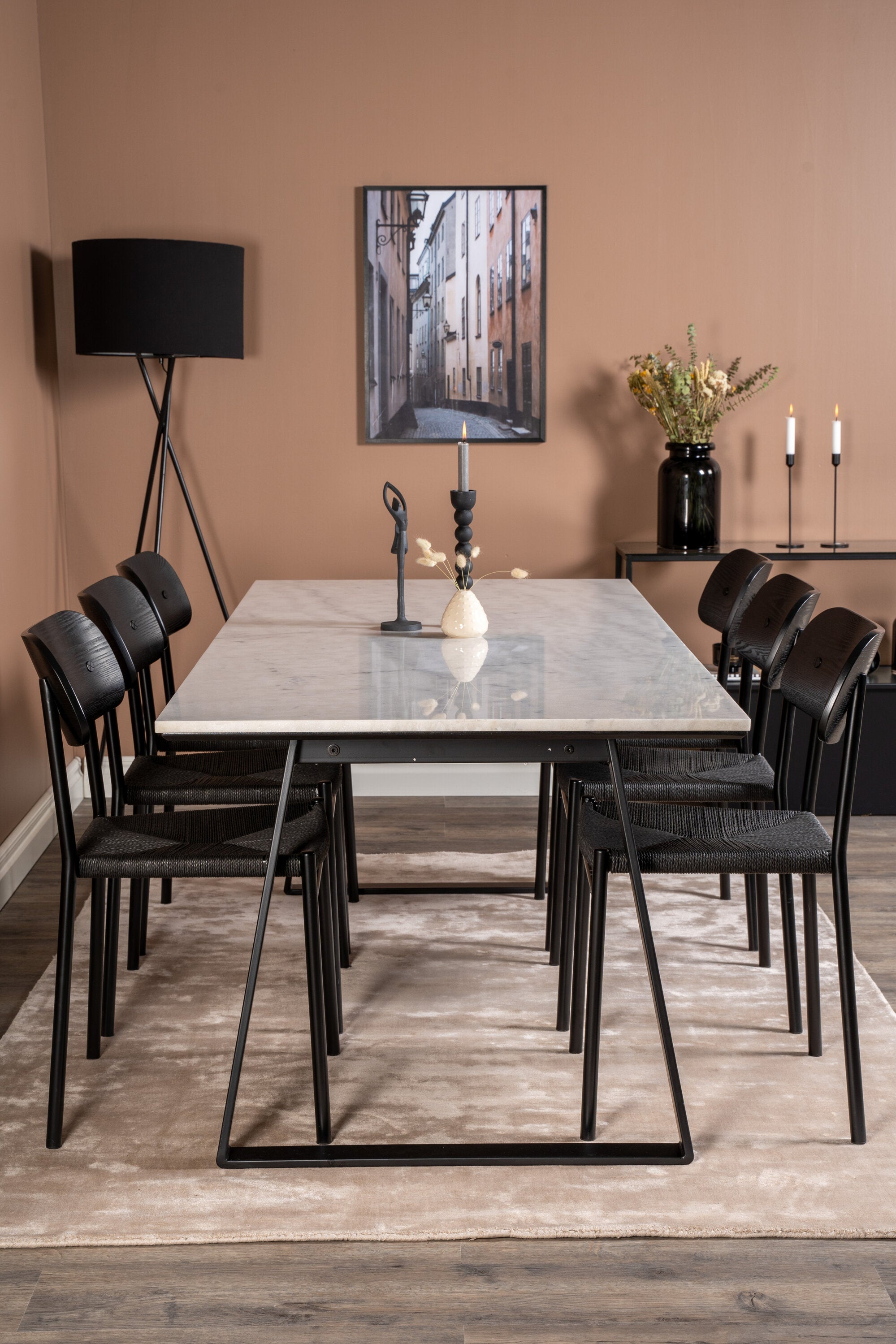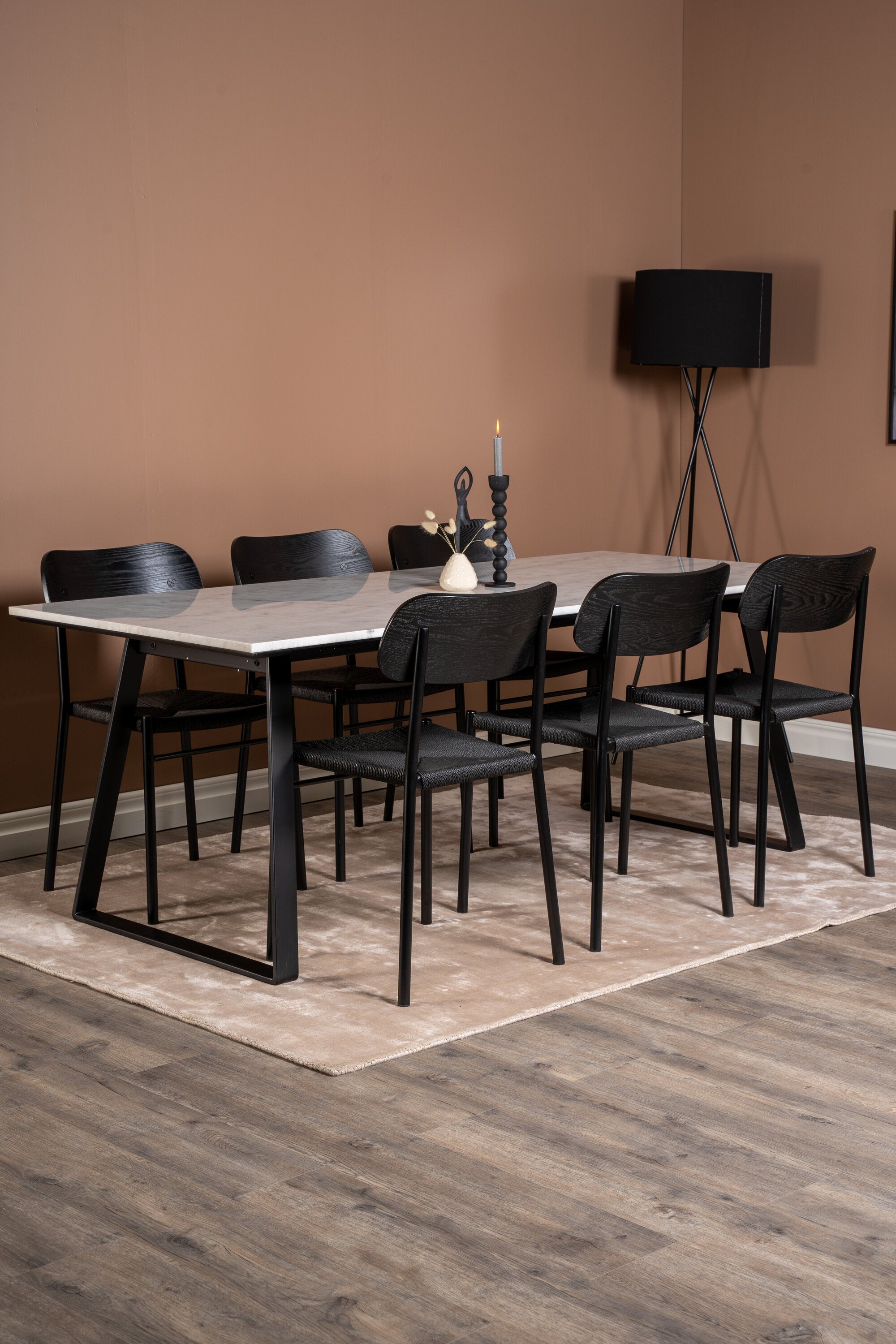 Estelle Jídelní stůl Stůl 200*90 Bílý mramor / Černé nohy + Jídelní židle Polly - Černá / Černá _6