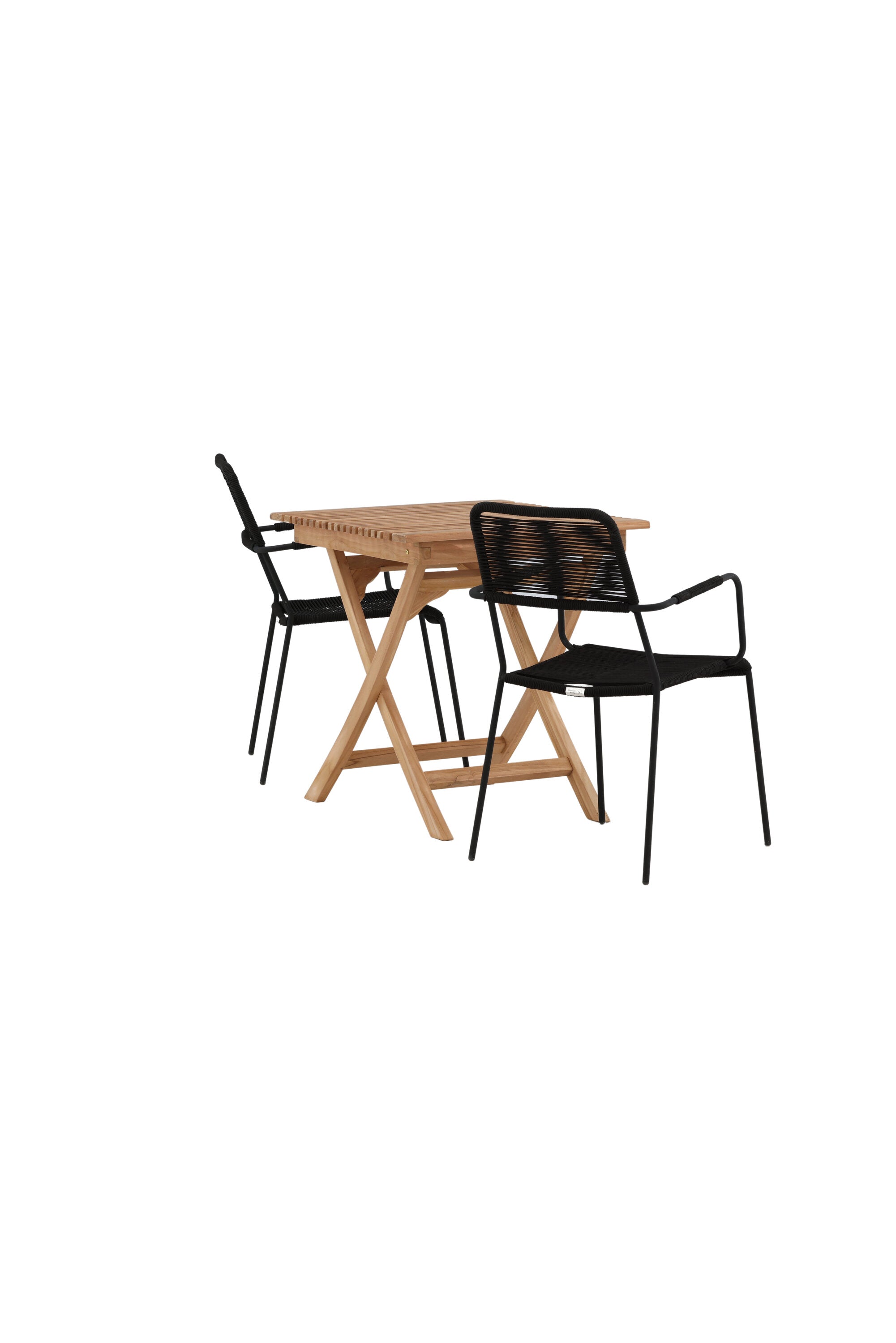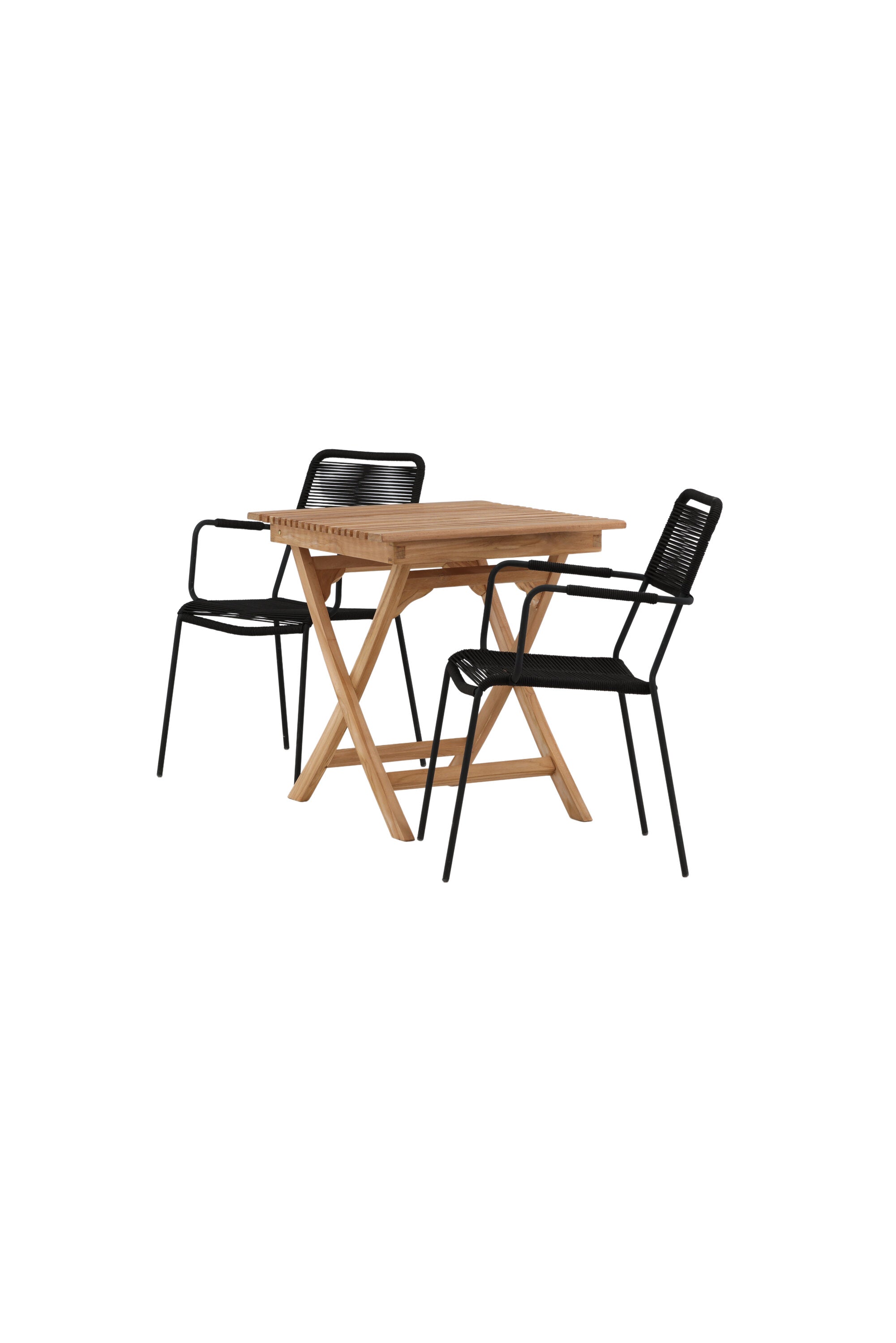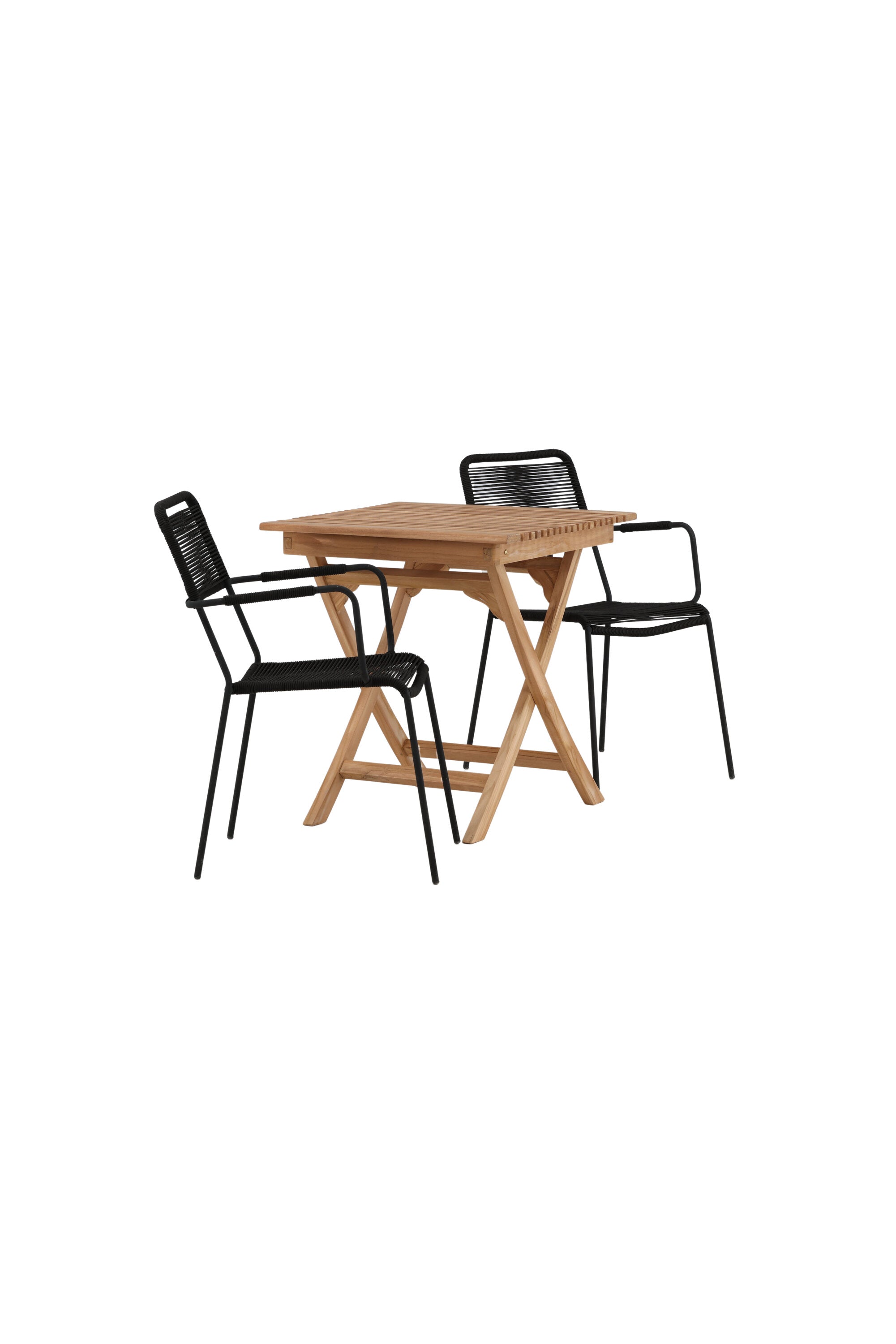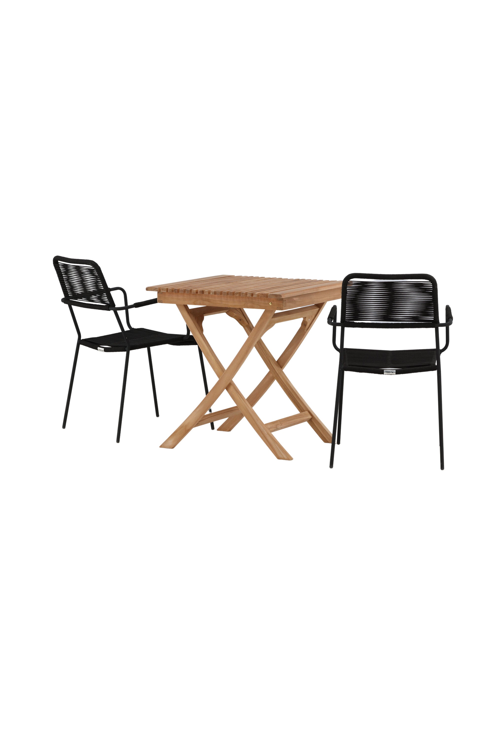 Ghana - Skládací stůl - Natural - Teak - 70*70cm _1+ Křeslo Lindos - Black Alu / Black Lano _2