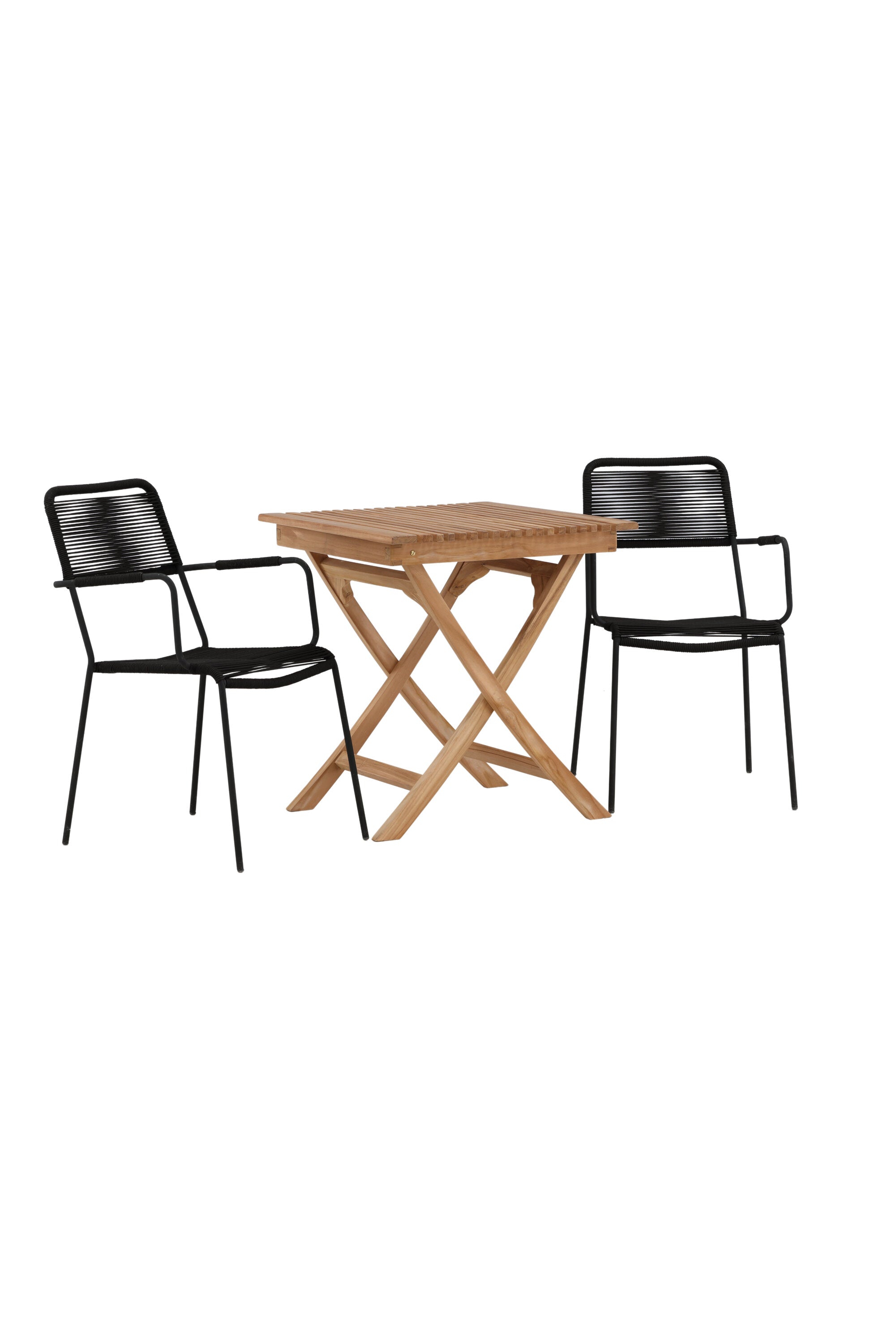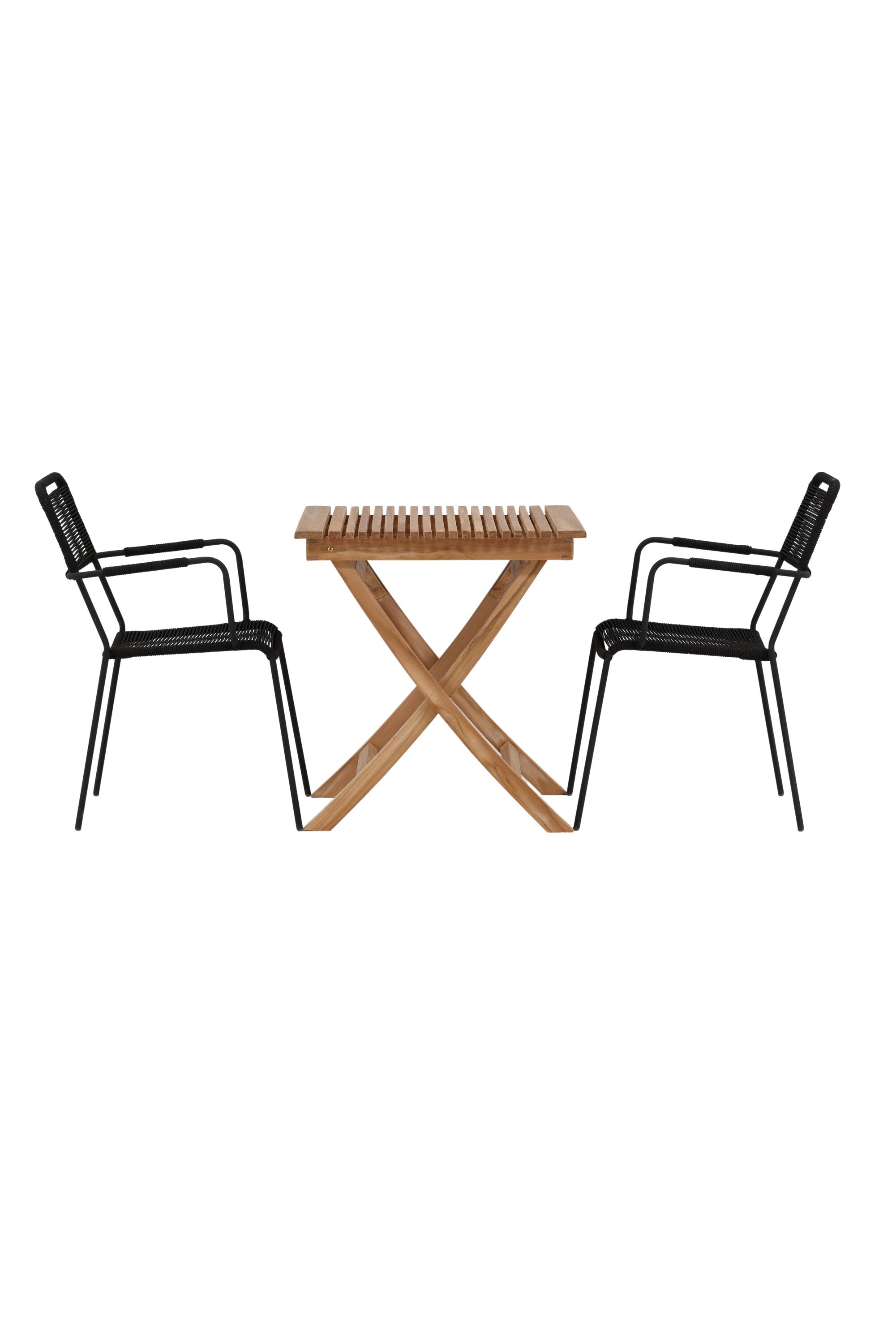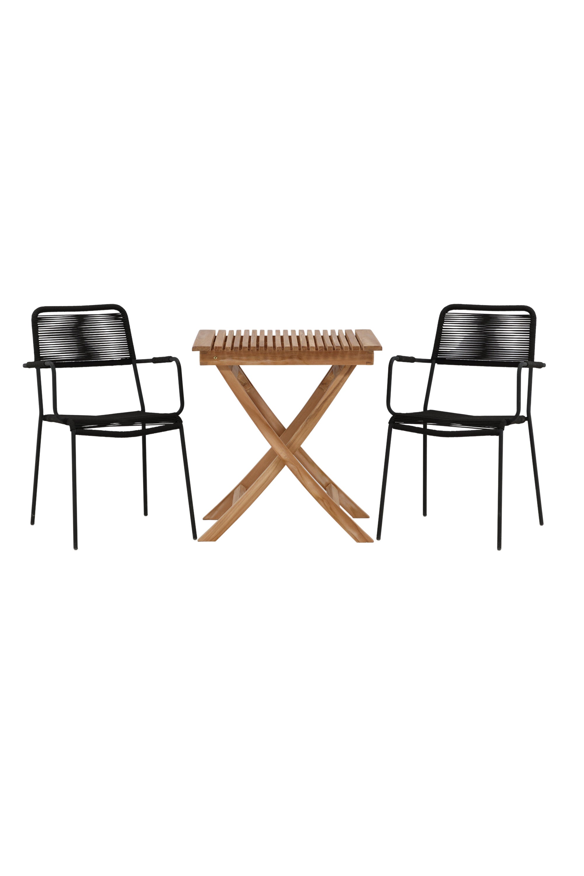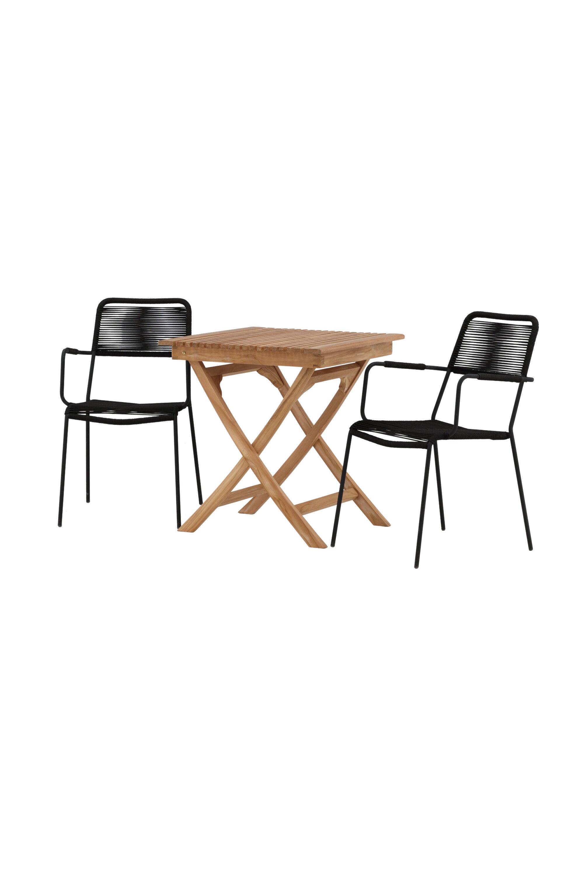 Ghana - Skládací stůl - Natural - Teak - 70*70cm _1+ Křeslo Lindos - Black Alu / Black Lano _2