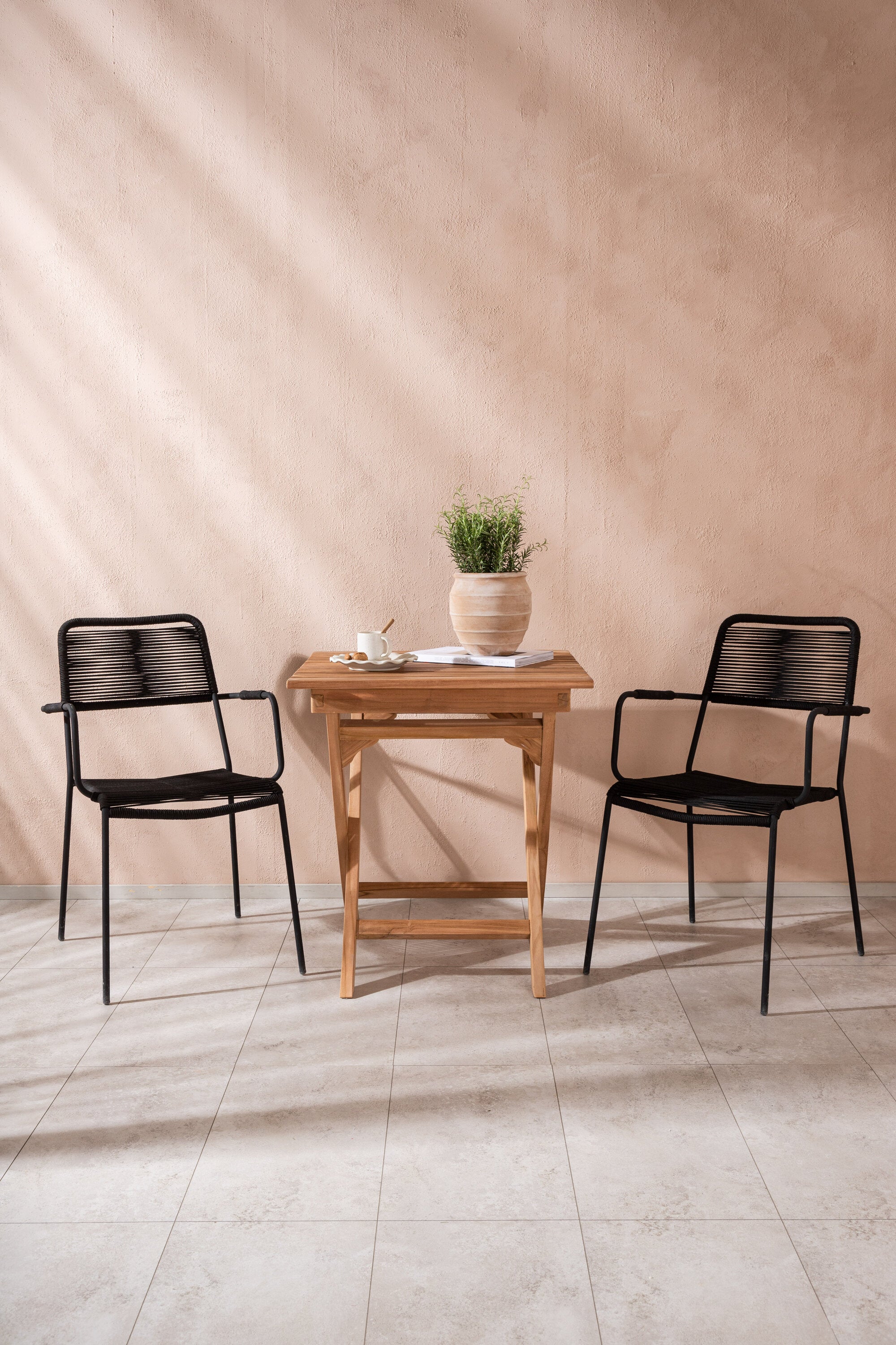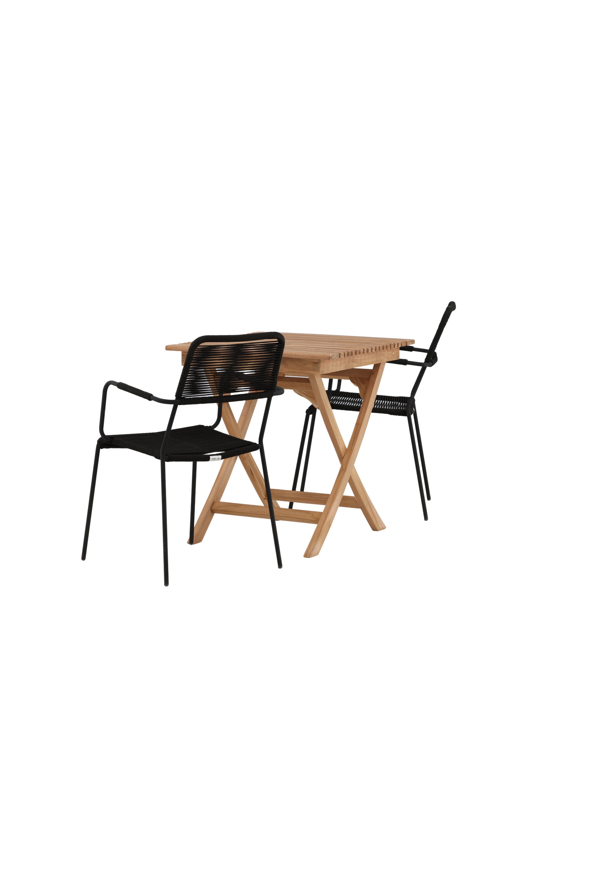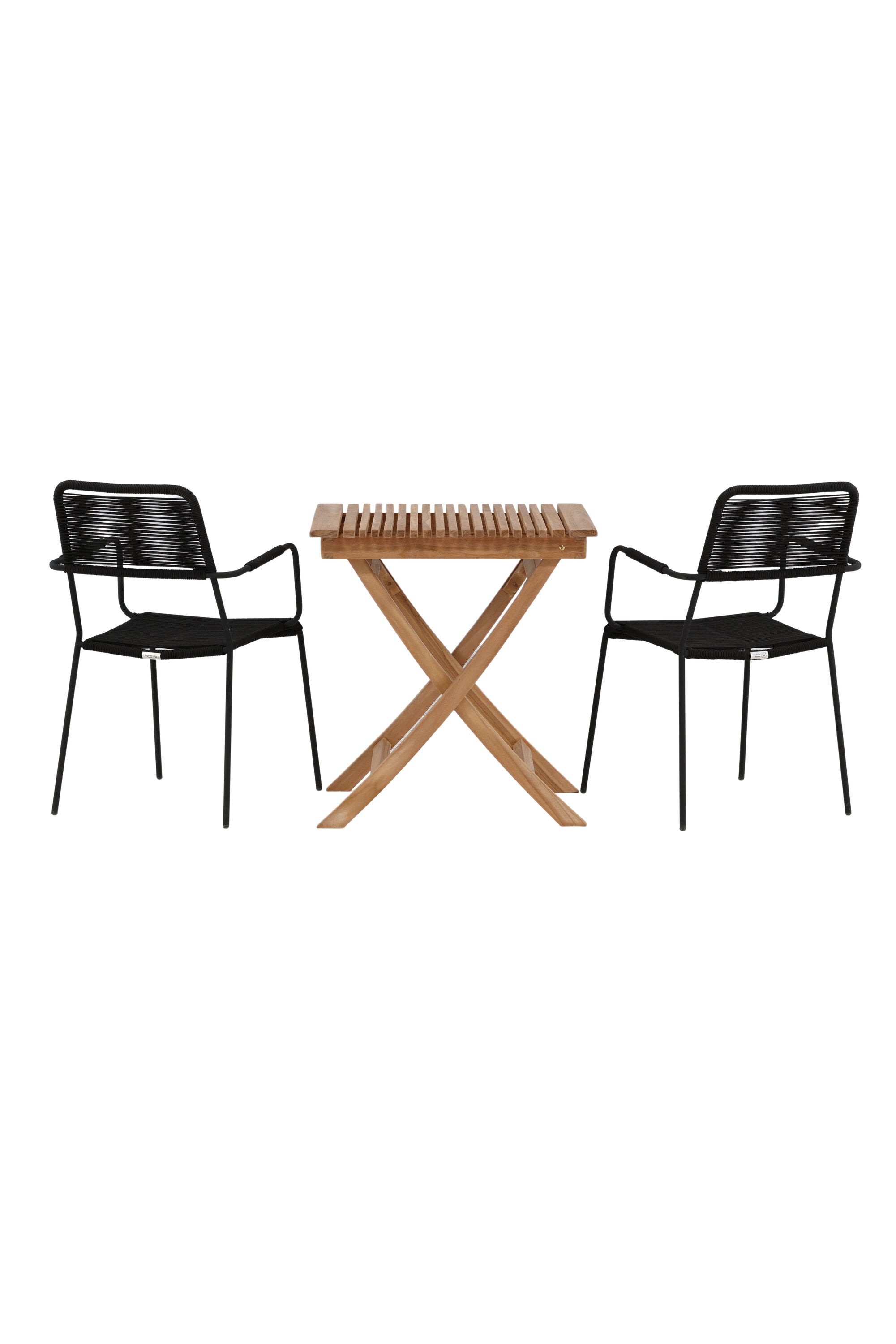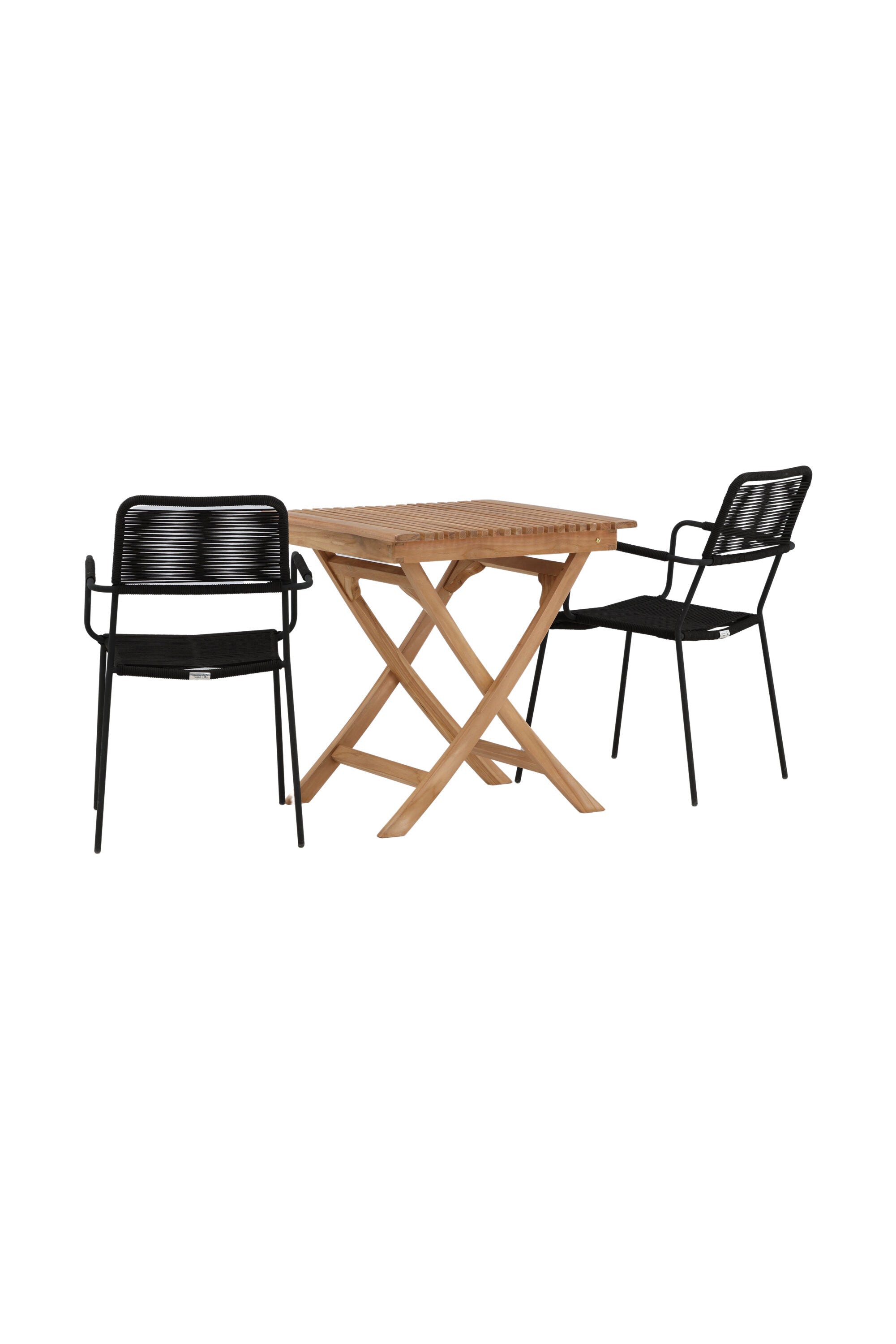 Ghana - Skládací stůl - Natural - Teak - 70*70cm _1+ Křeslo Lindos - Black Alu / Black Lano _2