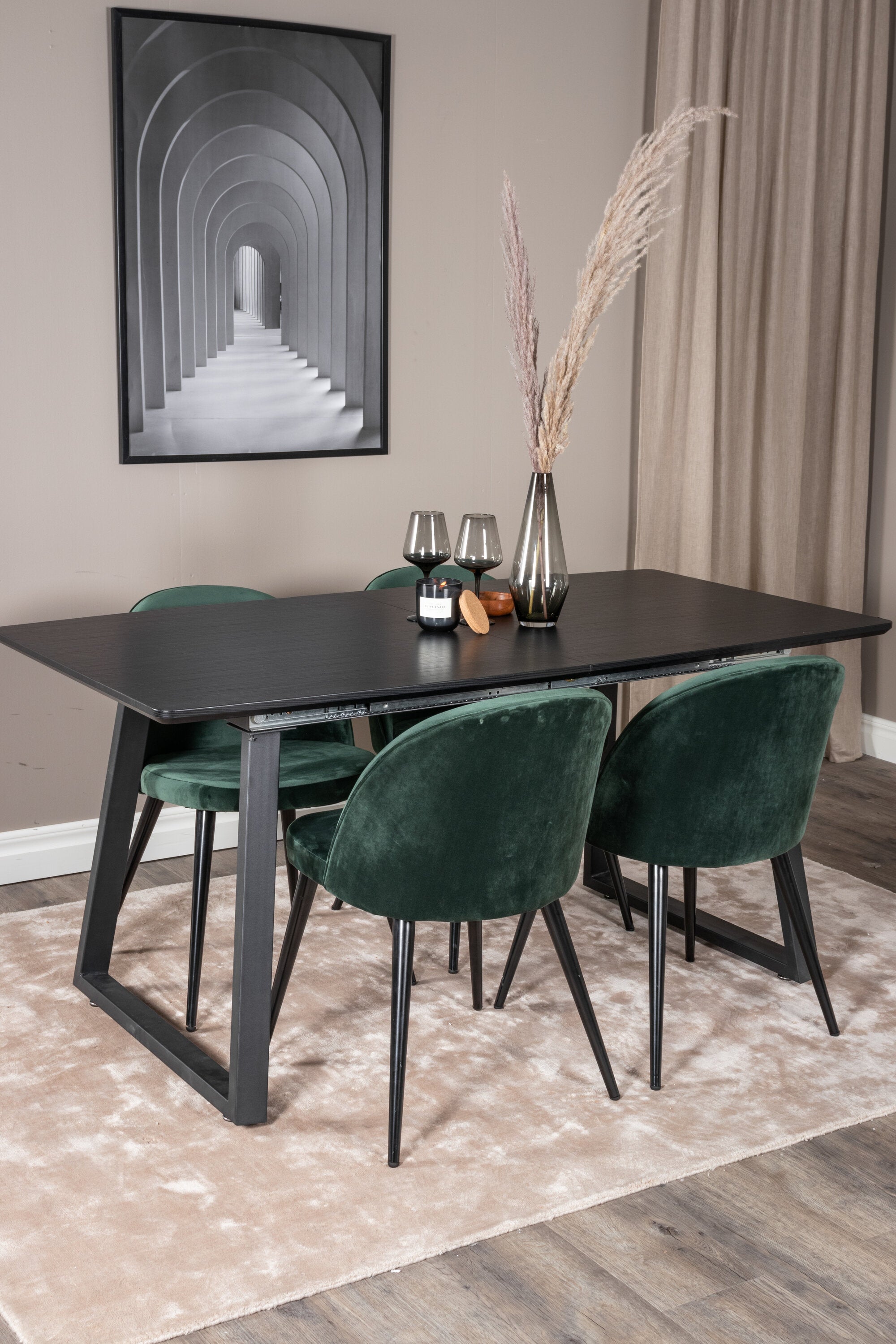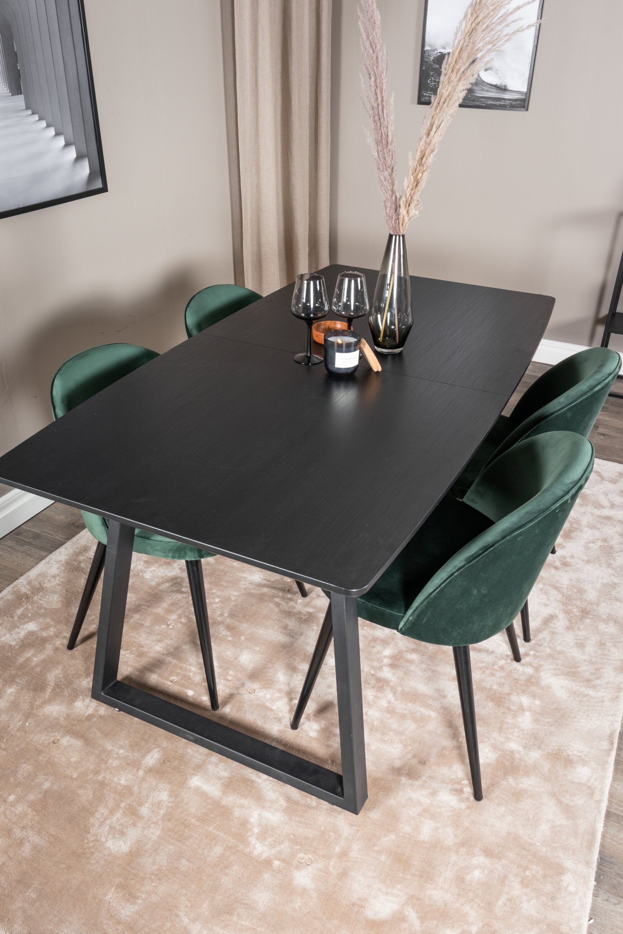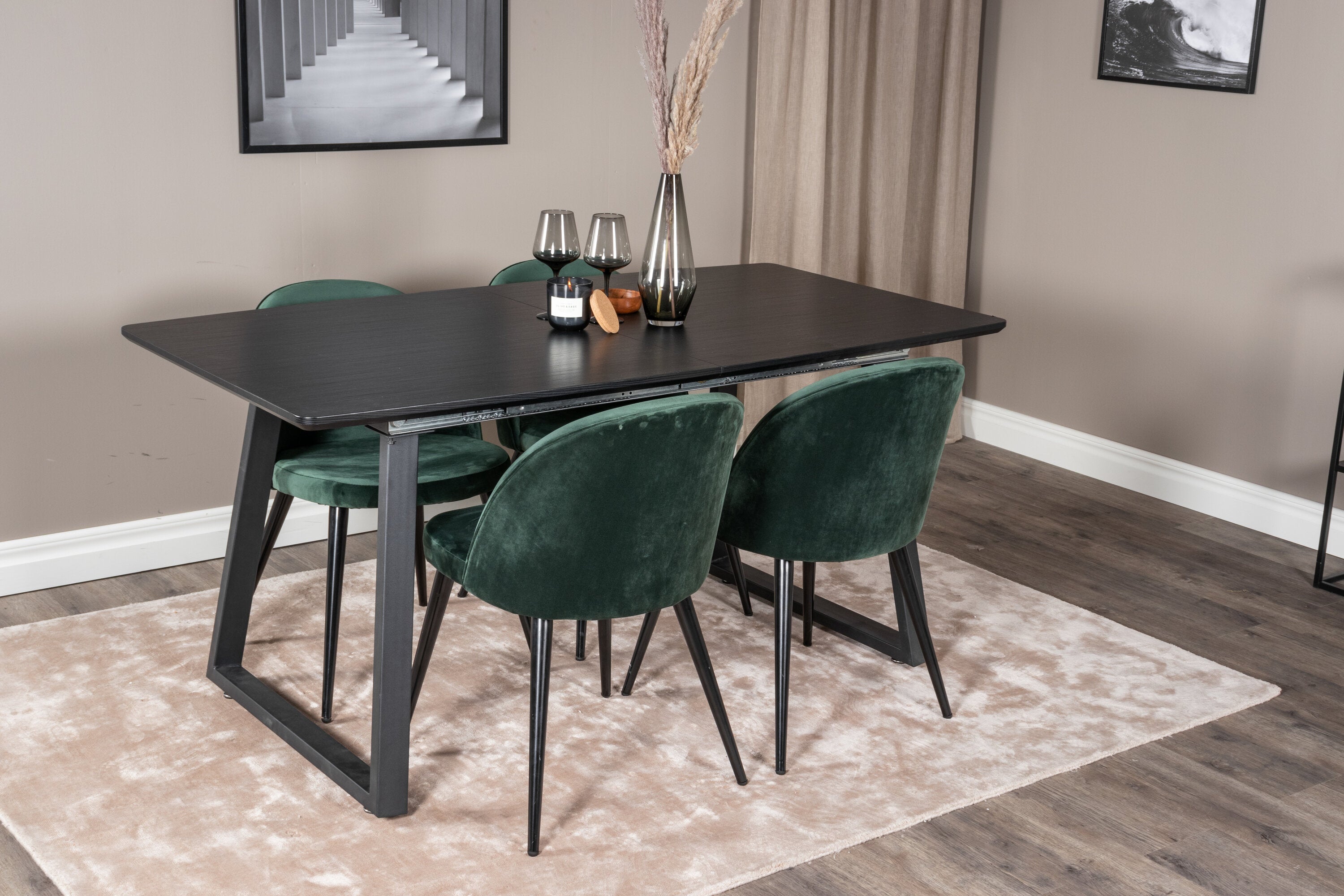 Inca Extentiontable - Černá deska / černá Nohy+Velvet Jídelní židle - Zelená / Černá_4