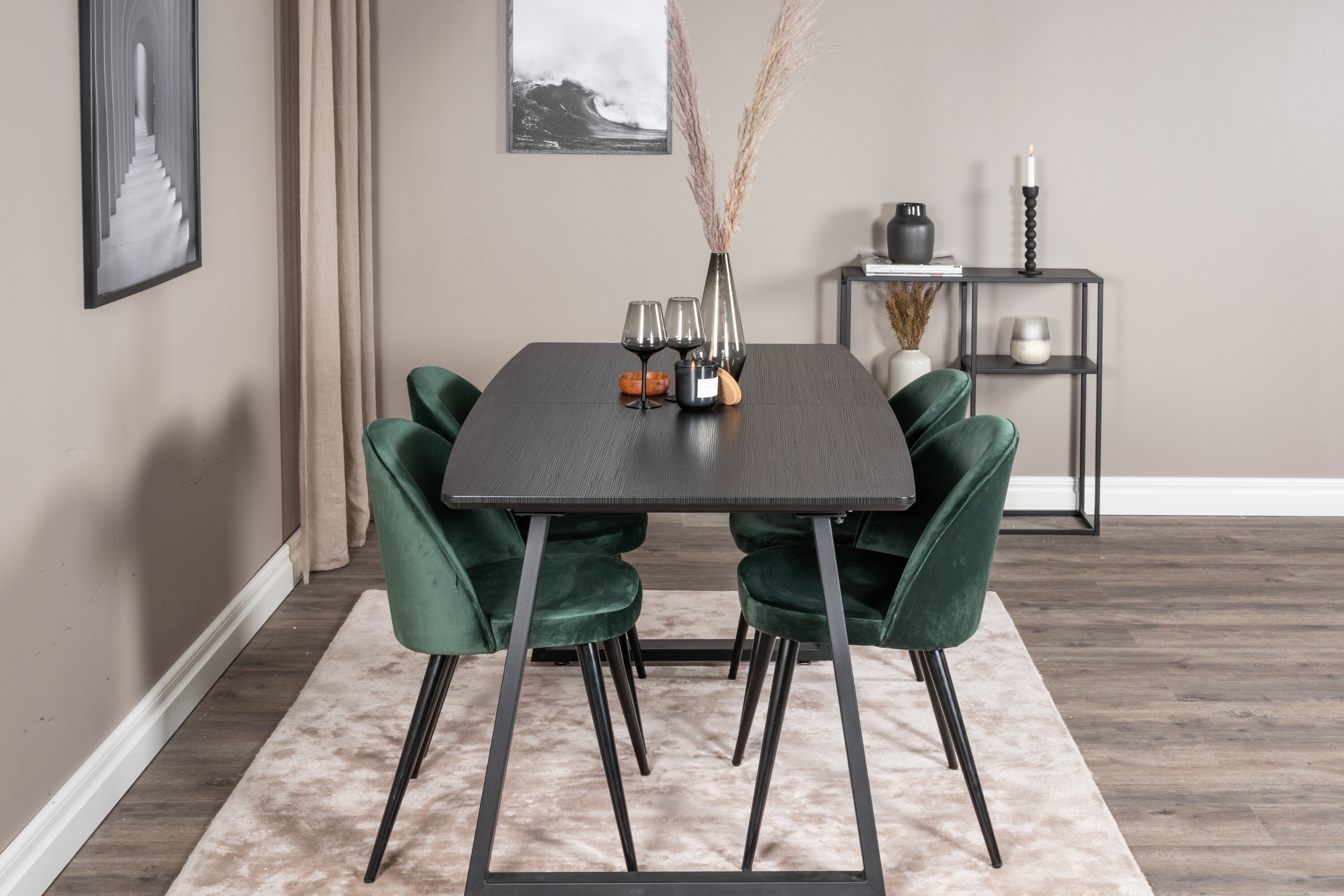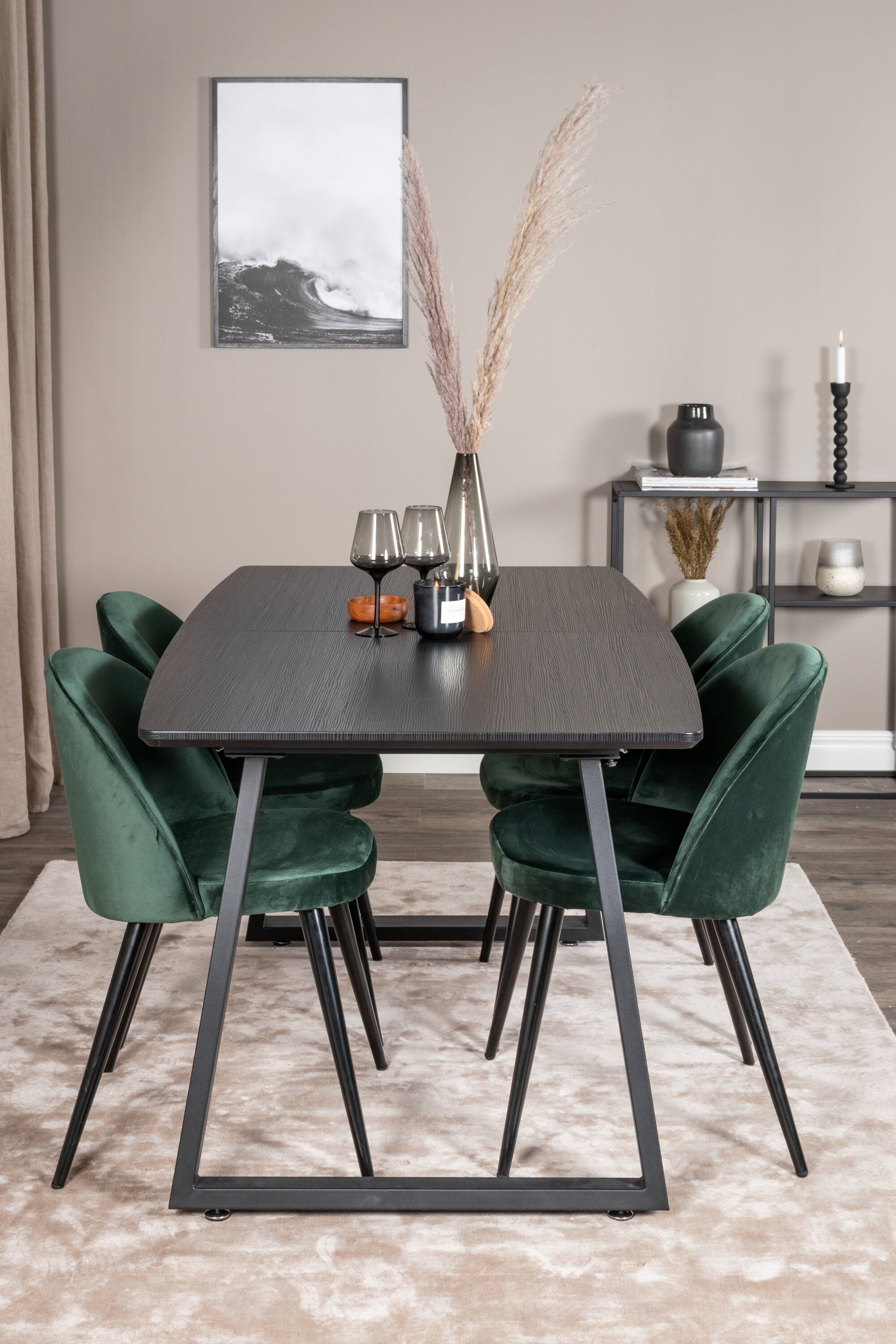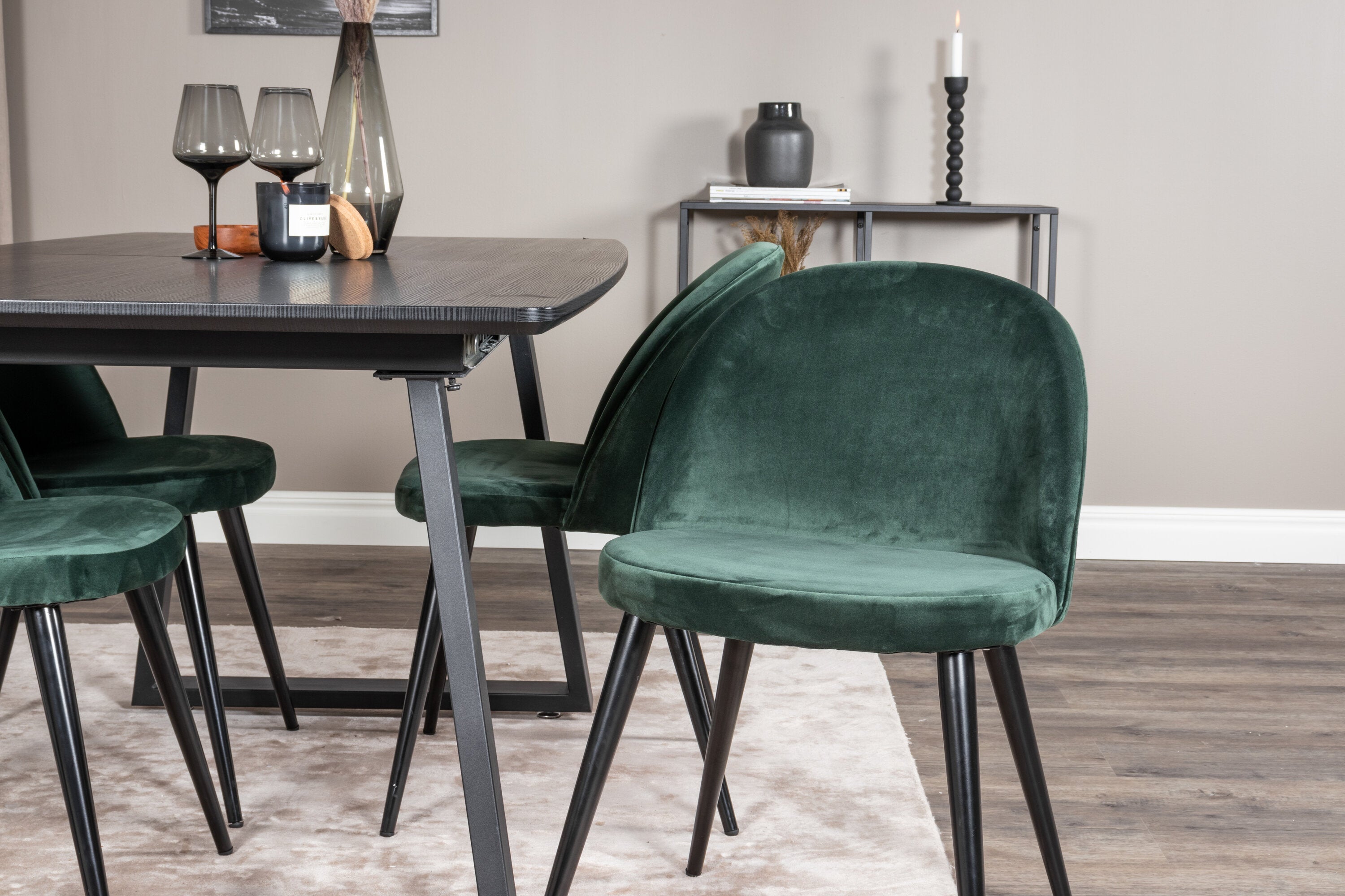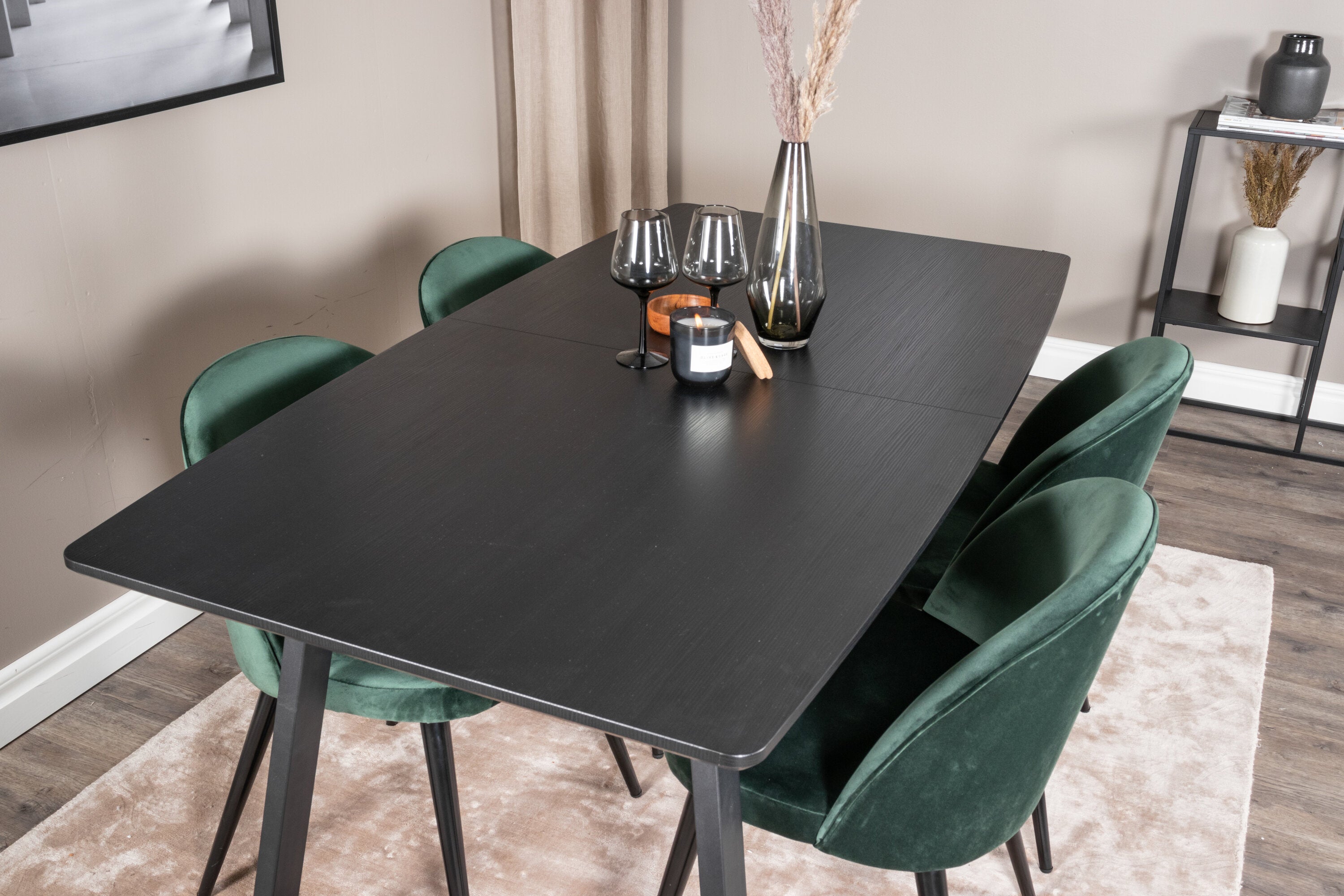 Inca Extentiontable - Černá deska / černá Nohy+Velvet Jídelní židle - Zelená / Černá_4