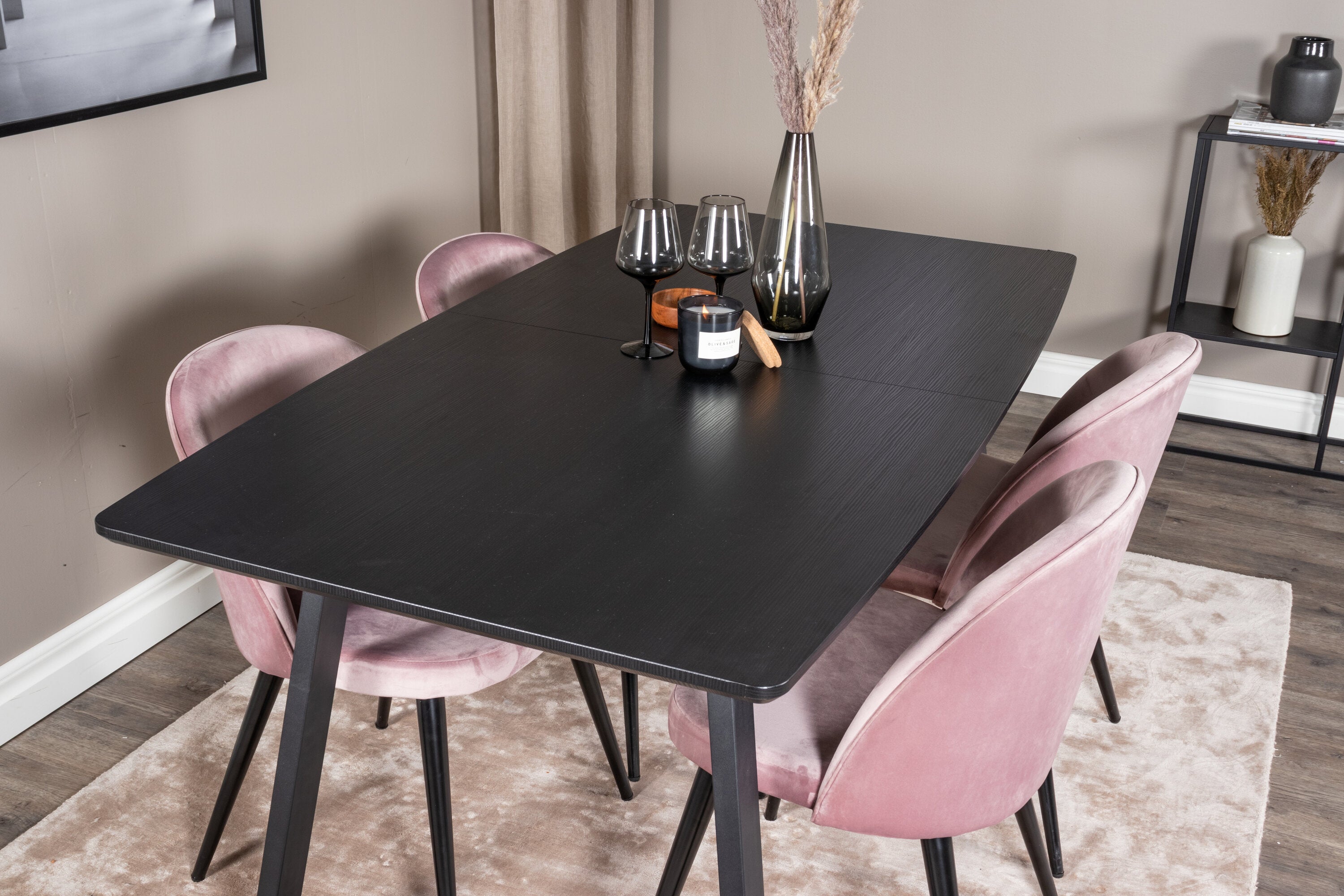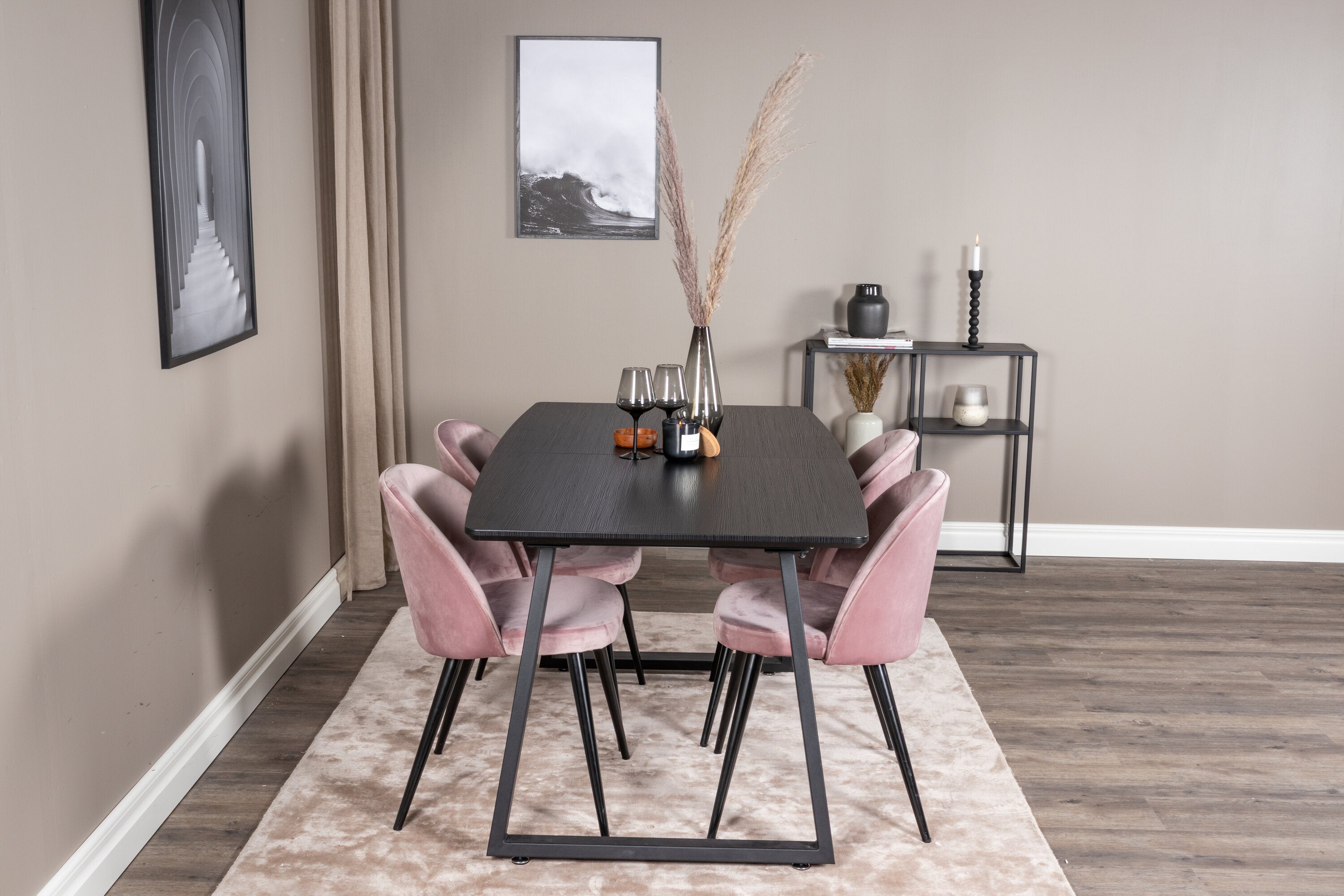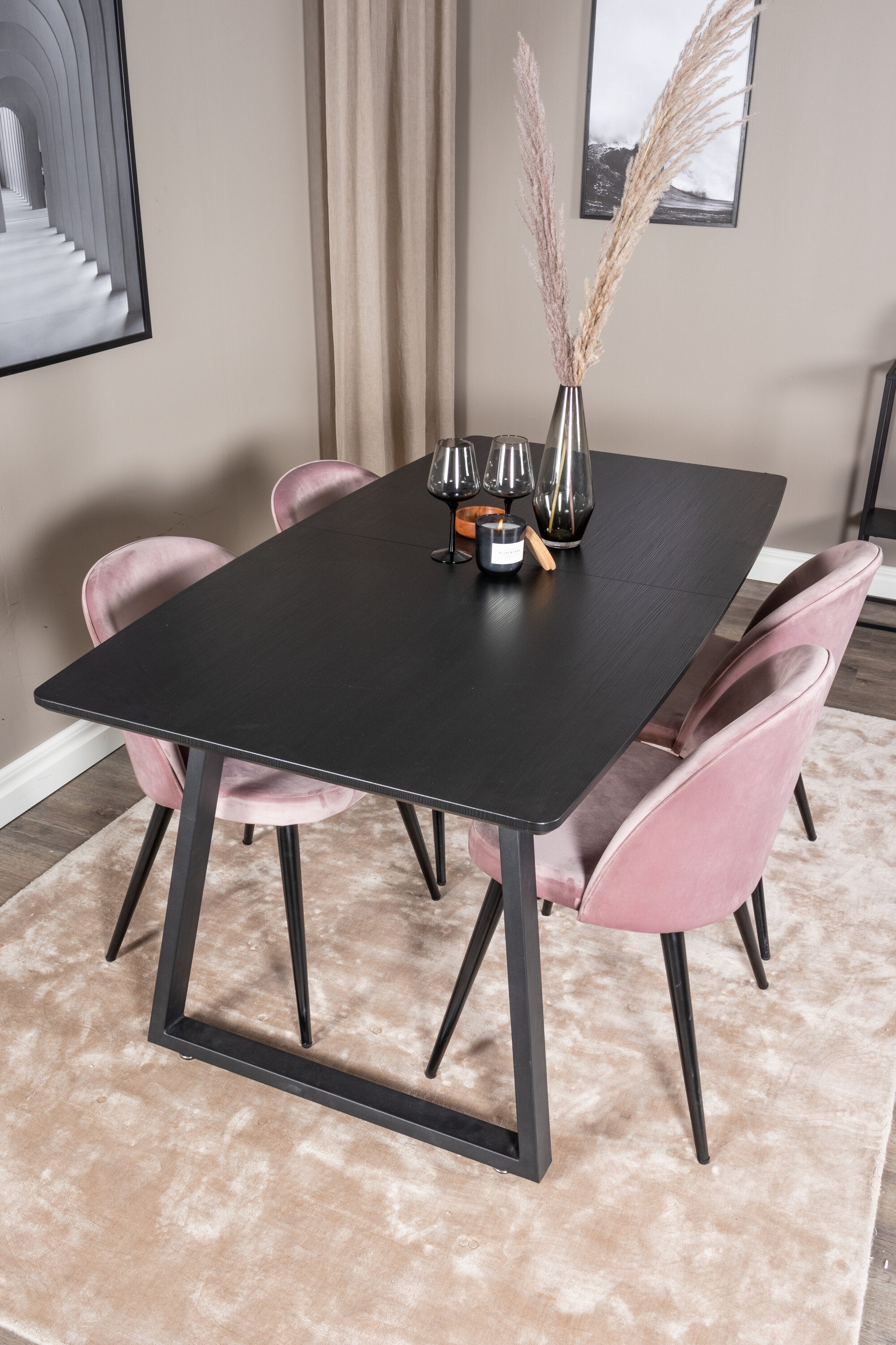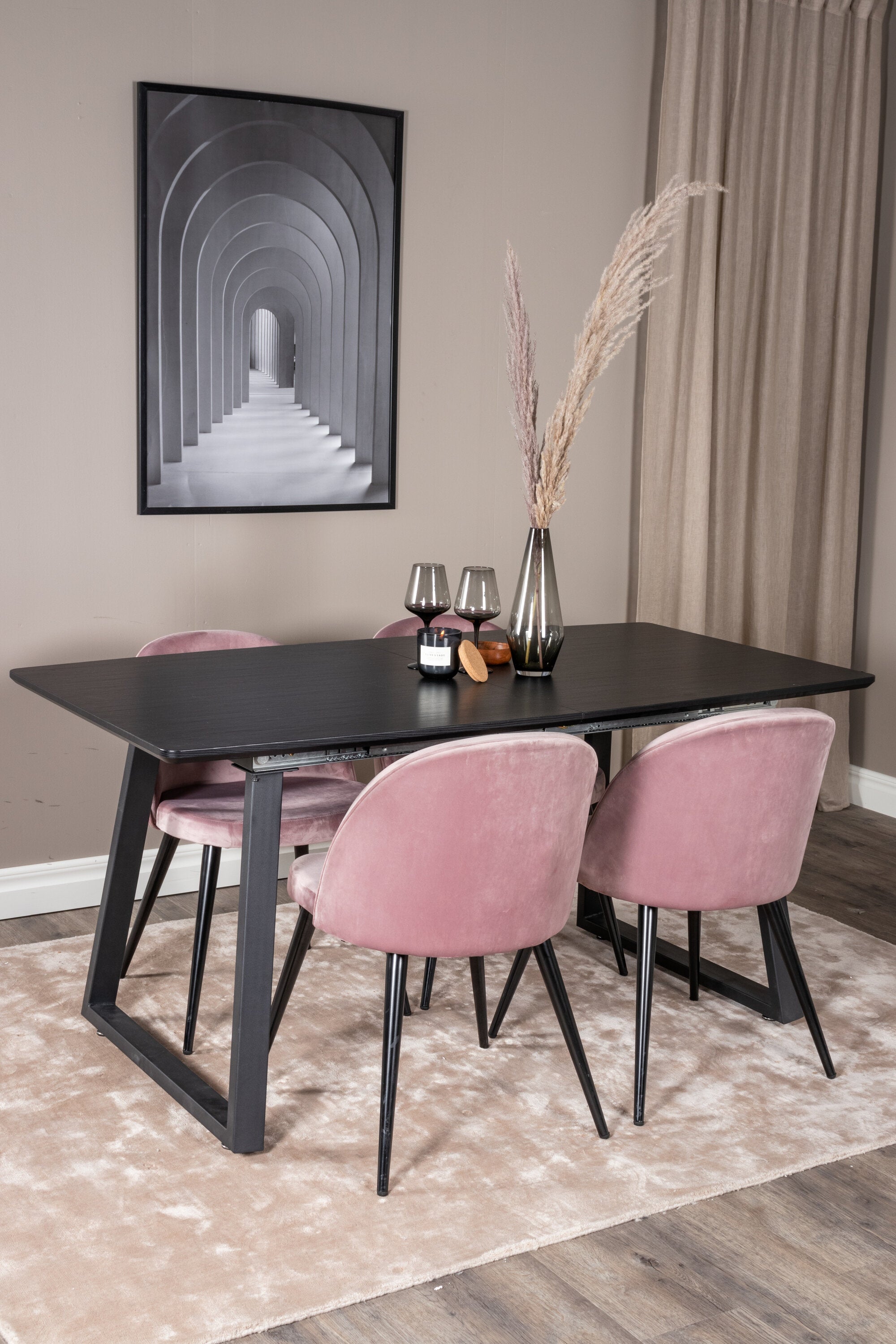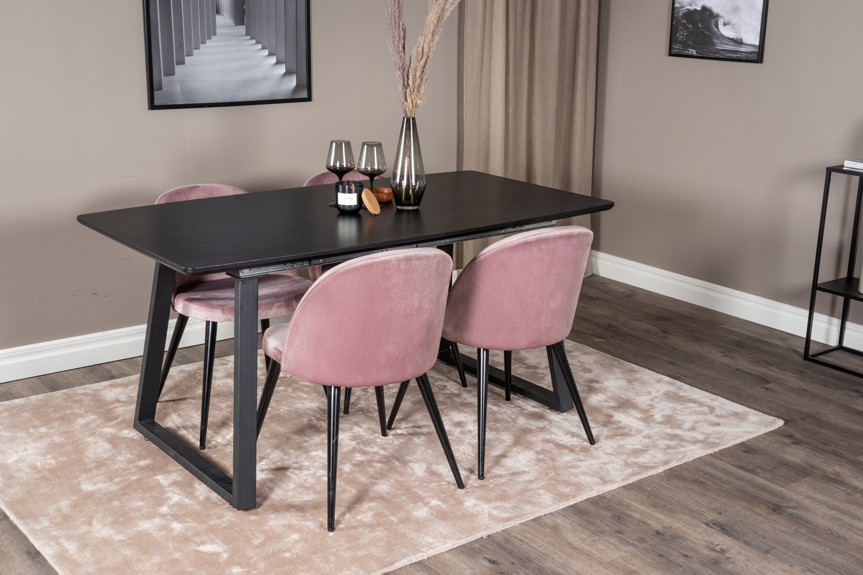 Inca Extentiontable - Černá top / černá Nohy+Velvet Jídelní židle - Pink / Black_4
