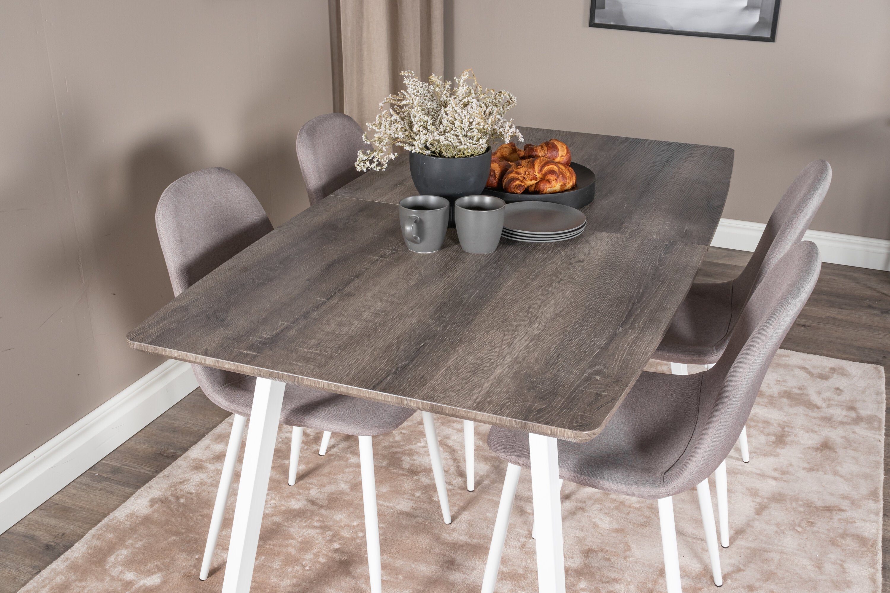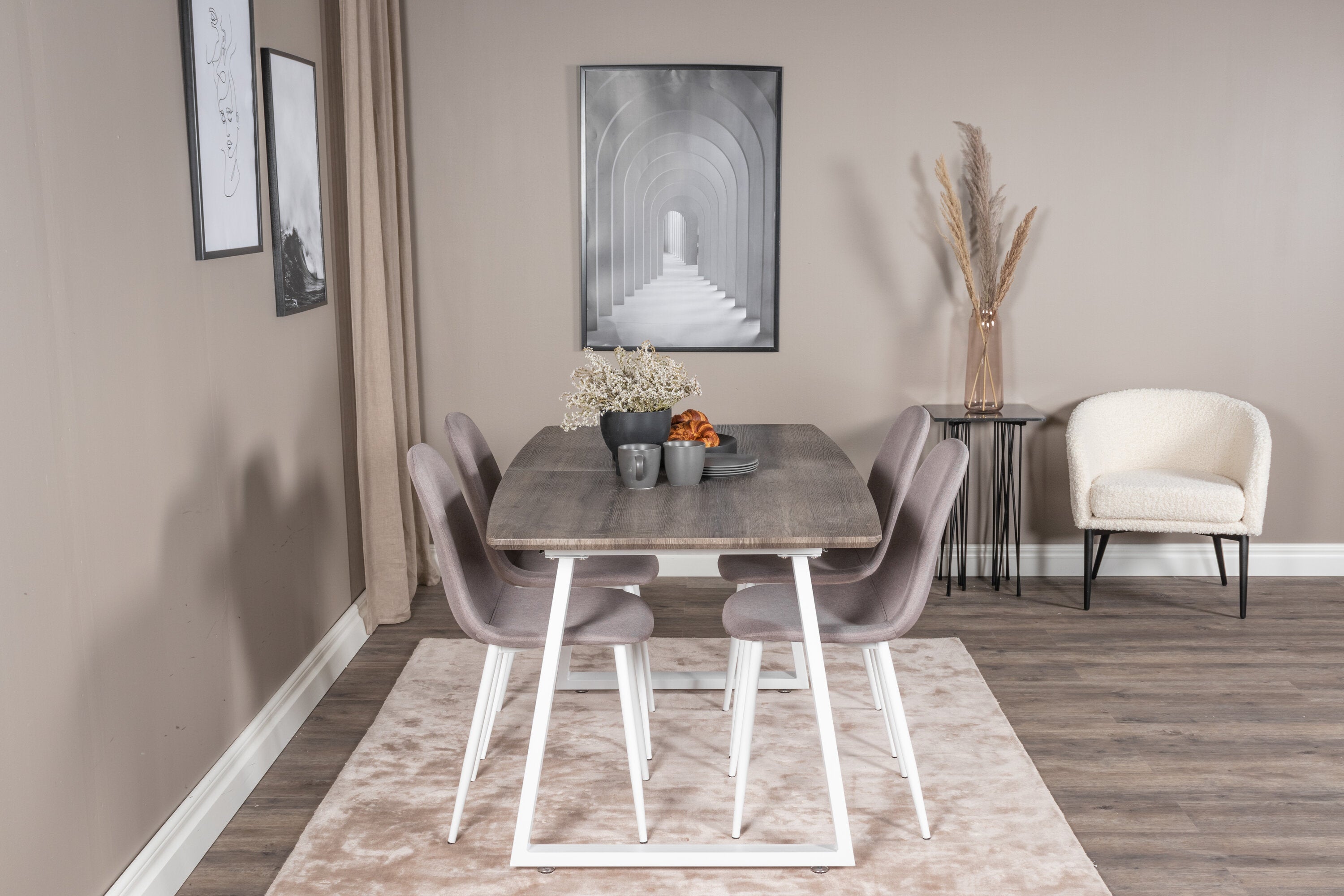 Inca Extentiontable - šedý "dub" / bílá Nohy + Polar Chair - Šedá látka Bílé Nohy _4
