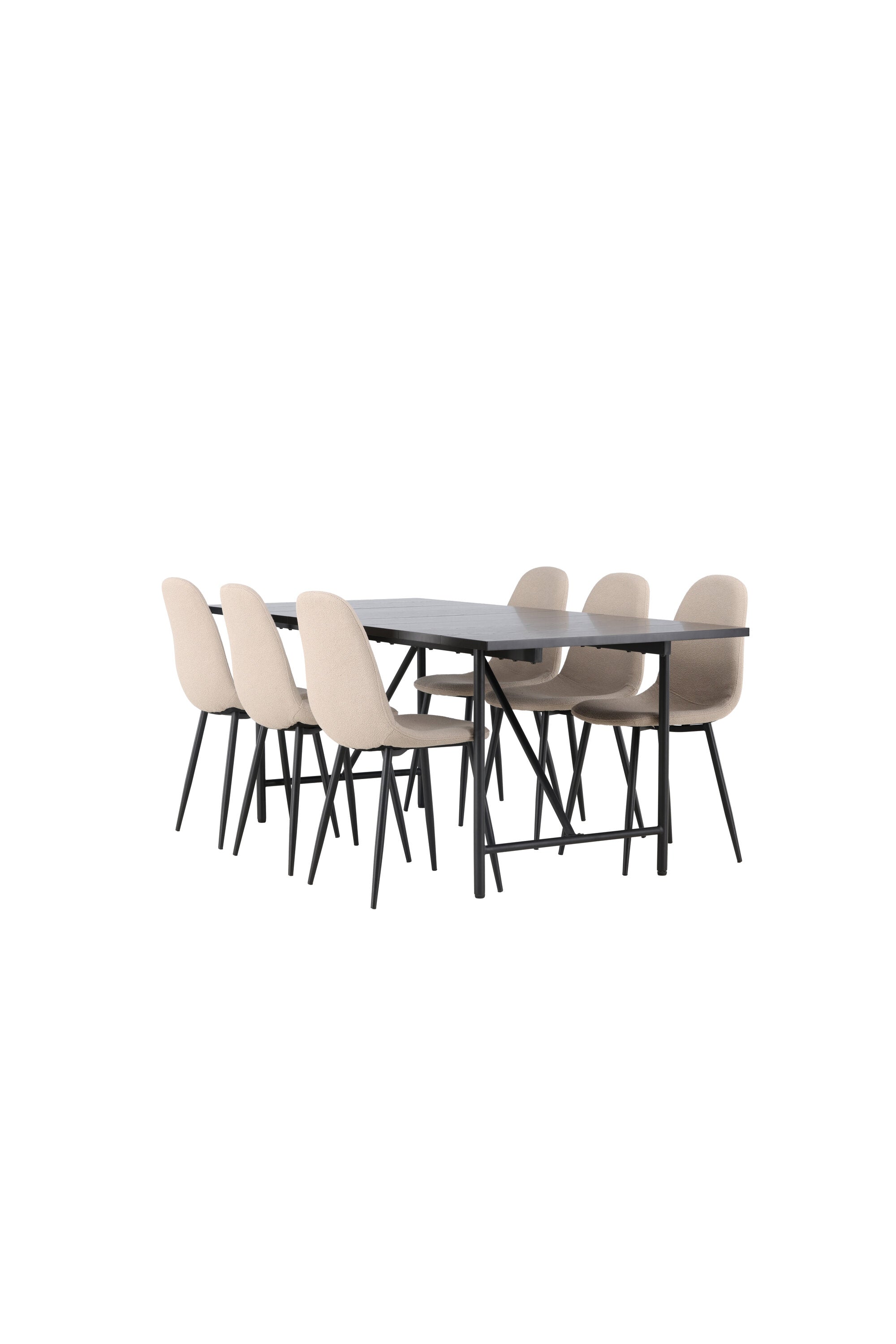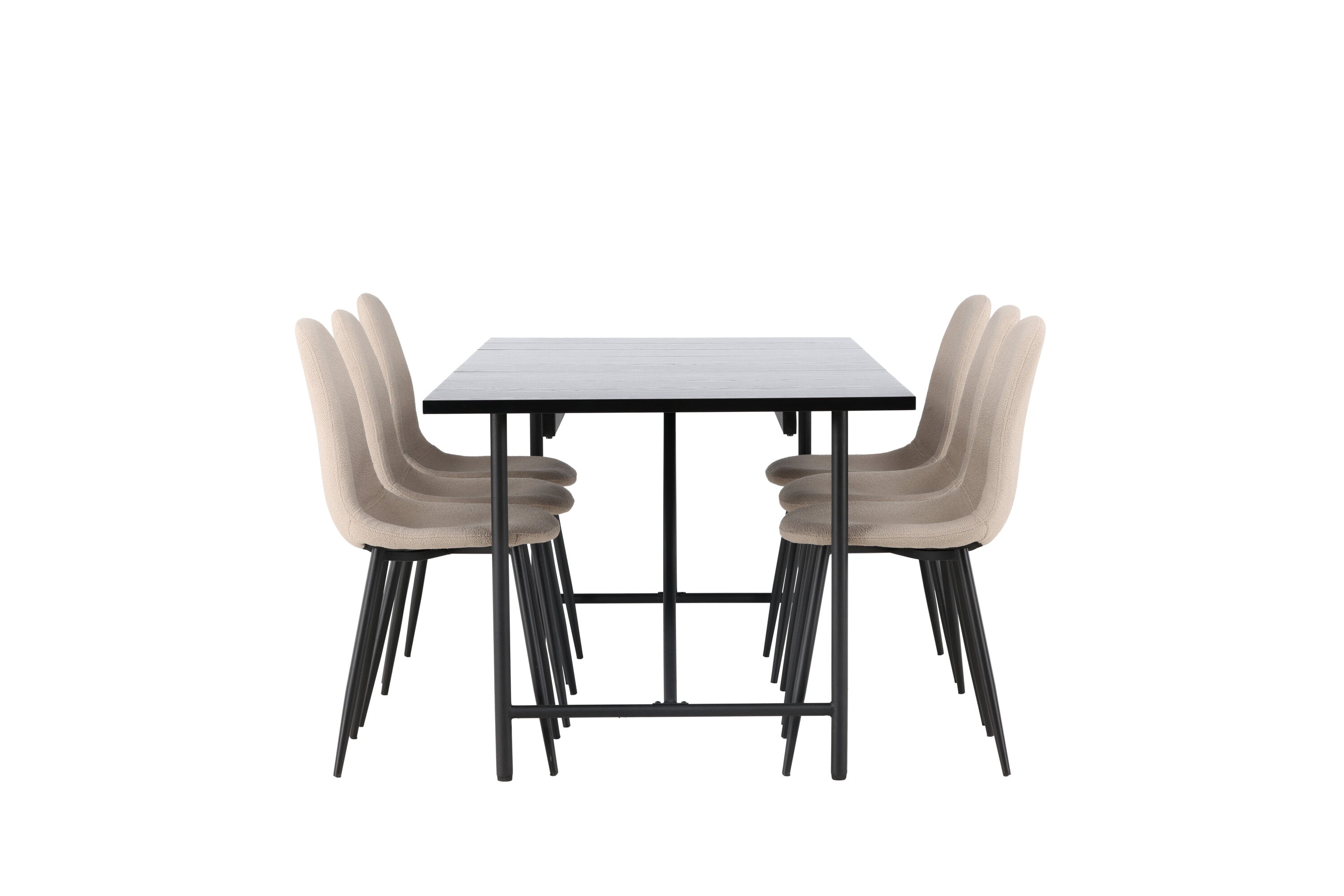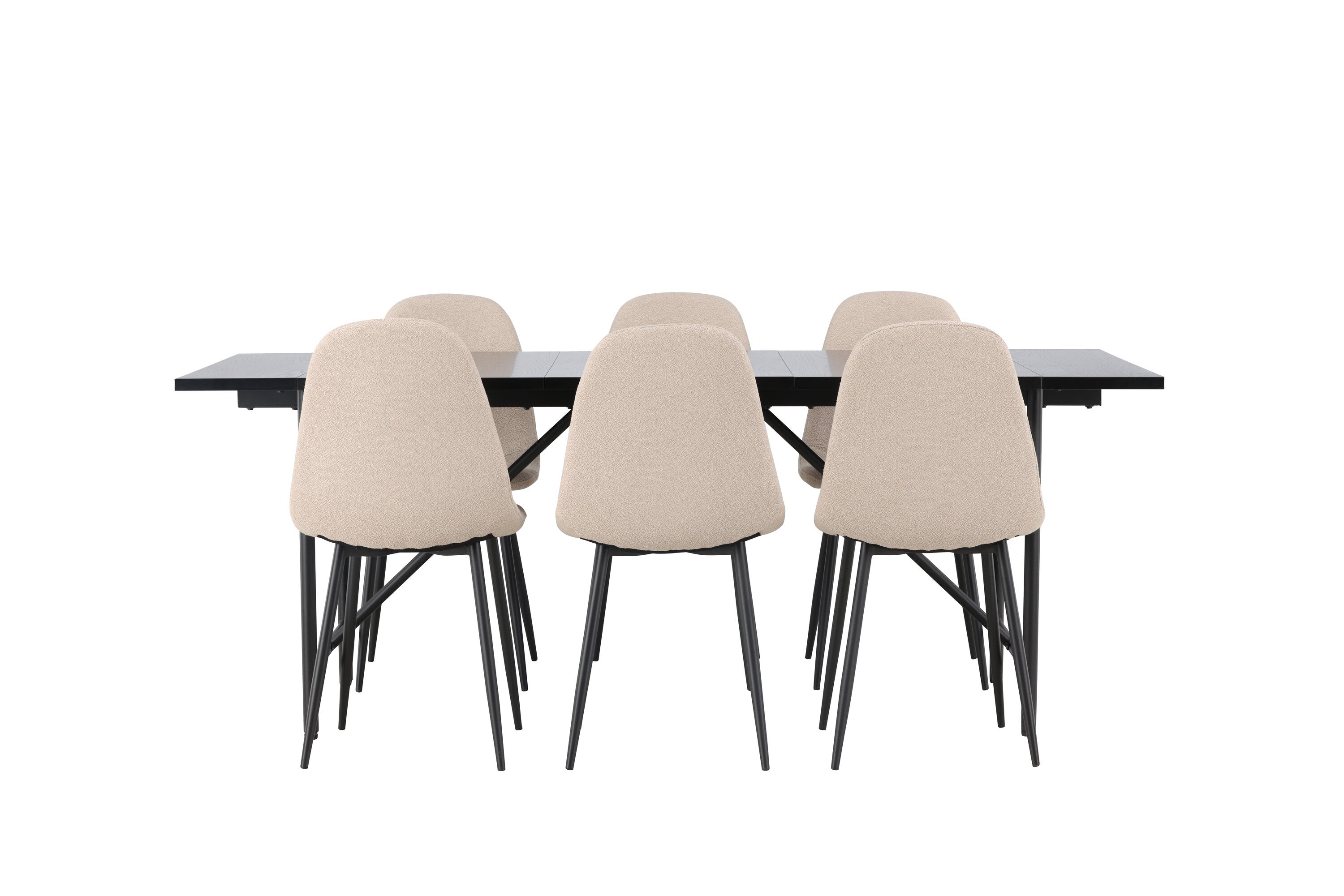 Jídelní stůl Astrid 200*75 - Matná černá / Matná černá MDF s dýhou + Jídelní židle Polar - Černá / Béžová Boucle _6