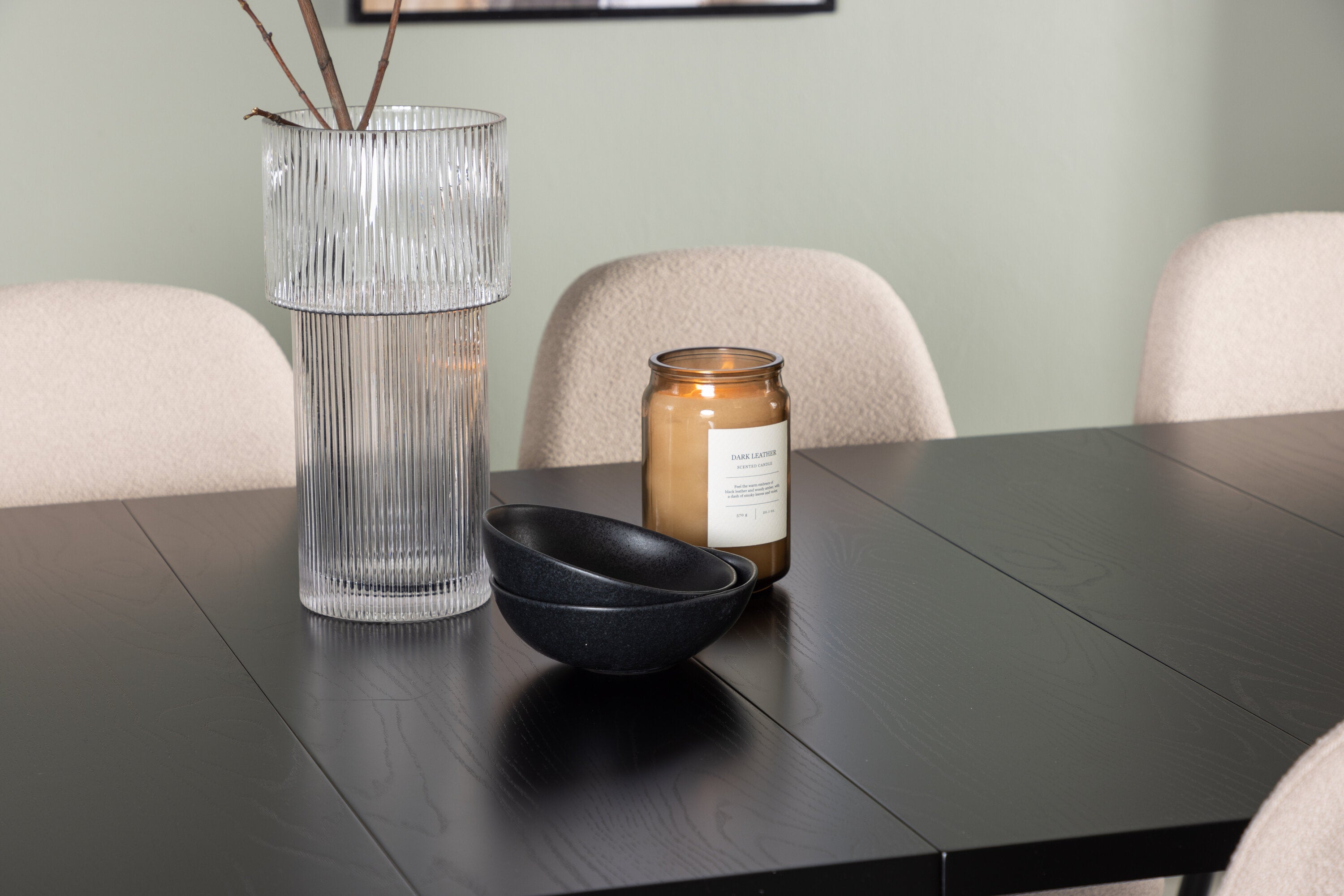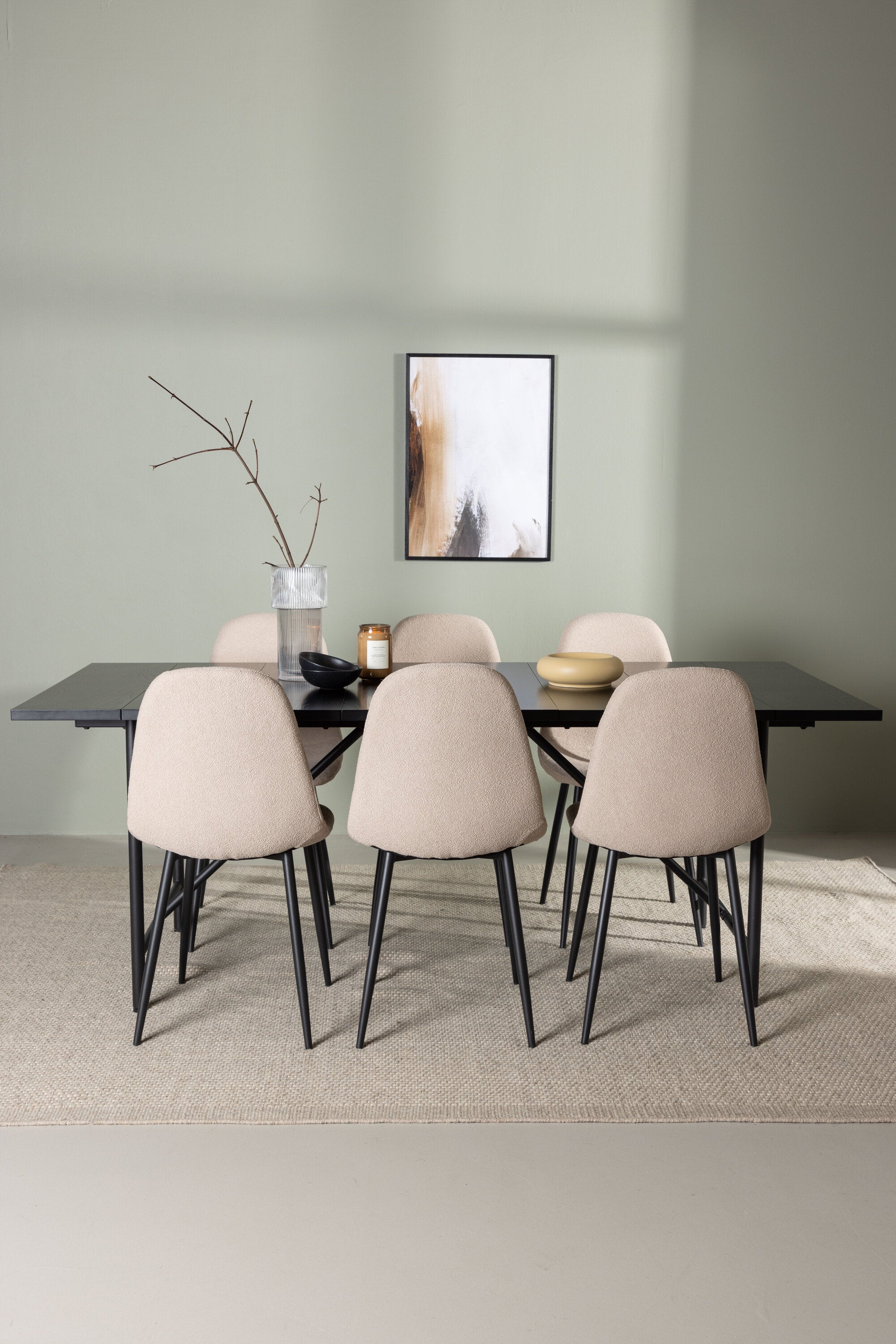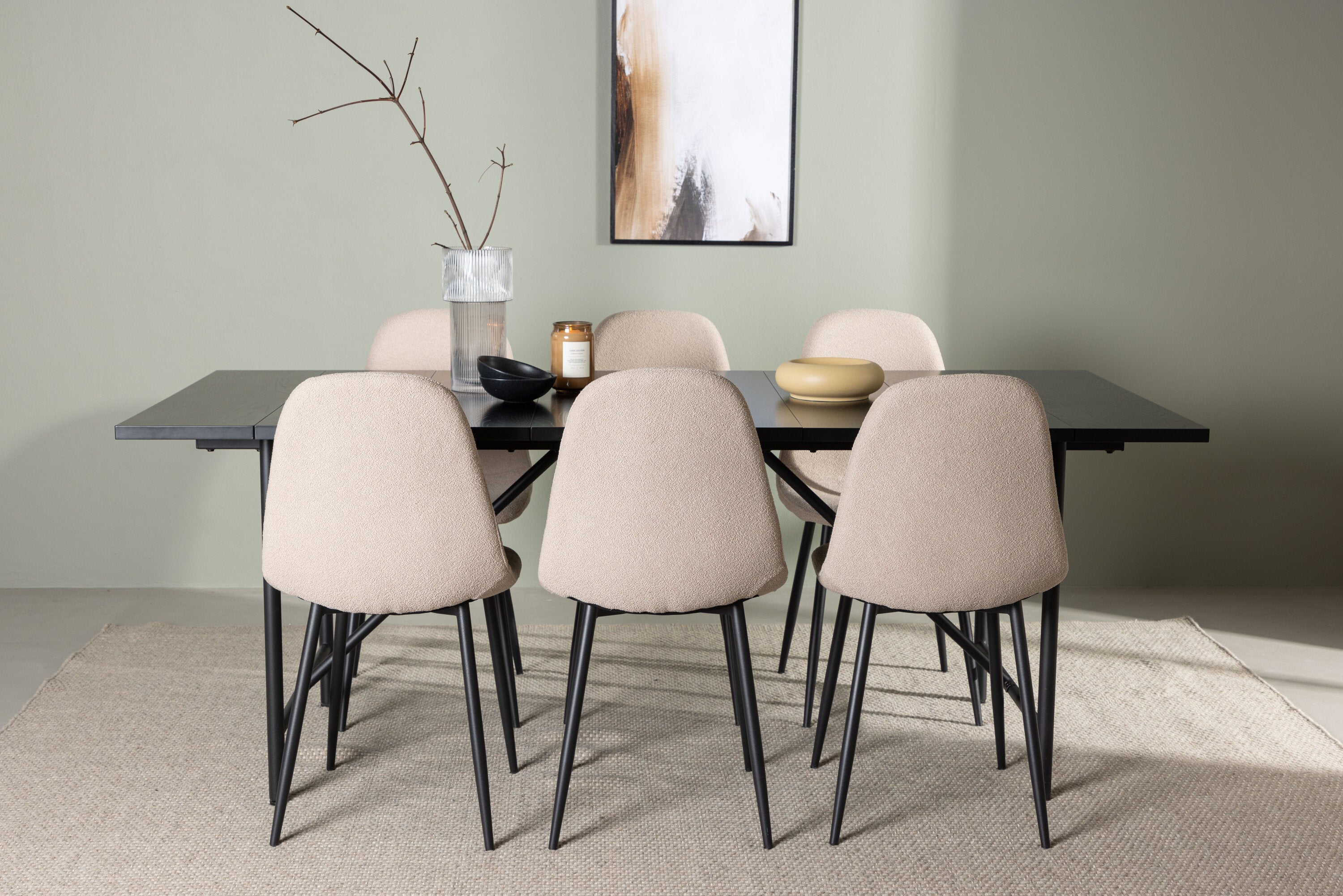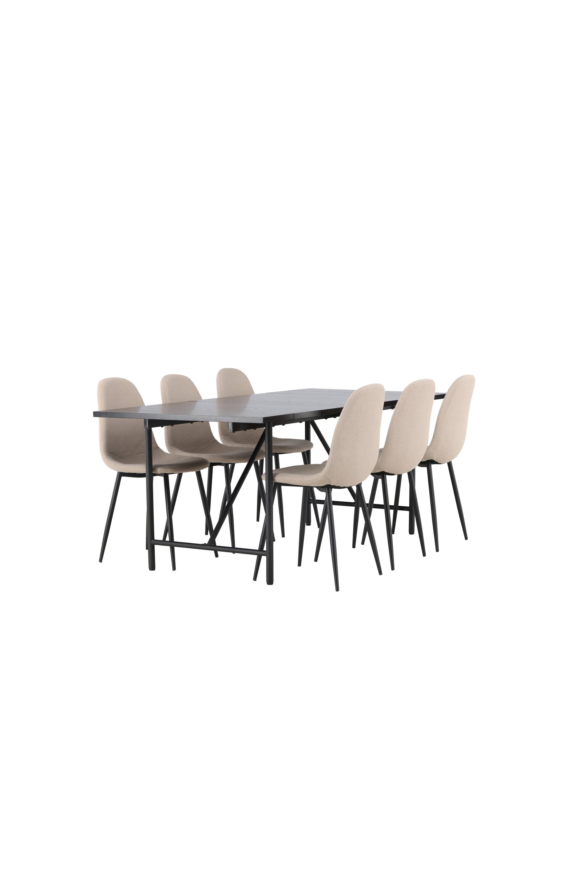 Jídelní stůl Astrid 200*75 - Matná černá / Matná černá MDF s dýhou + Jídelní židle Polar - Černá / Béžová Boucle _6