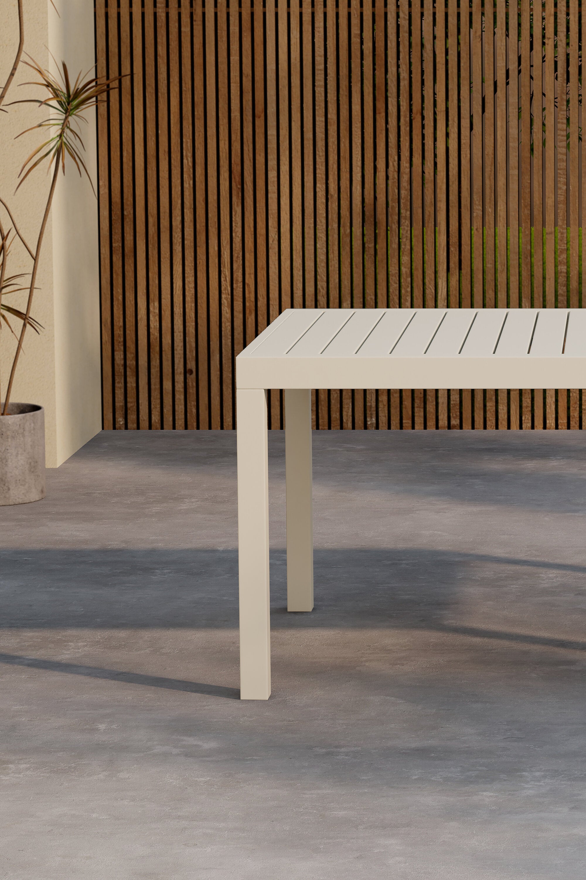 Objevte Capo – elegantní a všestranný jídelní stůl, který pozvedne váš venkovní prostor na další úroveň. Díky své béžové barvě a elegantnímu designu se stává přirozeným středobodem společenských setkání a venkovních jídel. Obdélníkový tvar a rozšiřitelná funkce usnadňují přizpůsobení stolu vašim potřebám a poskytují dostatek prostoru pro malé i velké skupiny.