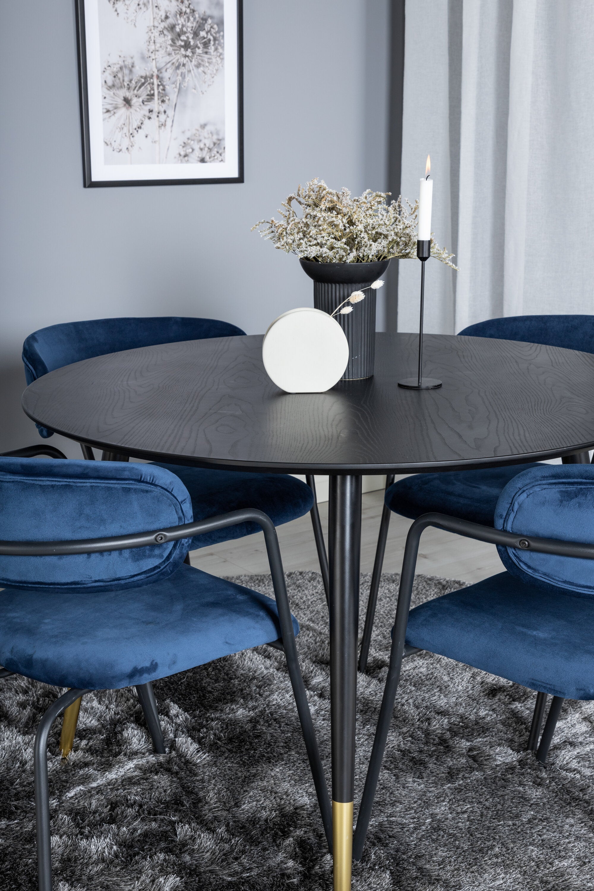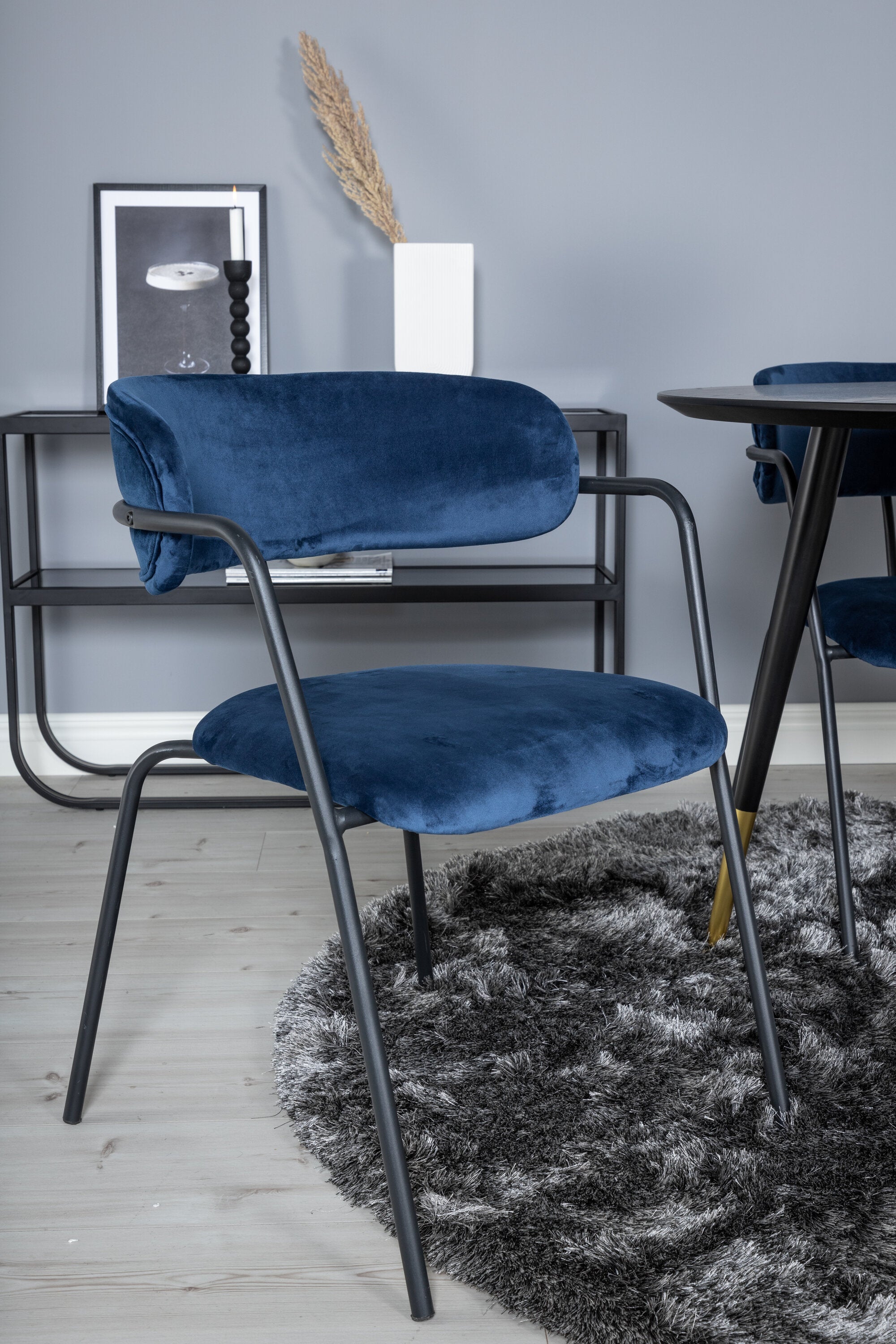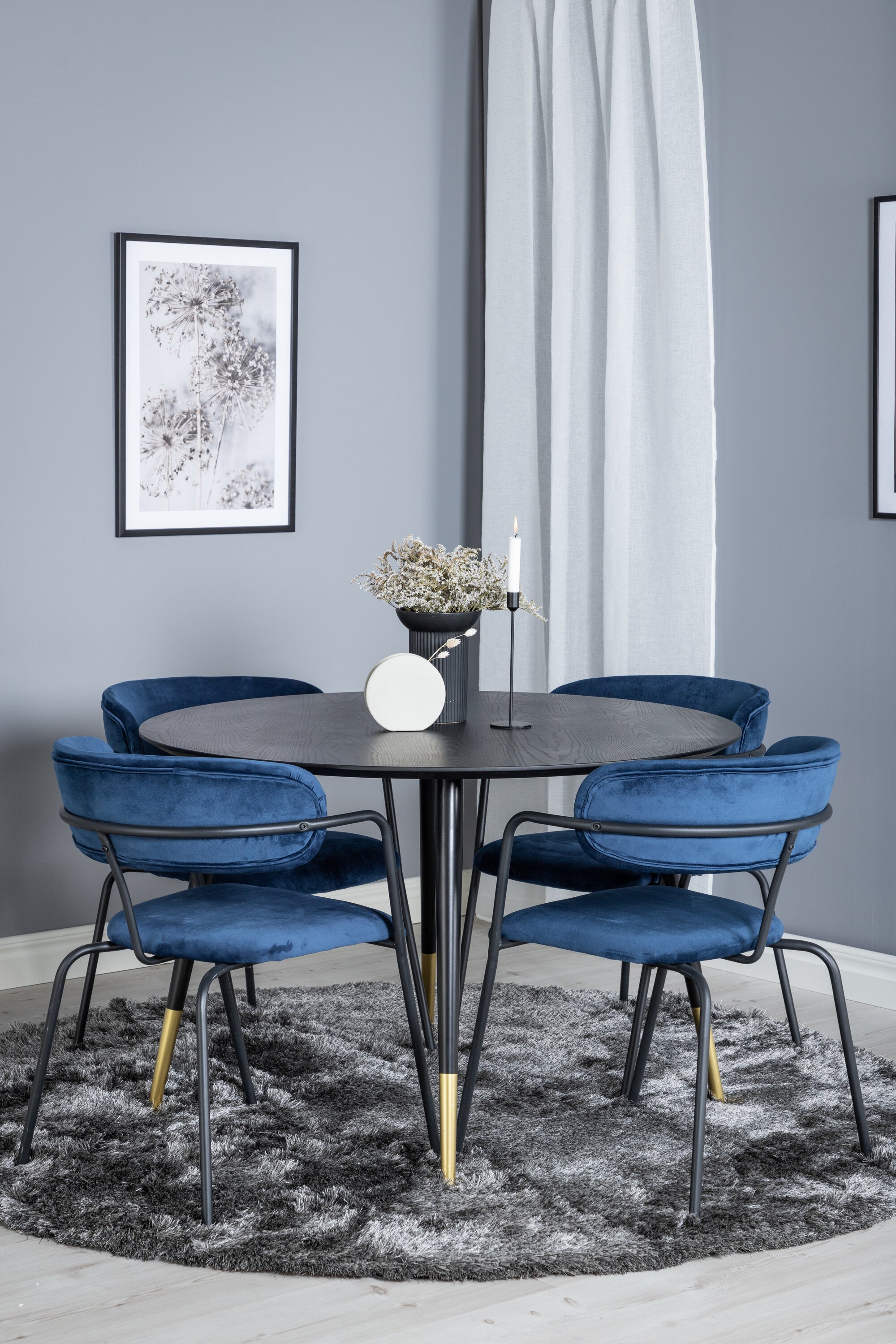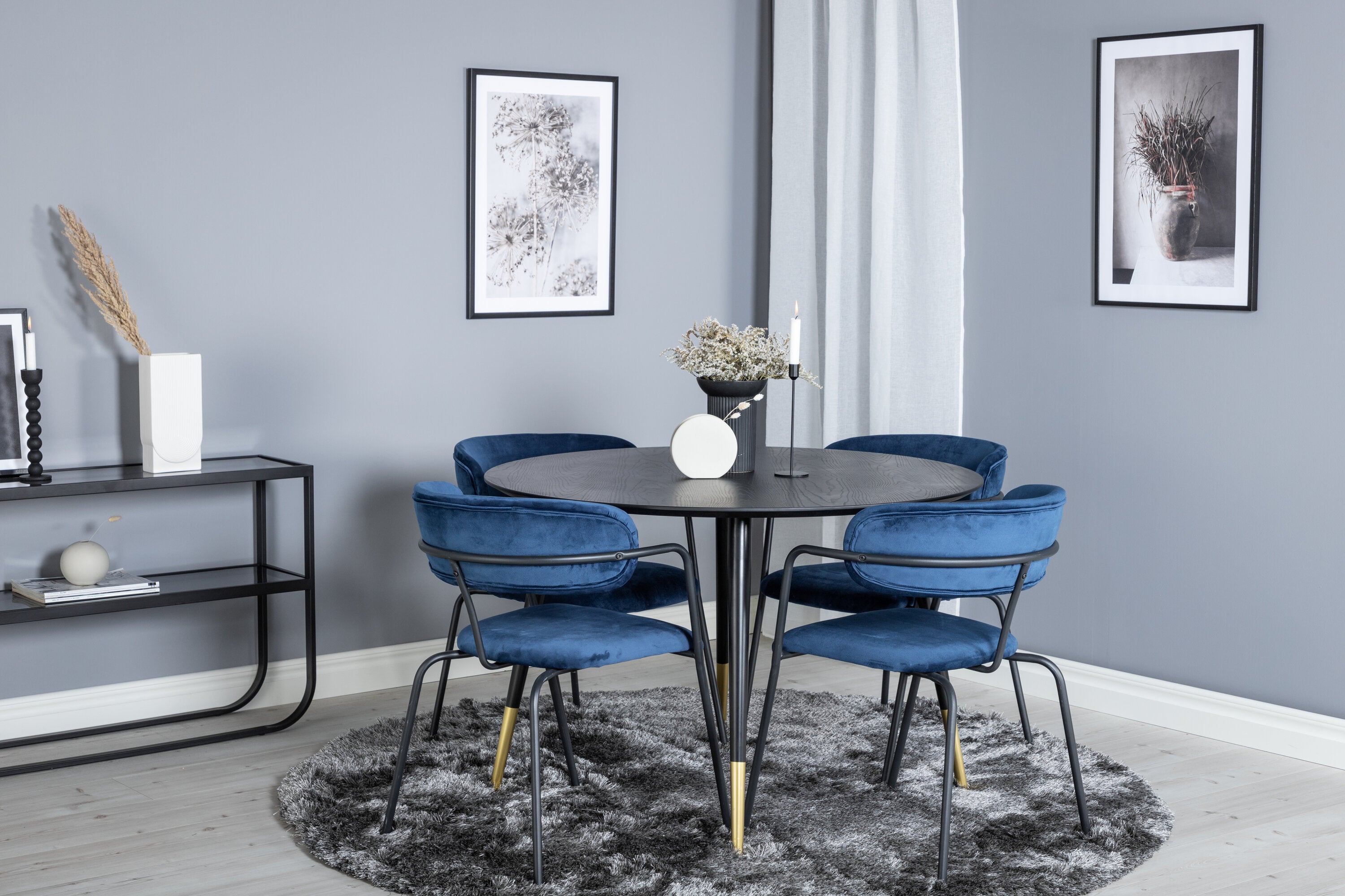Jídelní stůl Dipp - 115 cm - Černá / Černá mosaz + křeslo Arrow - Černé nohy - Blue Velvet_4