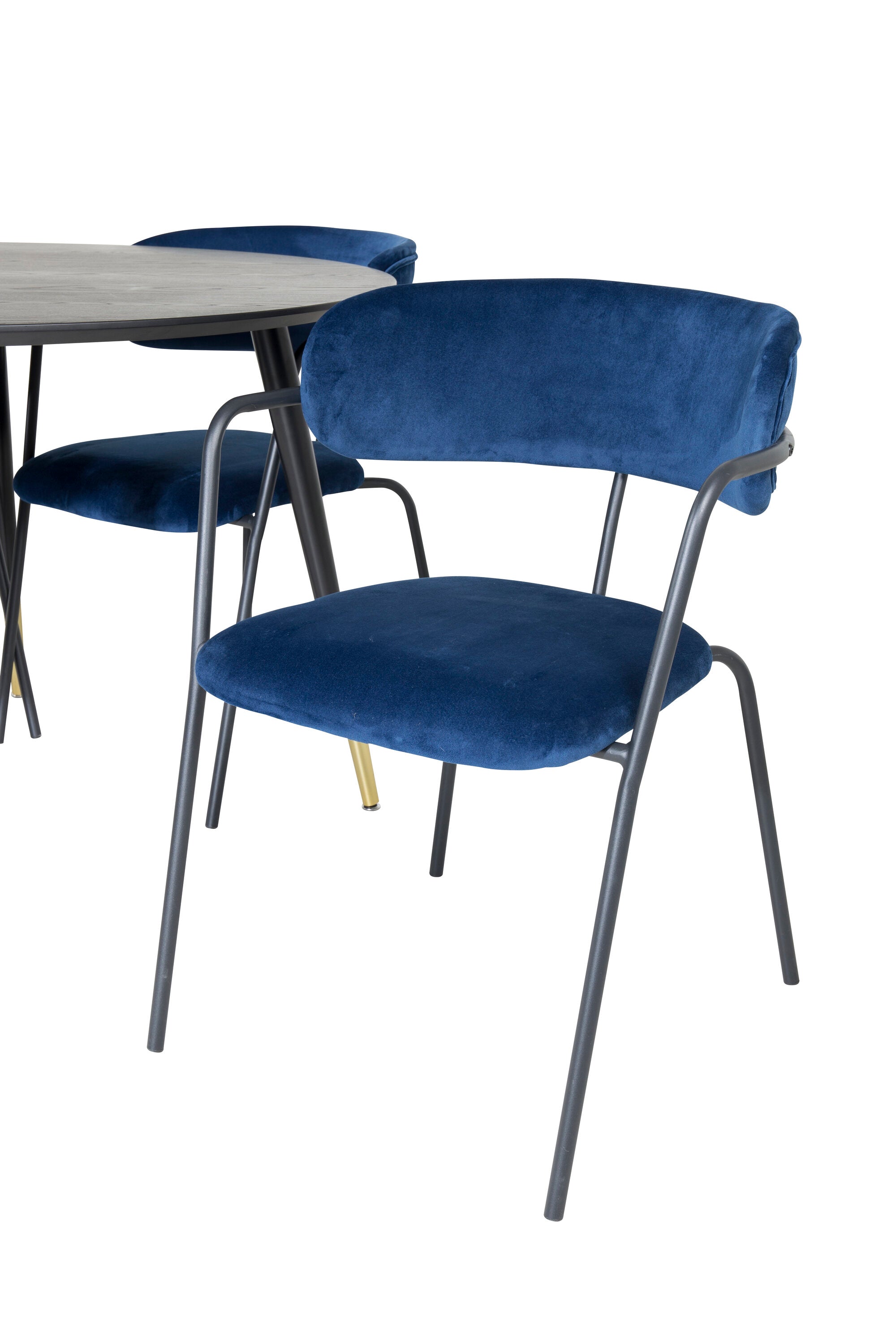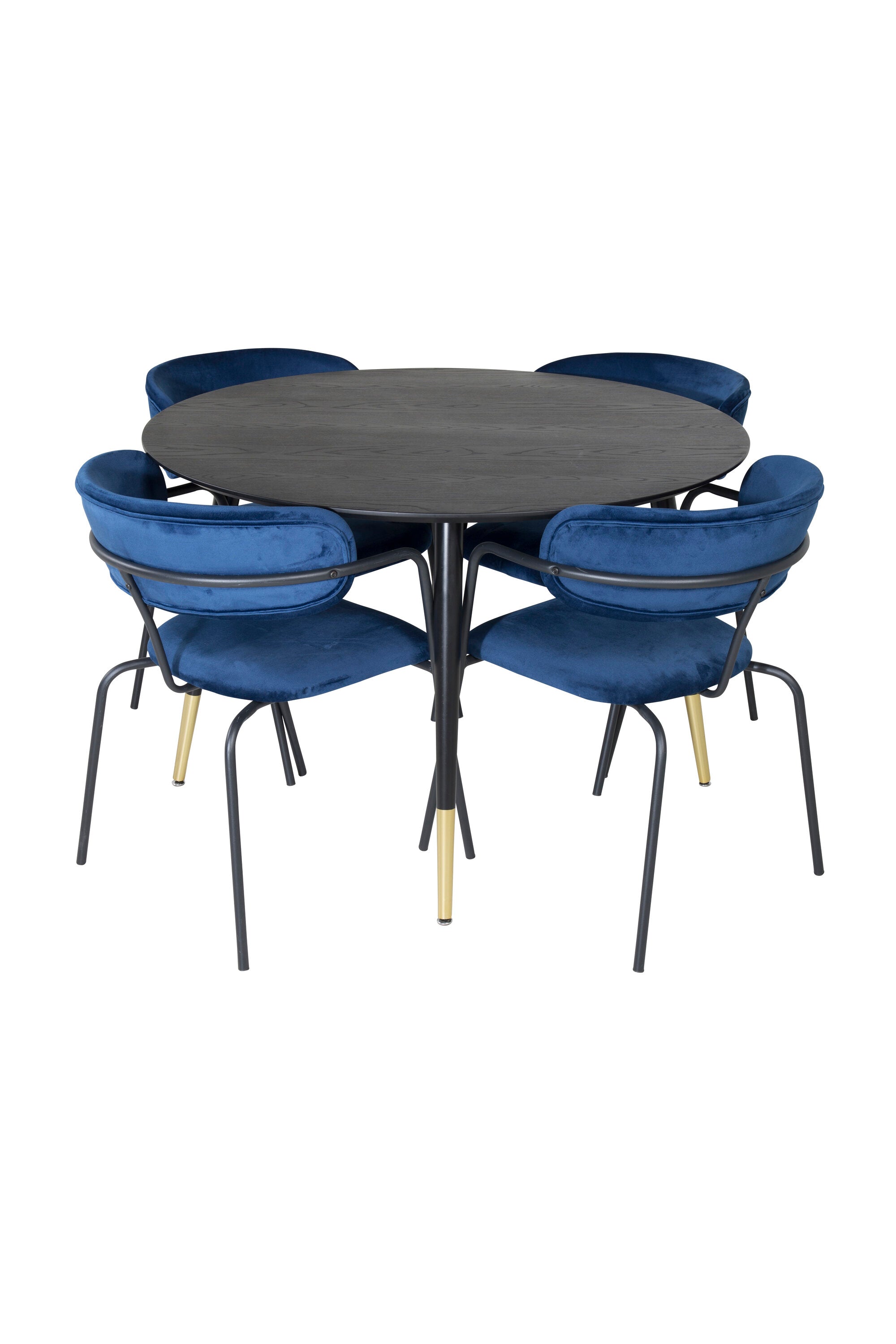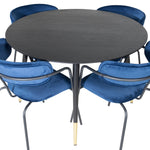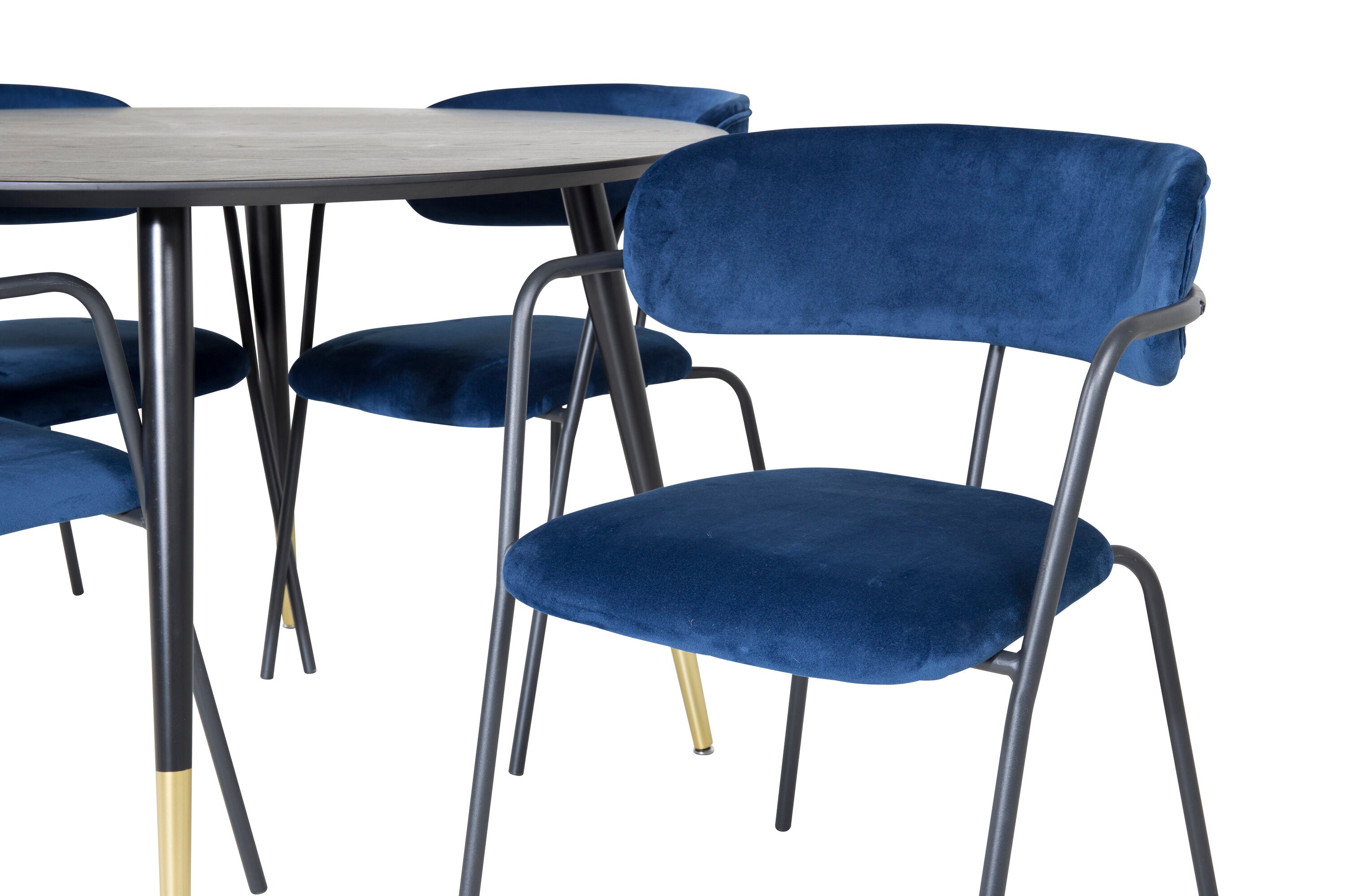 Jídelní stůl Dipp - 115 cm - Černá / Černá mosaz + křeslo Arrow - Černé nohy - Blue Velvet_4