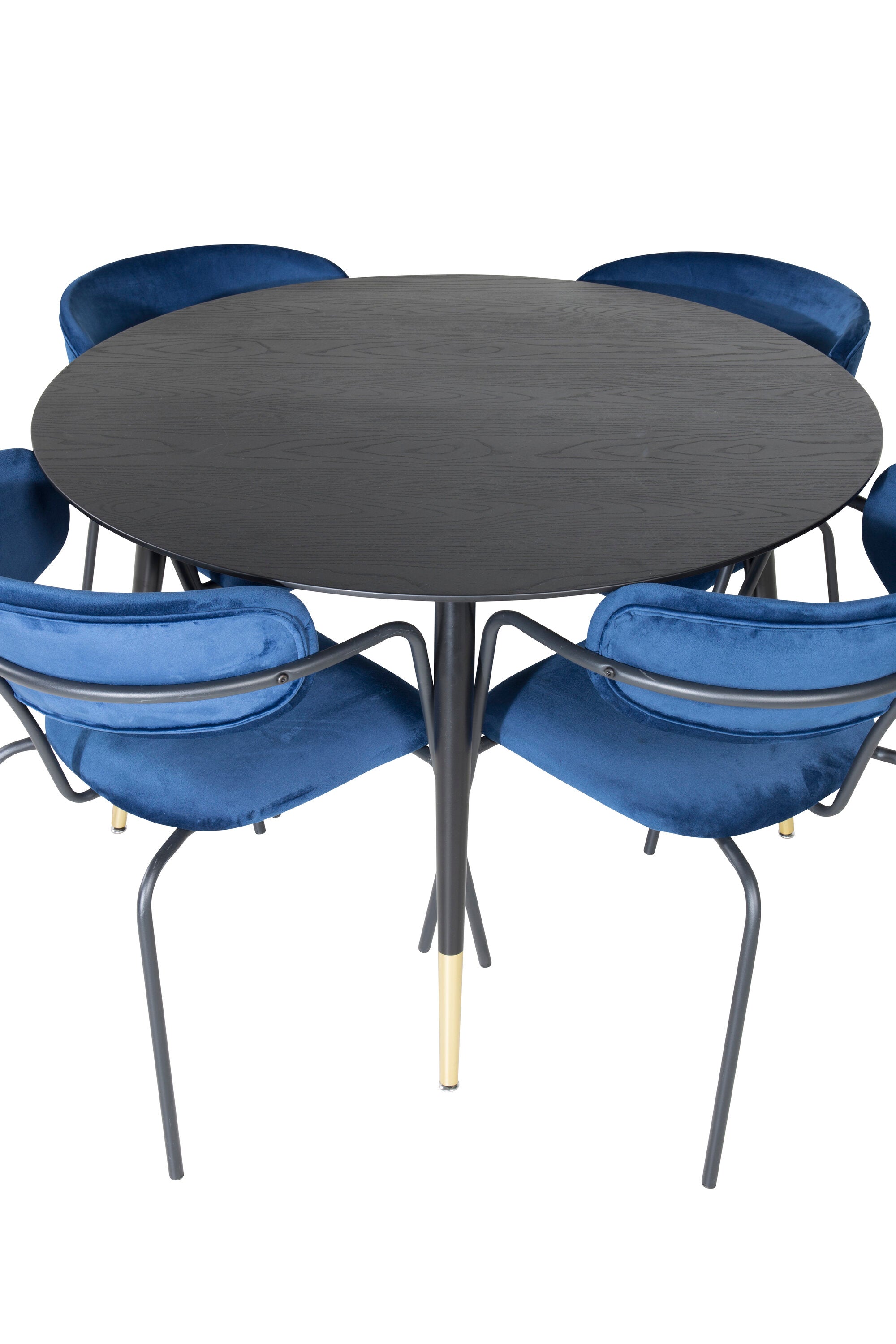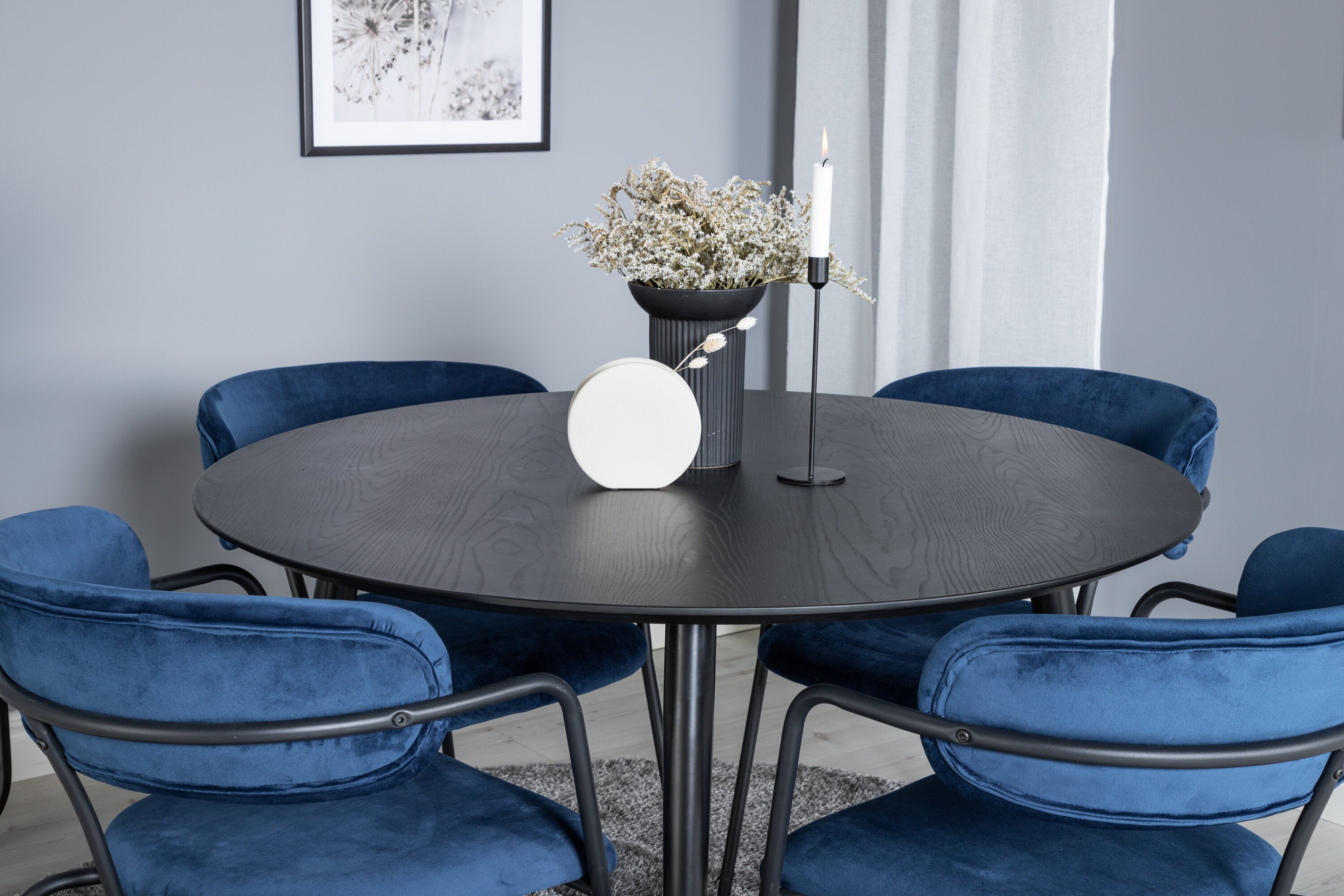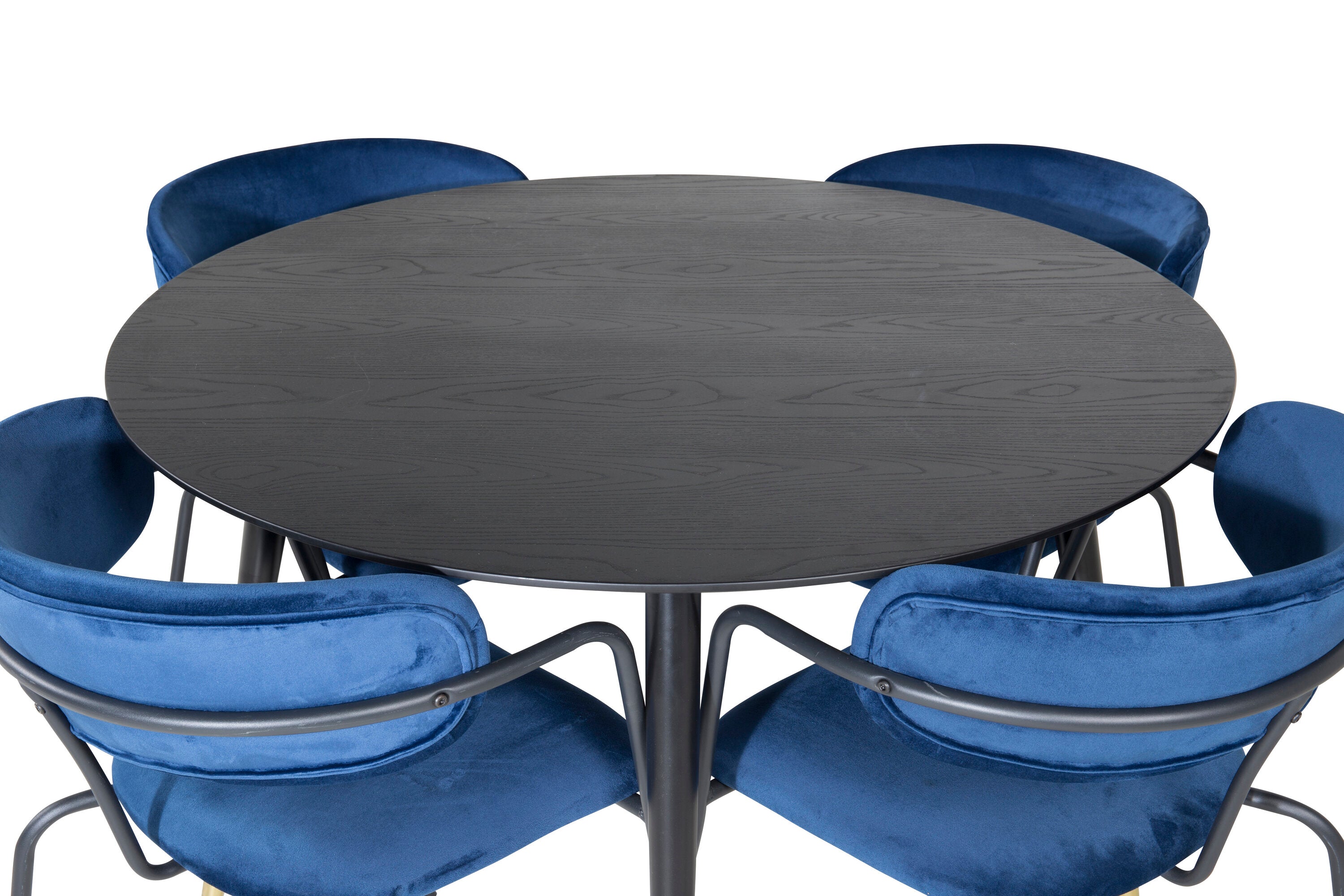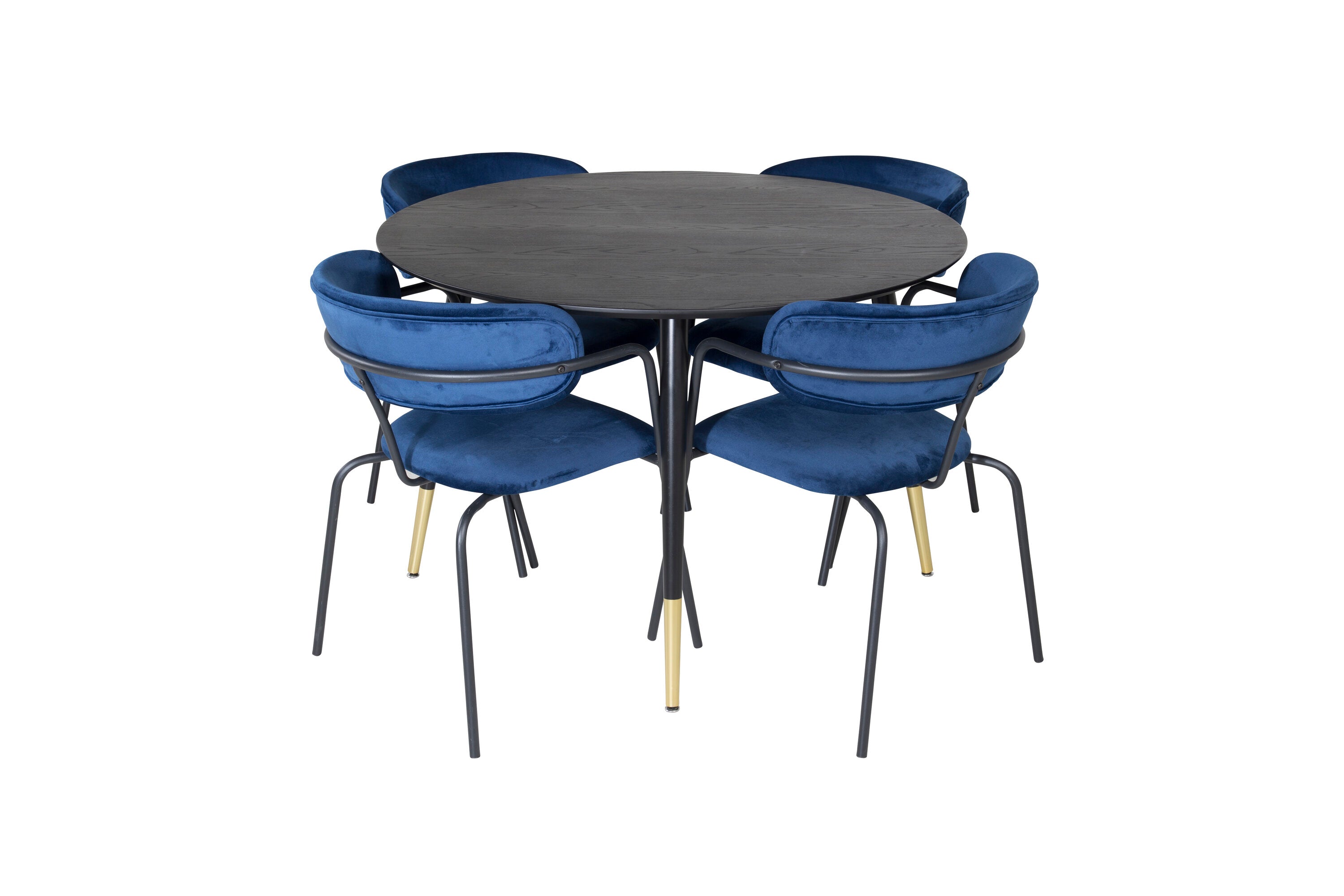 Jídelní stůl Dipp - 115 cm - Černá / Černá mosaz + křeslo Arrow - Černé nohy - Blue Velvet_4