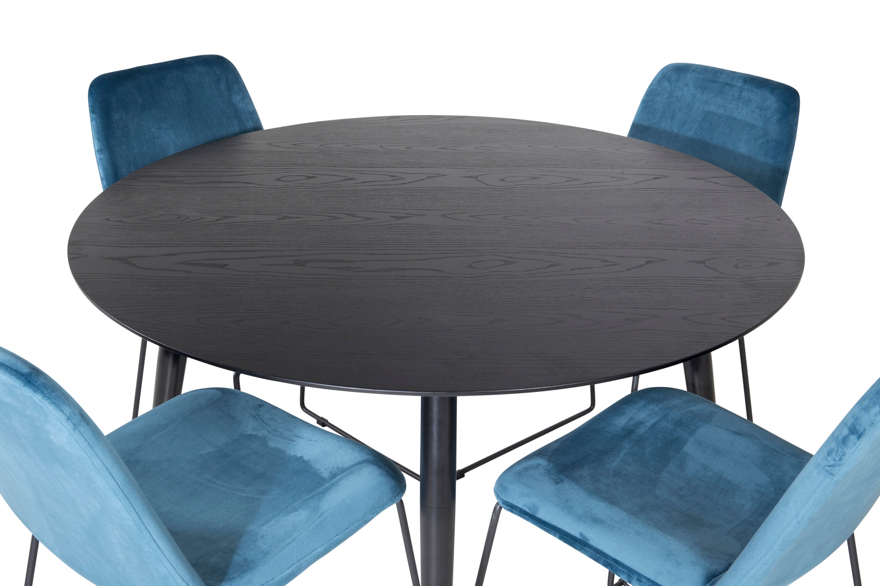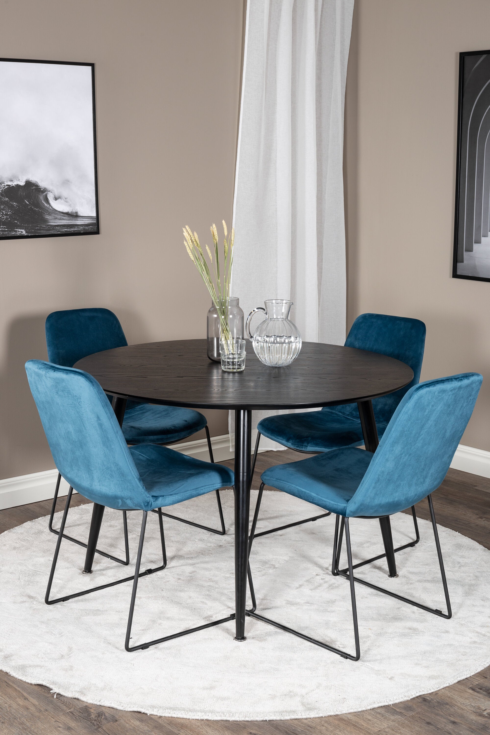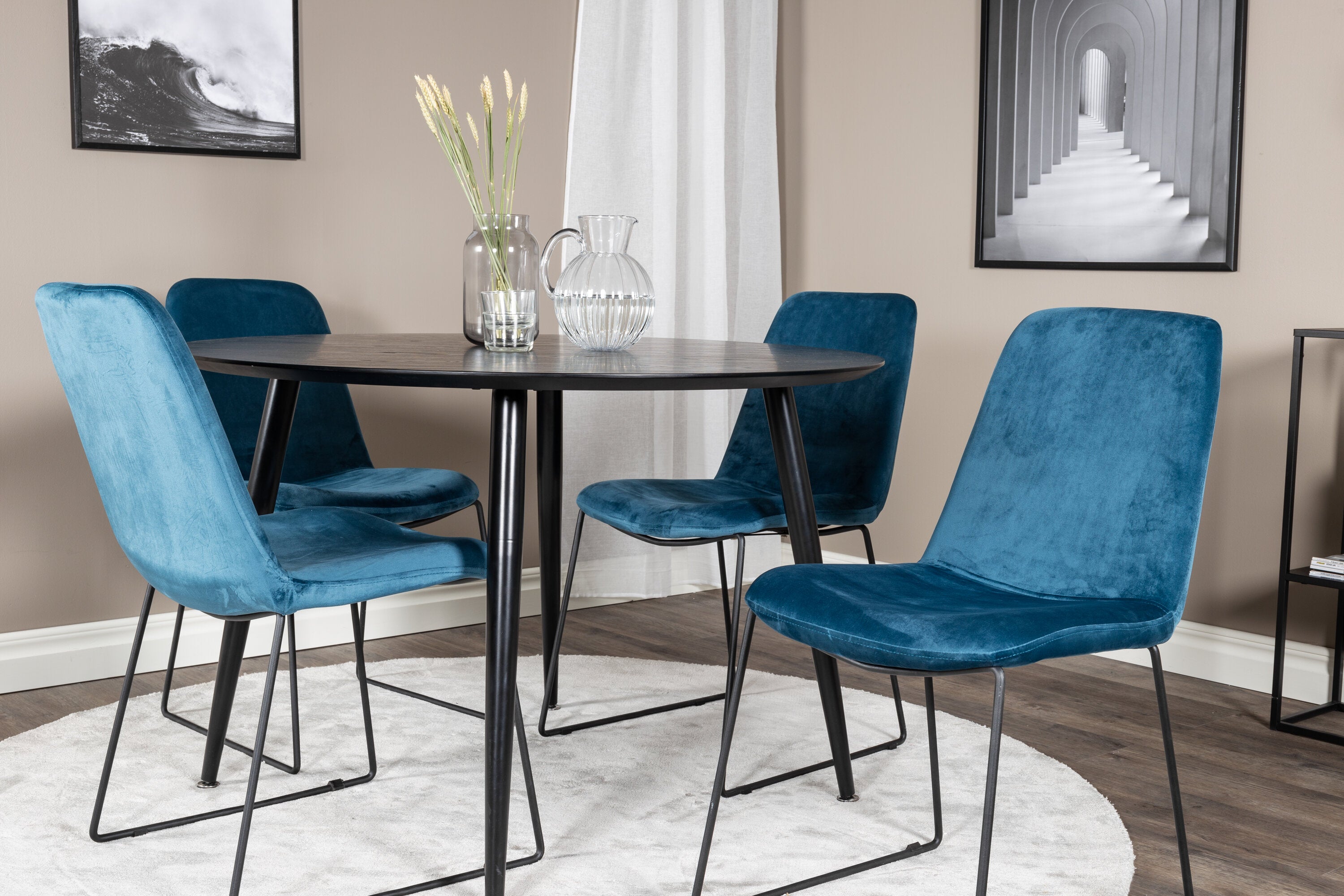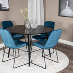 Jídelní stůl Dipp - 115 cm - Černá dýha / Celé černé nohy + Jídelní židle Muce - Černé nohy - Blue Velvet_4