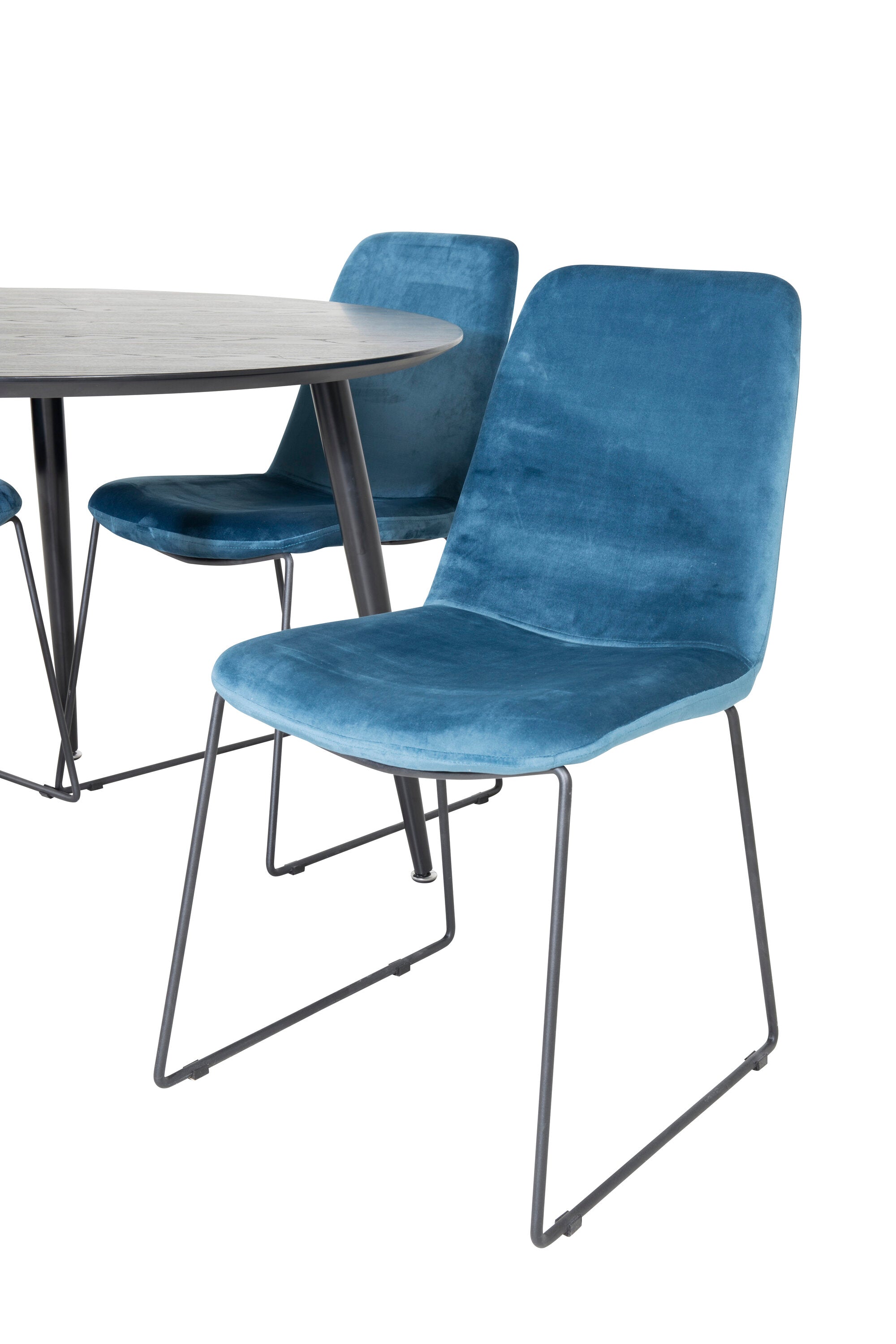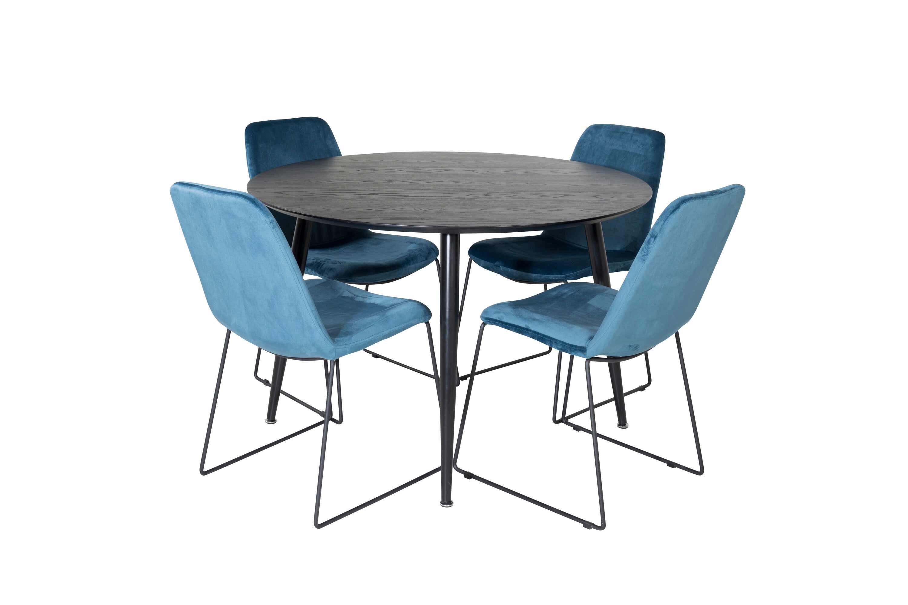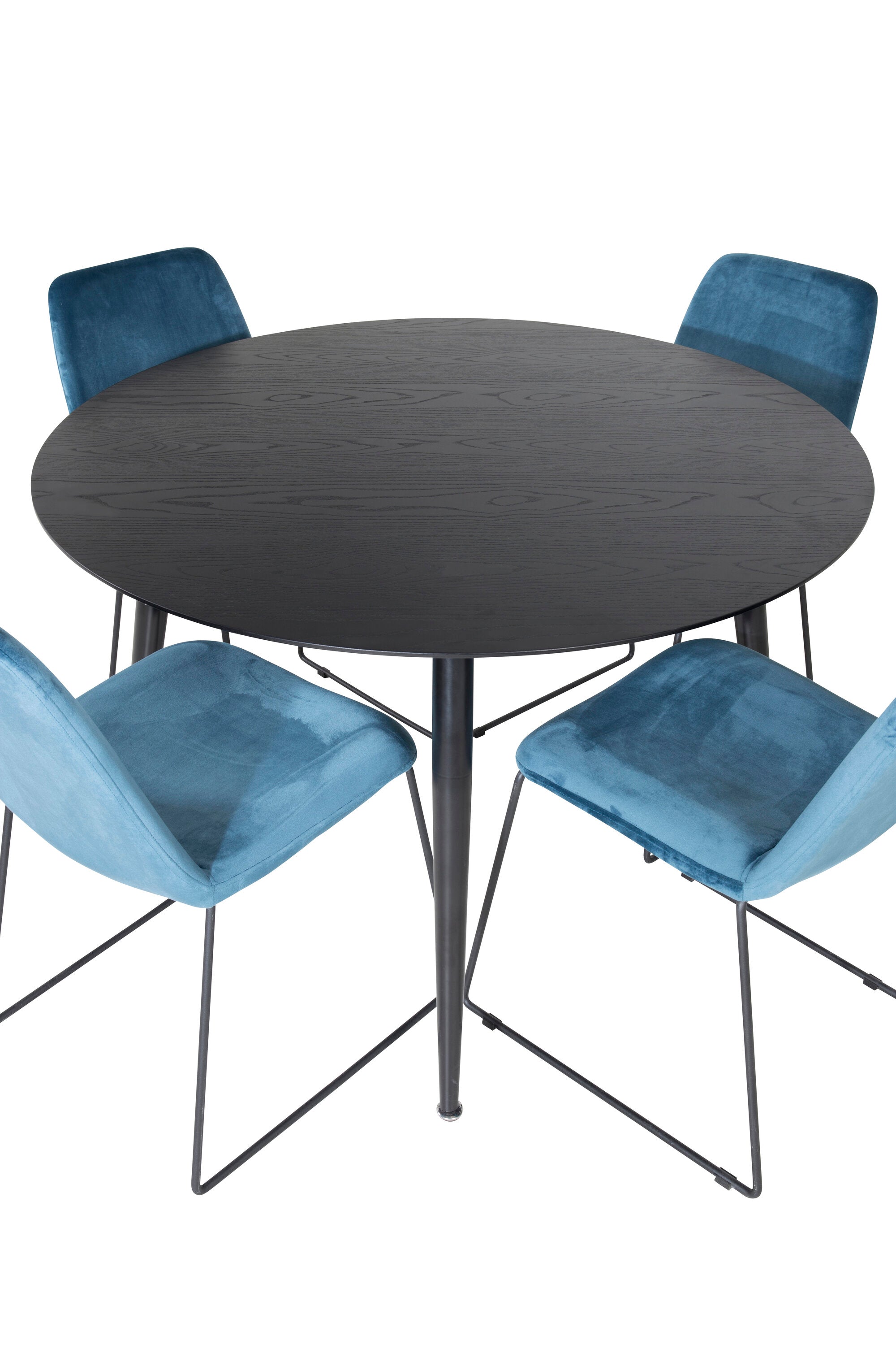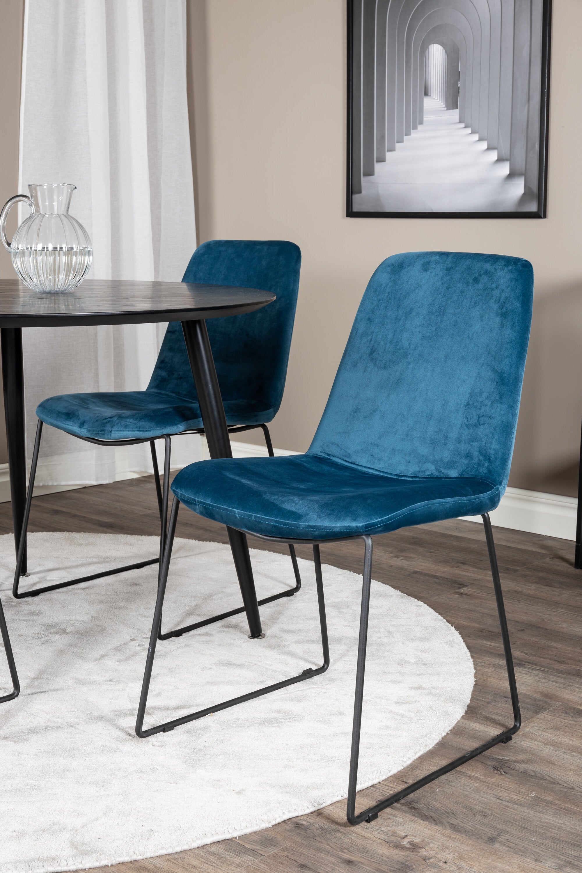 Jídelní stůl Dipp - 115 cm - Černá dýha / Celé černé nohy + Jídelní židle Muce - Černé nohy - Blue Velvet_4