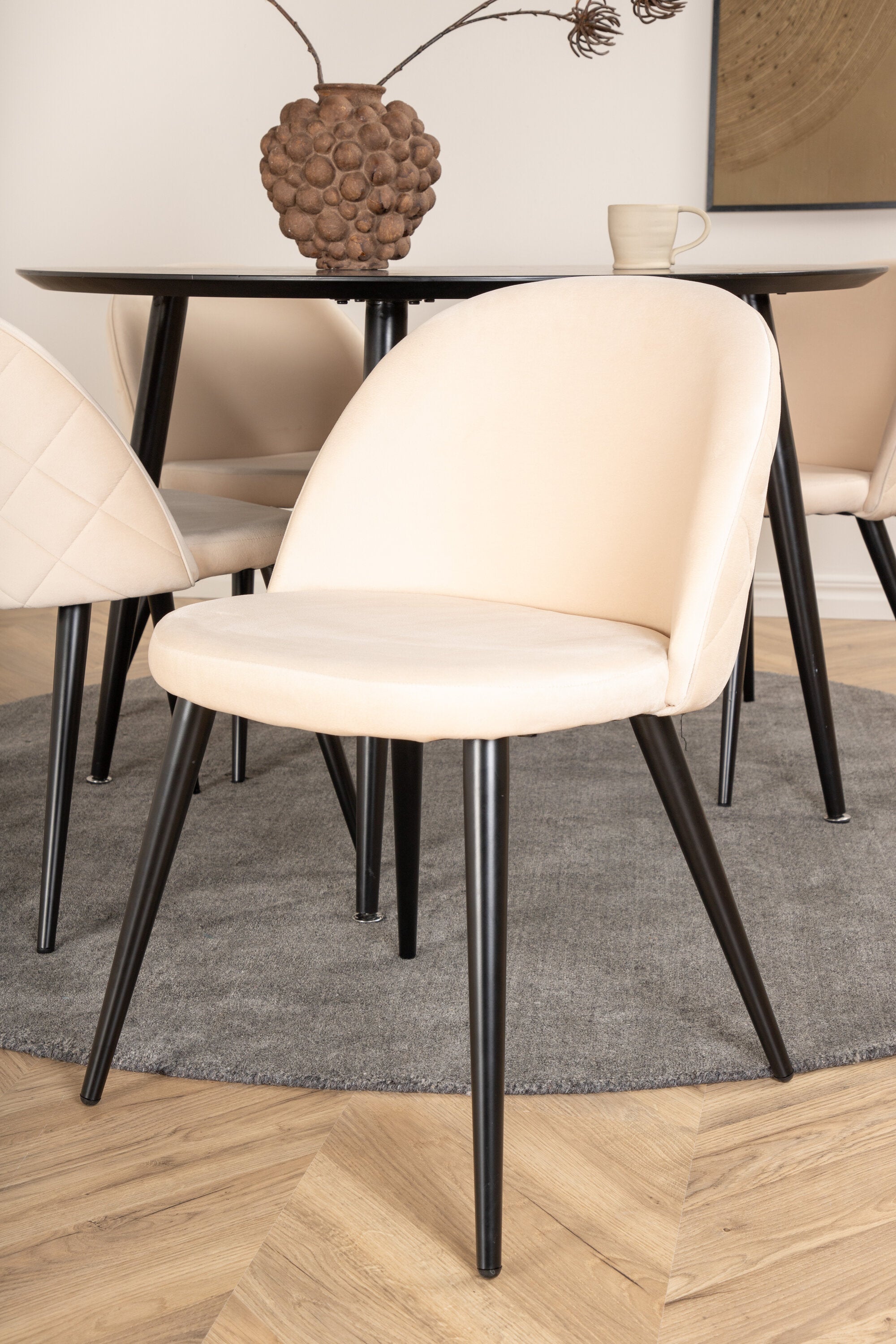 Jídelní stůl Dipp - 115 cm - Černá dýha / Celé černé nohy + Židle Velvet Stitches - Černá / Béžová Velvet_4