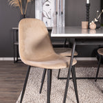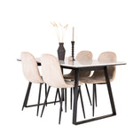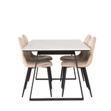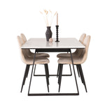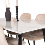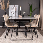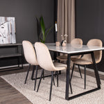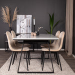 Jídelní stůl Estelle 140*90 – bílý mramor / černé nohy+jídelní židle Polar – černé nohy / béžový samet_4