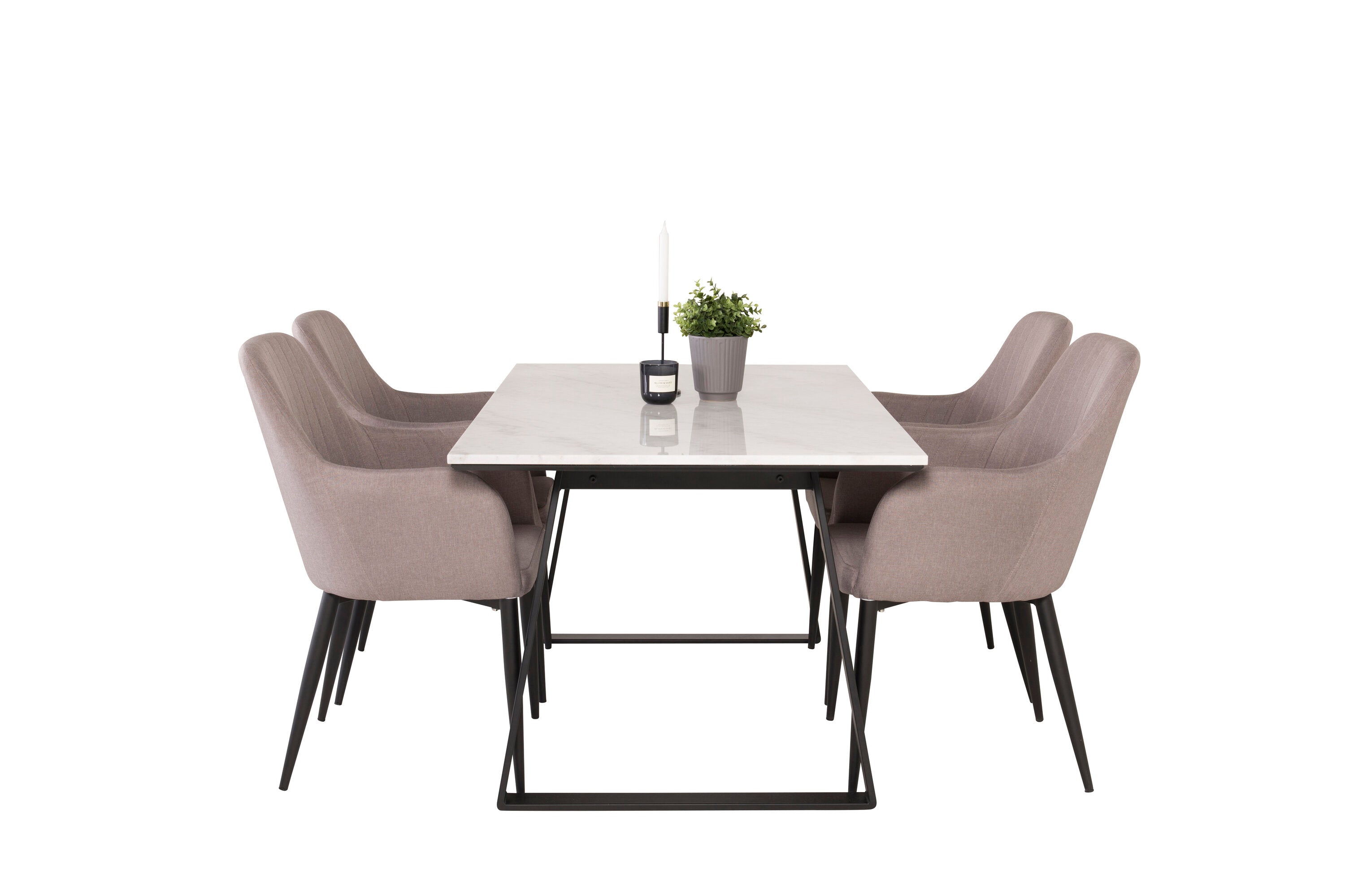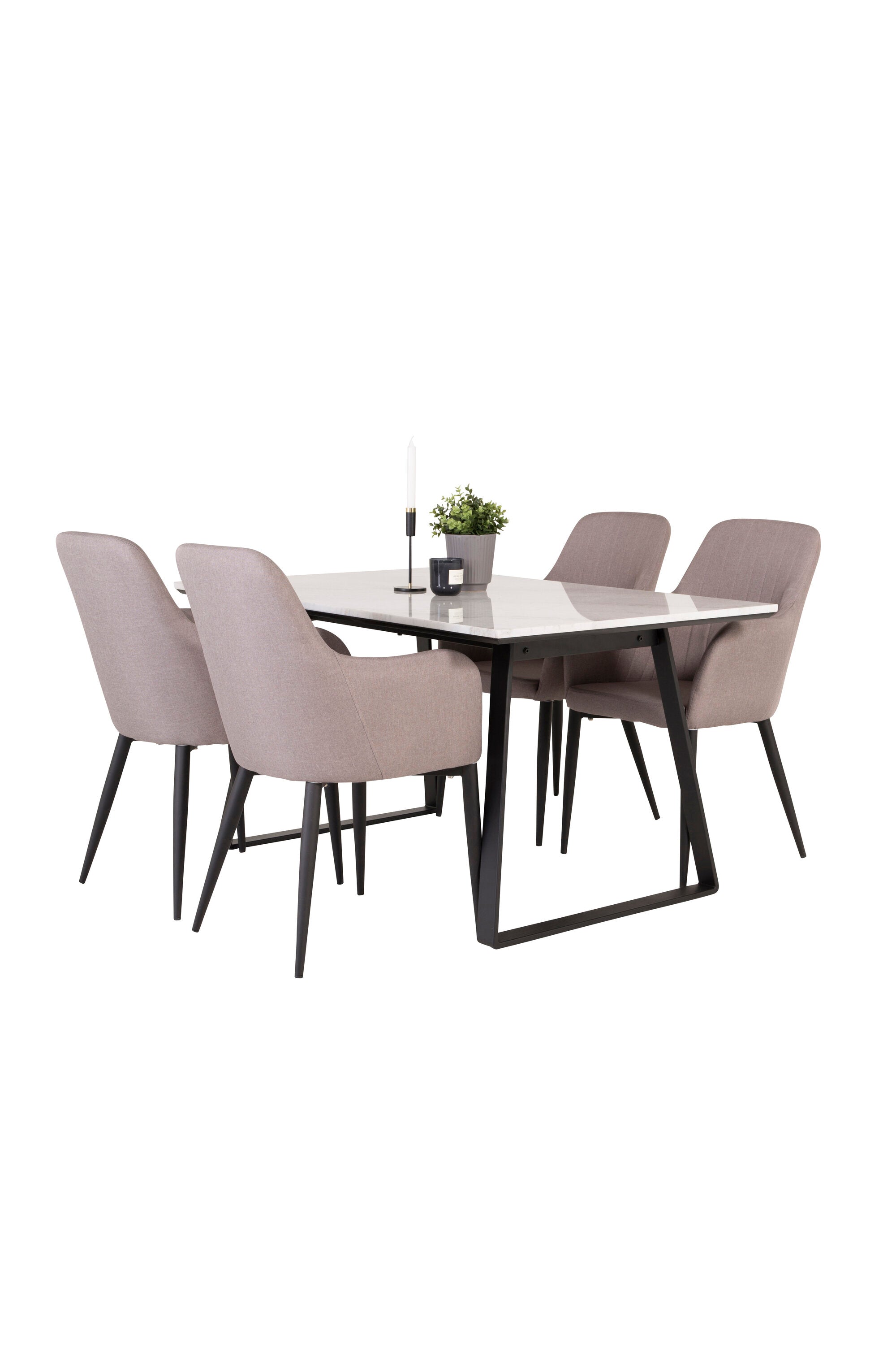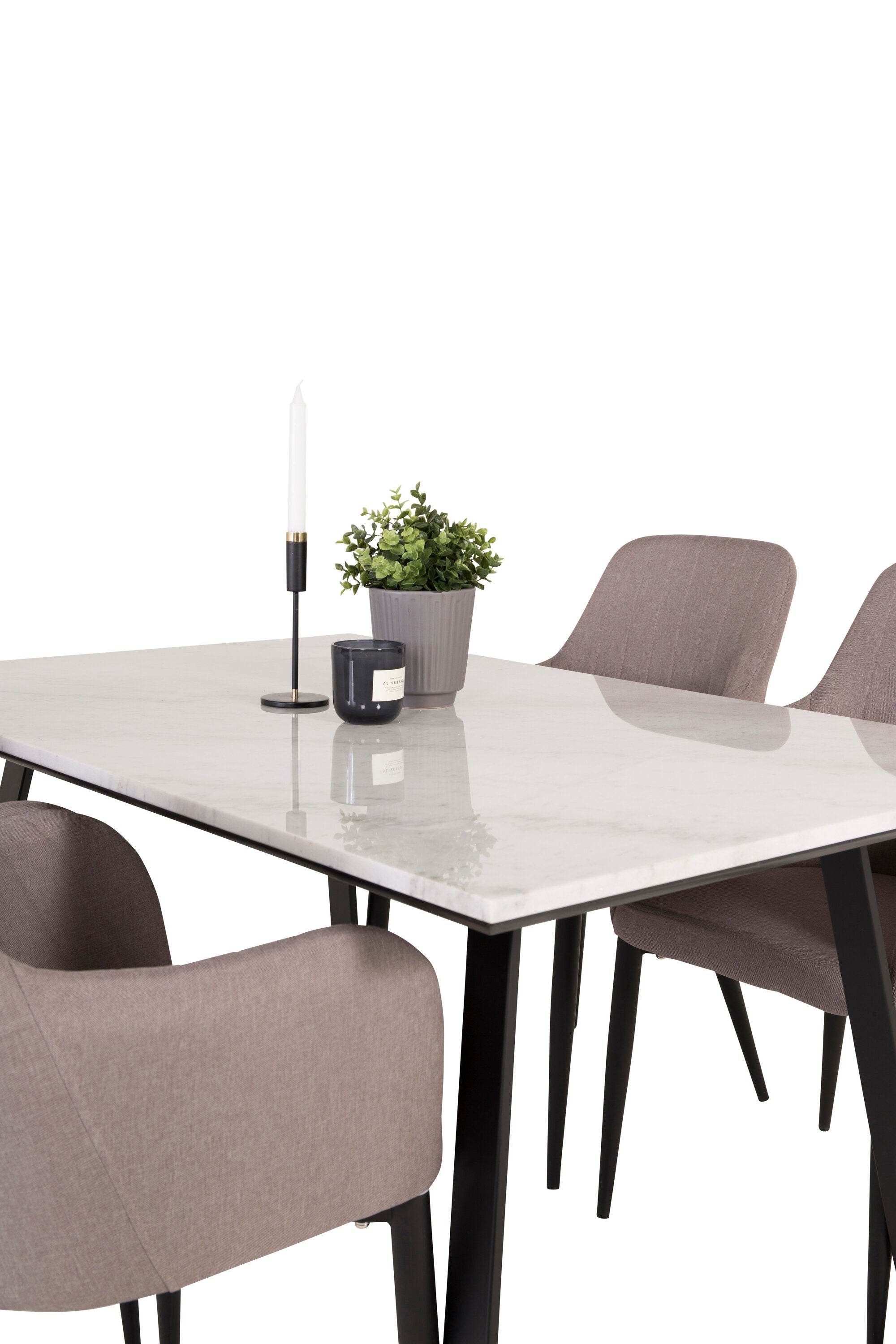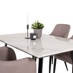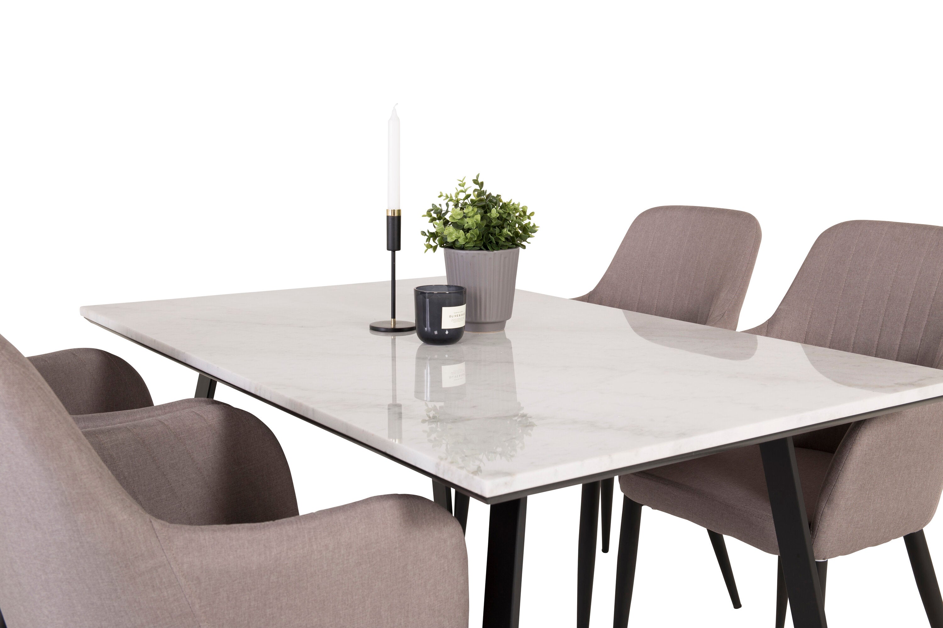 Jídelní stůl Estelle 140*90 – bílý mramor / černé nohy + pohodlná židle Polar šedá – černé nohy _4