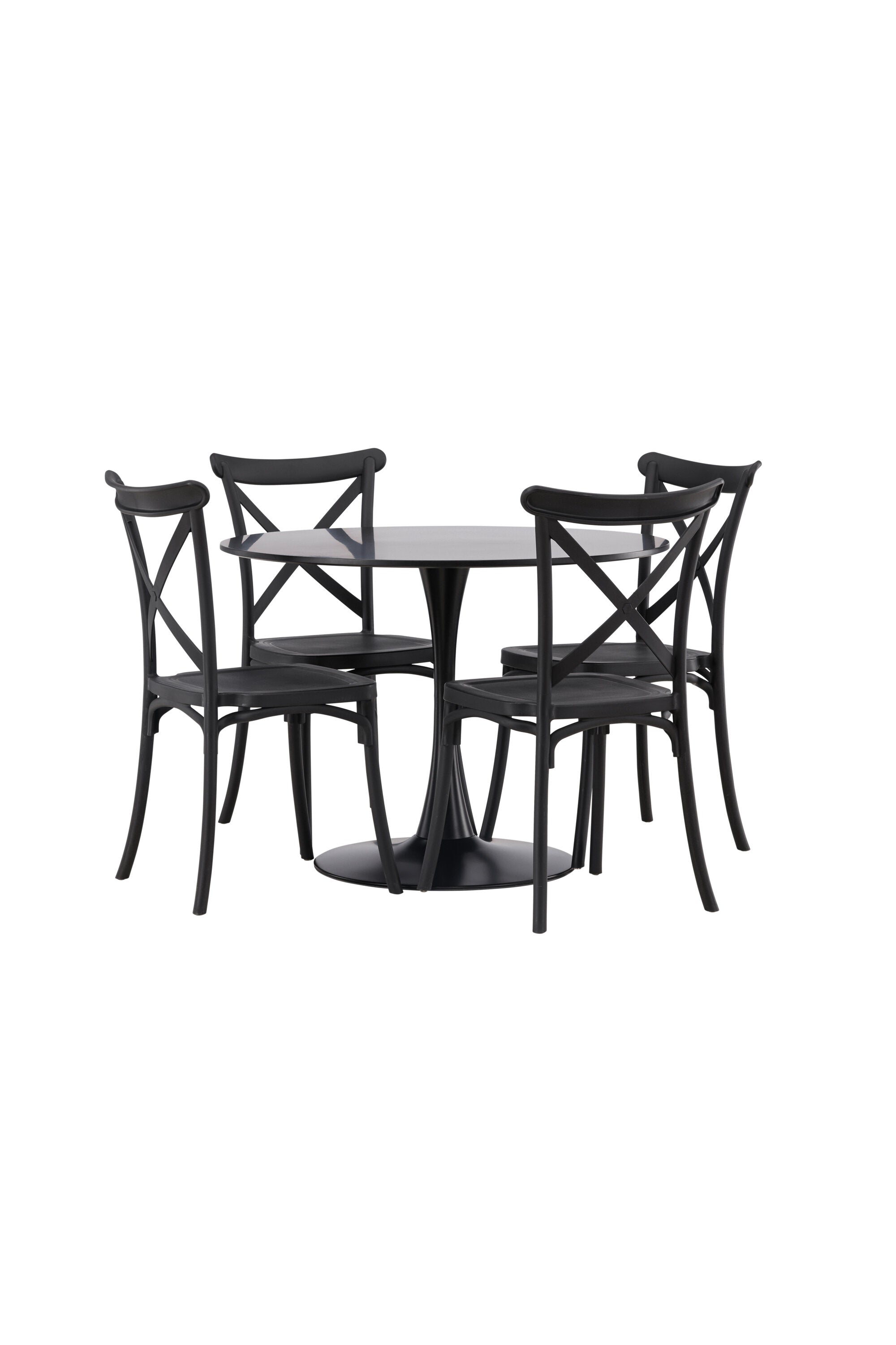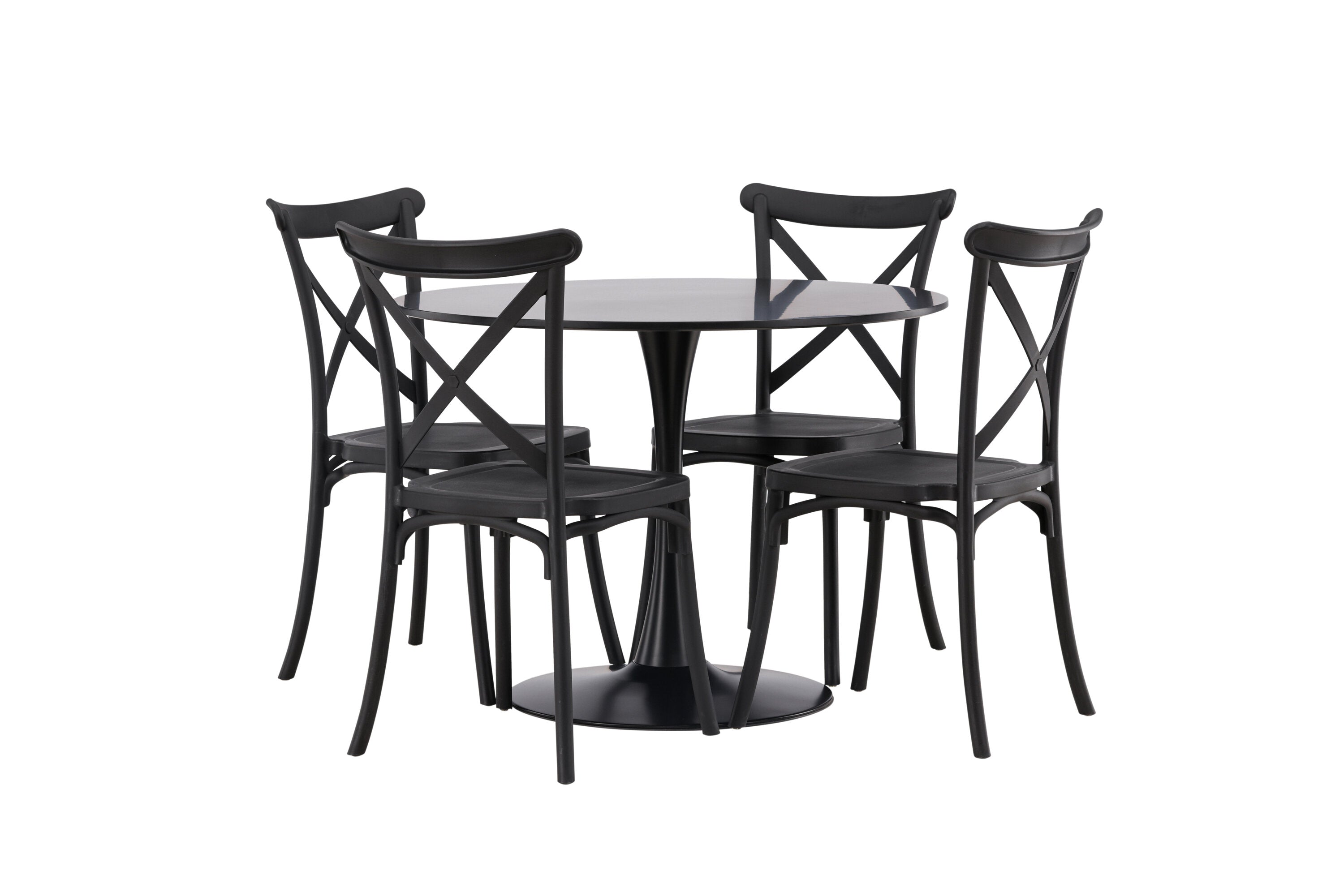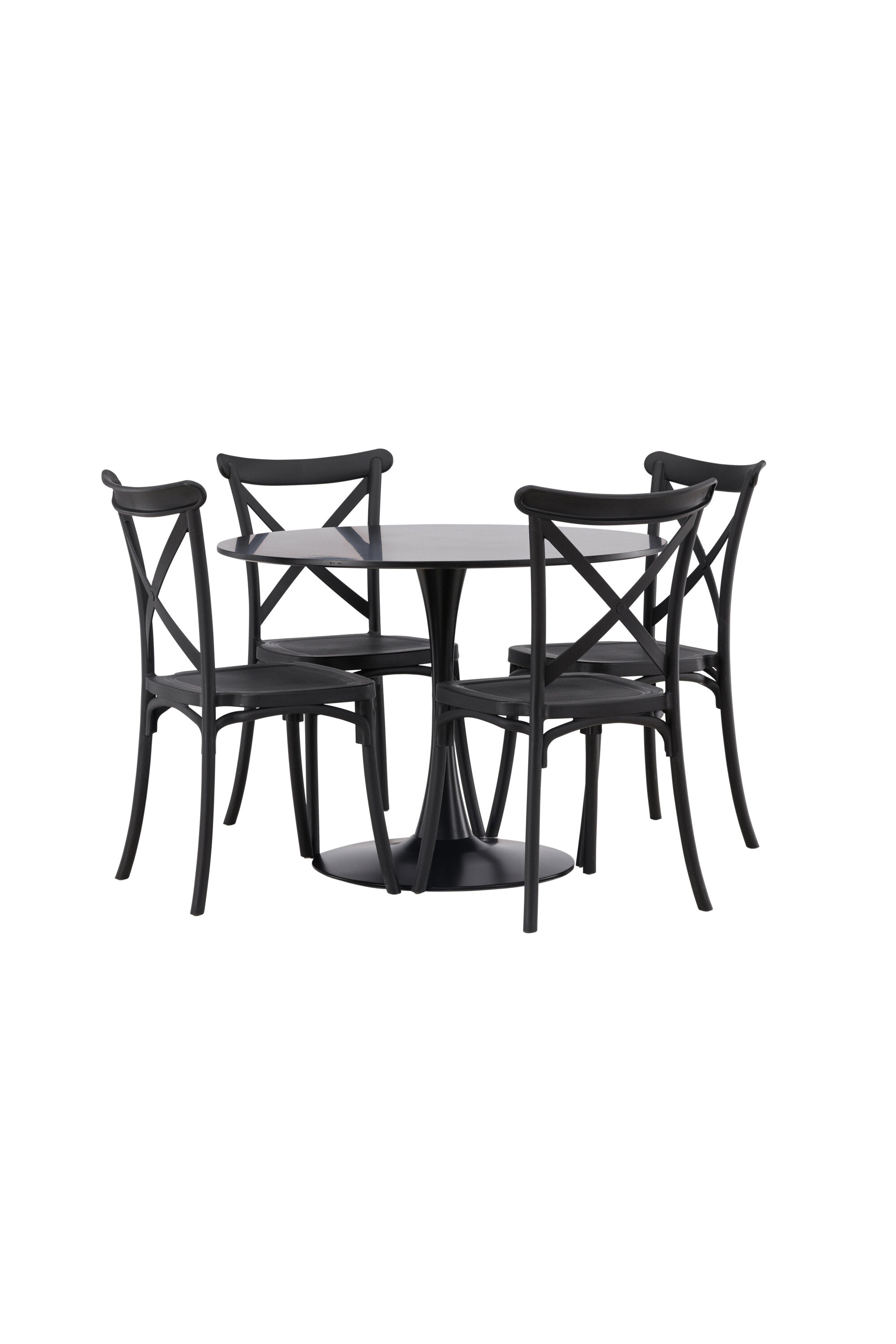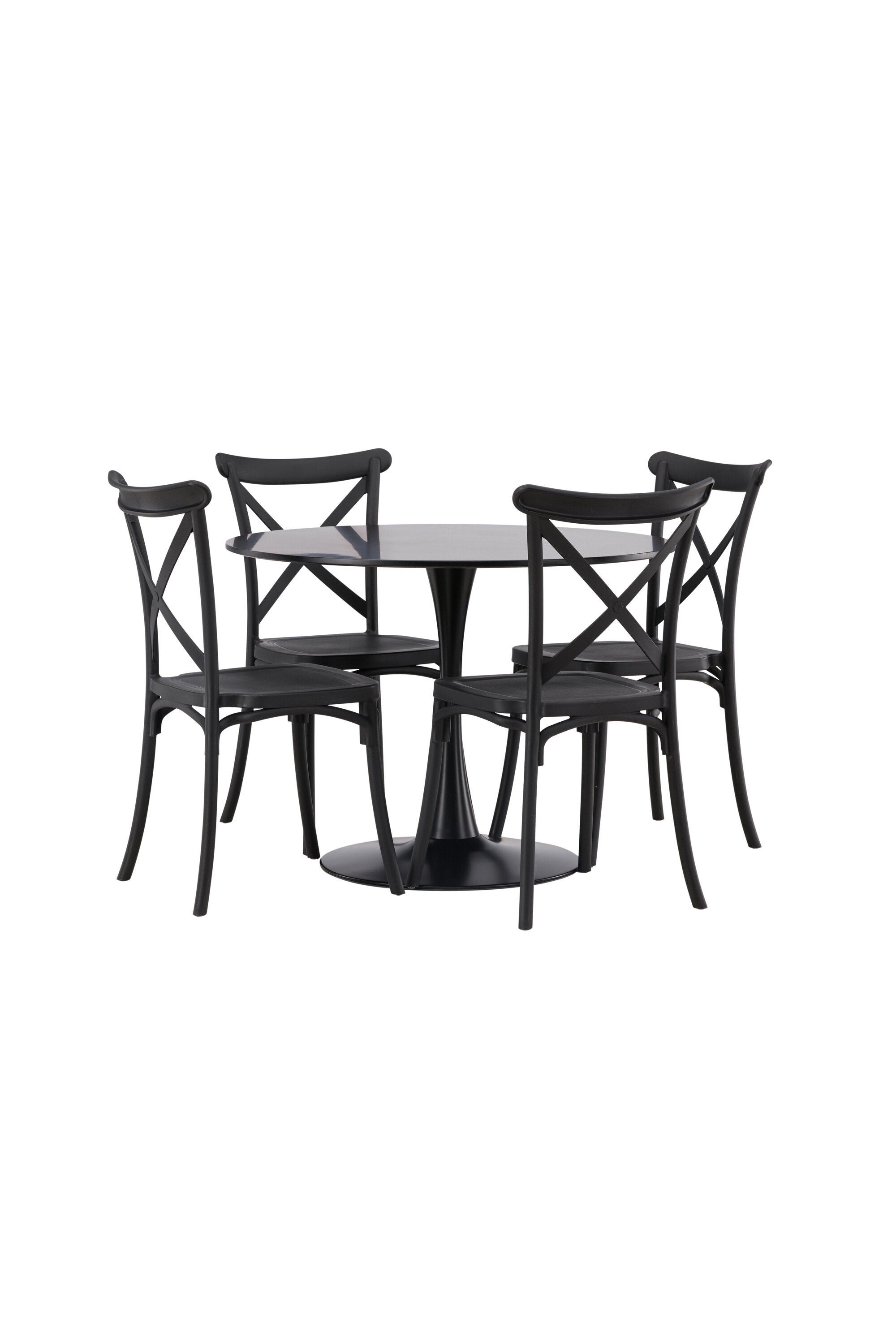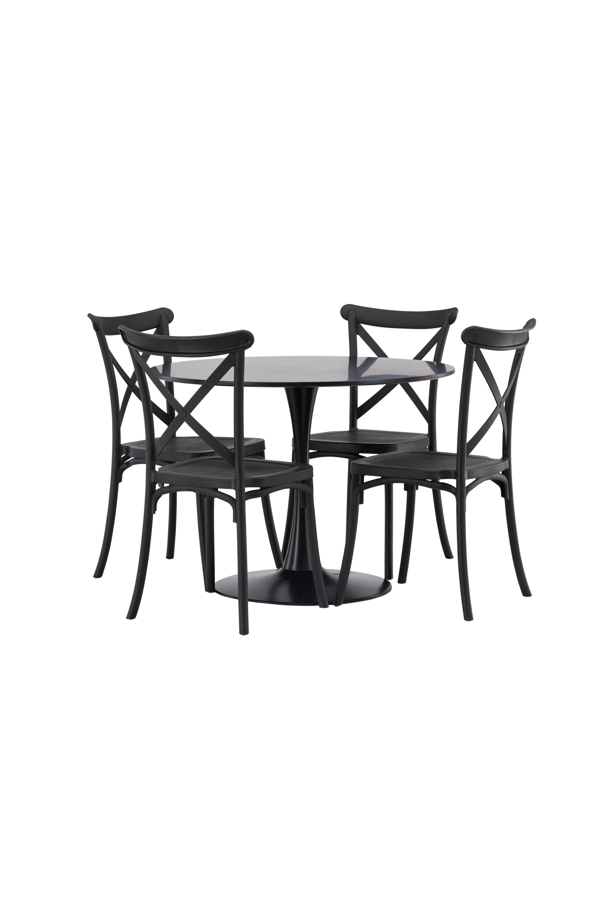 Udělejte chvíle stolování o něco velkolepější! Jídelní stůl Glade má stylový skandinávský design se štíhlou trumpetovou nohou z černé oceli a černou desku stolu z MDF. Zde spolu s černými jídelními židlemi ze série Crosett. Židle je důsledně vyrobena z praktického materiálu plast a má matnou černou barvu, která obstojí ve zkoušce času. Kruhová jídelní skupina je také ideální pro vytvoření společenské a příjemné atmosféry v místnosti! Rozměry stolu: 100 cm.