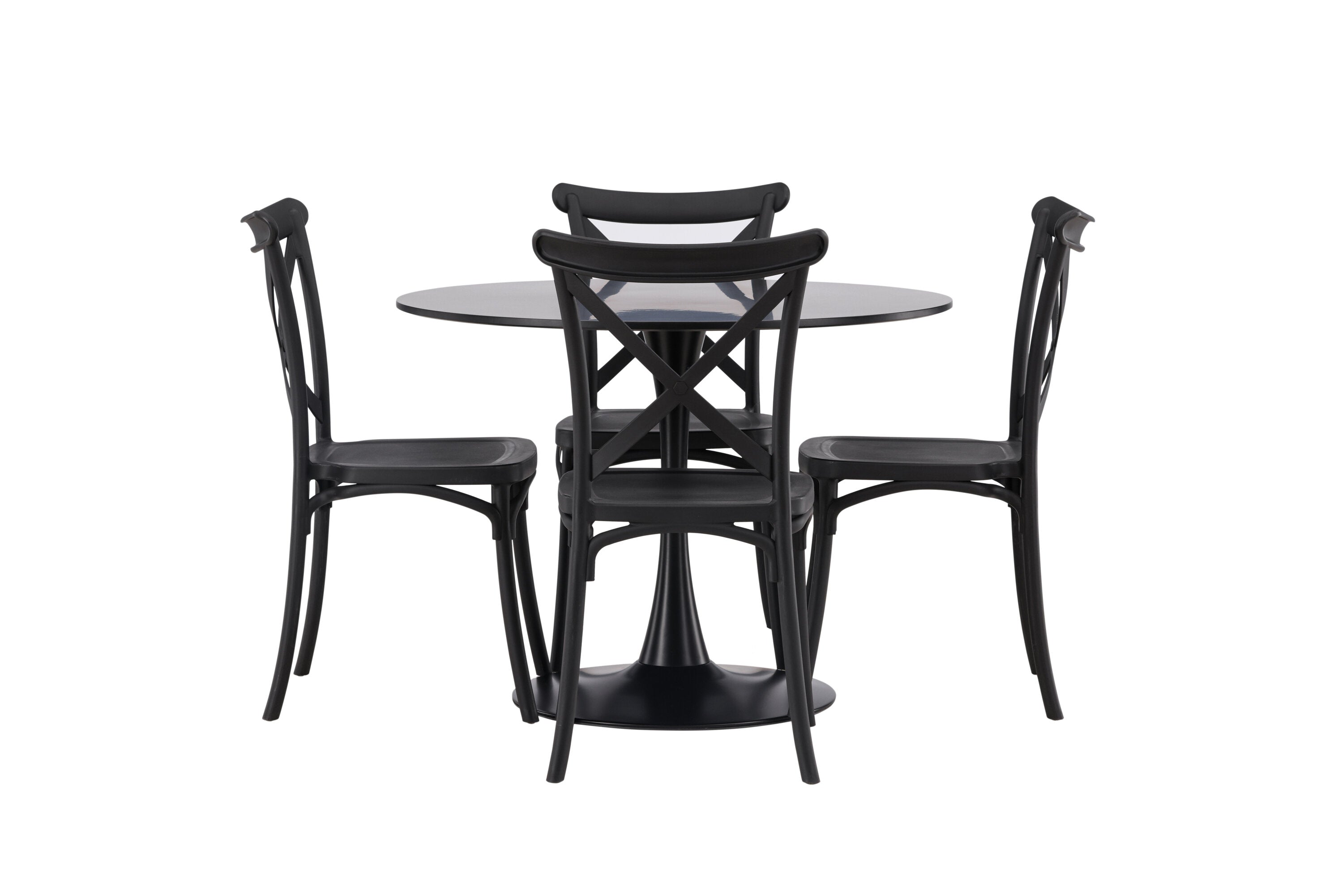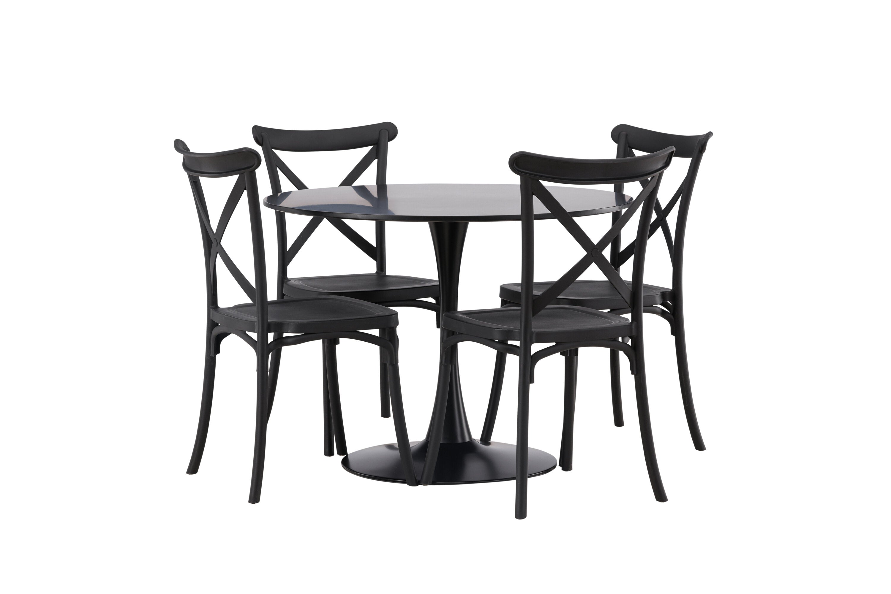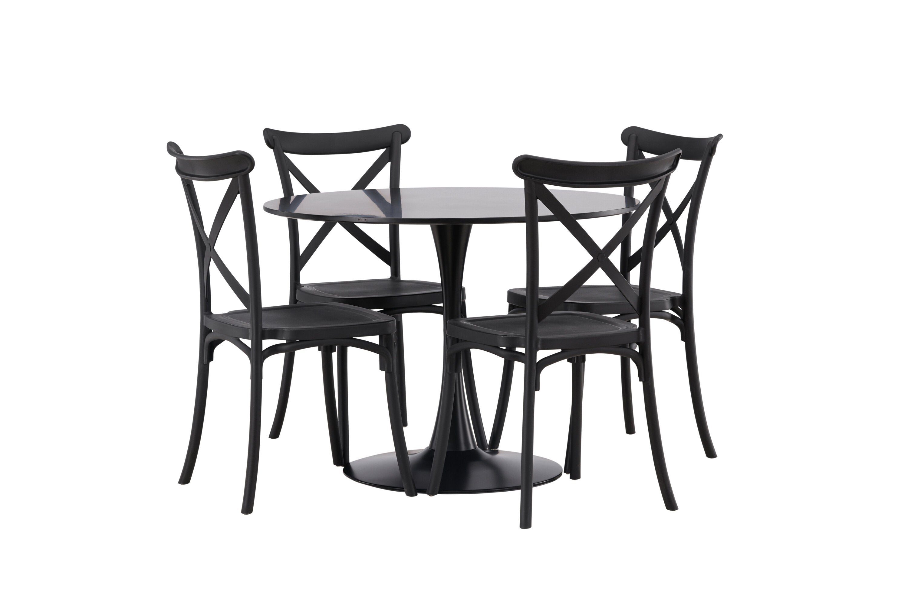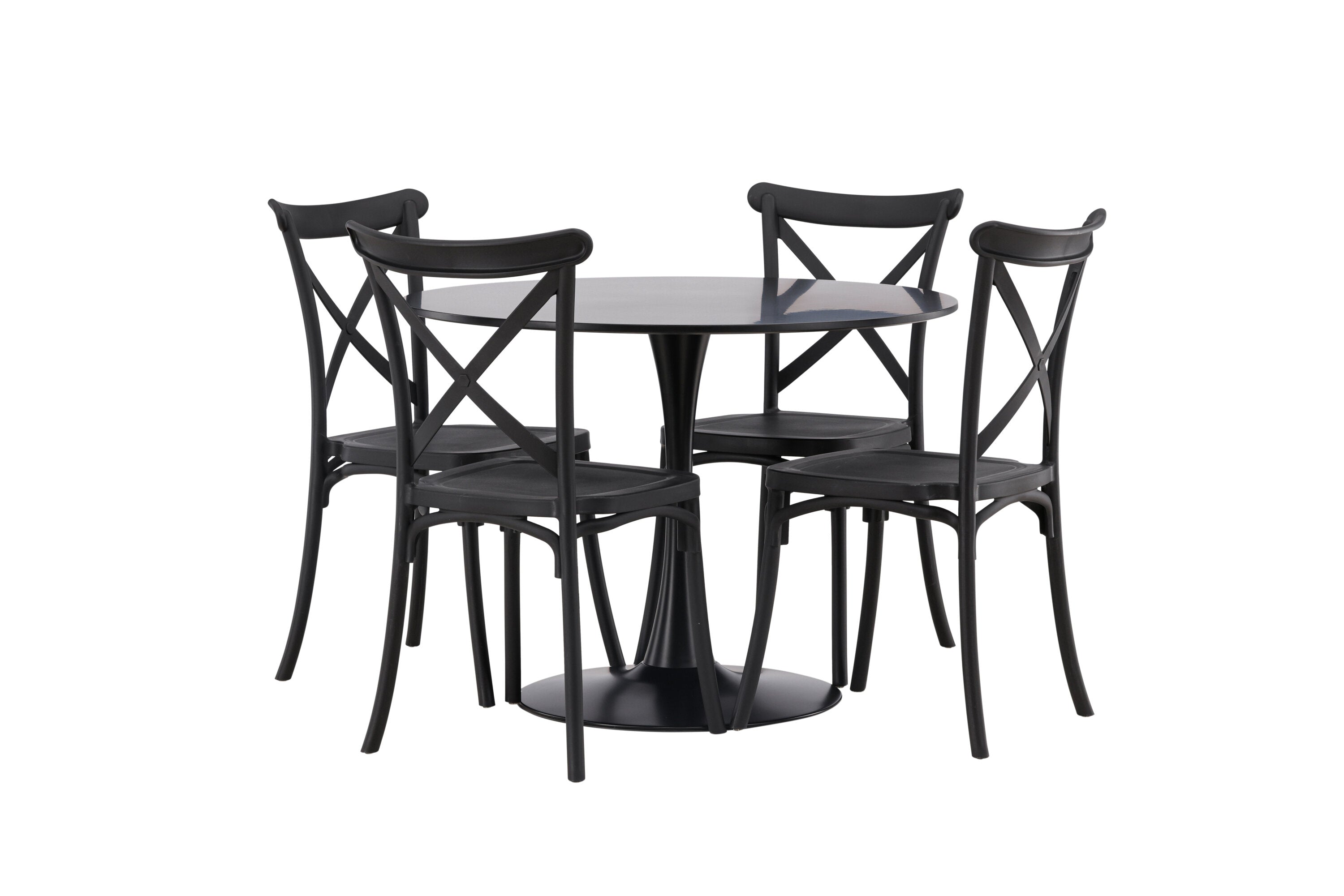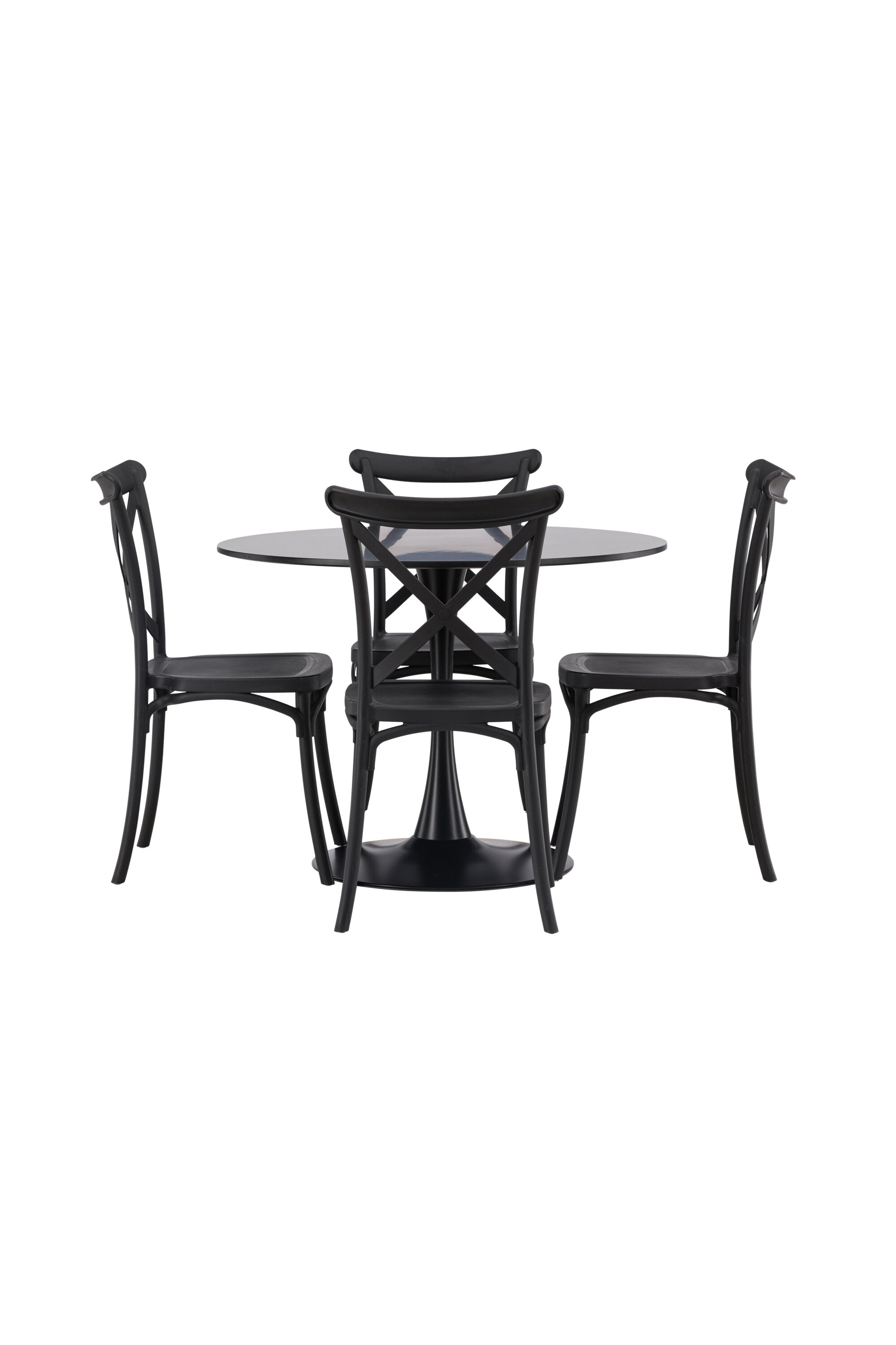 Udělejte chvíle stolování o něco velkolepější! Jídelní stůl Glade má stylový skandinávský design se štíhlou trumpetovou nohou z černé oceli a černou desku stolu z MDF. Zde spolu s černými jídelními židlemi ze série Crosett. Židle je důsledně vyrobena z praktického materiálu plast a má matnou černou barvu, která obstojí ve zkoušce času. Kruhová jídelní skupina je také ideální pro vytvoření společenské a příjemné atmosféry v místnosti! Rozměry stolu: 100 cm.