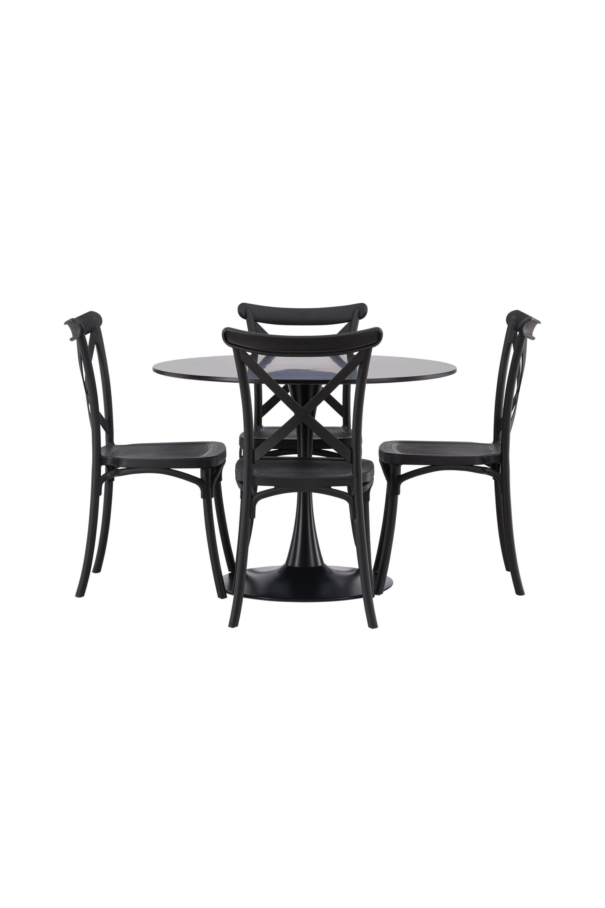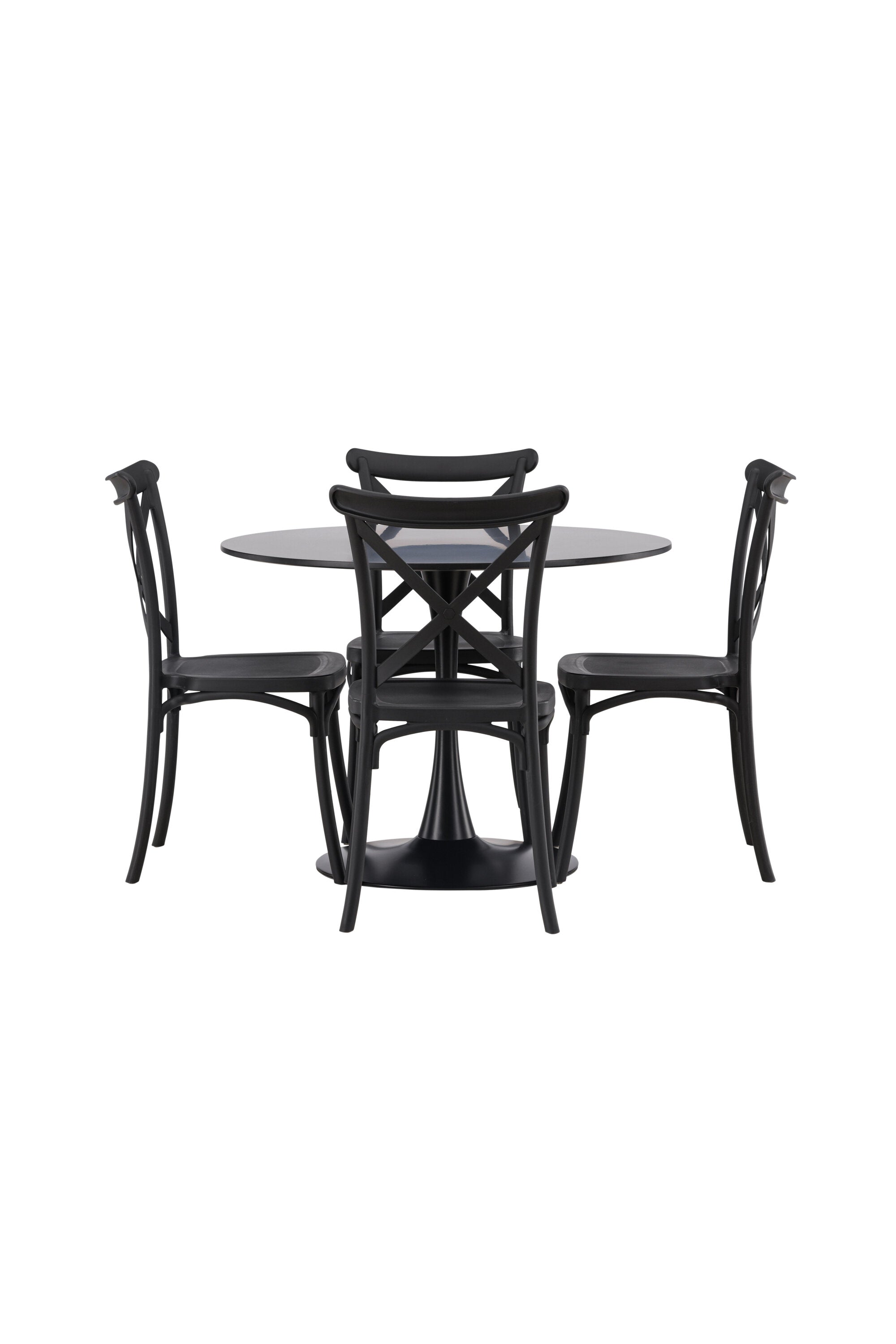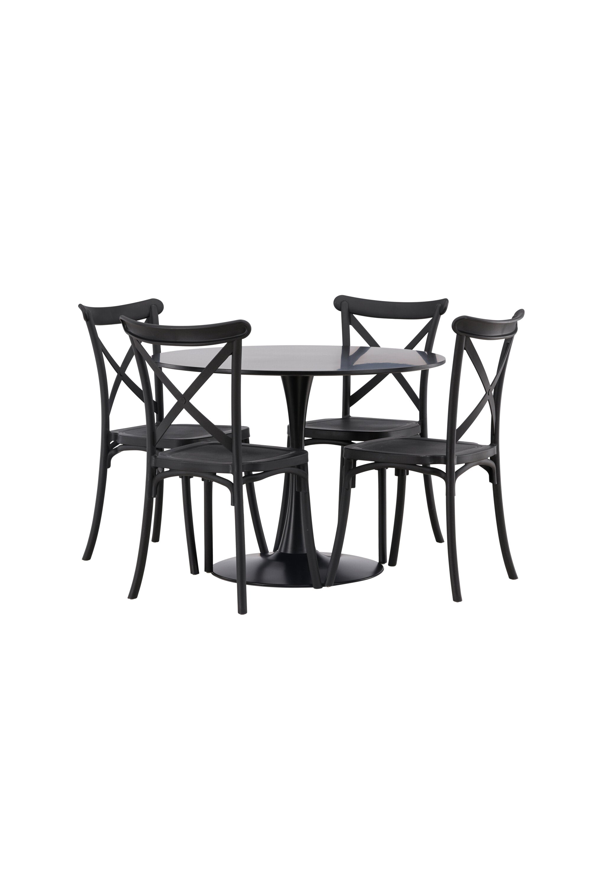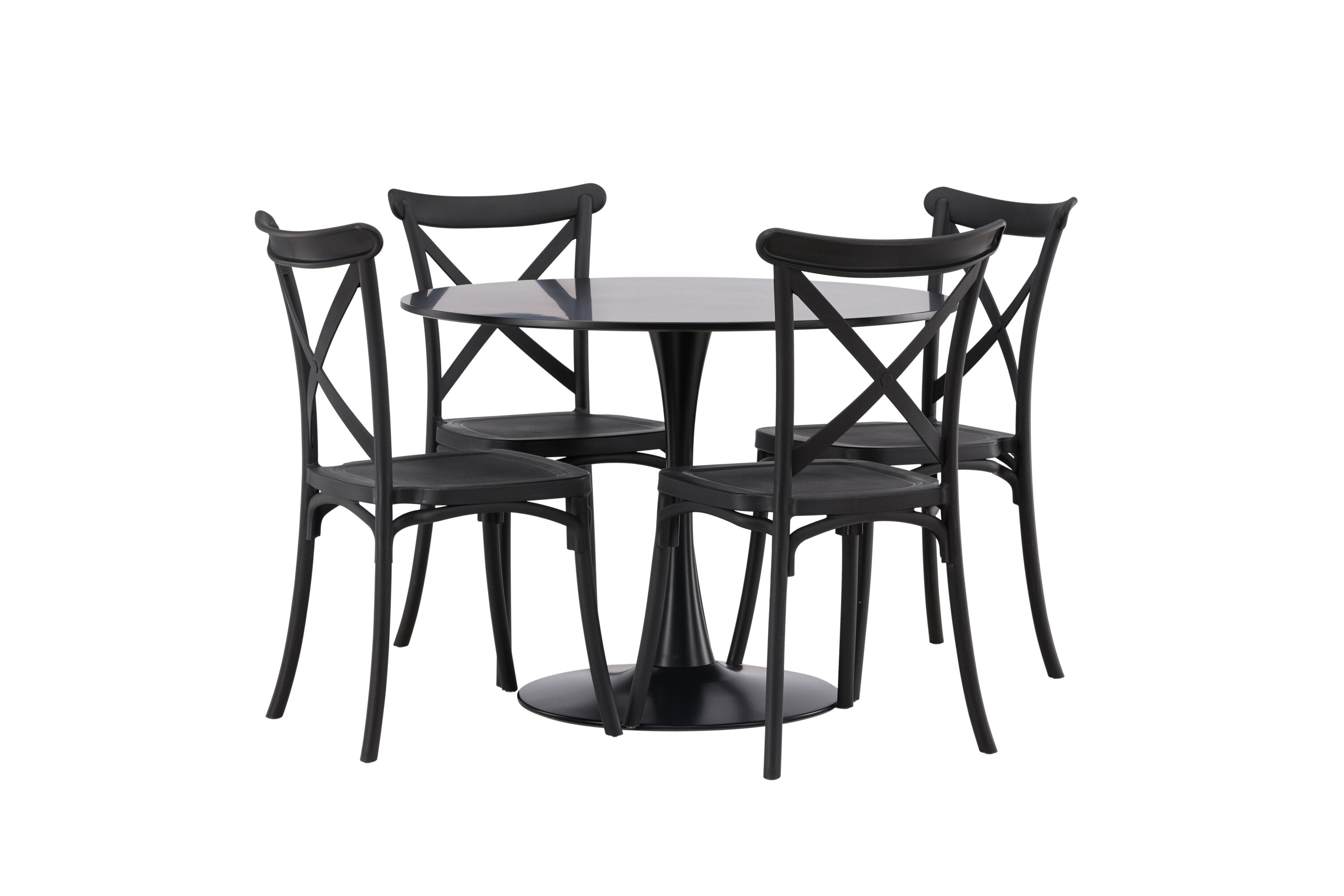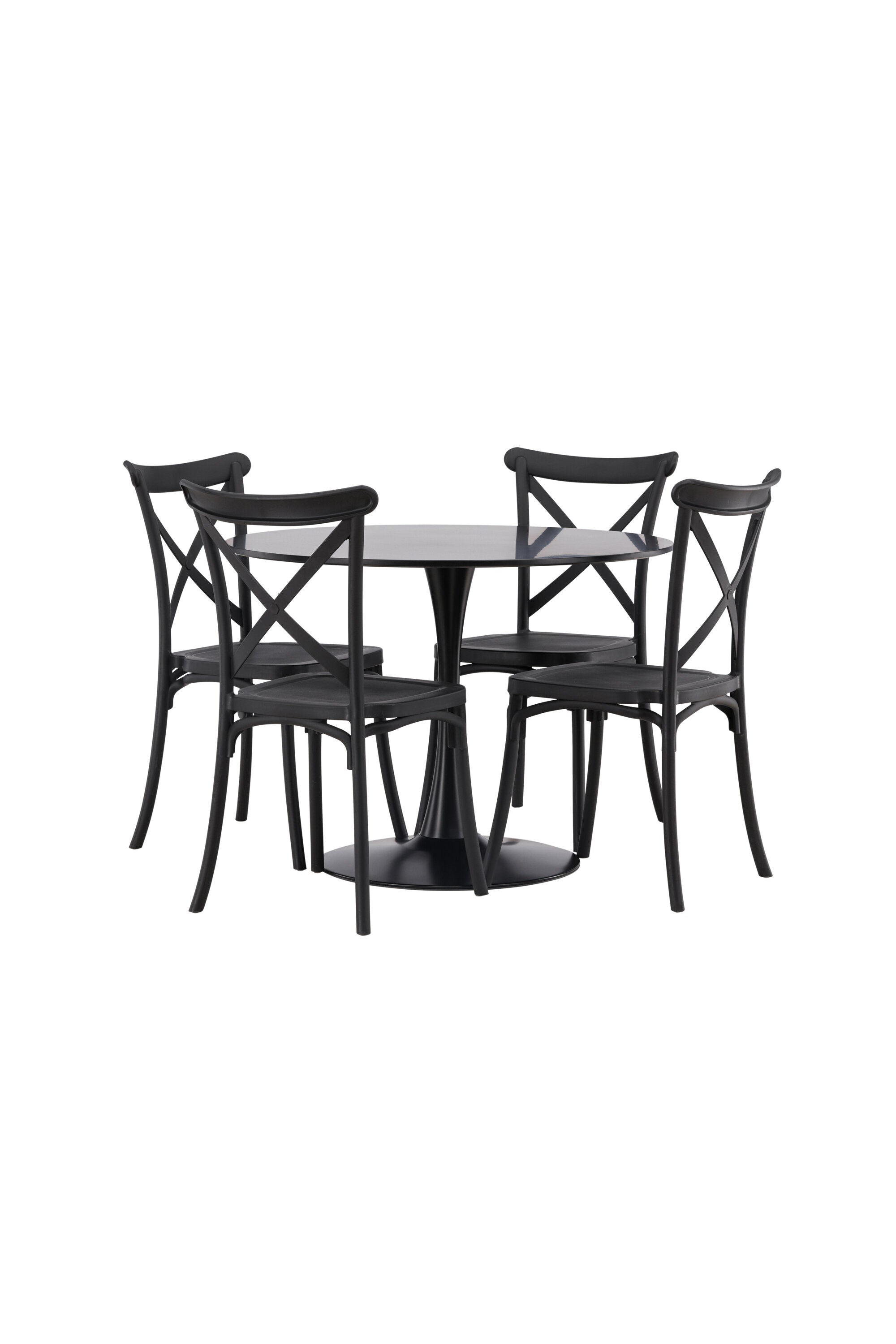 Udělejte chvíle stolování o něco velkolepější! Jídelní stůl Glade má stylový skandinávský design se štíhlou trumpetovou nohou z černé oceli a černou desku stolu z MDF. Zde spolu s černými jídelními židlemi ze série Crosett. Židle je důsledně vyrobena z praktického materiálu plast a má matnou černou barvu, která obstojí ve zkoušce času. Kruhová jídelní skupina je také ideální pro vytvoření společenské a příjemné atmosféry v místnosti! Rozměry stolu: 100 cm.