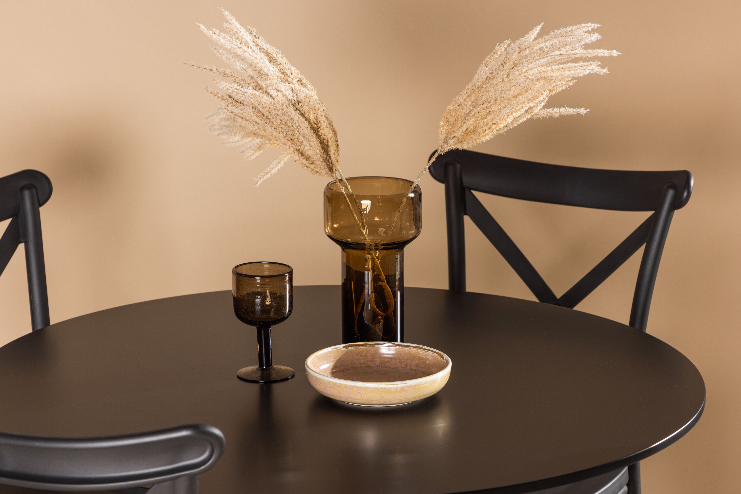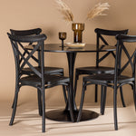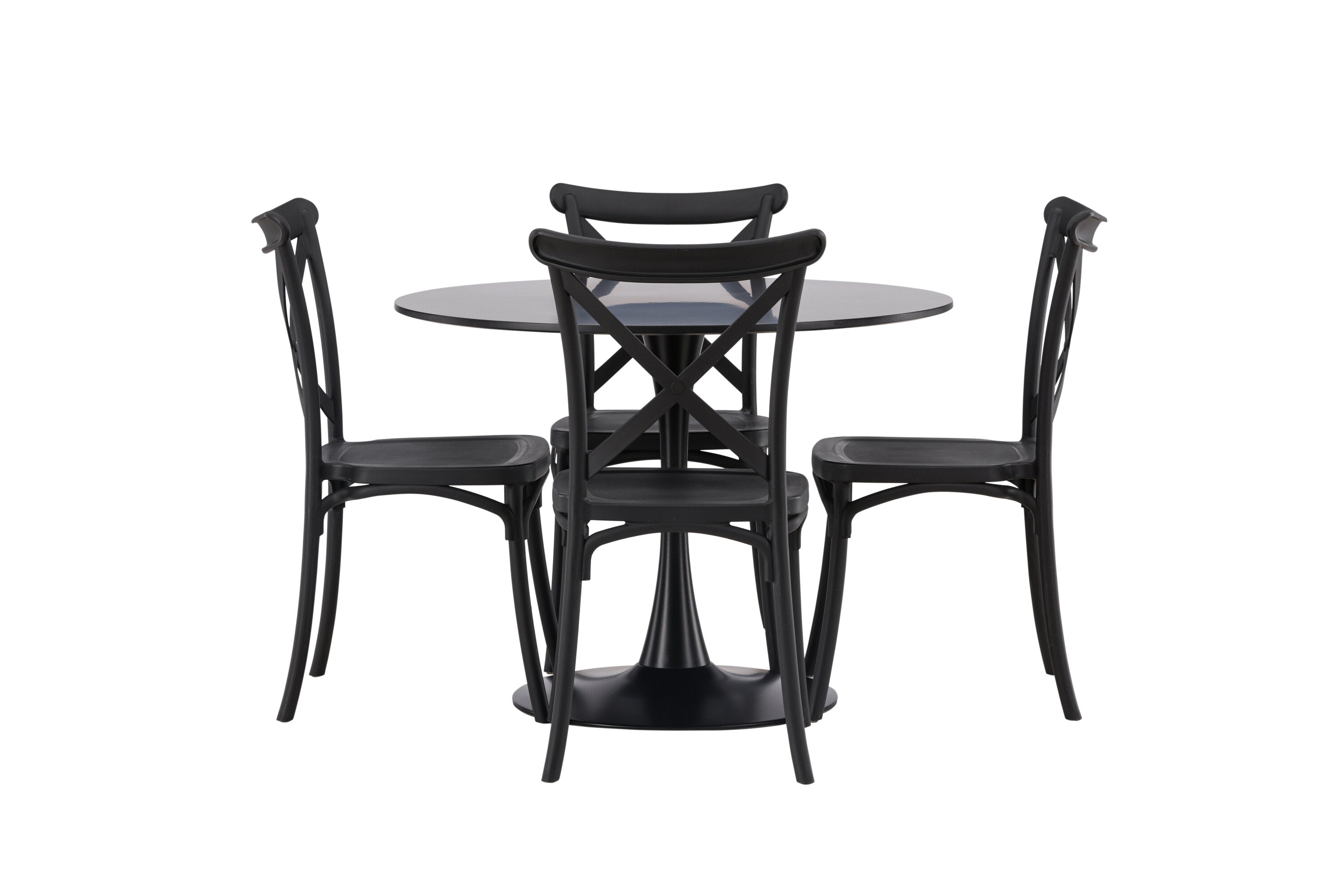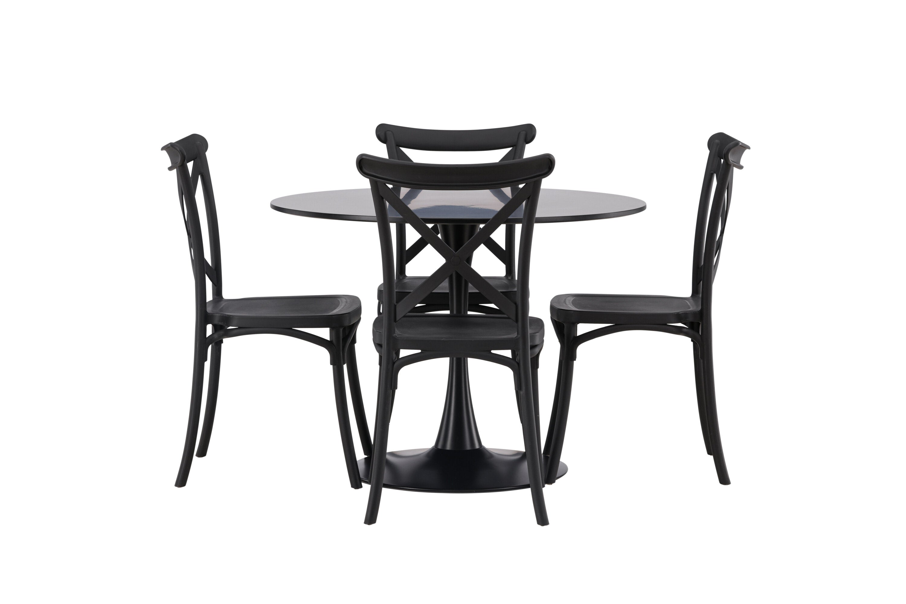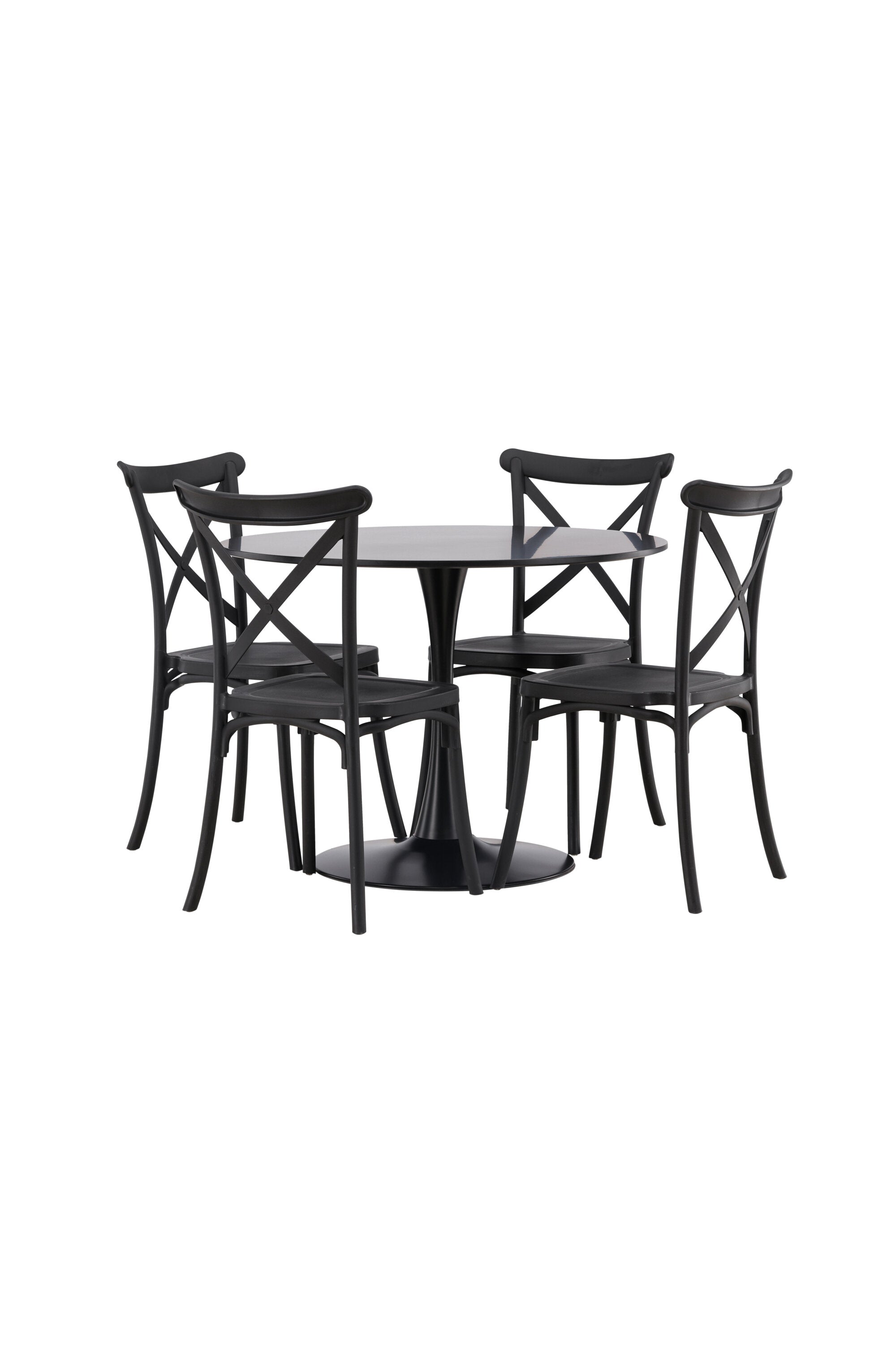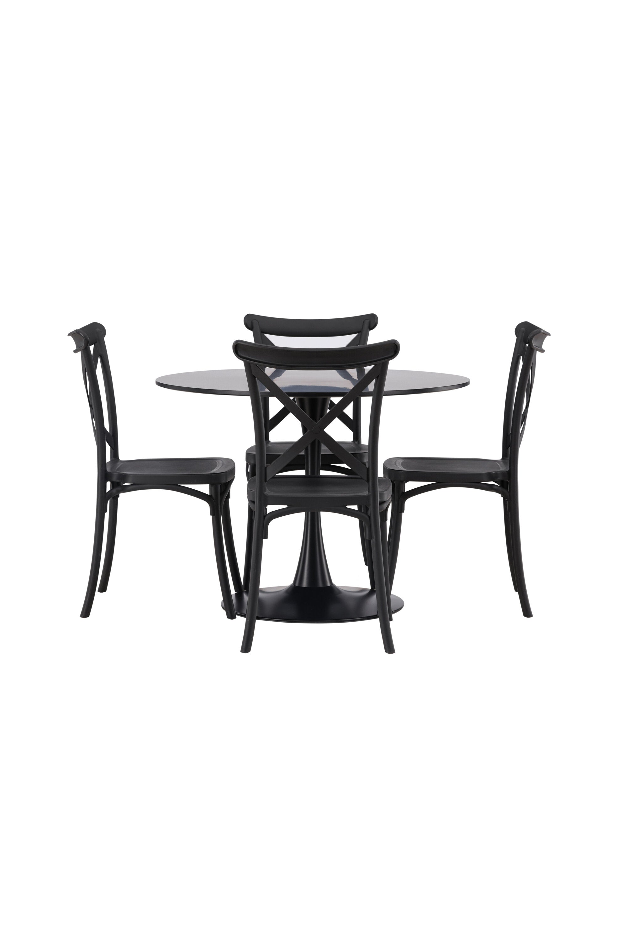 Udělejte chvíle stolování o něco velkolepější! Jídelní stůl Glade má stylový skandinávský design se štíhlou trumpetovou nohou z černé oceli a černou desku stolu z MDF. Zde spolu s černými jídelními židlemi ze série Crosett. Židle je důsledně vyrobena z praktického materiálu plast a má matnou černou barvu, která obstojí ve zkoušce času. Kruhová jídelní skupina je také ideální pro vytvoření společenské a příjemné atmosféry v místnosti! Rozměry stolu: 100 cm.