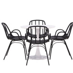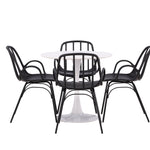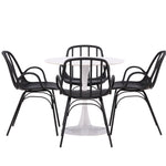 Se čtyřmi přiloženými židlemi je tato sada ideální pro setkávání rodiny a přátel u jídelního stolu. Díky jednoduchému designu a snadno čistitelným materiálům je snadné udržovat ji úhlednou a uklizenou. Po jídle můžete desku stolu snadno otřít, abyste zachovali její krásu a lesk.