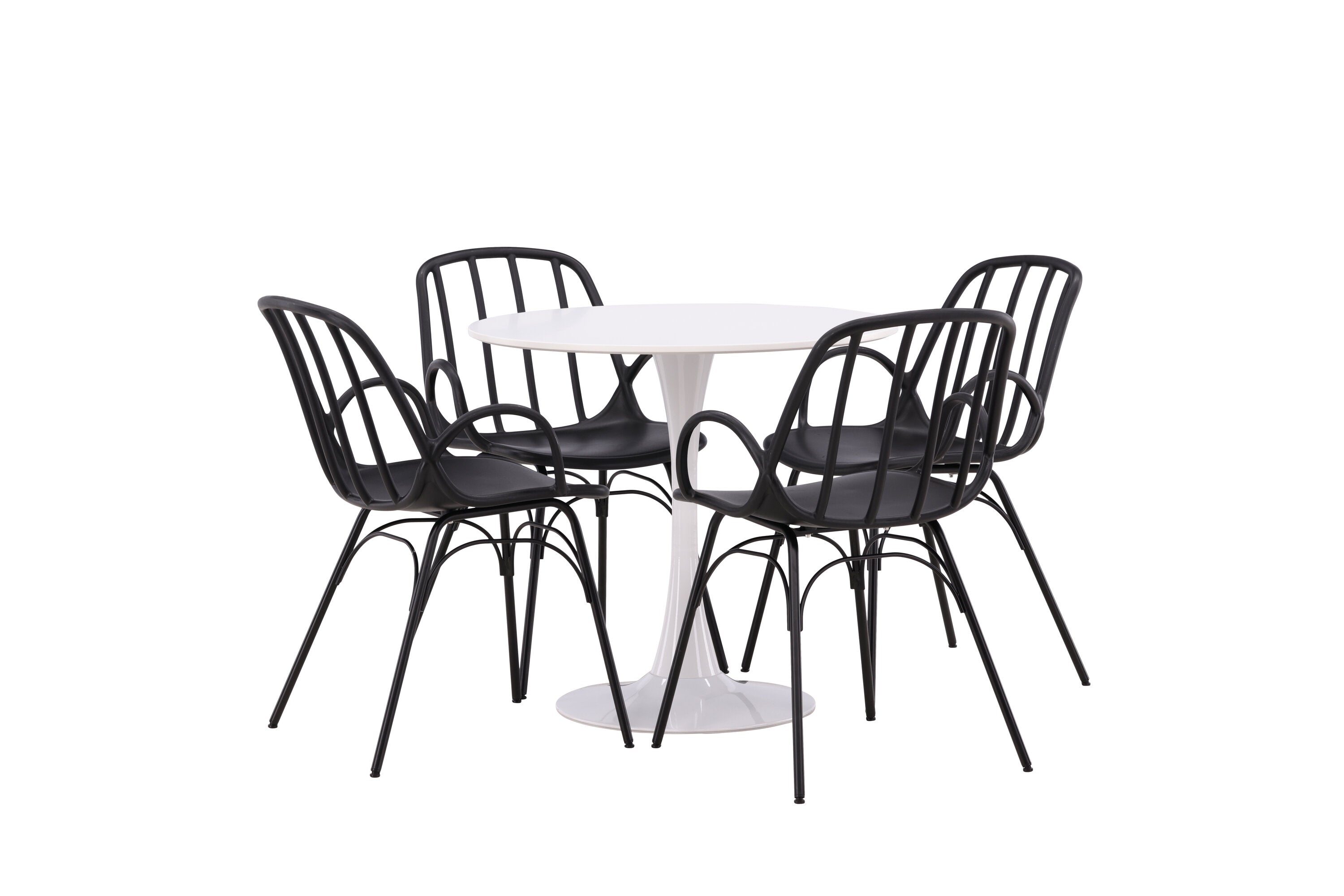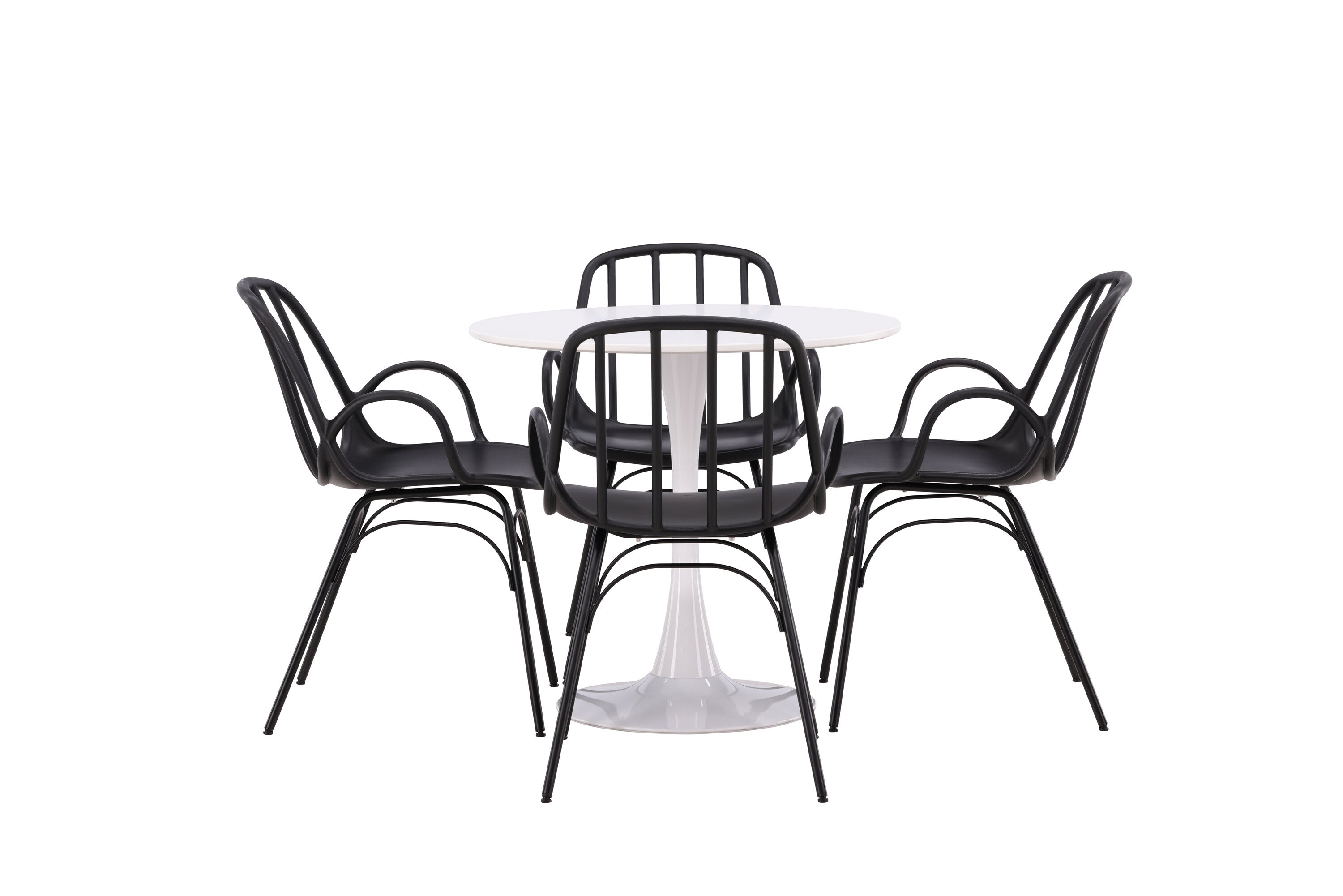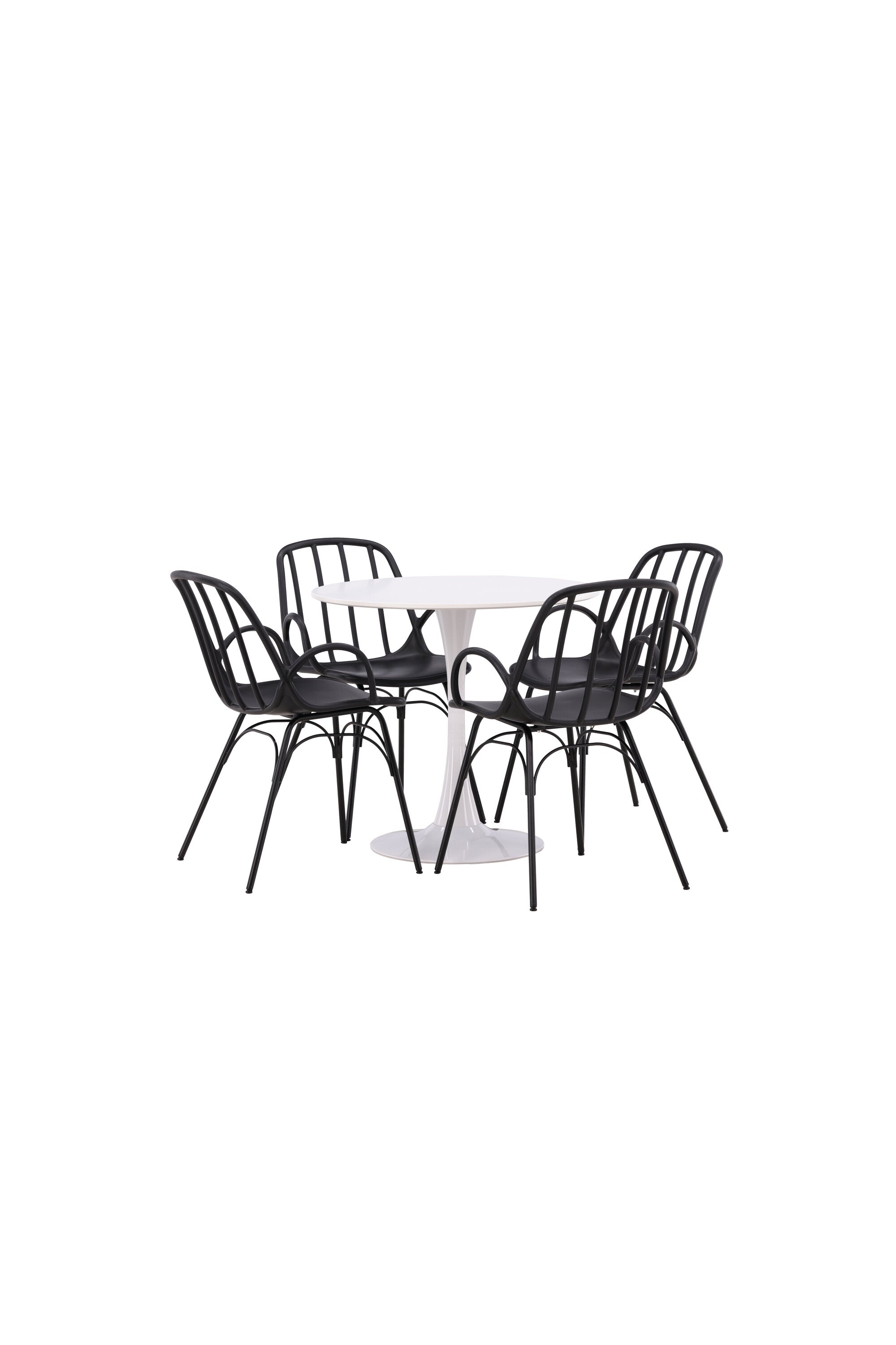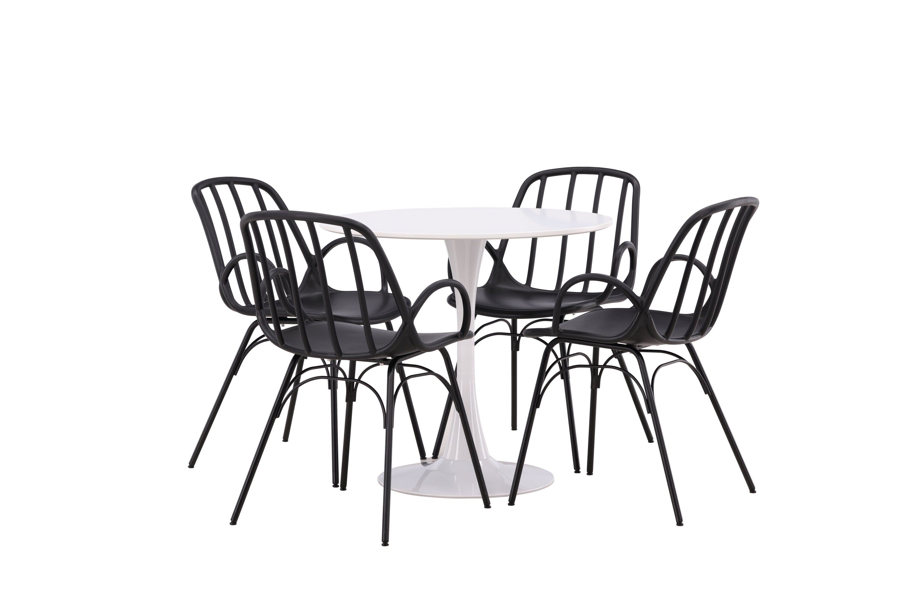 Objevte dokonalé spojení funkčnosti a stylu s tímto praktickým a stylovým jídelním setem od Venture Home. Jídelní set se skládá z moderních židlí Dyrön a kontrastního stolu Hamden. Díky bílé stolní desce a černým židlím vytváří tato jídelní souprava moderní a elegantní atmosféru.