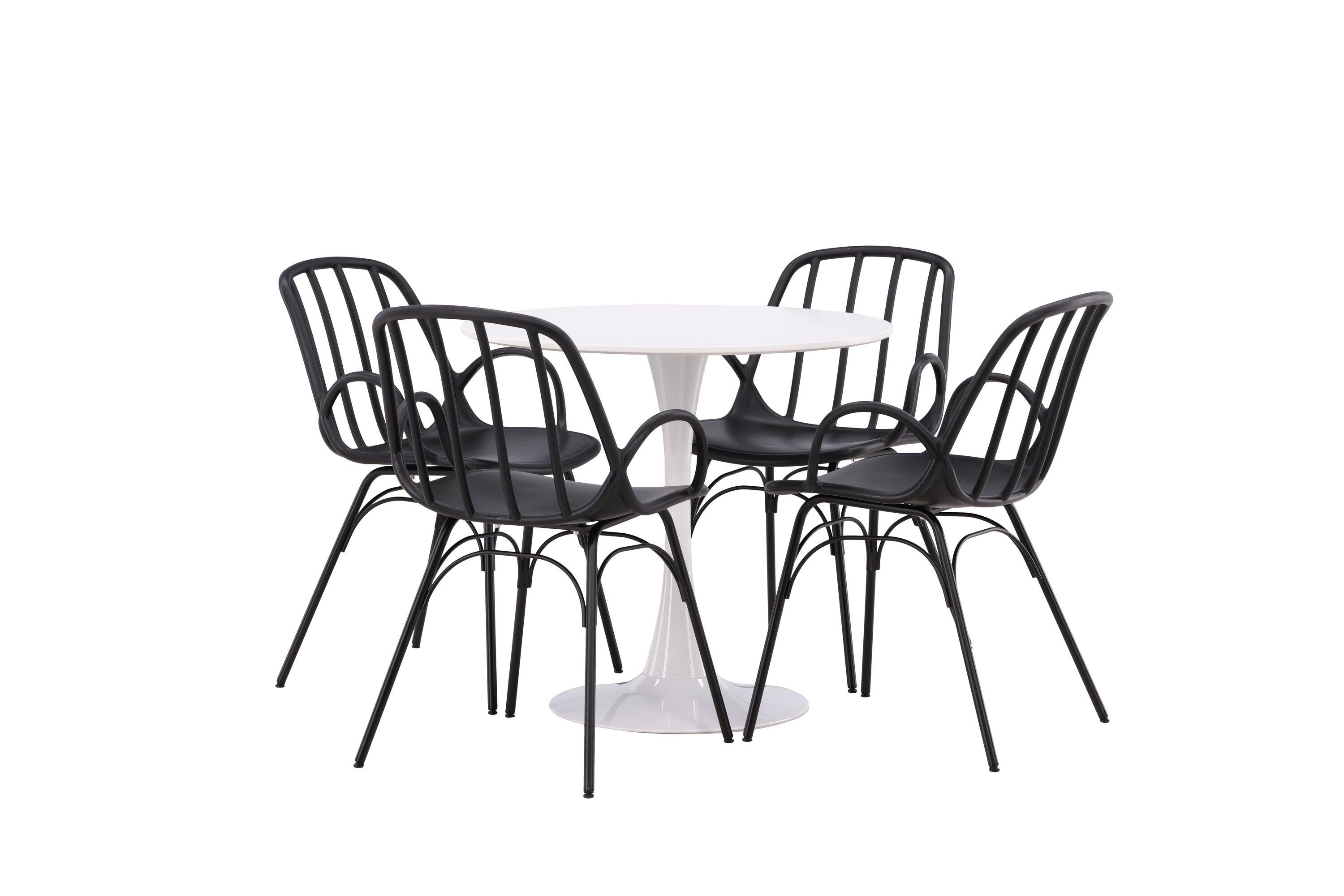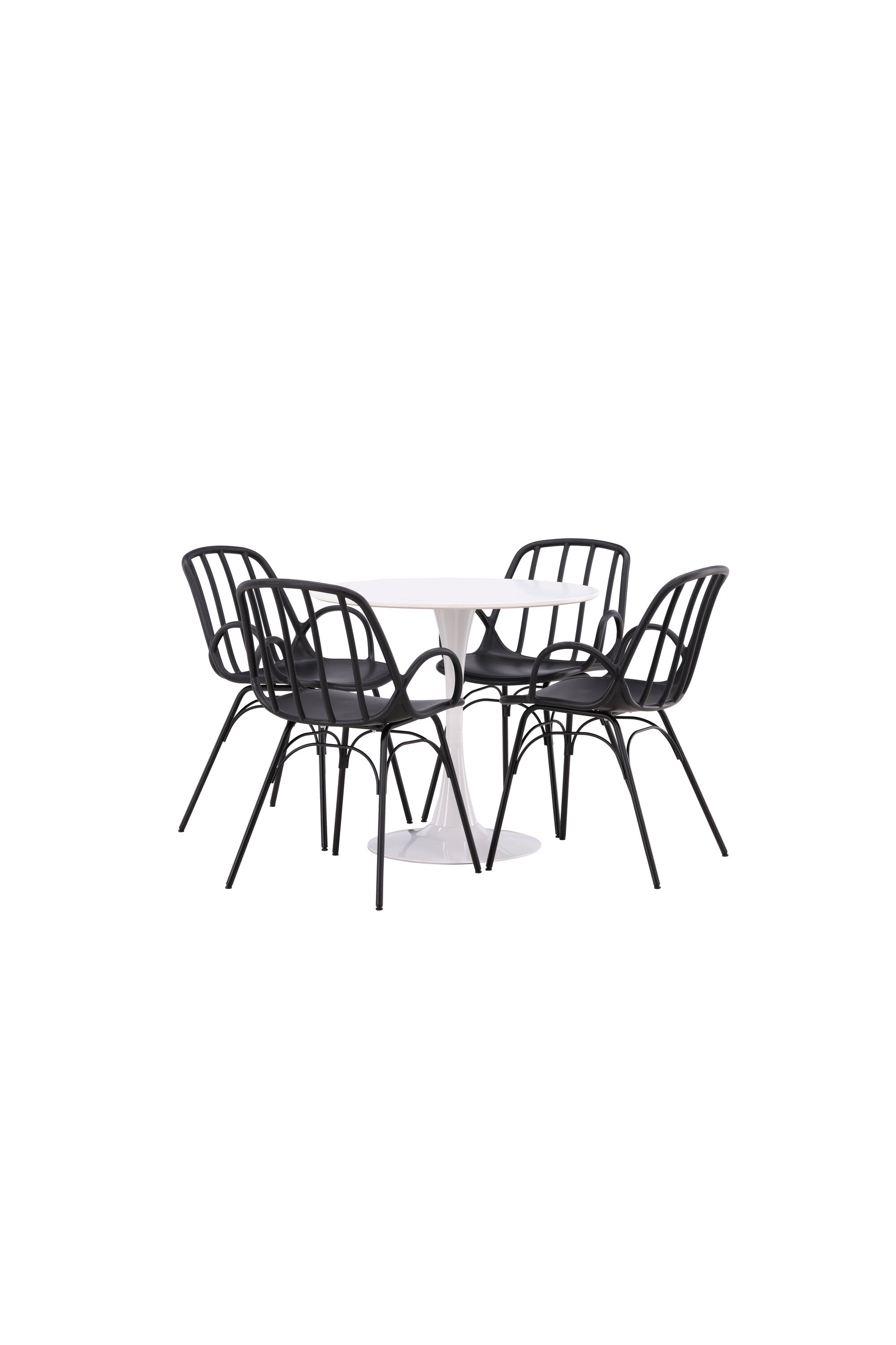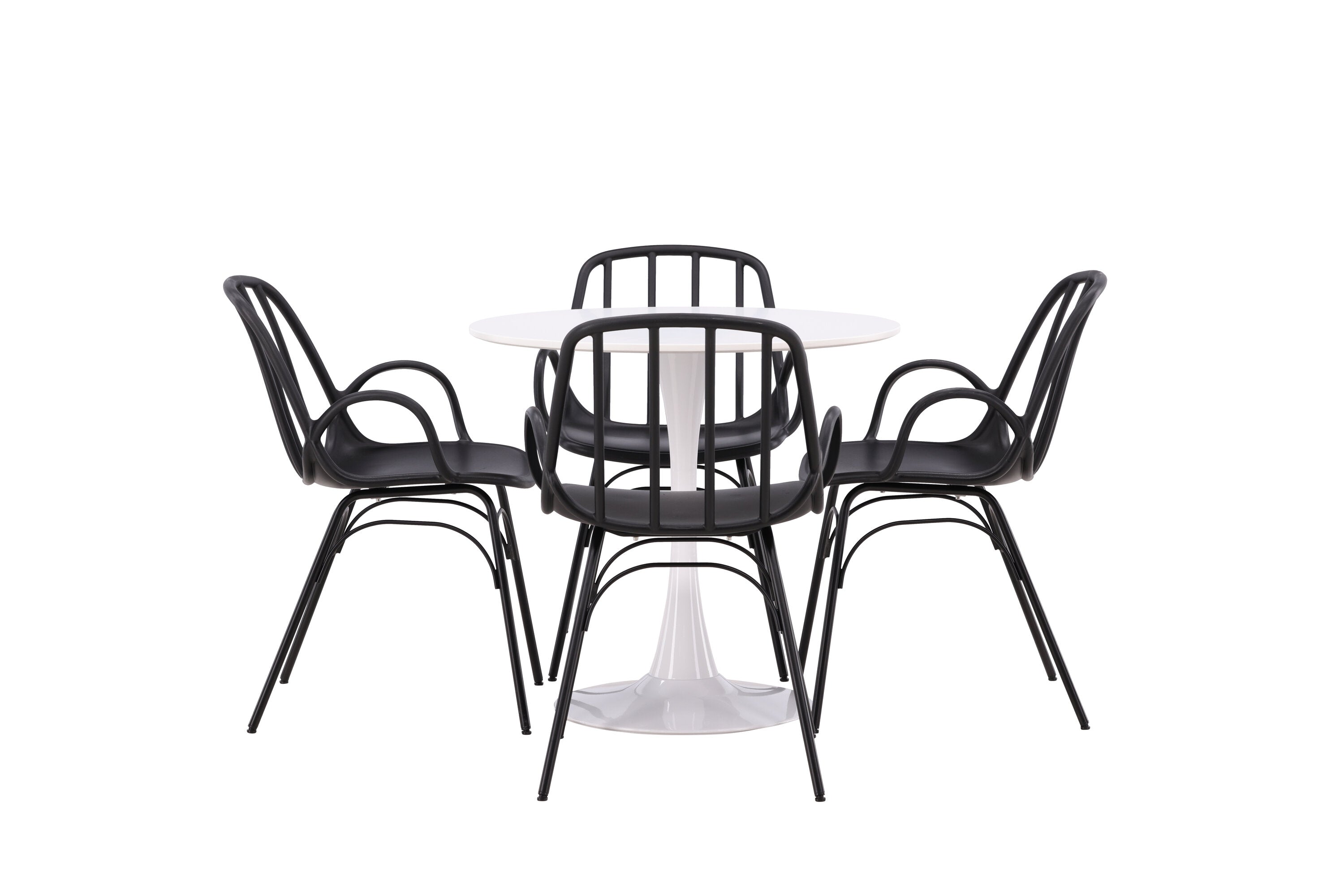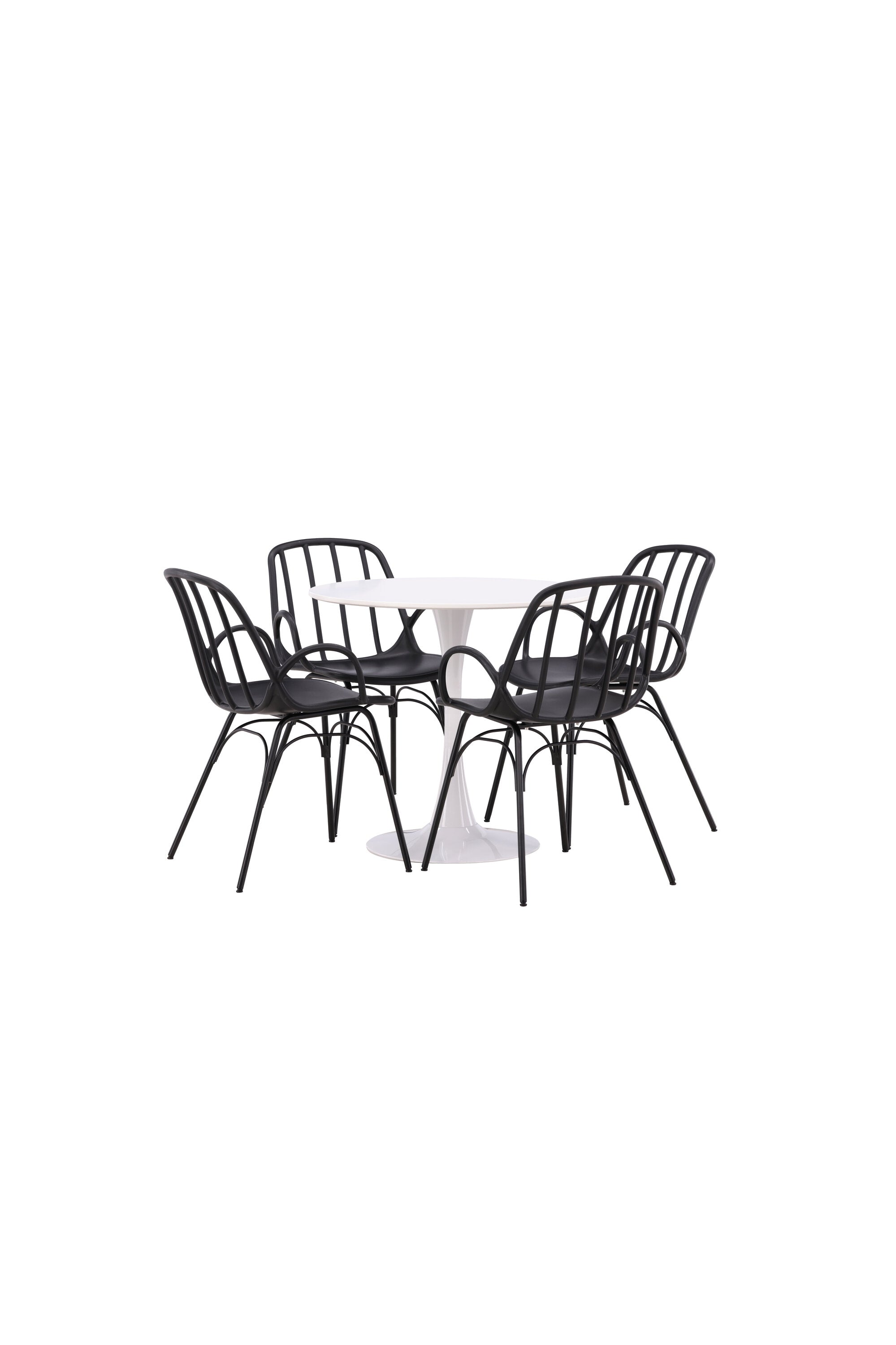 Objevte dokonalé spojení funkčnosti a stylu s tímto praktickým a stylovým jídelním setem od Venture Home. Jídelní set se skládá z moderních židlí Dyrön a kontrastního stolu Hamden. Díky bílé stolní desce a černým židlím vytváří tato jídelní souprava moderní a elegantní atmosféru.