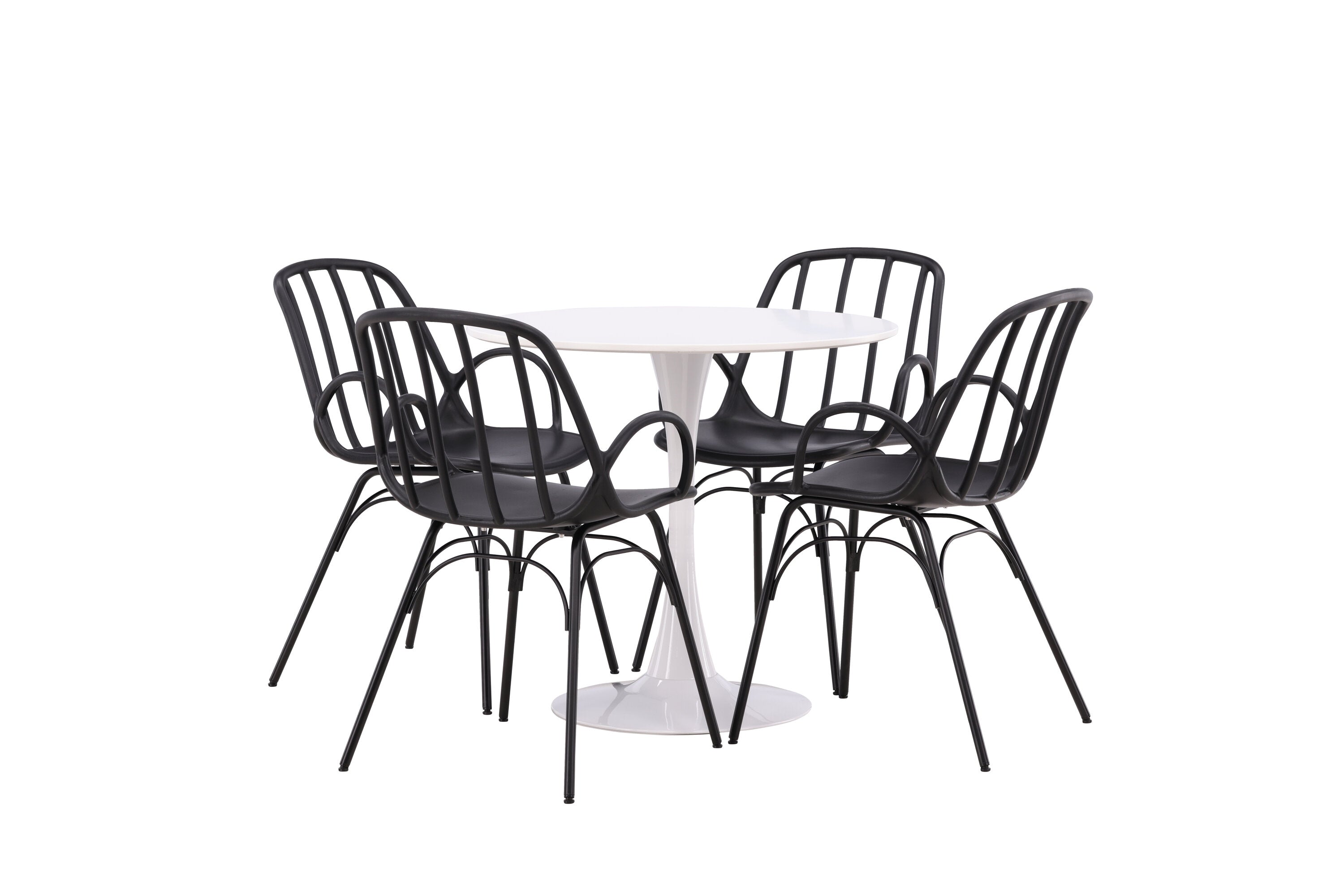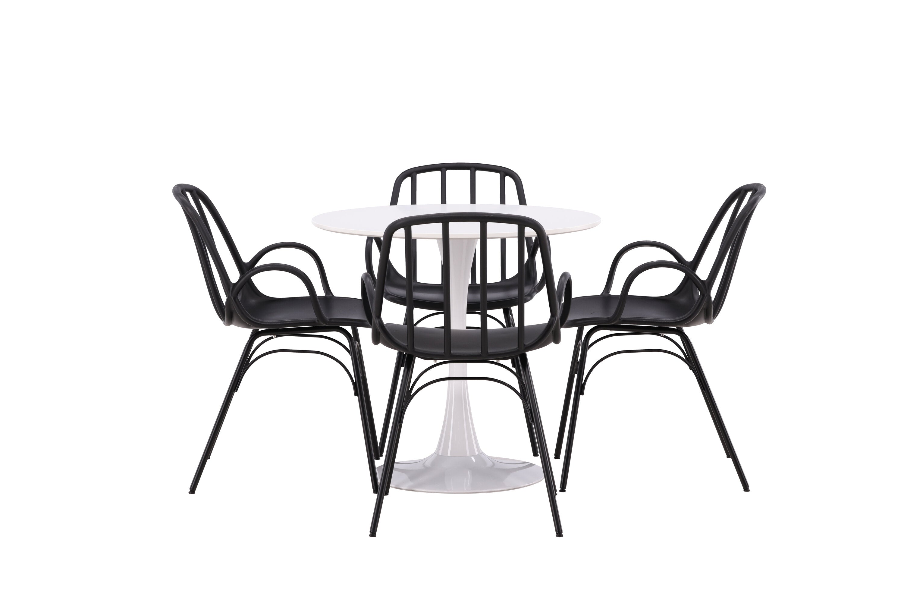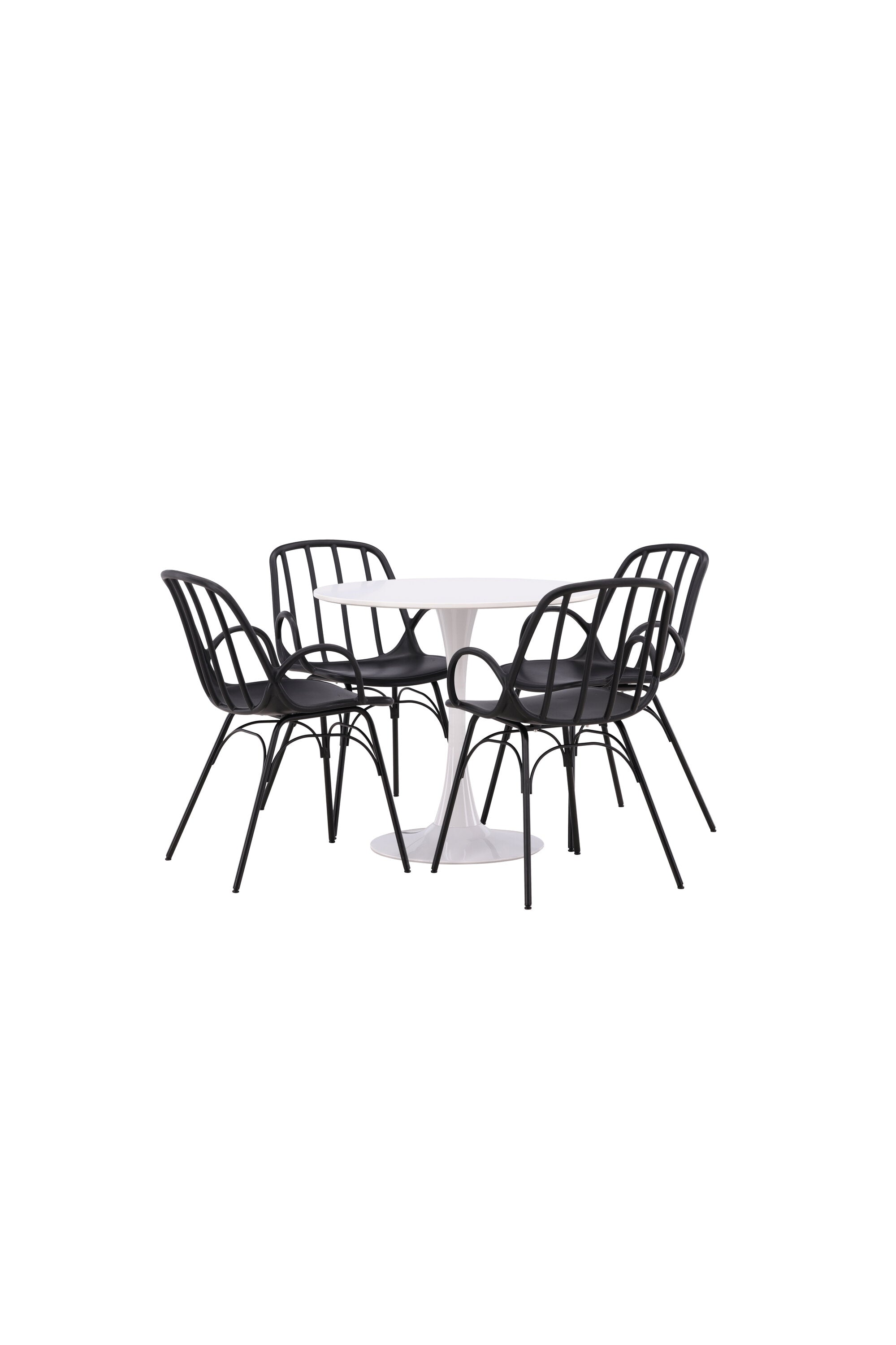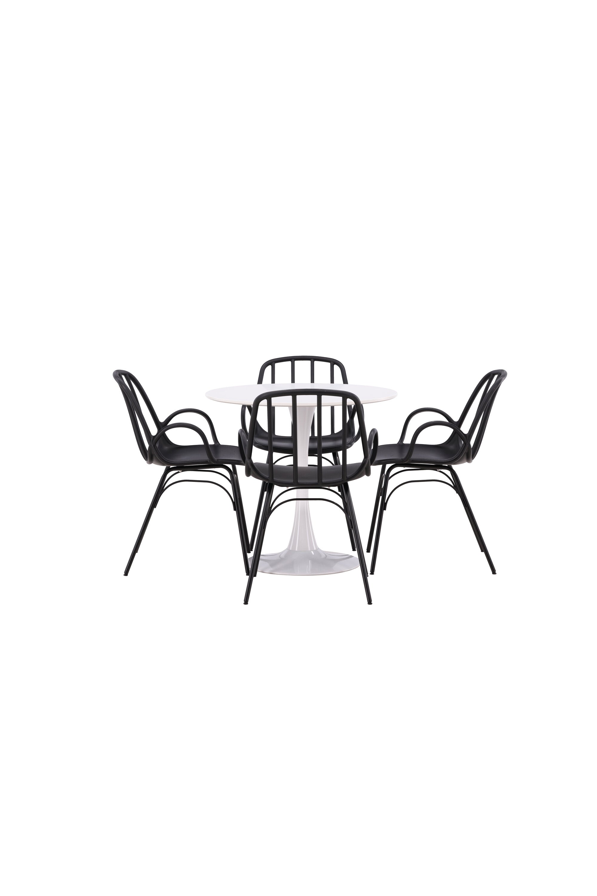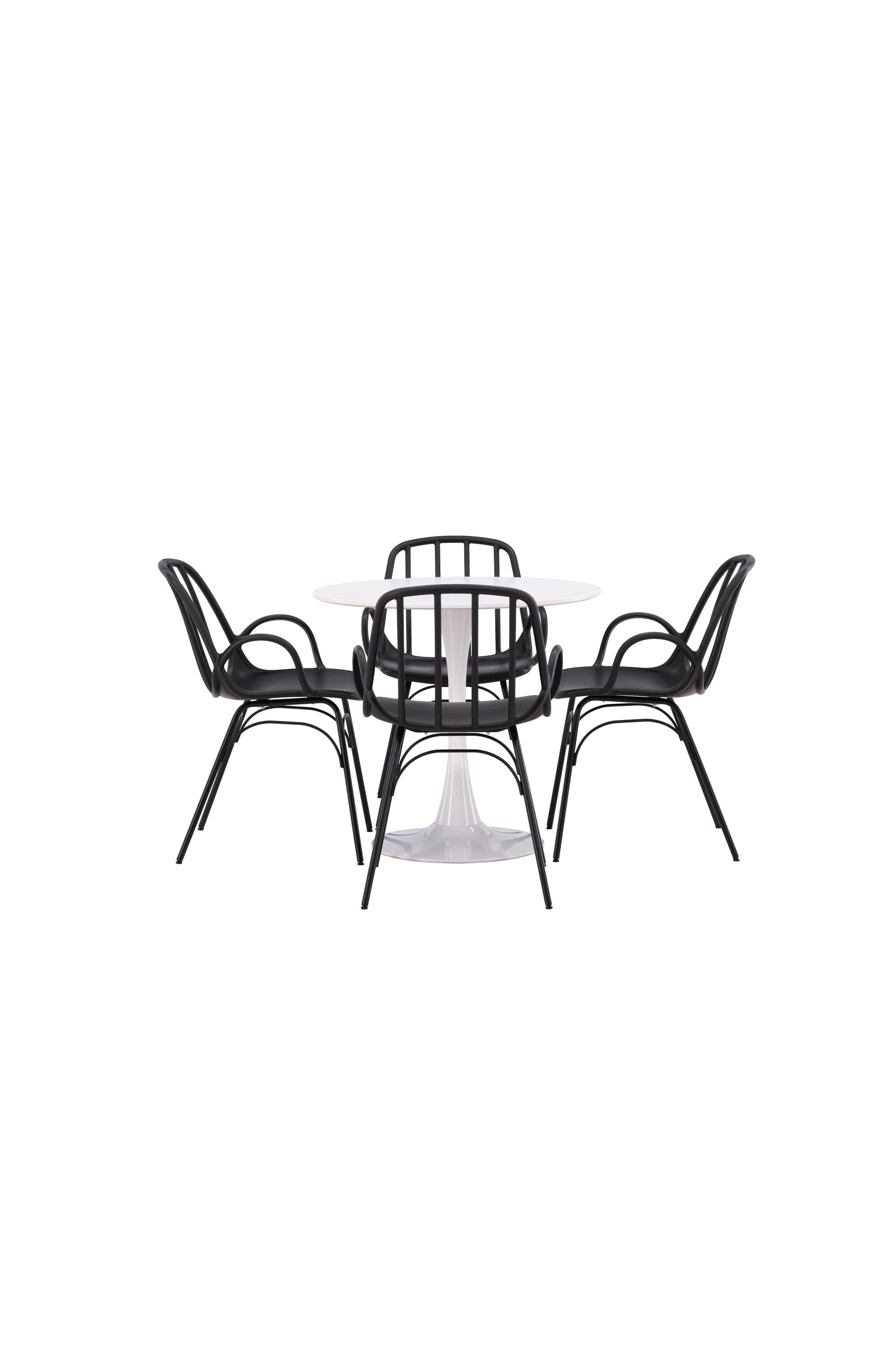 Objevte dokonalé spojení funkčnosti a stylu s tímto praktickým a stylovým jídelním setem od Venture Home. Jídelní set se skládá z moderních židlí Dyrön a kontrastního stolu Hamden. Díky bílé stolní desce a černým židlím vytváří tato jídelní souprava moderní a elegantní atmosféru.