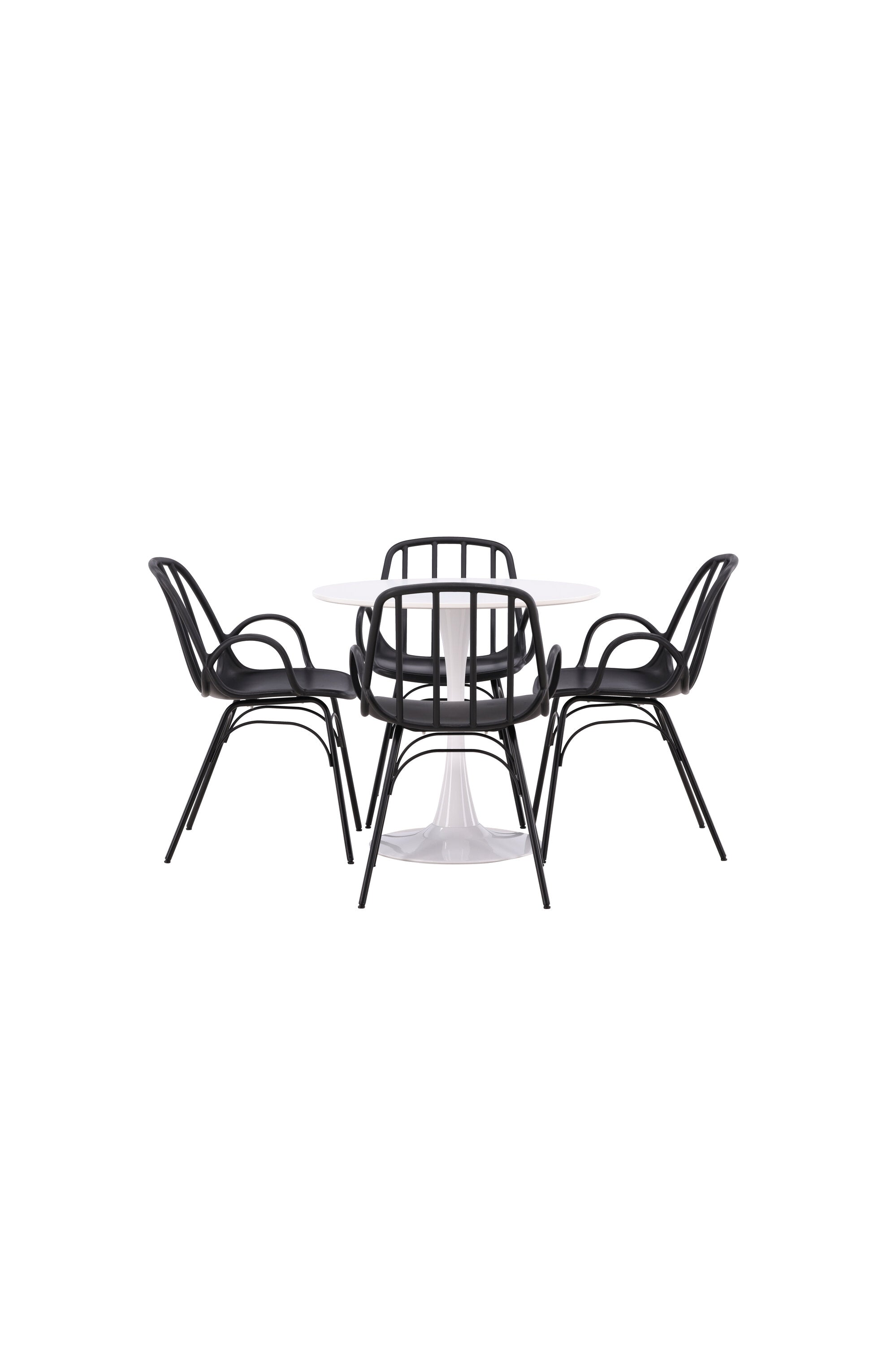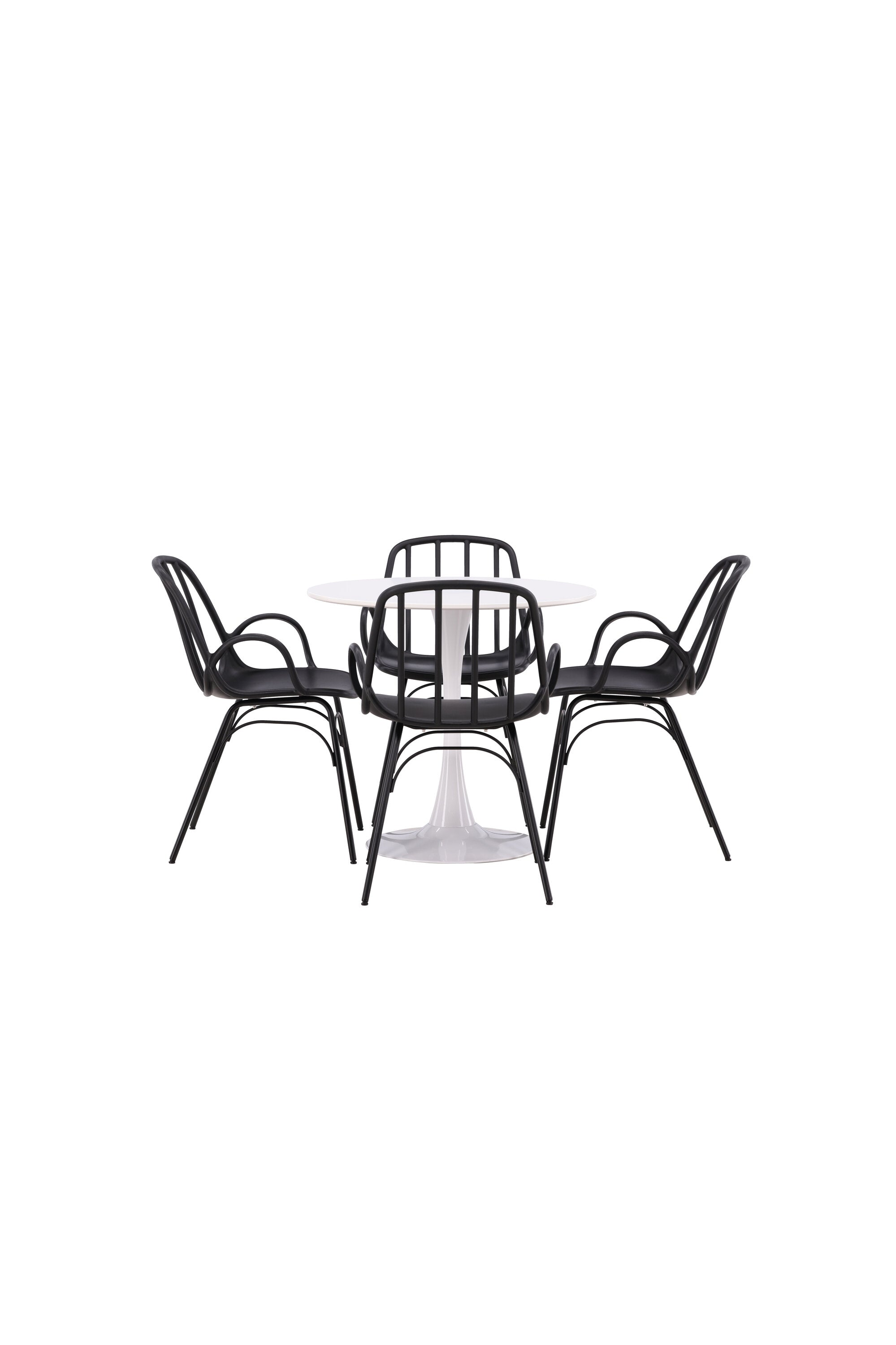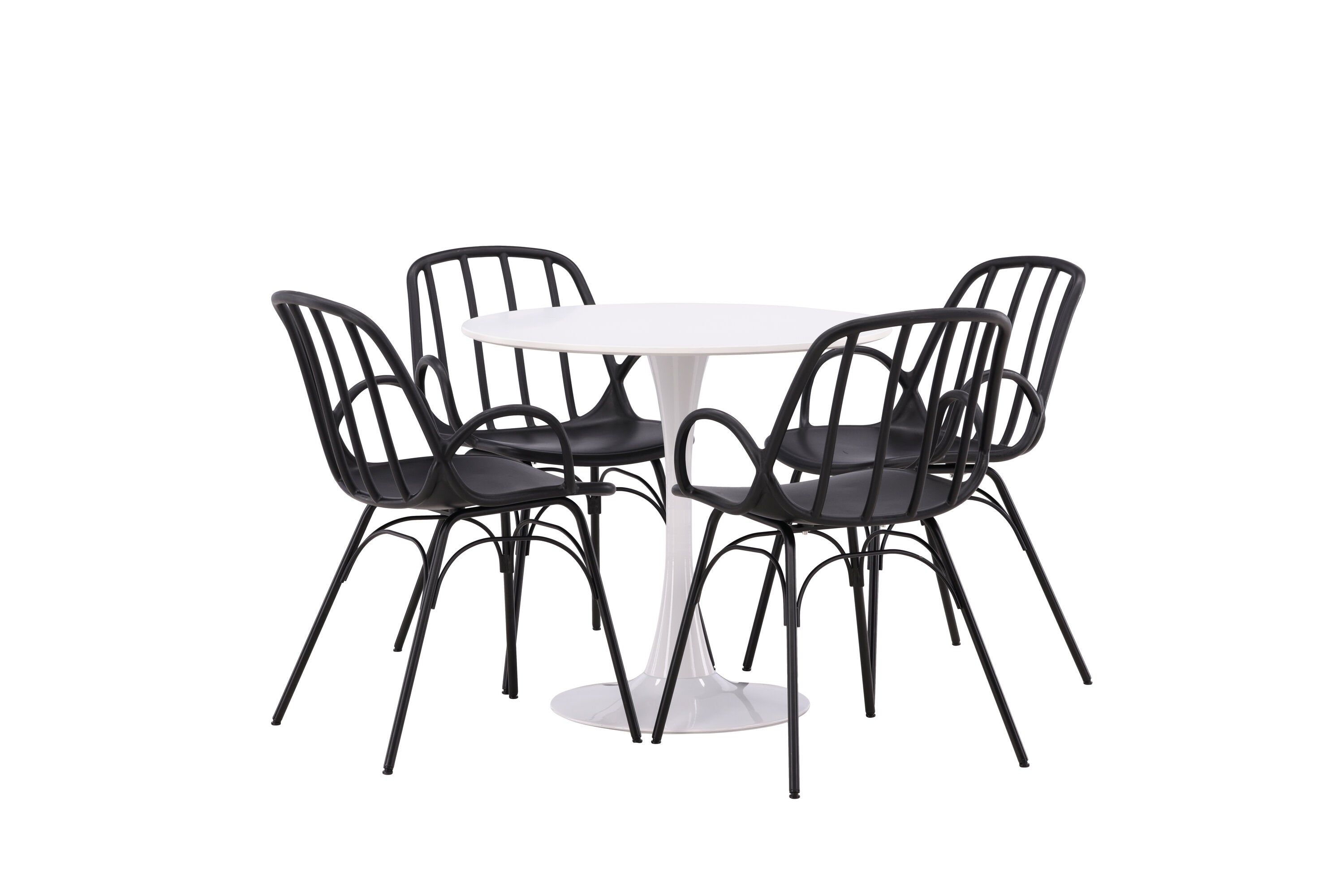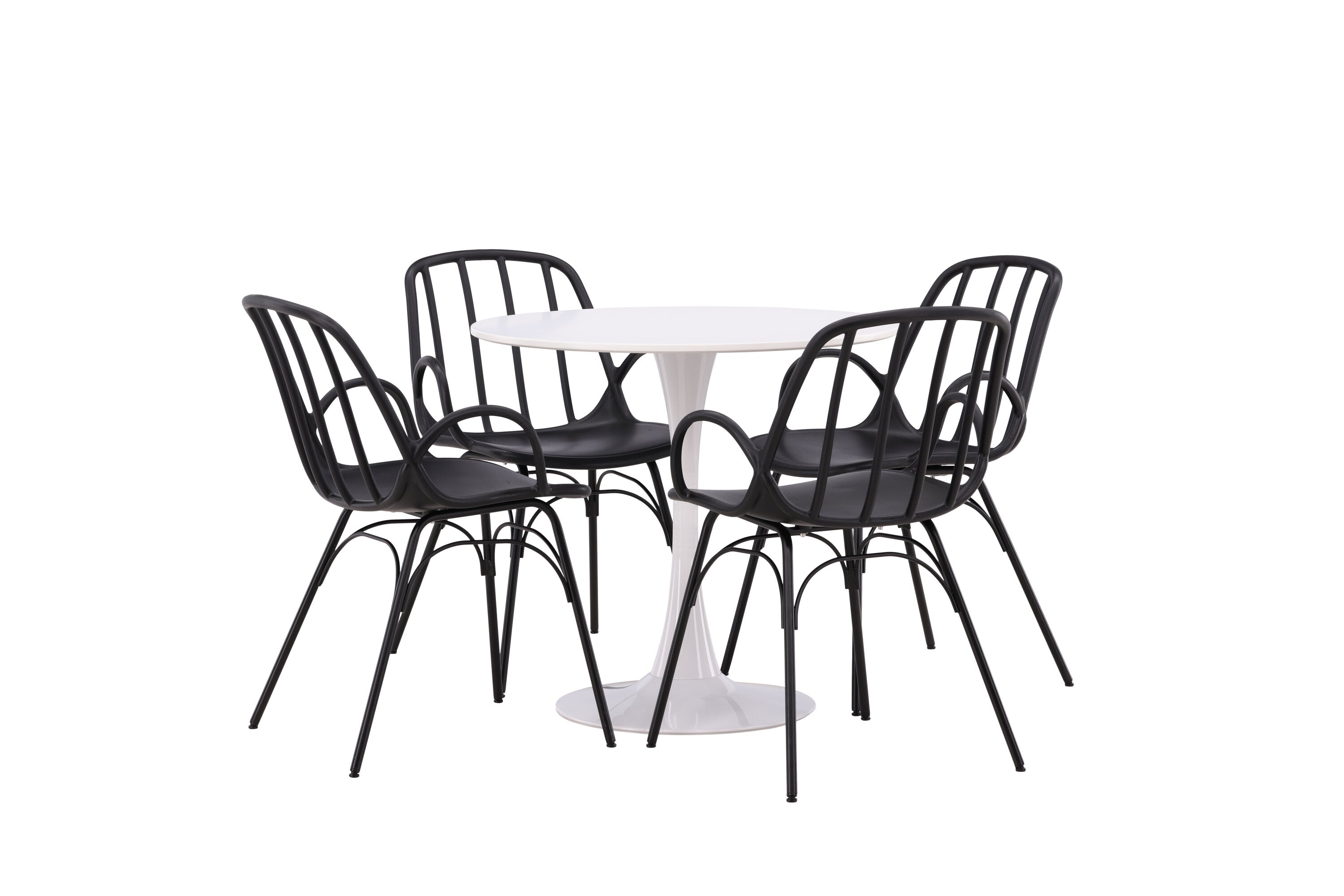 Objevte dokonalé spojení funkčnosti a stylu s tímto praktickým a stylovým jídelním setem od Venture Home. Jídelní set se skládá z moderních židlí Dyrön a kontrastního stolu Hamden. Díky bílé stolní desce a černým židlím vytváří tato jídelní souprava moderní a elegantní atmosféru.