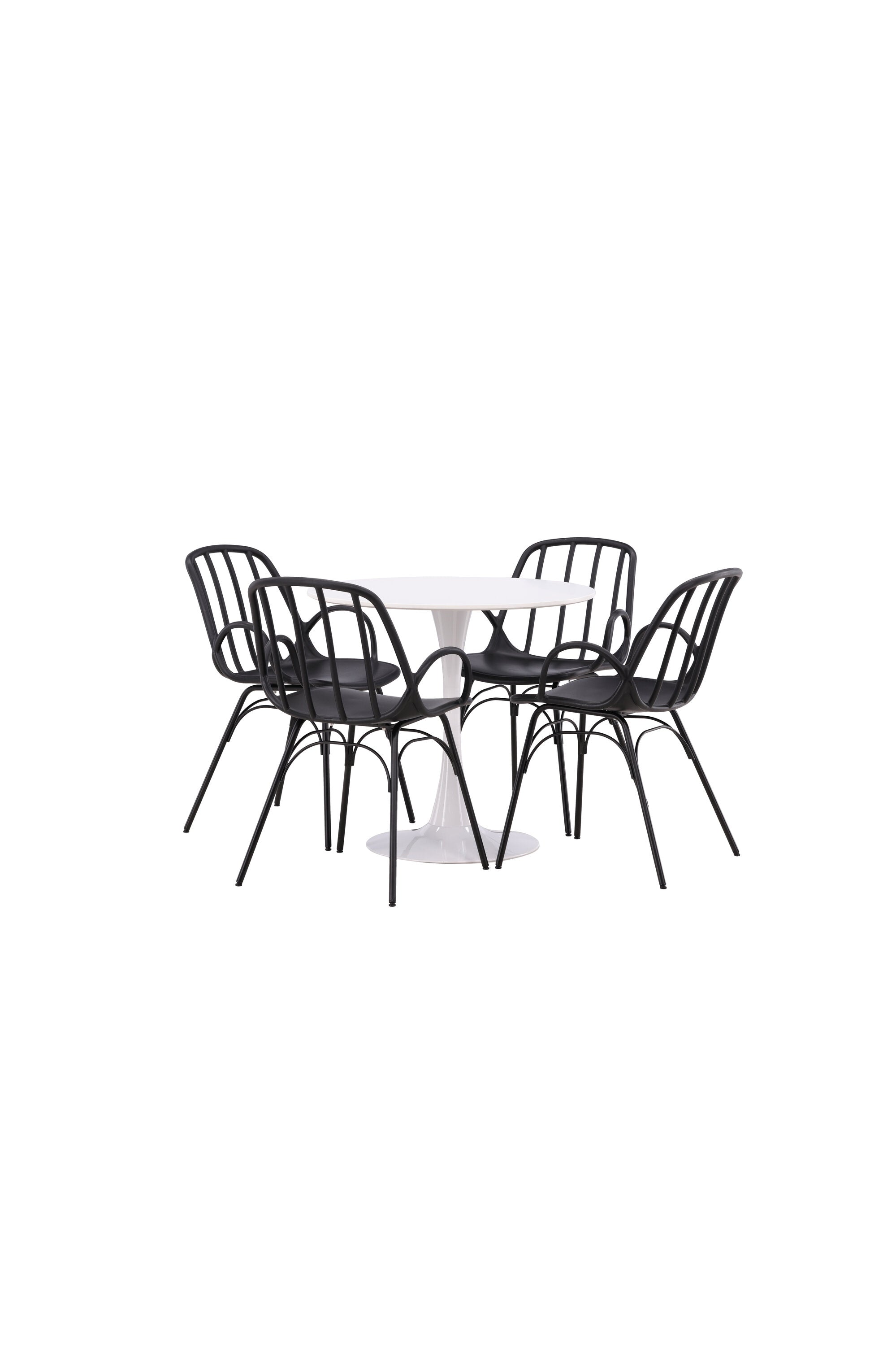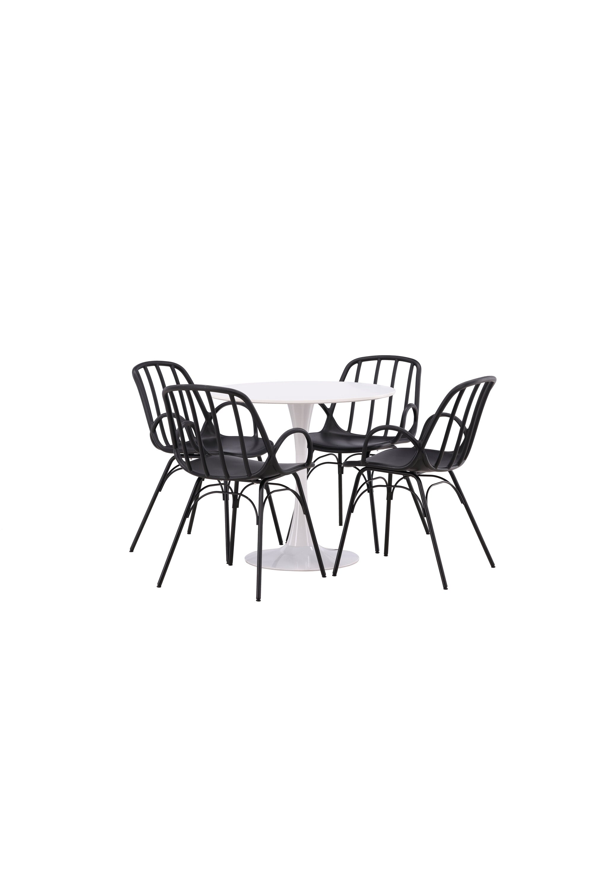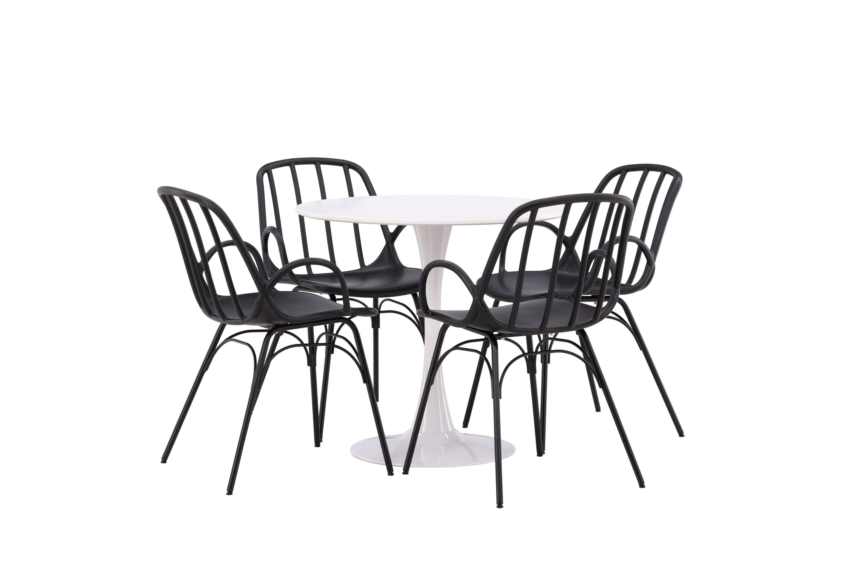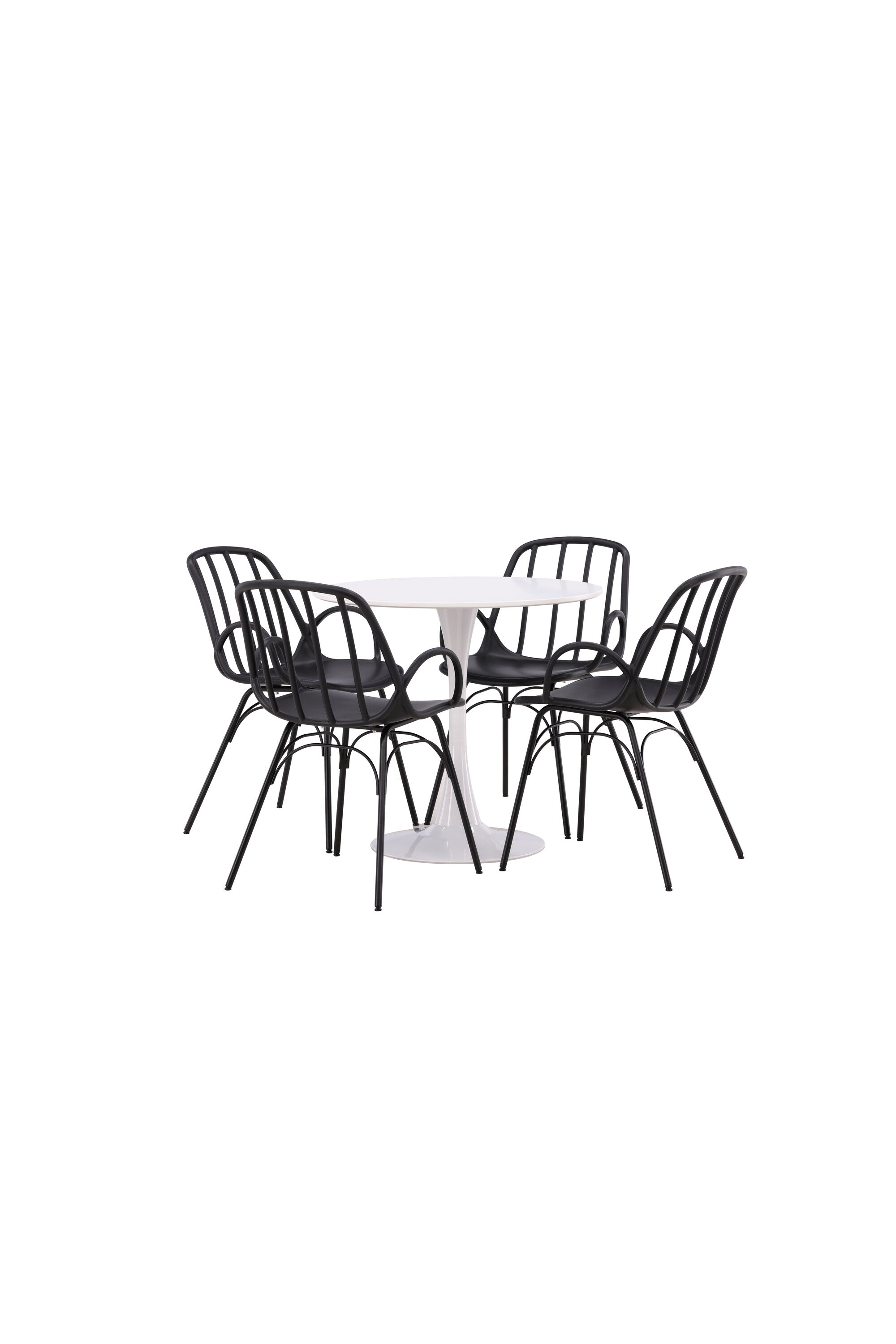 Objevte dokonalé spojení funkčnosti a stylu s tímto praktickým a stylovým jídelním setem od Venture Home. Jídelní set se skládá z moderních židlí Dyrön a kontrastního stolu Hamden. Díky bílé stolní desce a černým židlím vytváří tato jídelní souprava moderní a elegantní atmosféru.