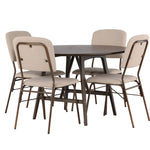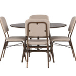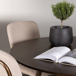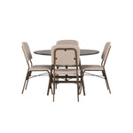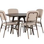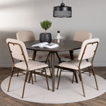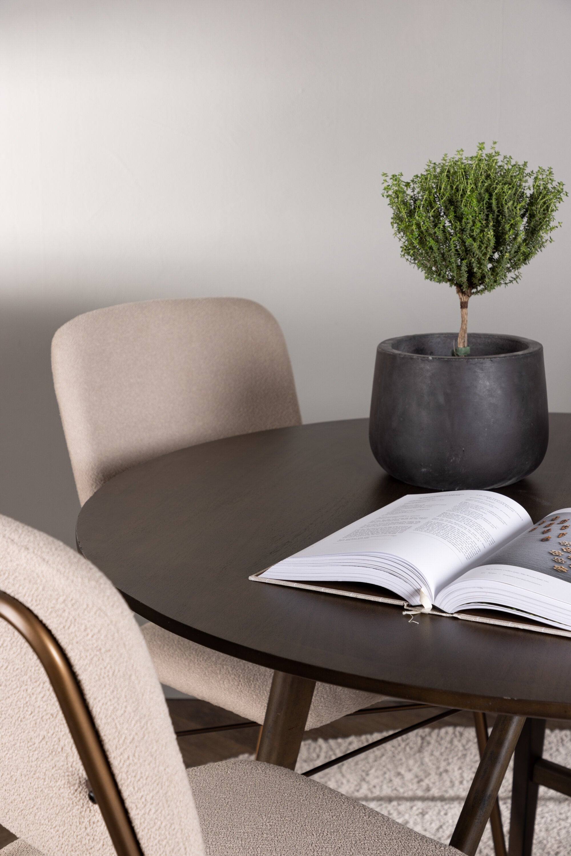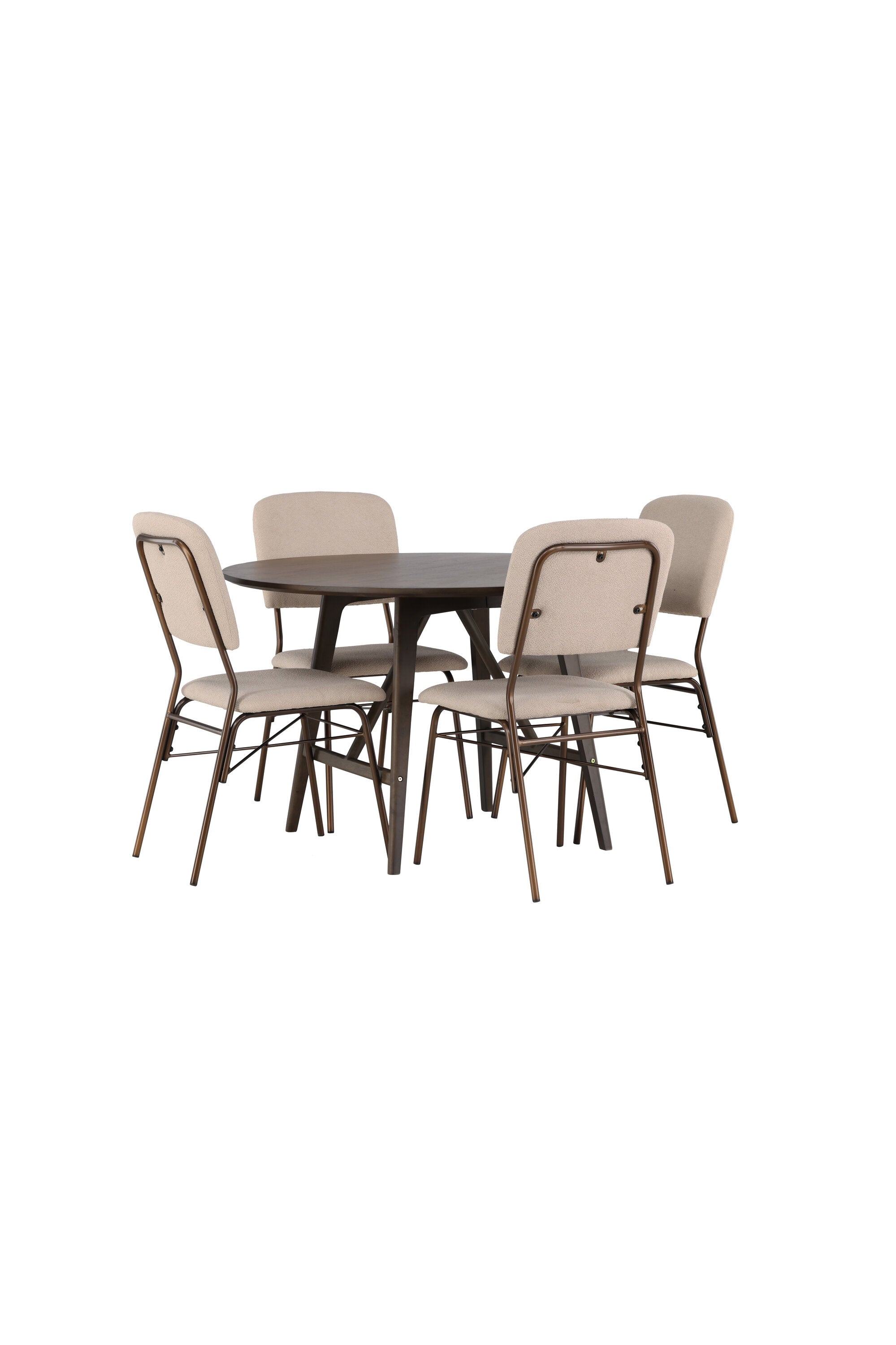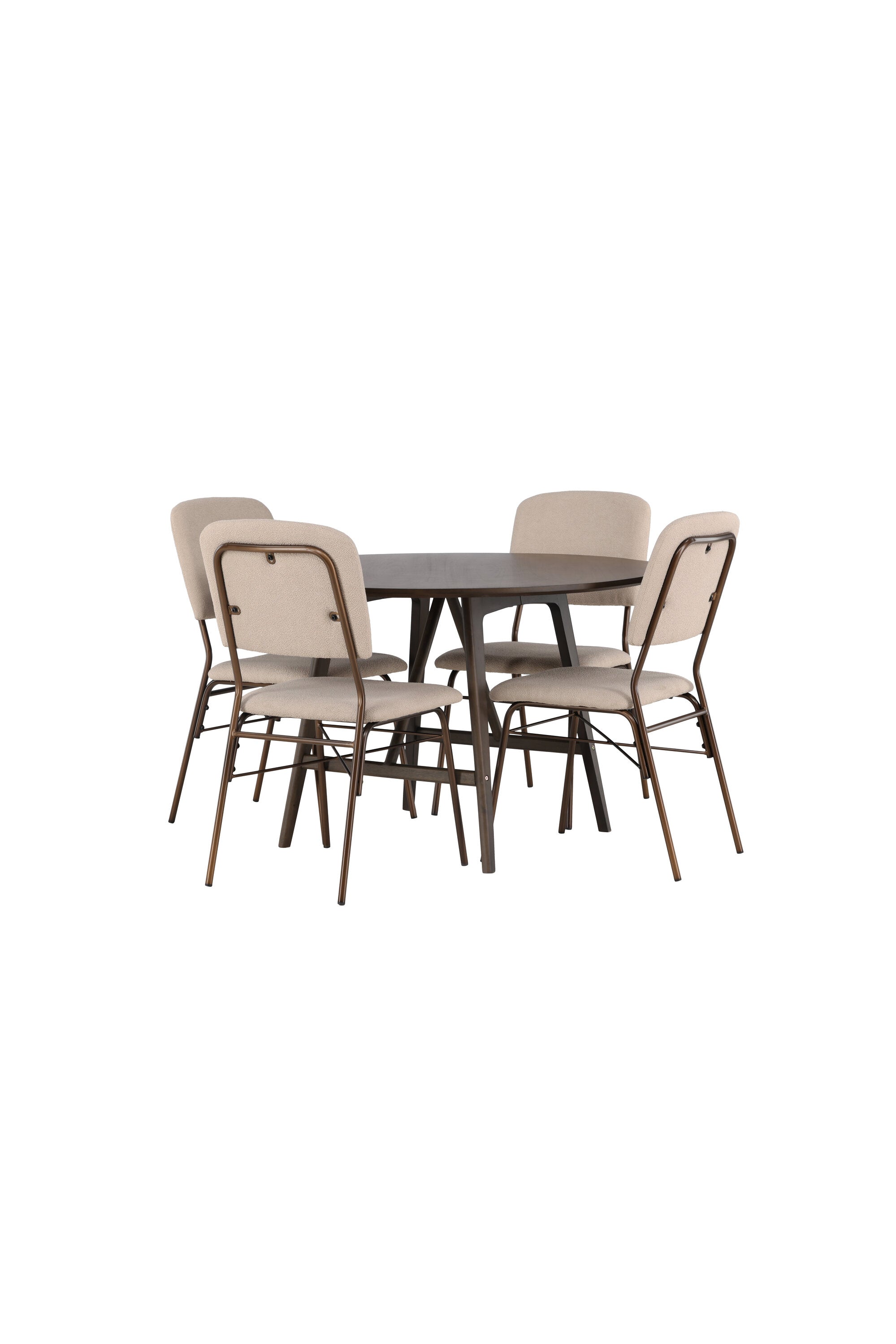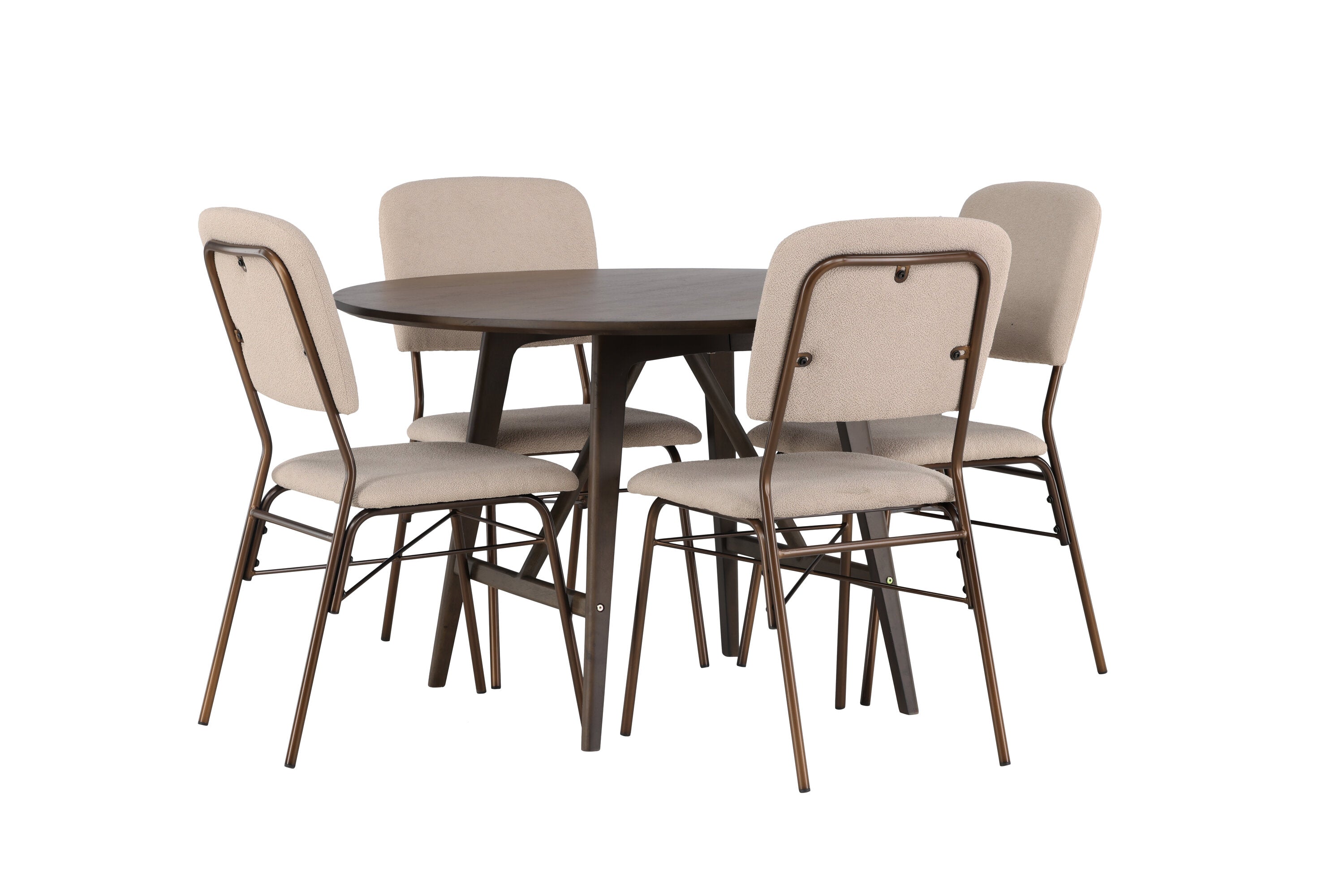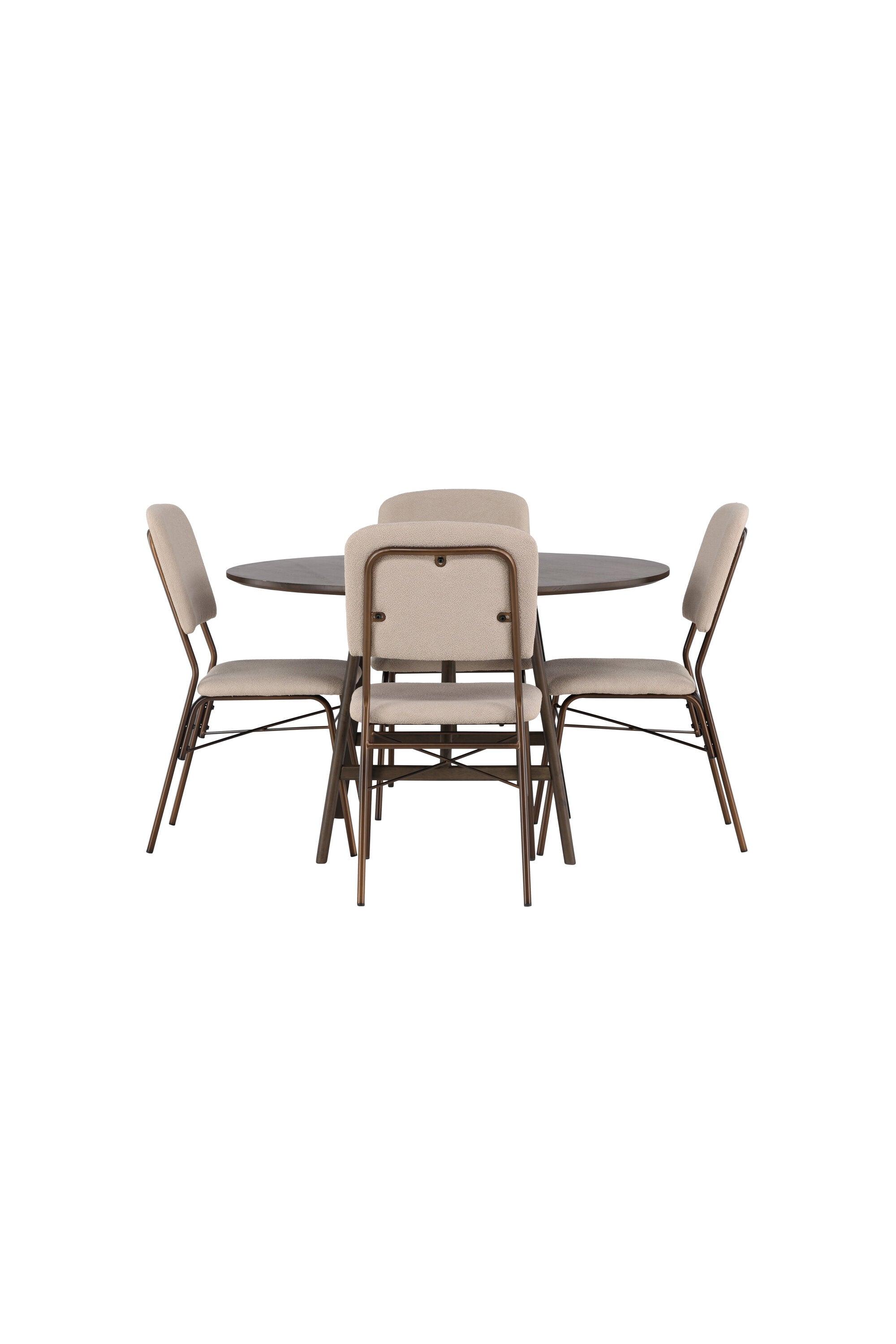 Jídelní stůl Kaseidon - kulatý - kaučukové dřevo / tmavě hnědá MDF + Jídelní židle Seda - matná hnědá / béžová látka _4