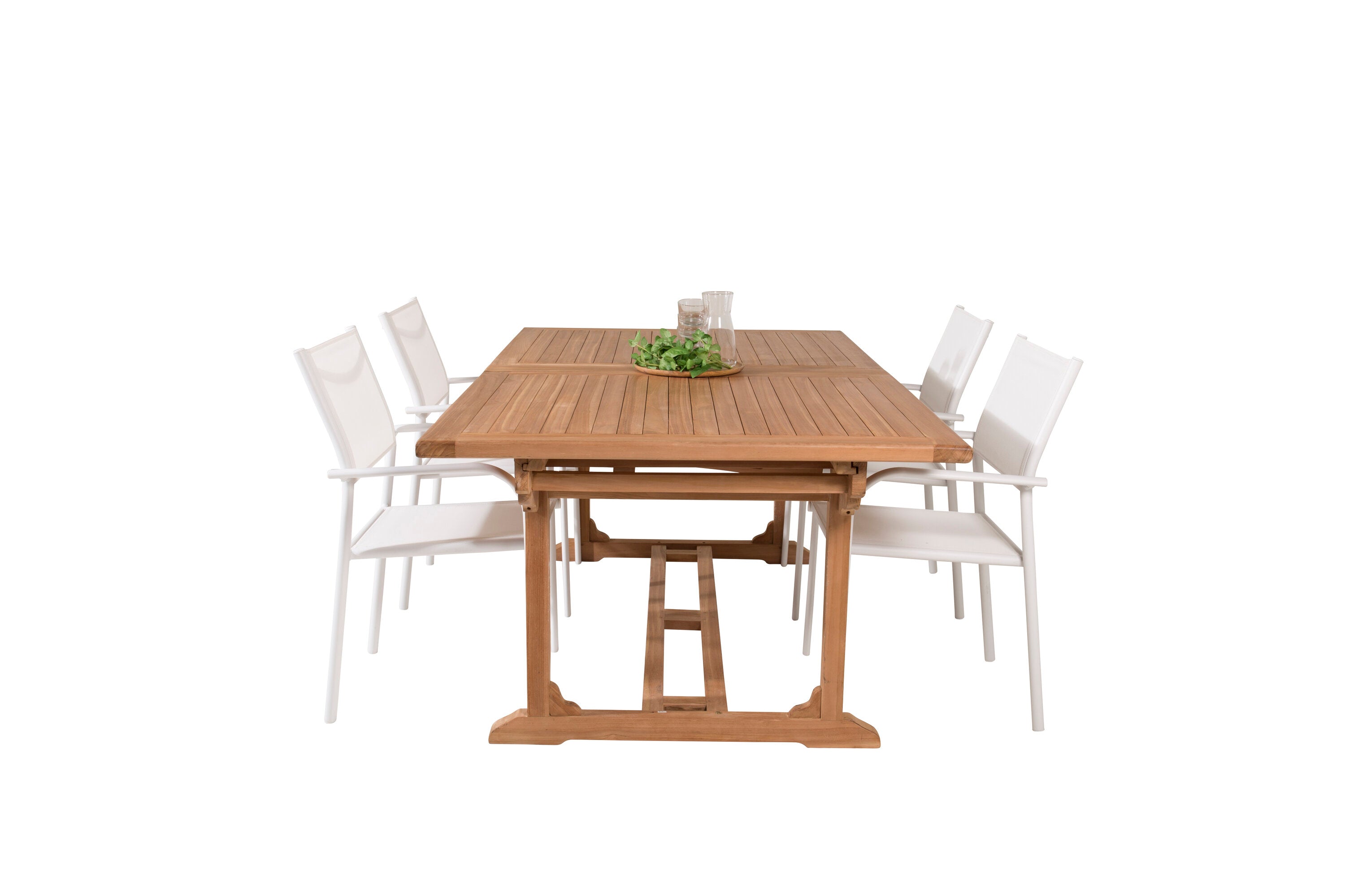 Jídelní stůl Kenya 195/295*110*H75 - Teak+Santorini křeslo (stohovatelné) - Whi