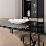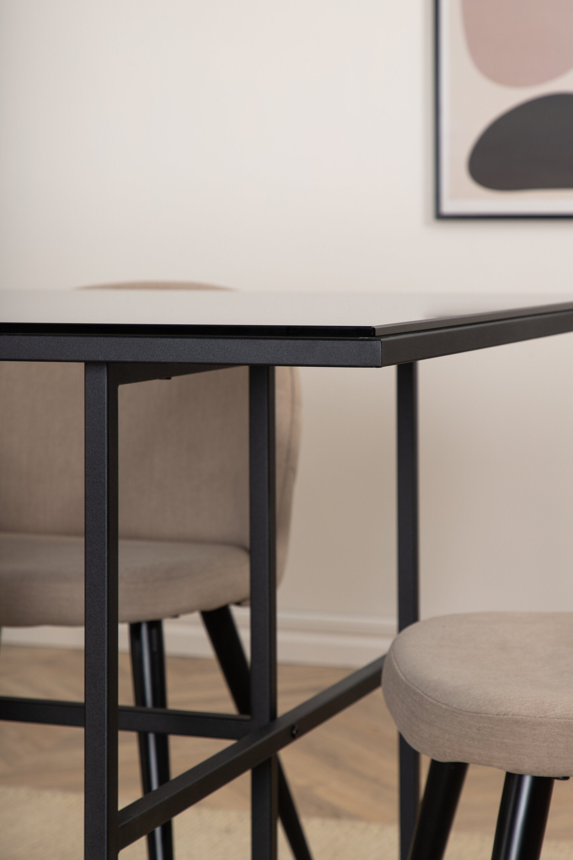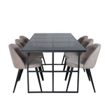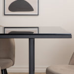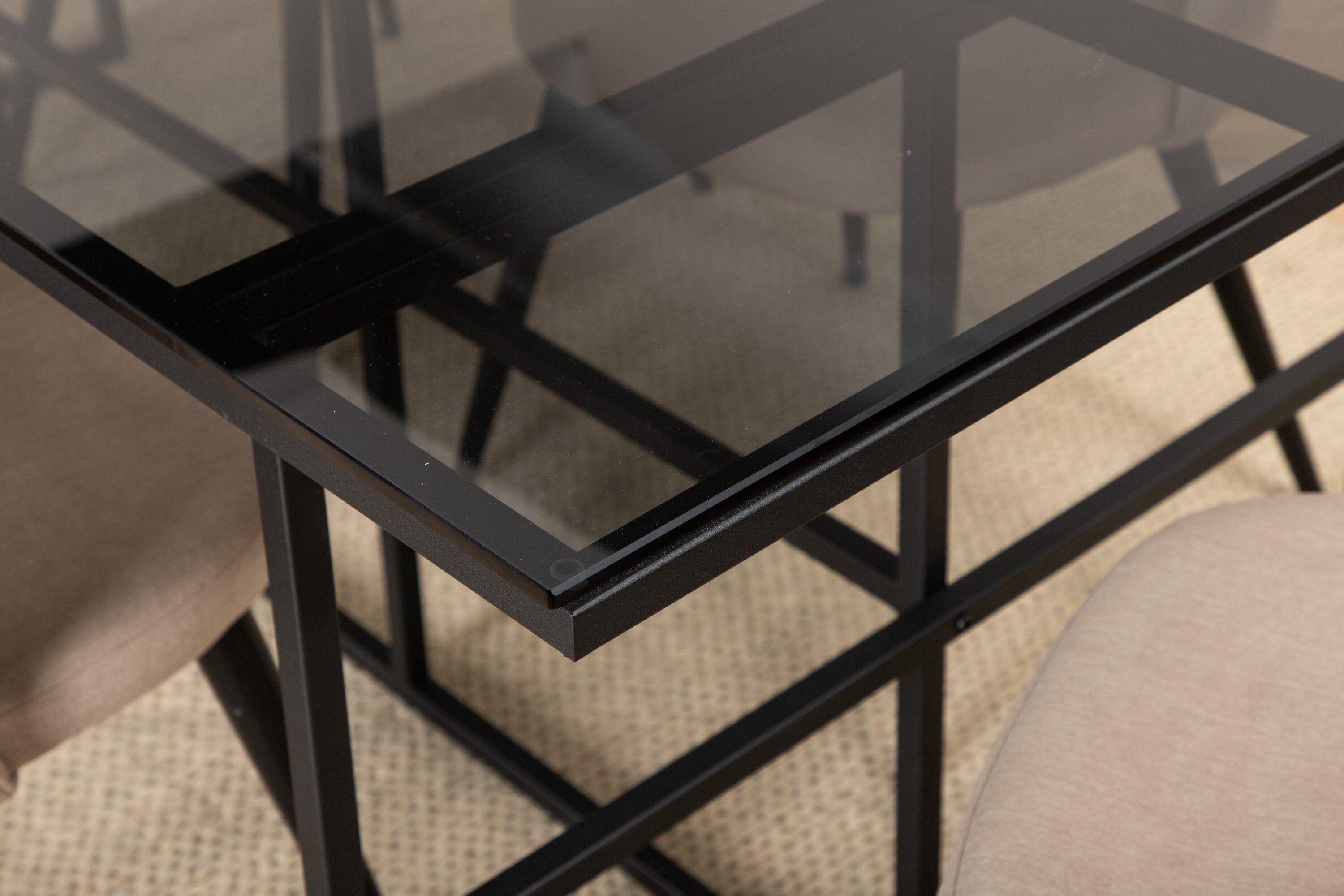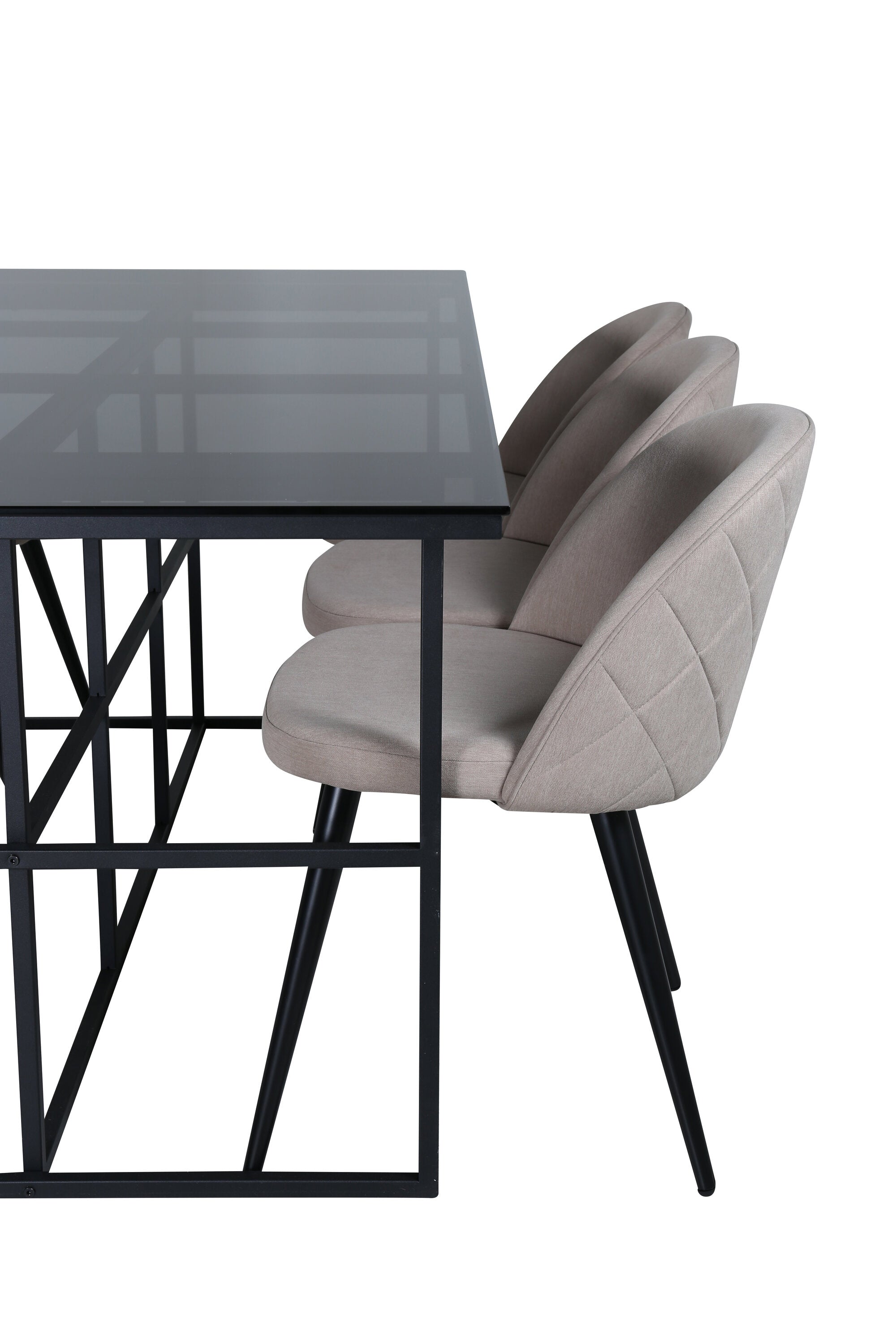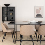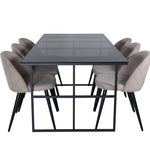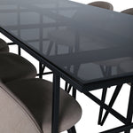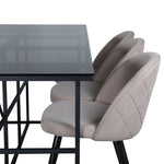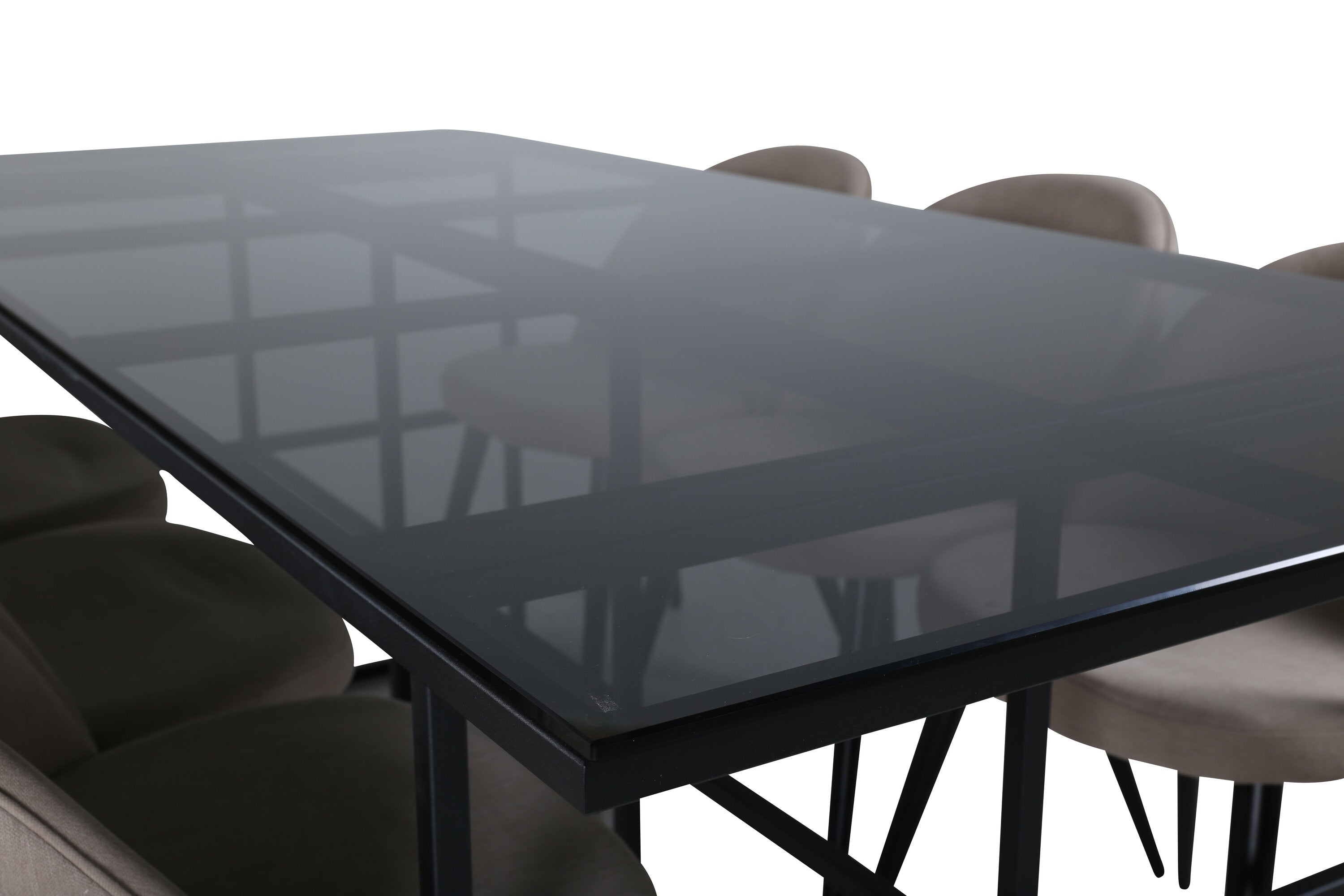 Jídelní stůl Leif , Černá Černé kouřové kouřové sklo + židle sametové stehy , Černá béžová látka (polyesterové prádlo)_6