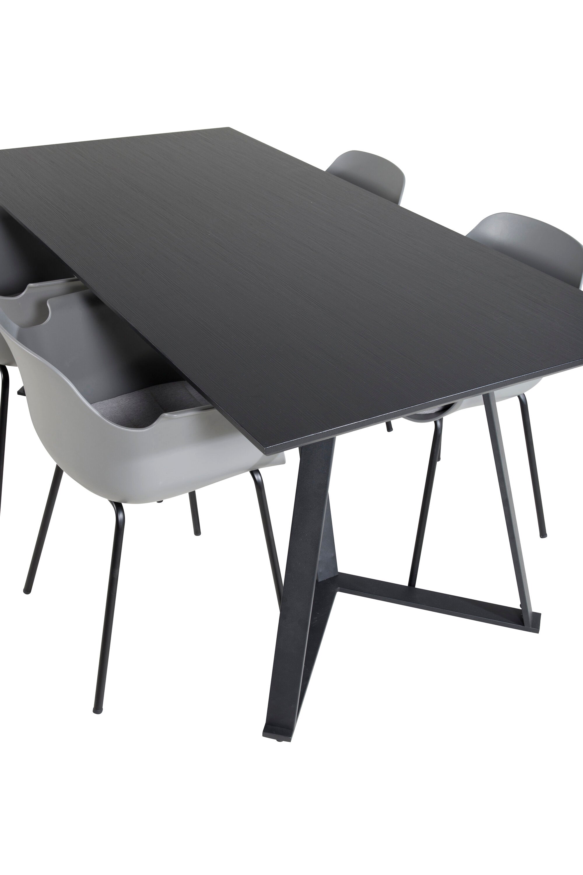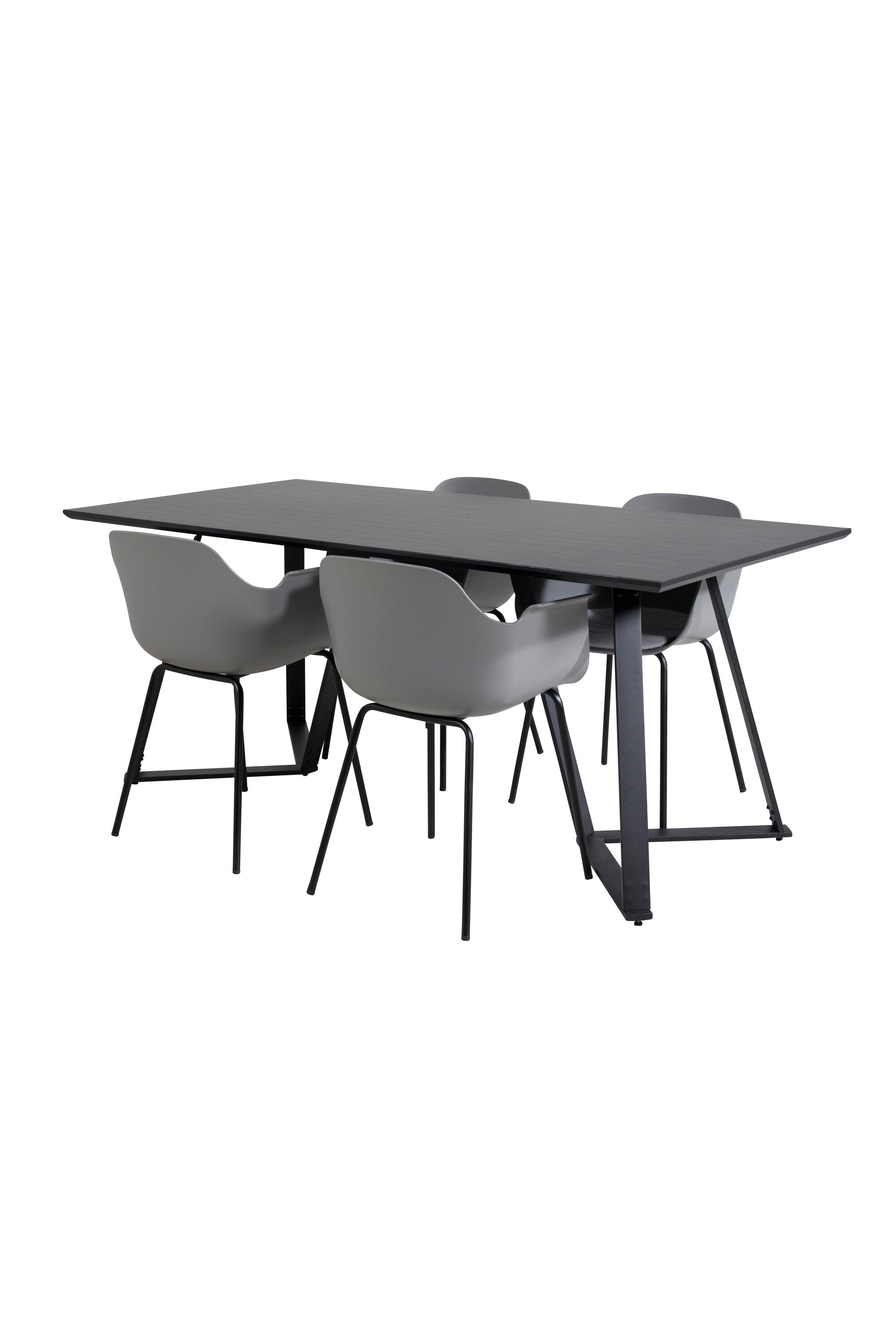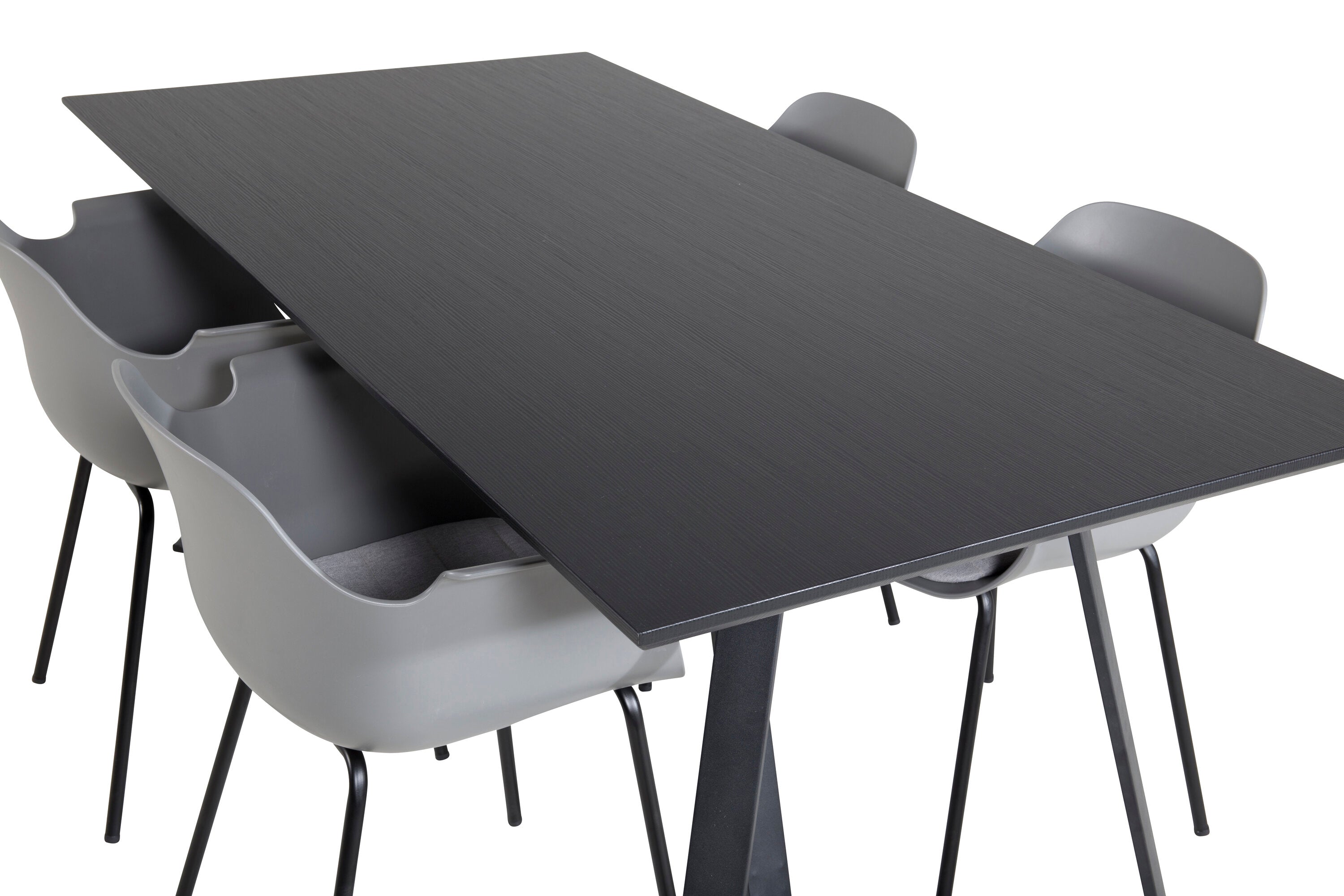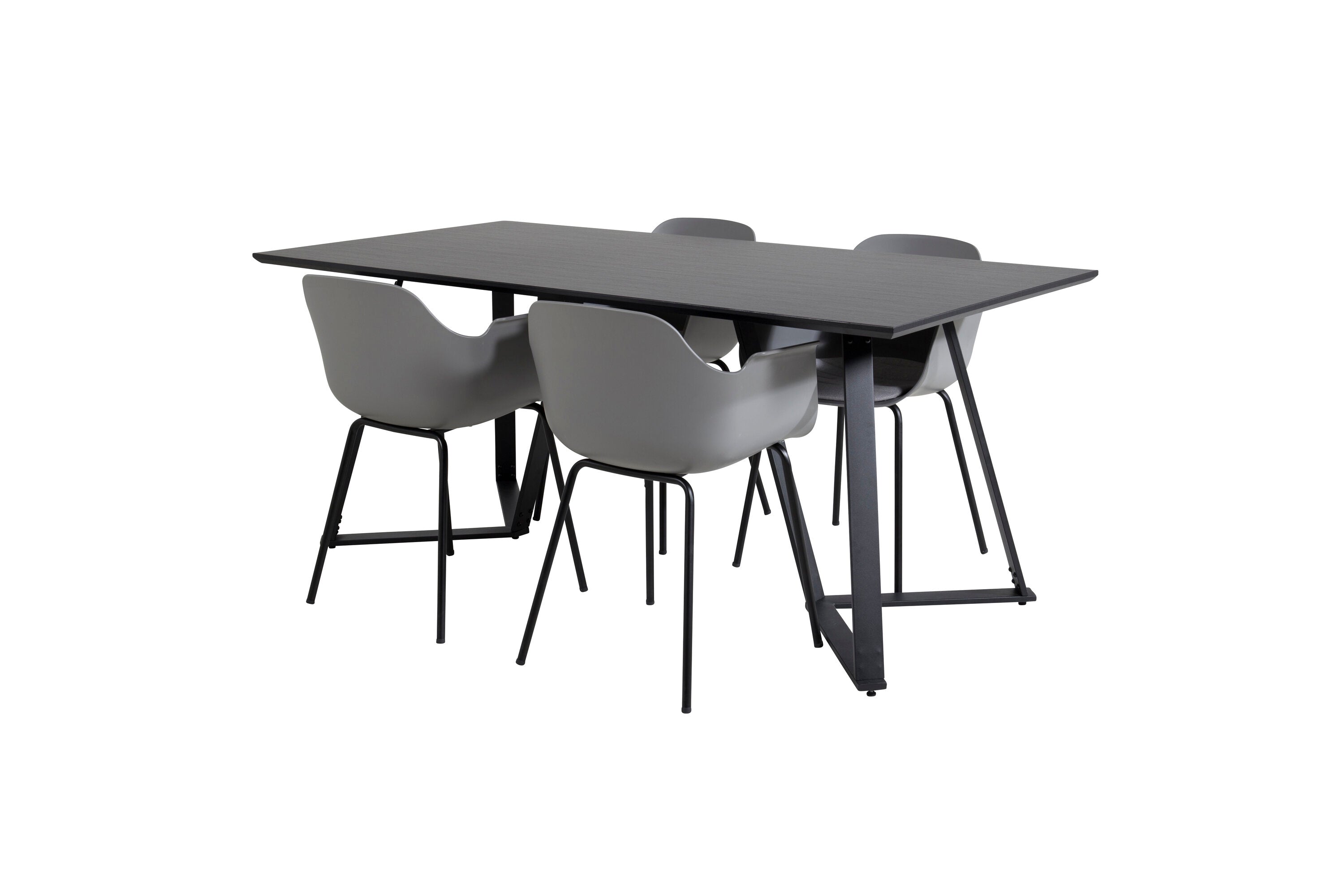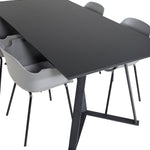 Jídelní stůl Marina - černá deska / černé nohy + pohodlná plastová jídelní židle - černé nohy - šedý plast_4