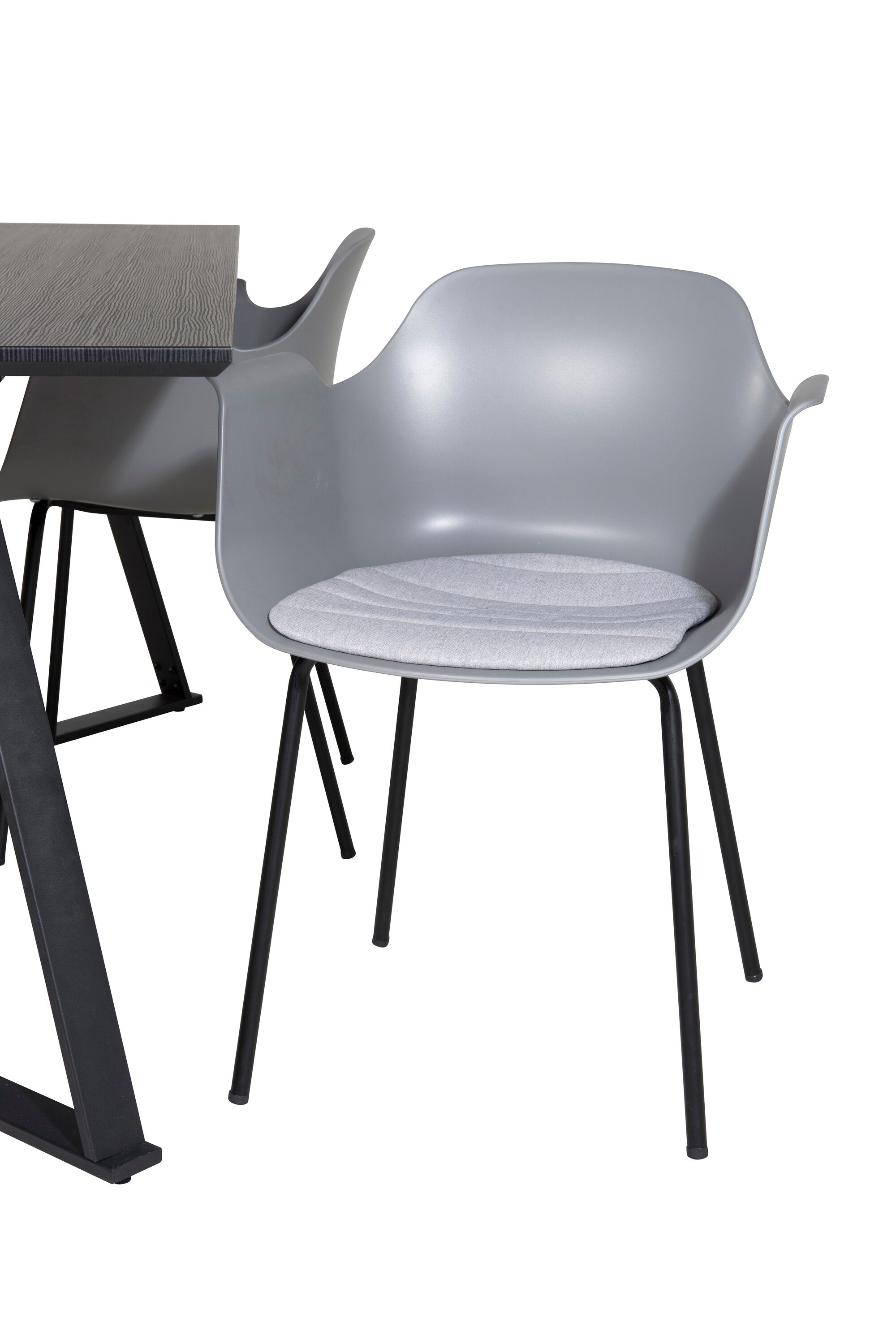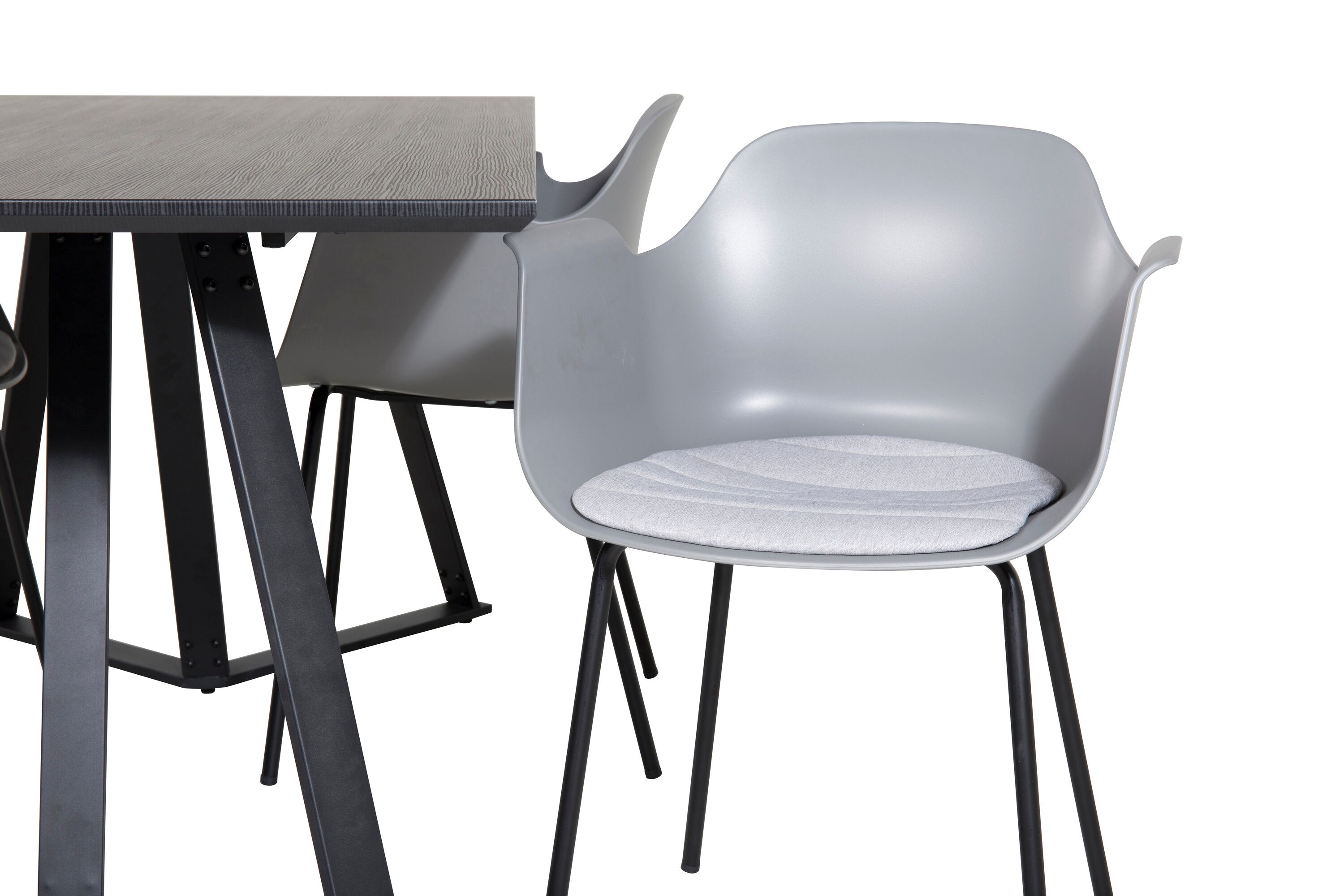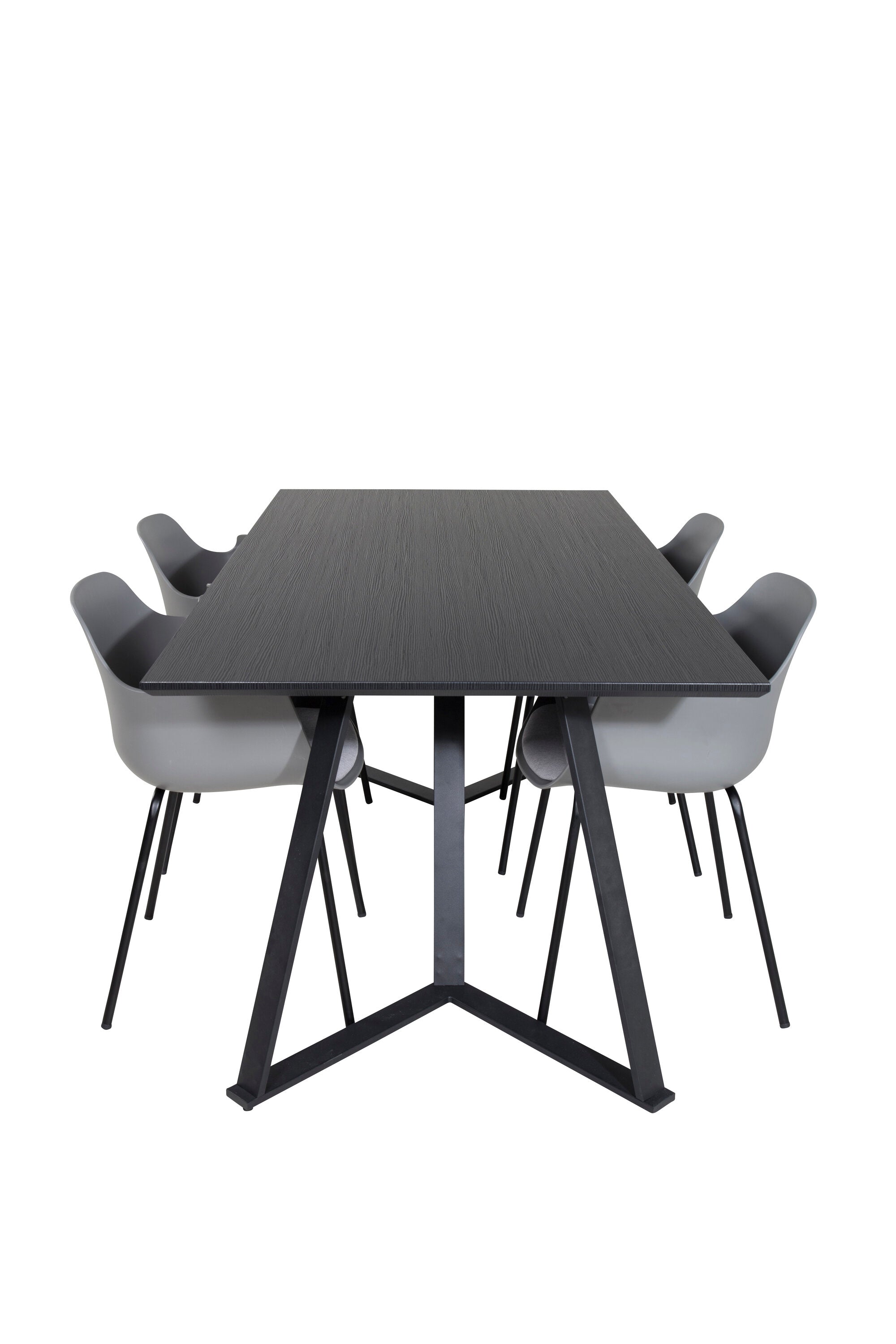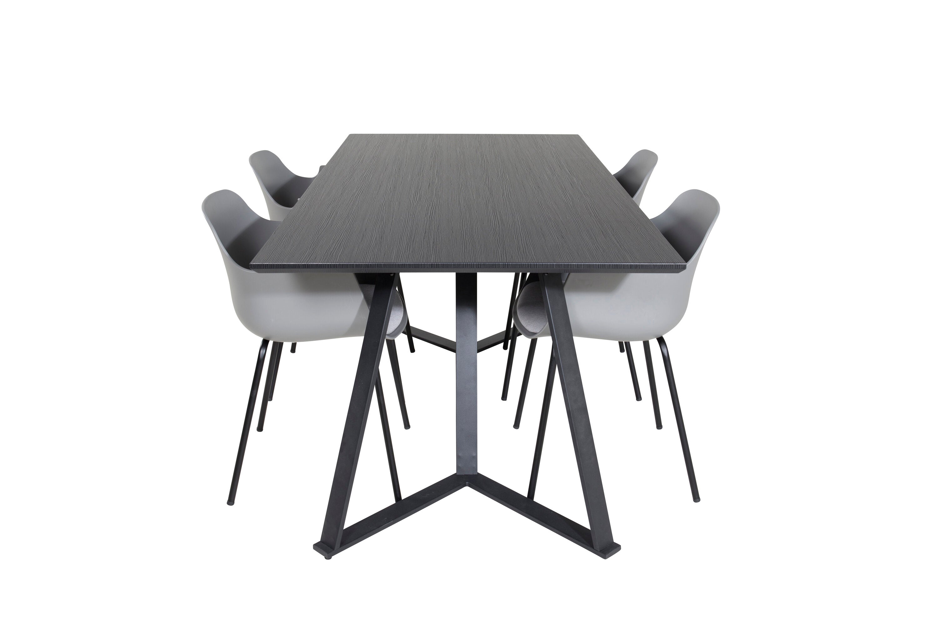 Jídelní stůl Marina - černá deska / černé nohy + pohodlná plastová jídelní židle - černé nohy - šedý plast_4