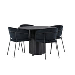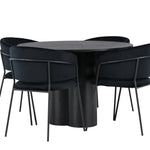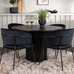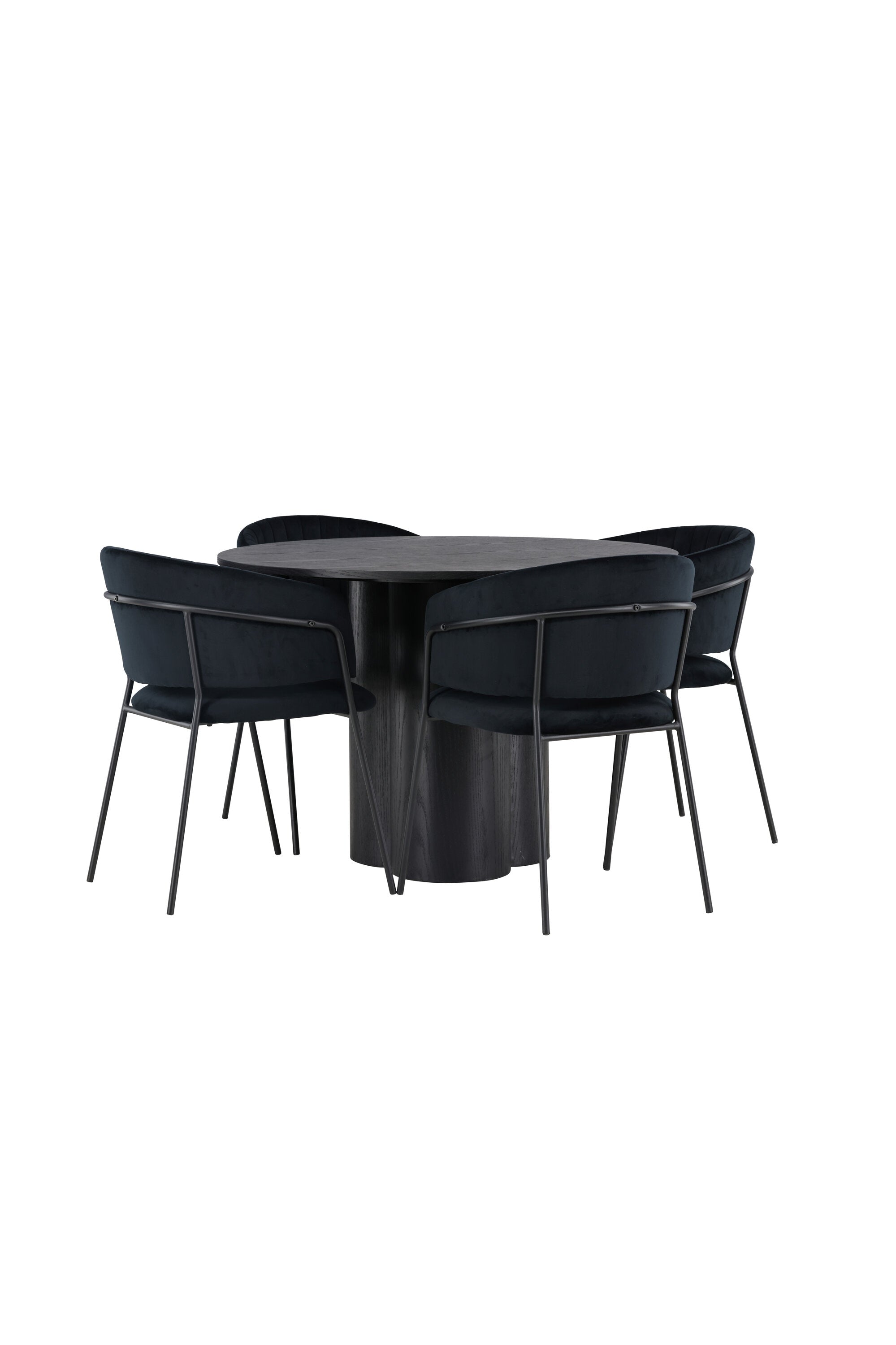 Náš černý jídelní stůl Olivia je opravdu pohledný. Tenký a kulatý horní povrch vyrobený z odolného MDF poskytuje stylový kontrast k pevnému rámu stolu, který se skládá ze tří válcových nohou shromážděných uprostřed. Rozměry stolu jsou 110 cm.