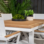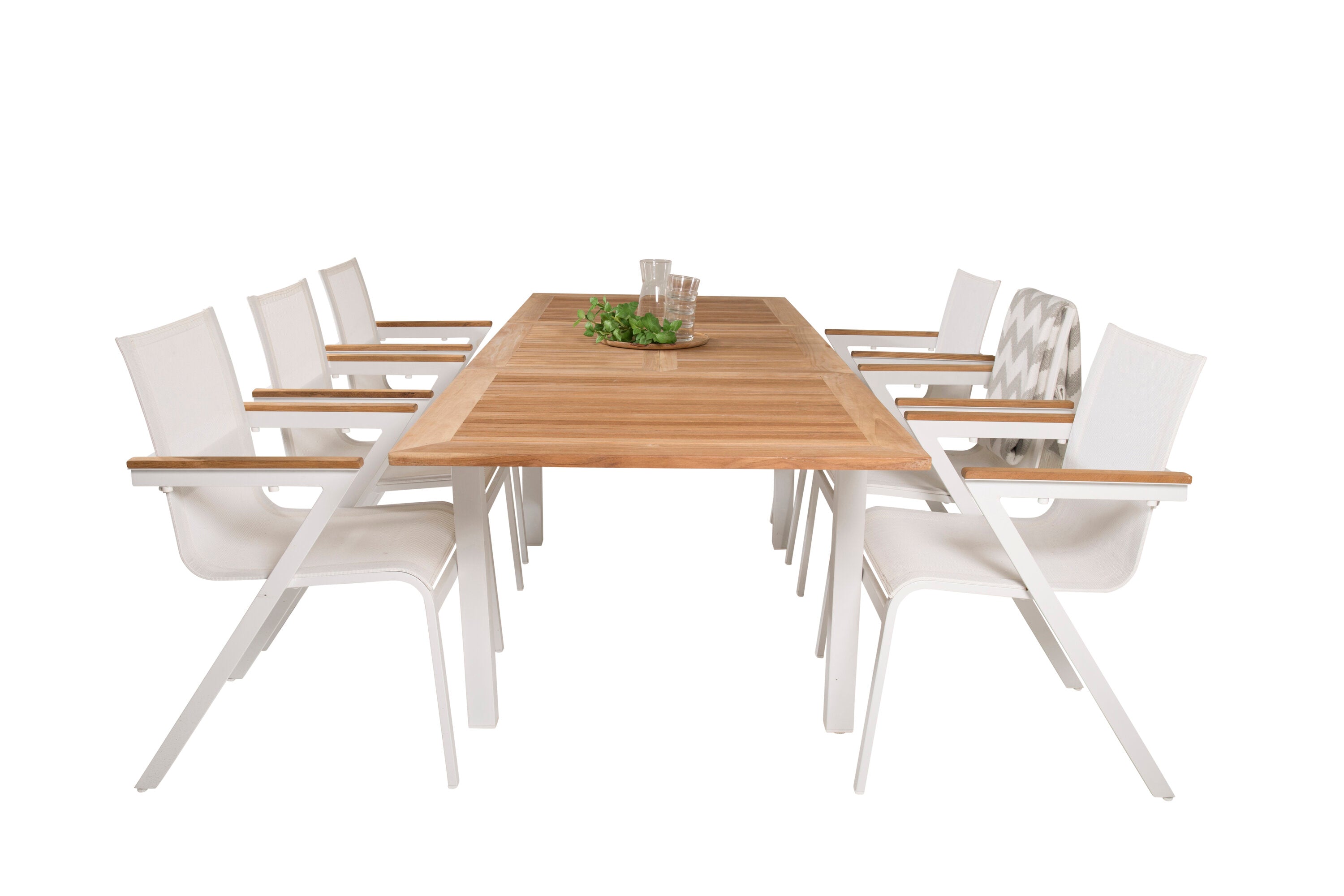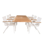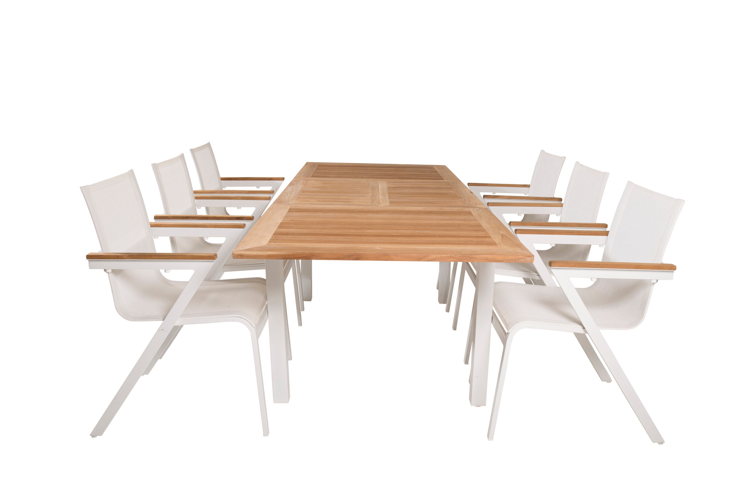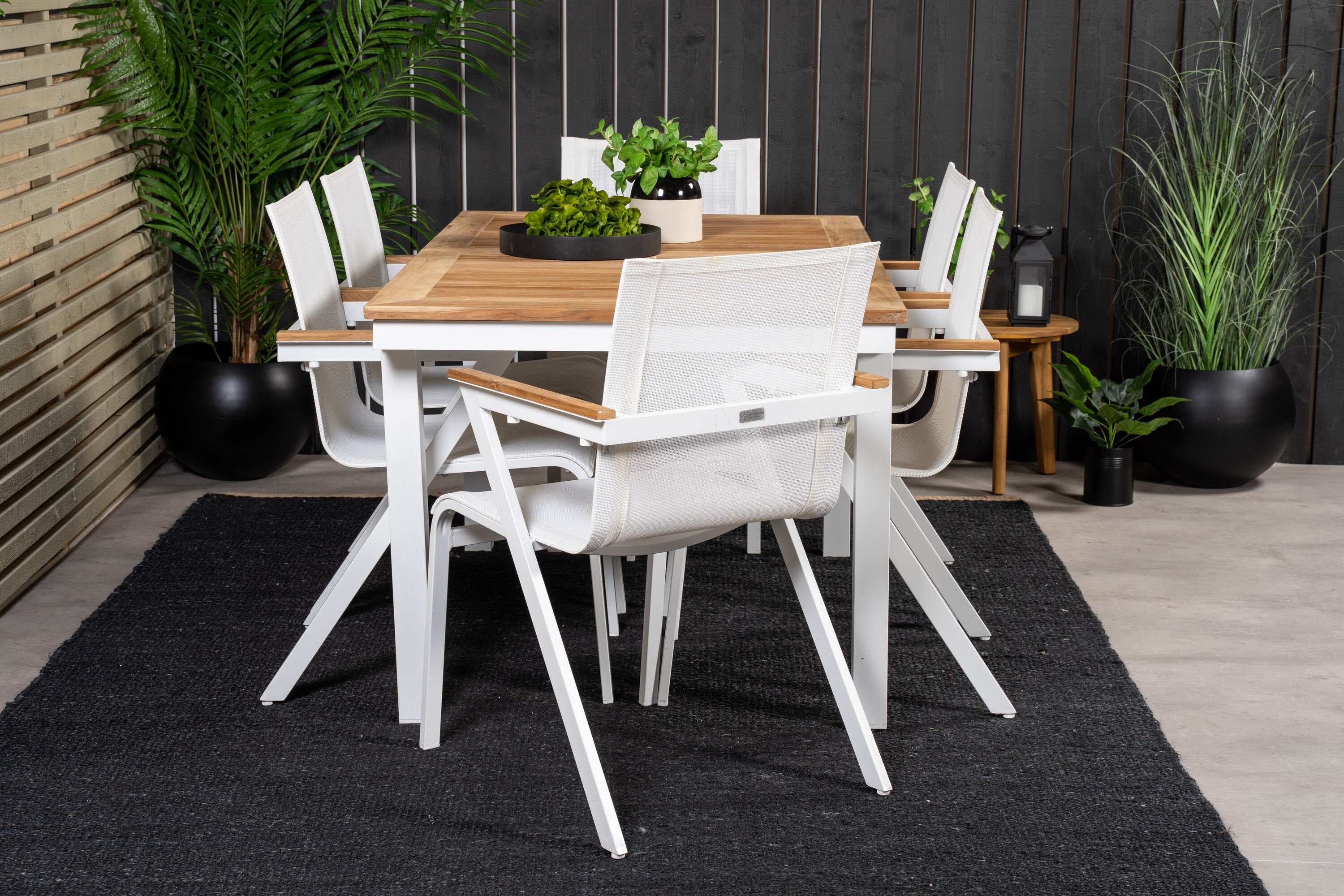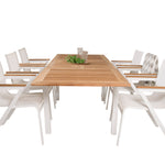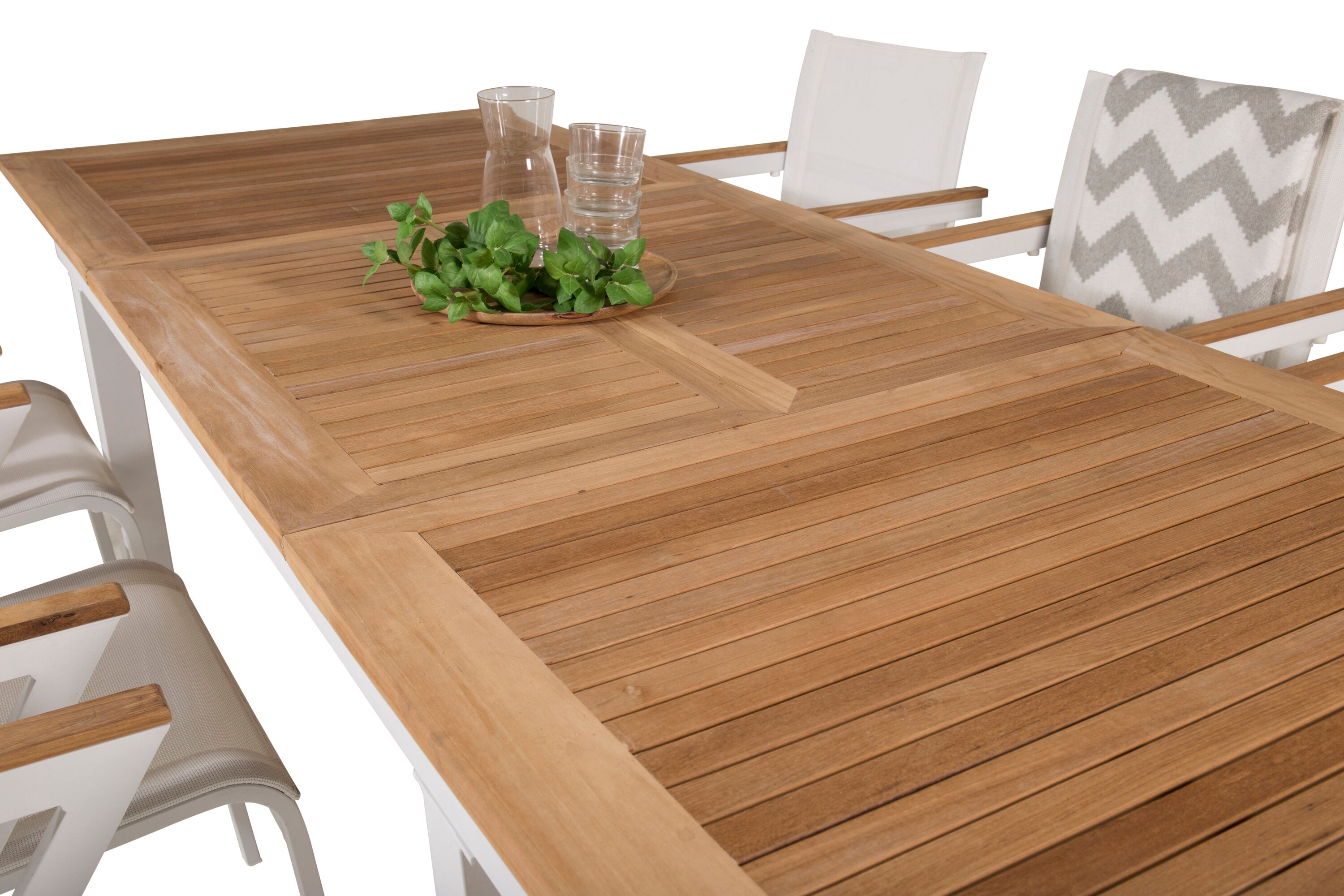 Jídelní stůl Panama 160/240*90 - Bílá Alu / Teak + křeslo Mexico (stohovatelné) - Bílá / Teak _6