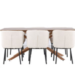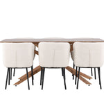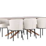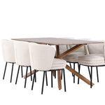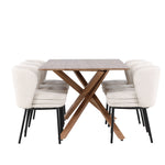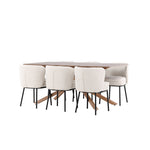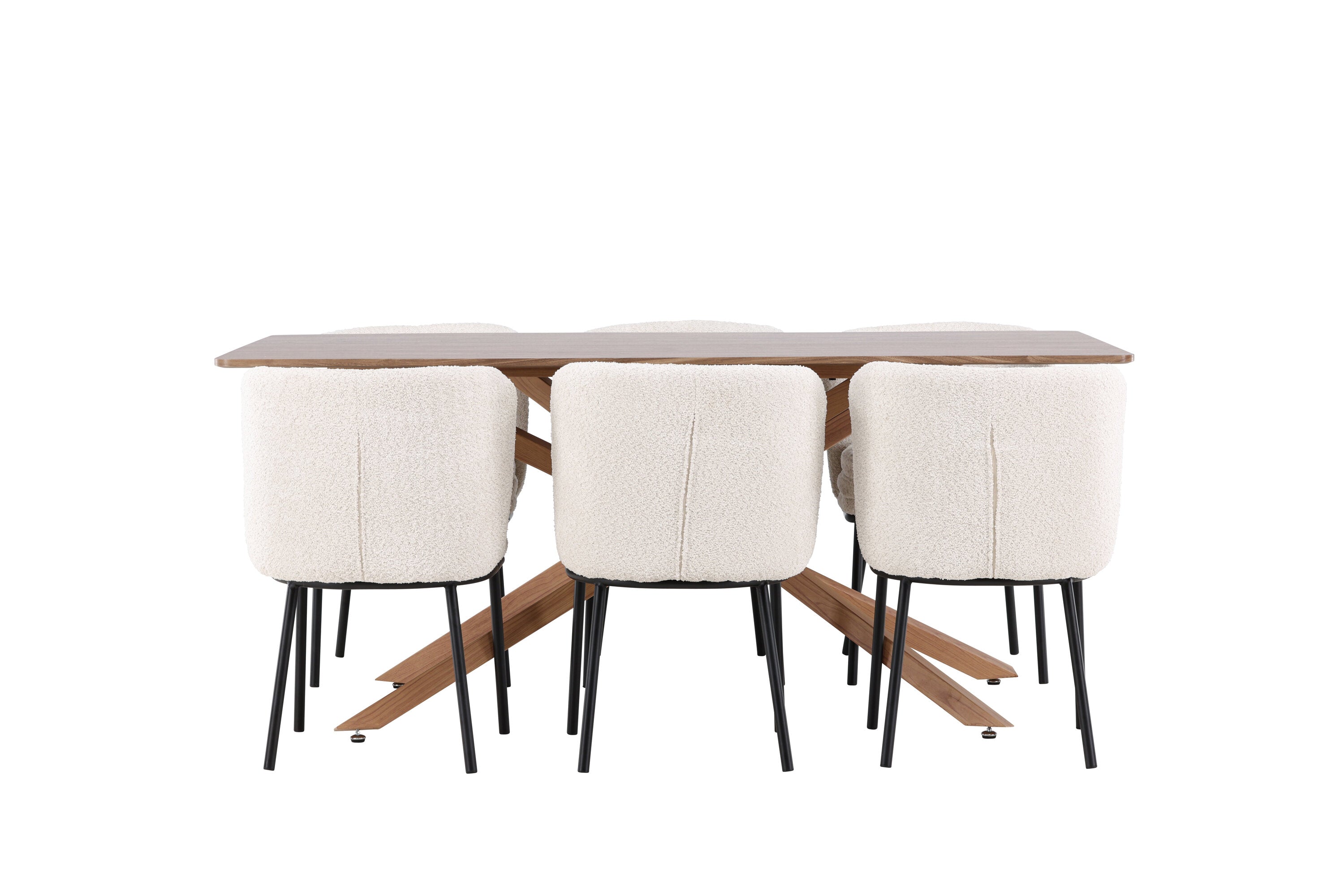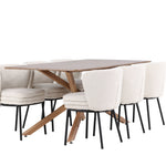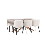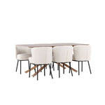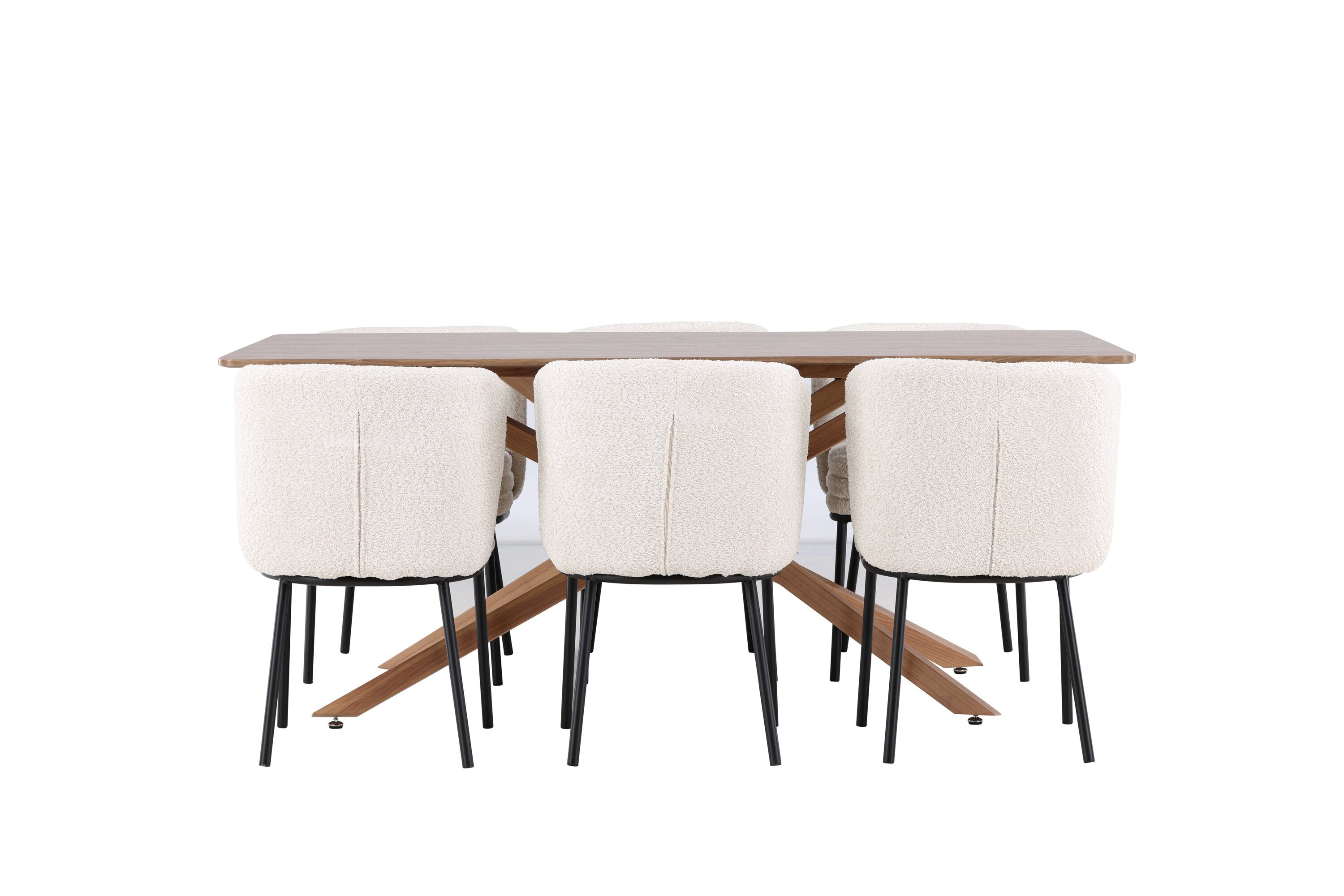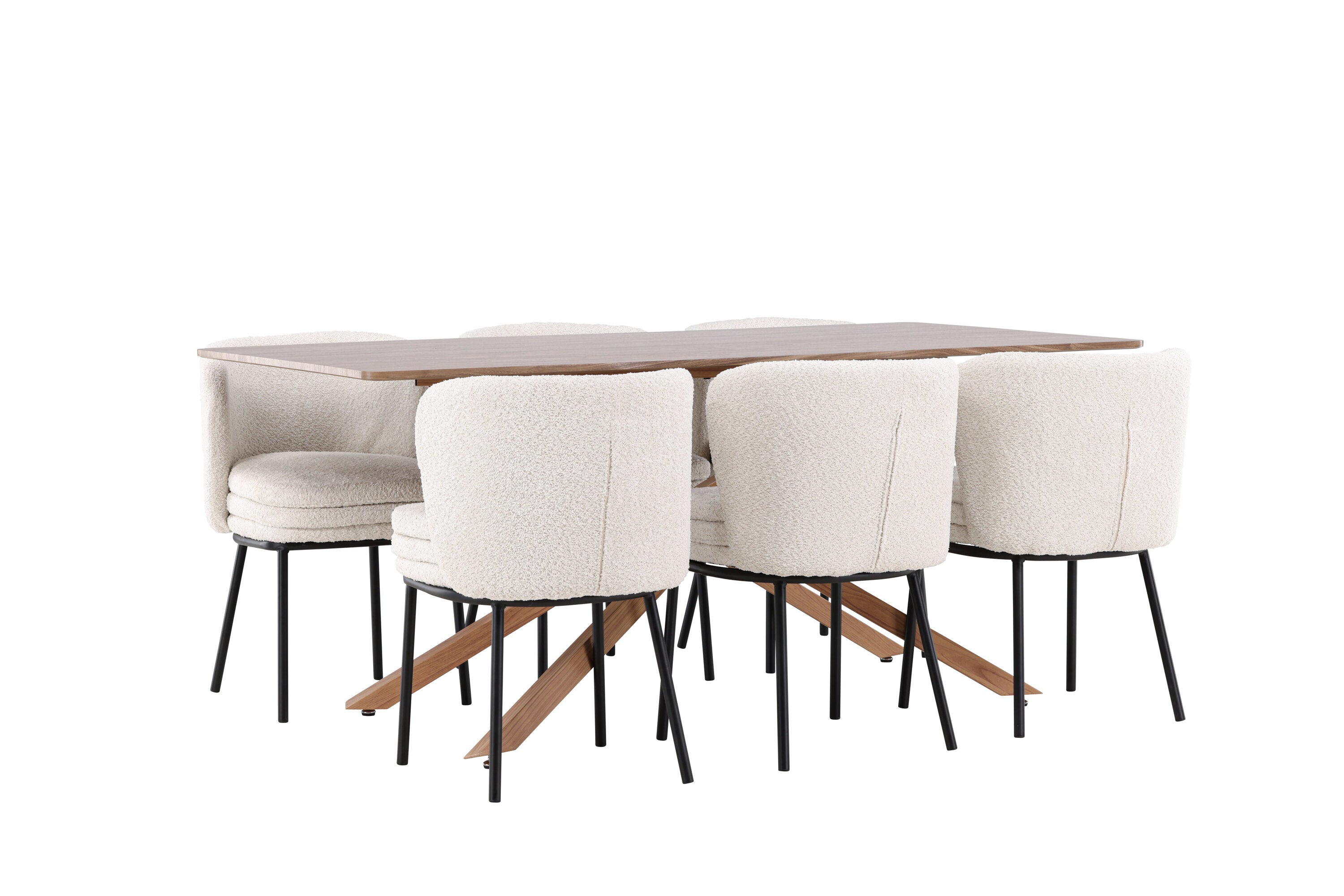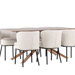 Objevte perfektní jídelní set s jídelními židlemi Agnes a jídelním stolem Piazza – spojení jednoduché krásy, stylu a funkčnosti pro váš domov. Jídelní židle Agnes má sedák v bílém buclé a elegantní černé ocelové nohy, které nabízejí moderní a sofistikovanou estetiku. Měkké a texturované sedadlo v buklé dodává hřejivý a příjemný pocit, zatímco černé ocelové nohy dodávají moderní nádech. Agnes vytváří harmonickou atmosféru a dodává vaší jídelně nebo kuchyni působivý vizuální efekt. Se svým elegantním designem a pohodlným sedákem je jídelní židle Agnes perfektní volbou pro posezení u jídelního stolu s rodinou a přáteli. Kompletní s jídelním stolem Piazza - harmonický kus nábytku pro socializaci a komunitu. S velkorysými rozměry 180x90 cm nabízí Piazza dostatek prostoru pro přivítání rodiny i přátel. Stůl v moka barvě dodává místnosti zemitou a hřejivou atmosféru, ideální pro útulná setkání a dlouhé večeře. Jídelní stůl Piazza spojuje skandinávský design s jednoduchostí a elegancí. Vytvořte příjemnou atmosféru a užijte si komunitu kolem této jídelní soupravy. Ať už pro každodenní jídlo nebo speciální příležitosti, jídelní židle Agnes a jídelní stůl Piazza budou ústřední součástí vašeho domova, kde se daří pospolitosti i stylu.
