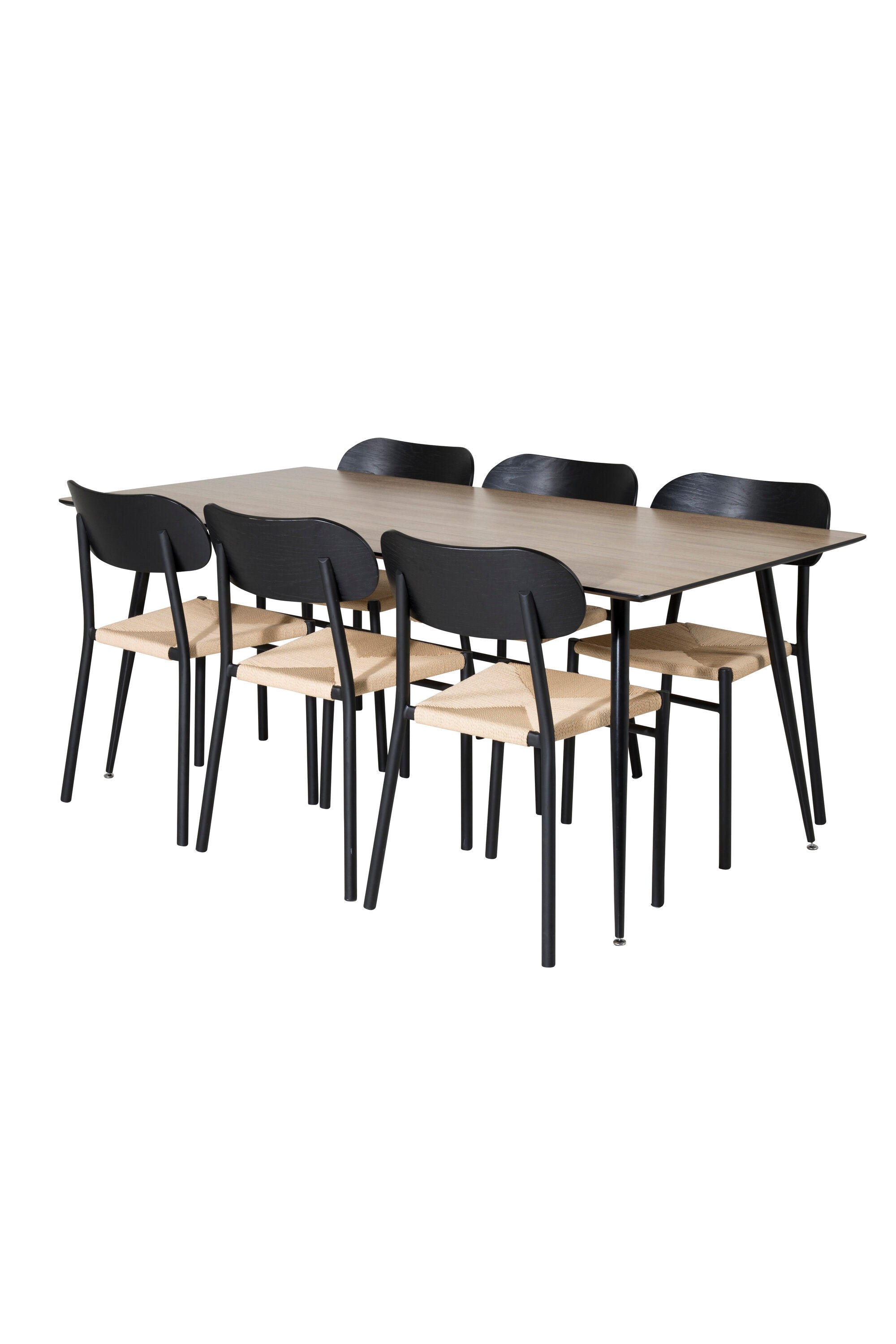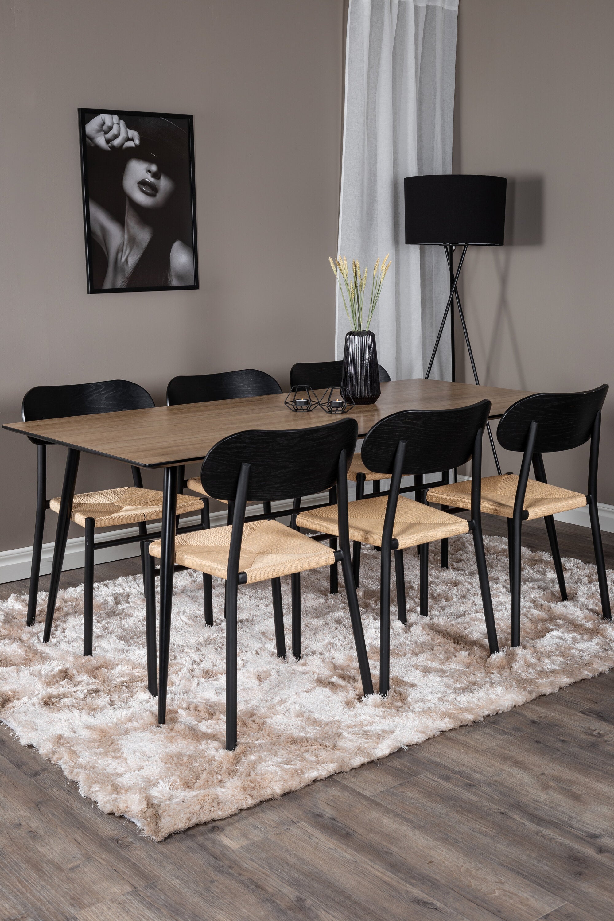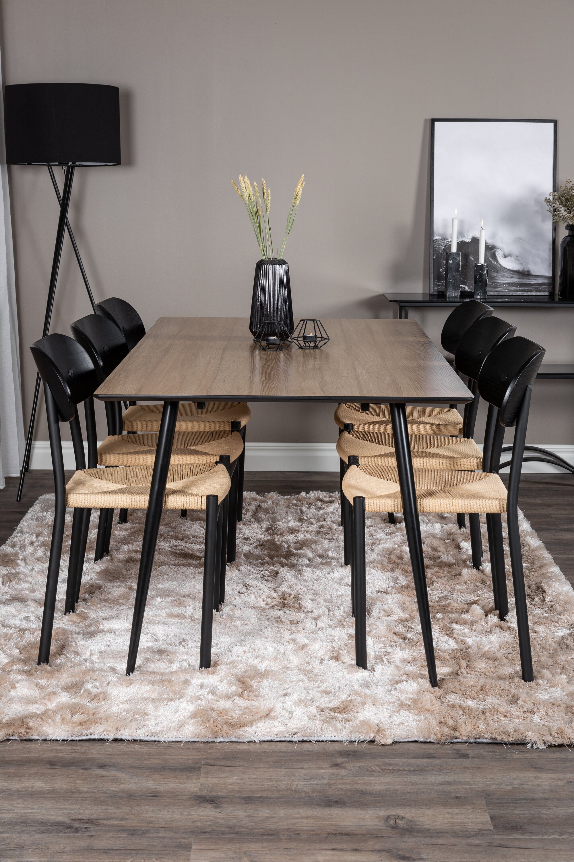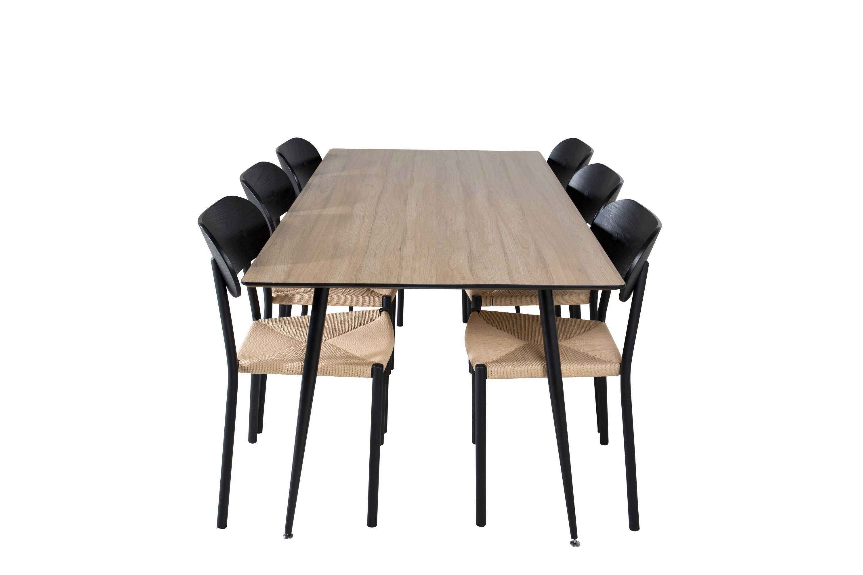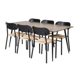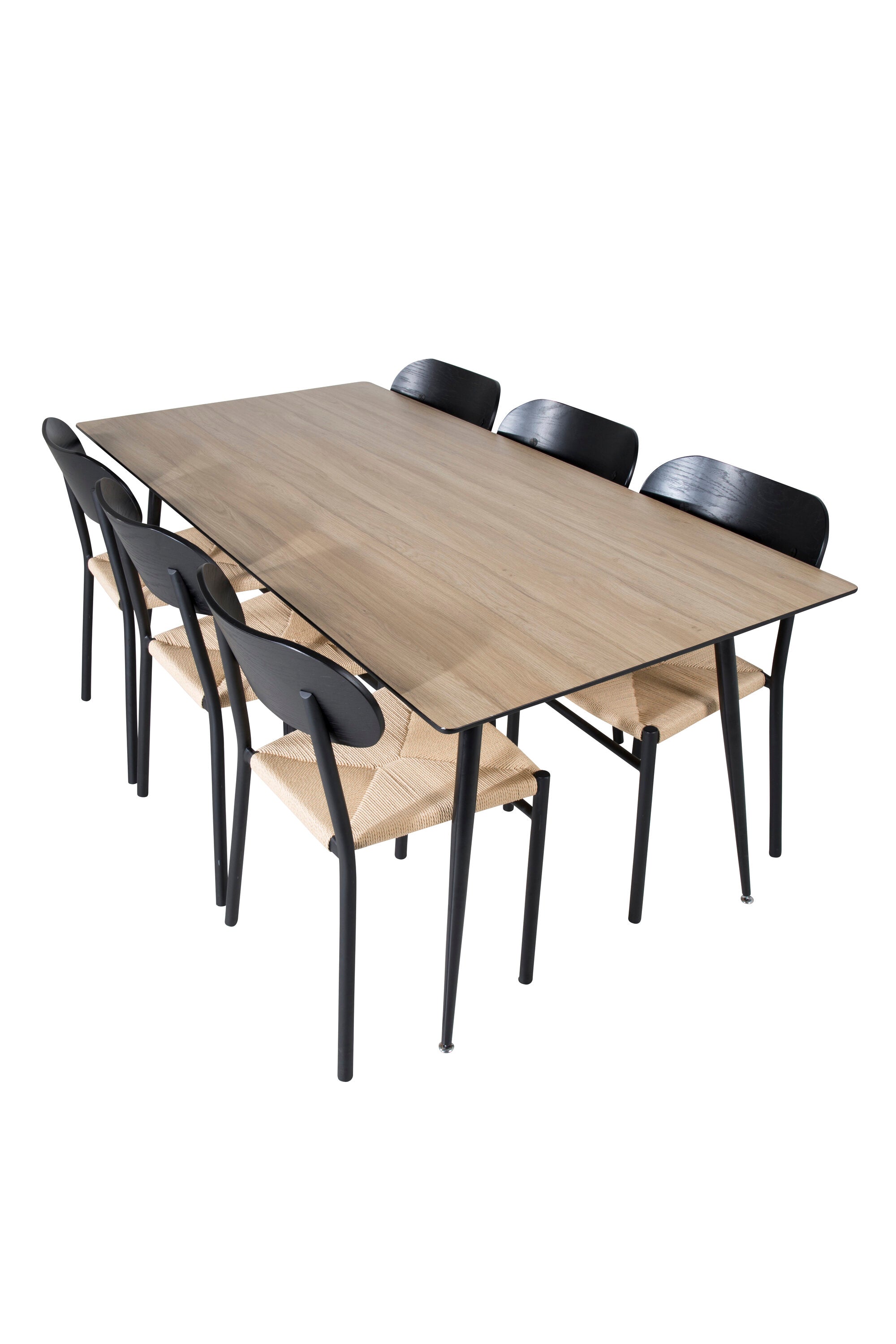 Jídelní stůl Silar - 180 cm - "Wood Look" melamin / černé nohy + jídelní židle Polly - černá / přírodní _6