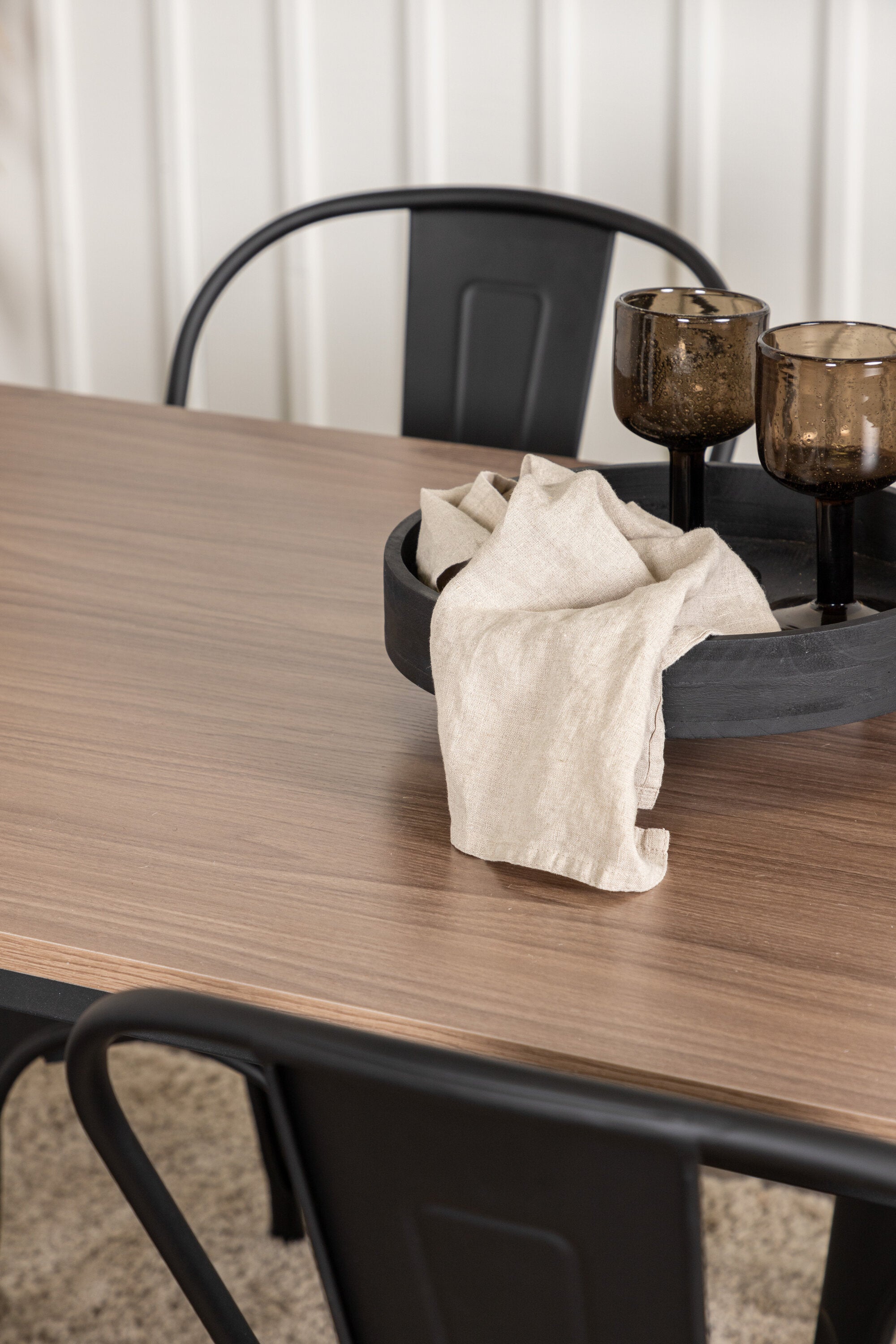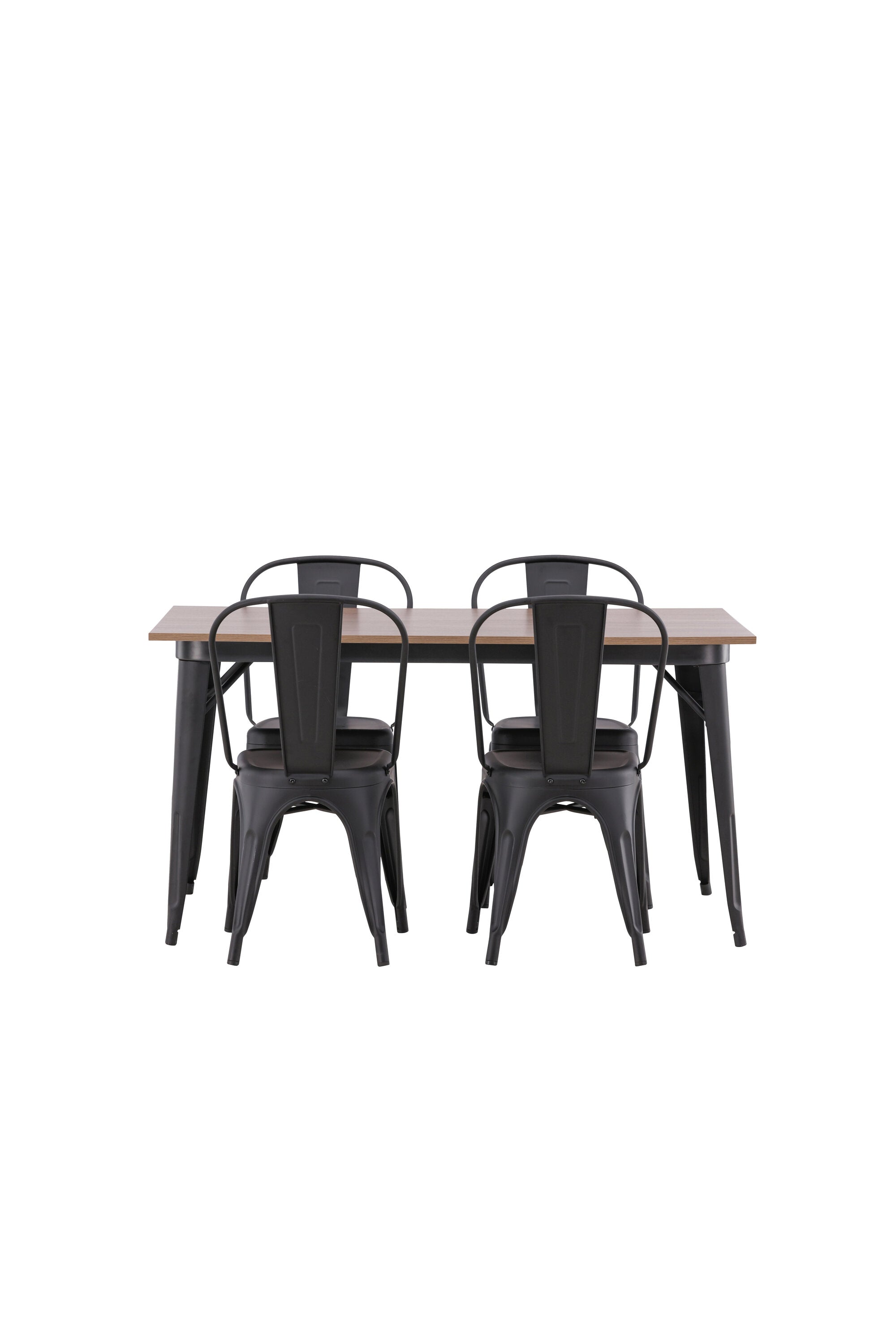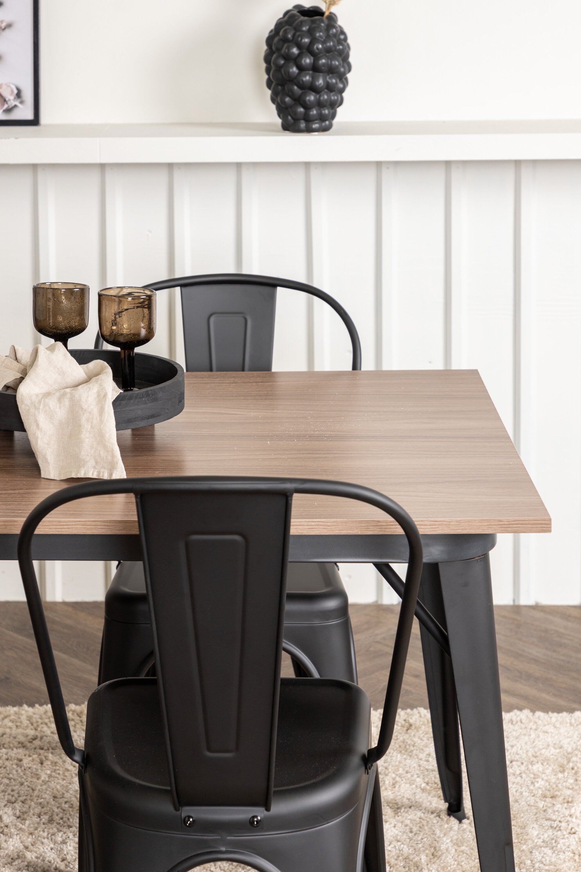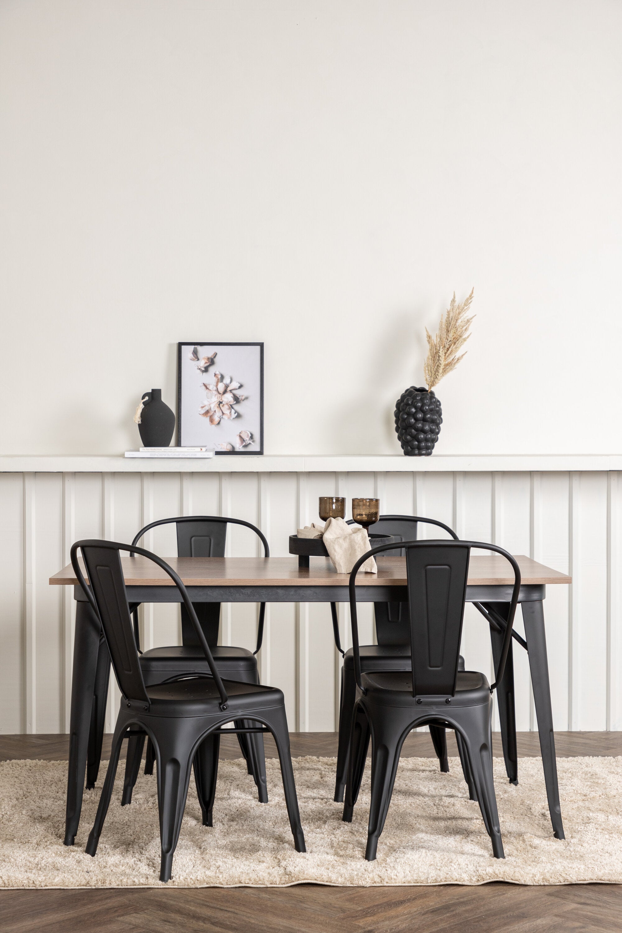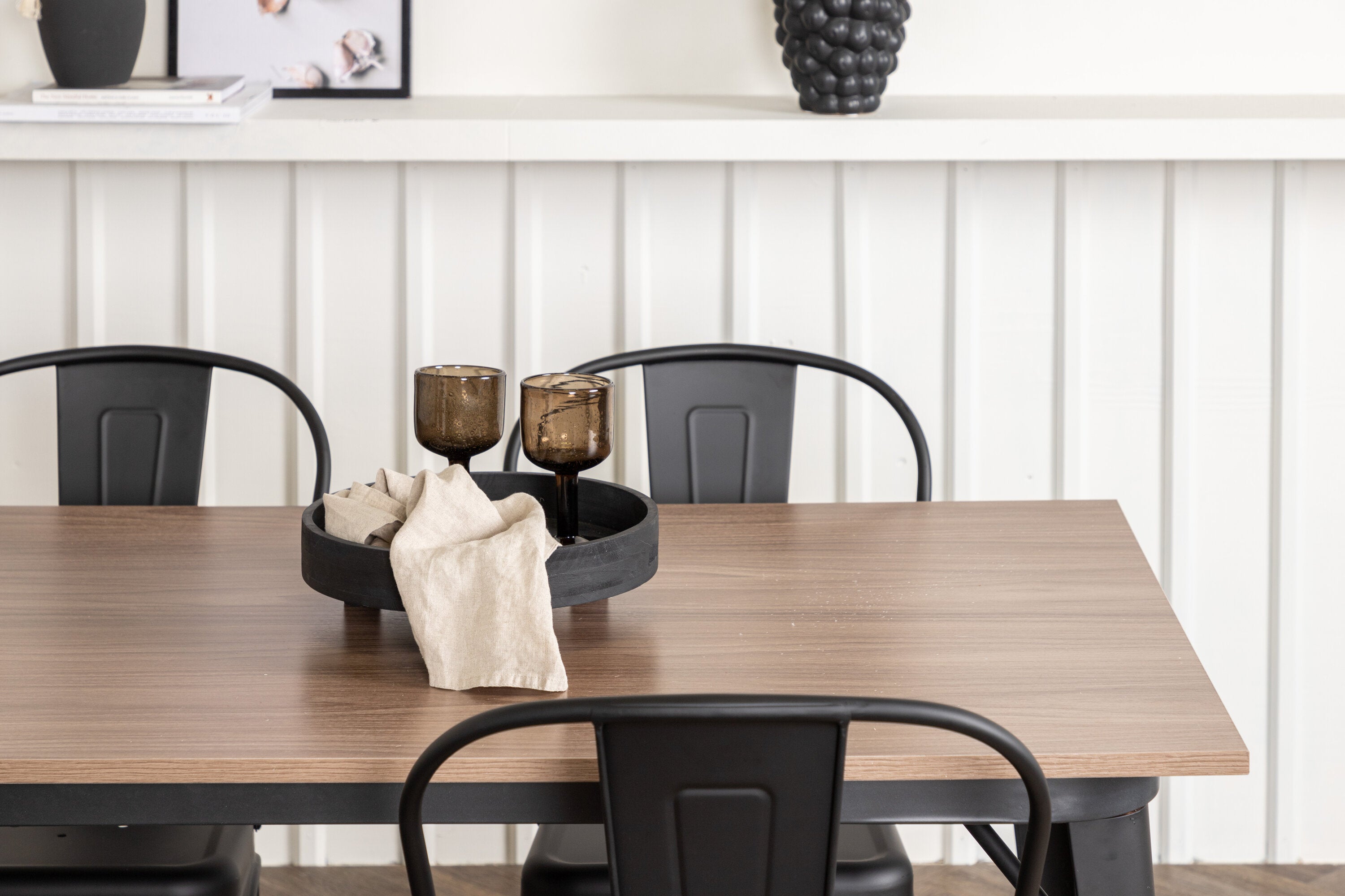 Jídelní stůl Tempe - Černá / Ořech MDF + Jídelní židle Tempe - Matná černá / Kov _4