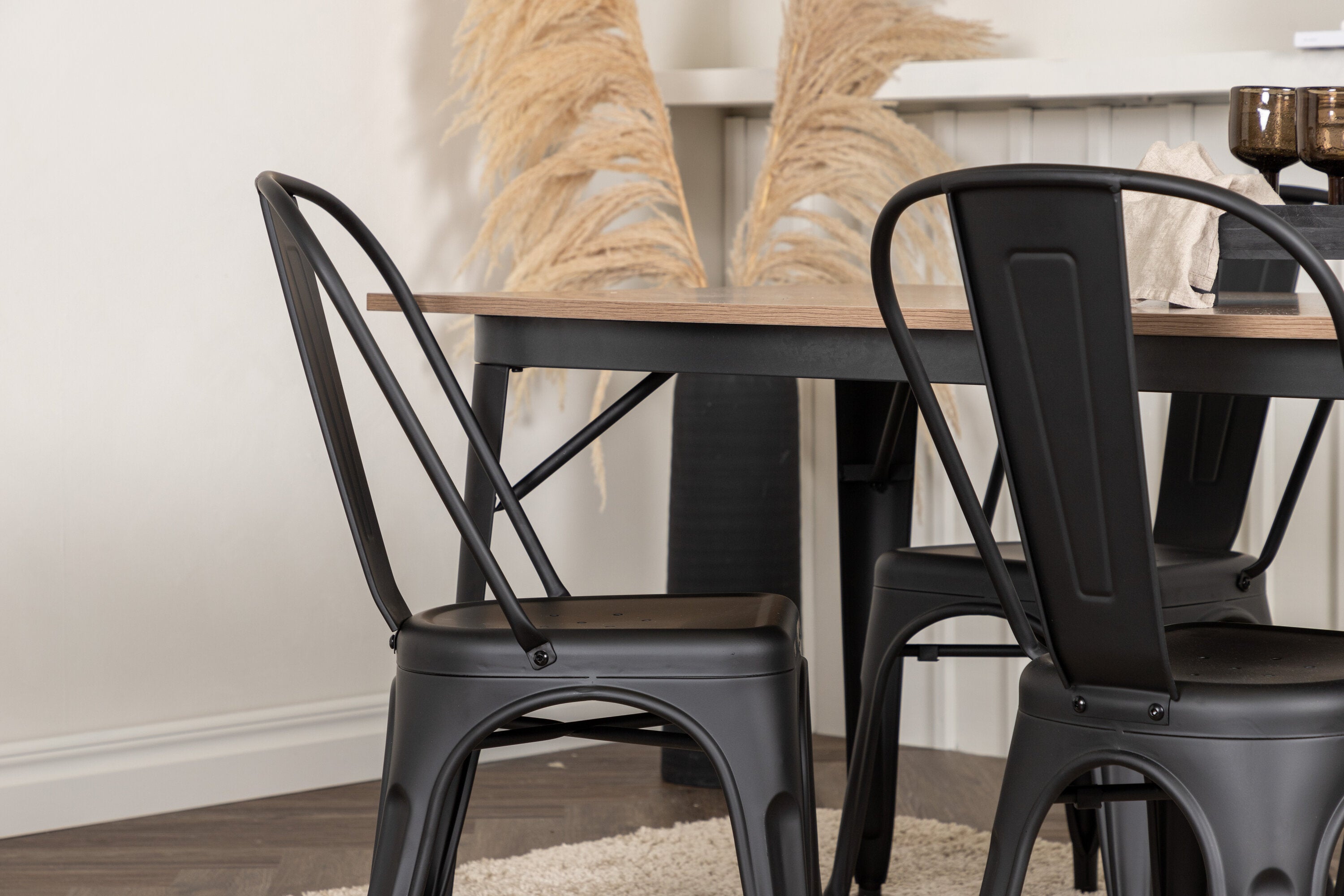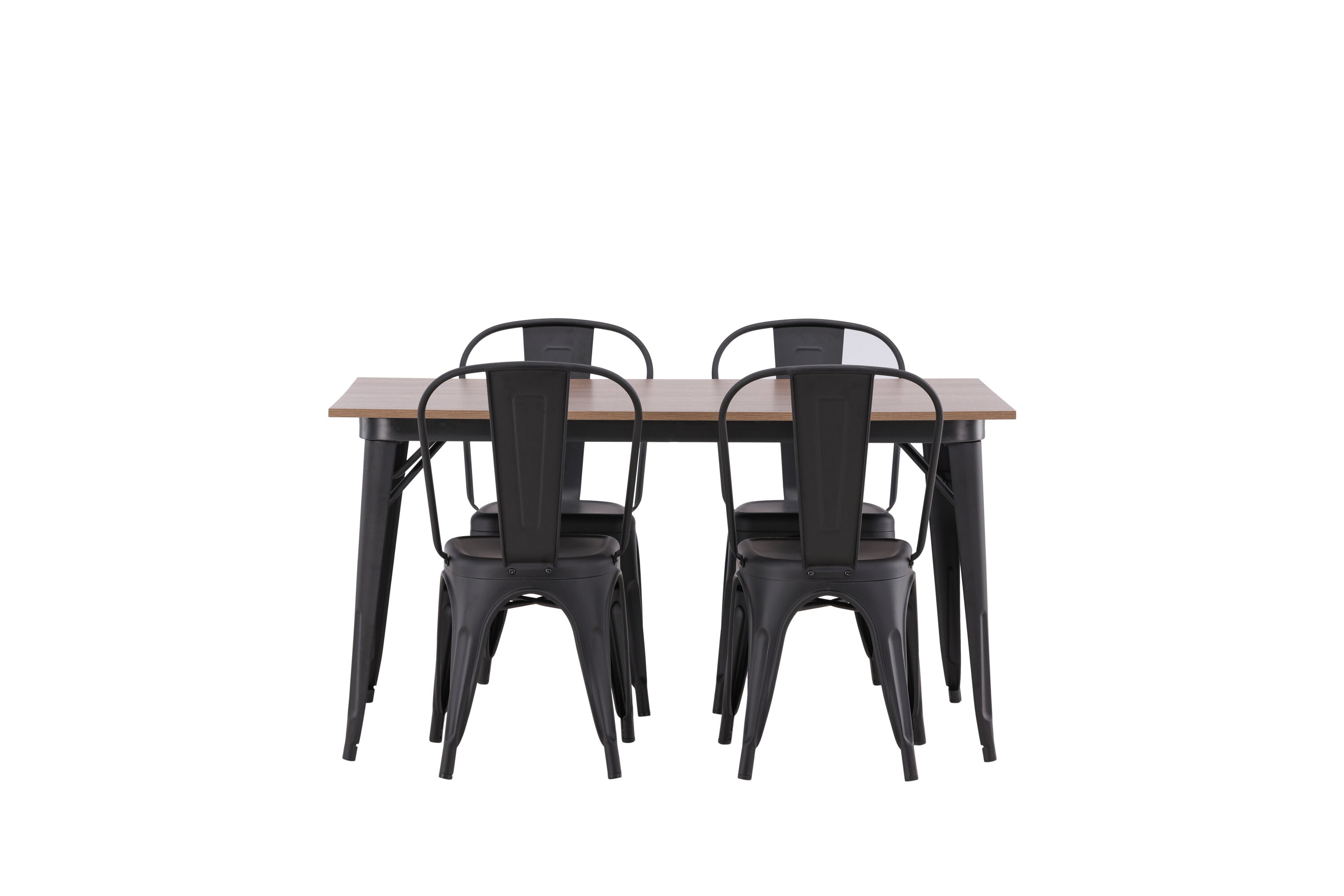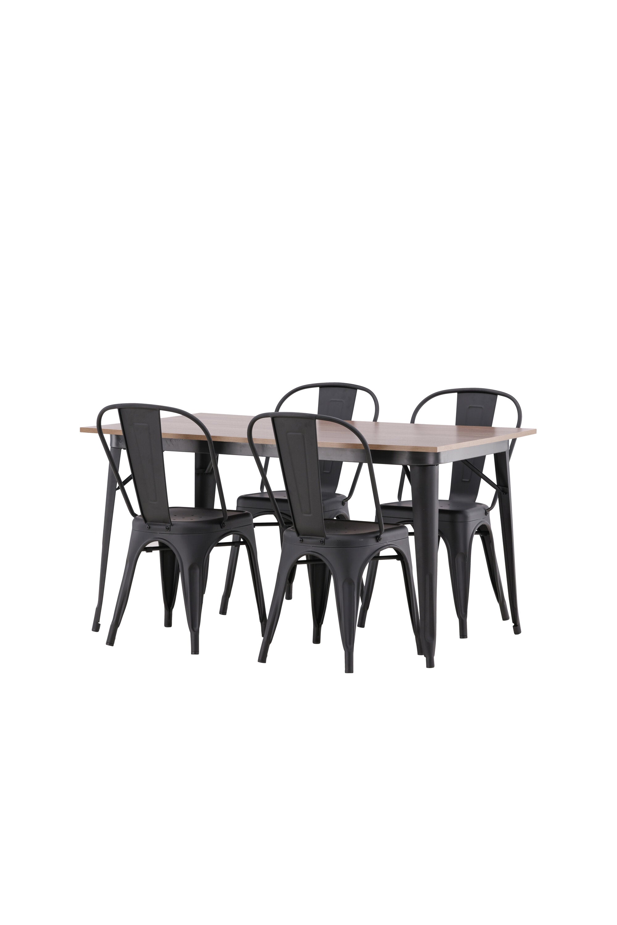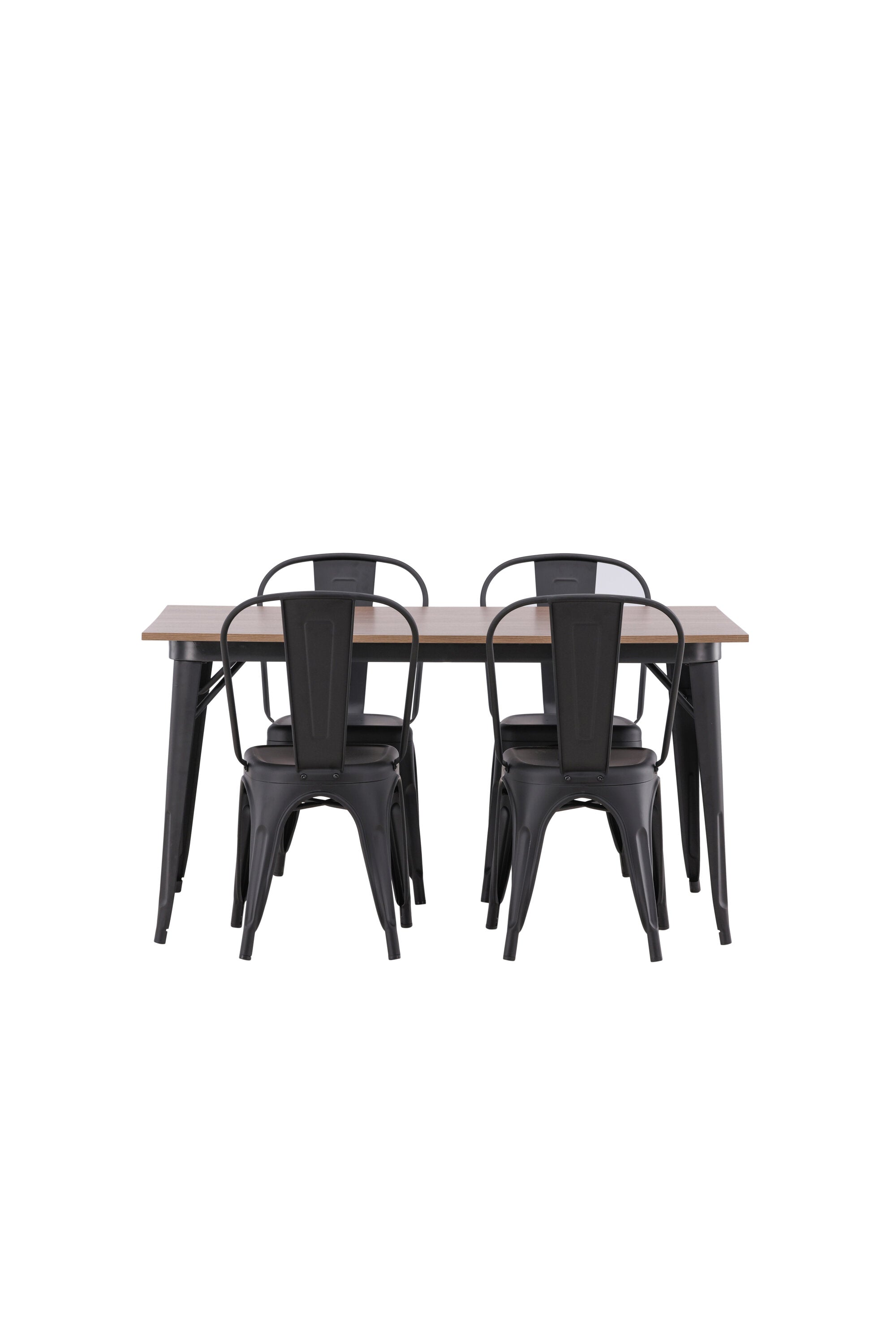 Jídelní stůl Tempe - Černá / Ořech MDF + Jídelní židle Tempe - Matná černá / Kov _4