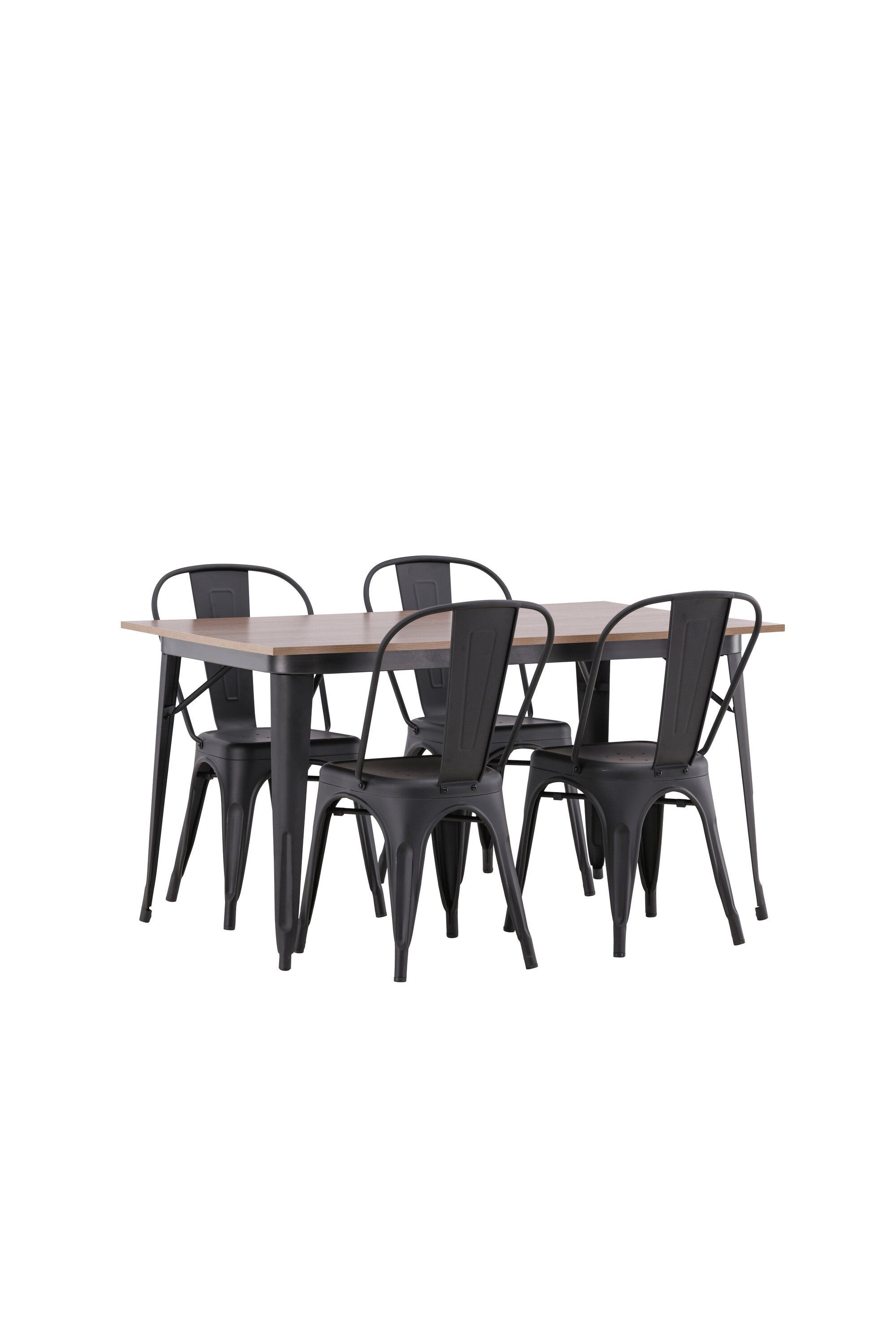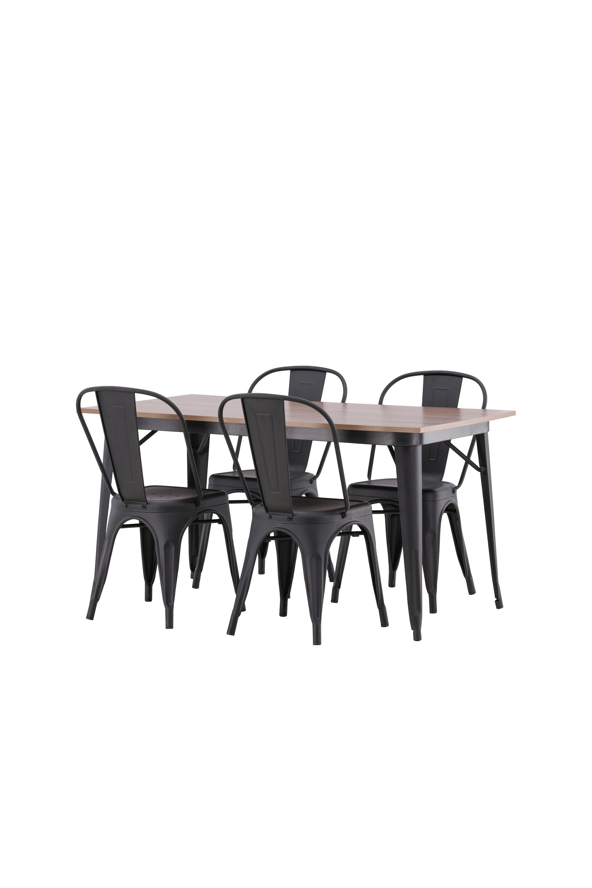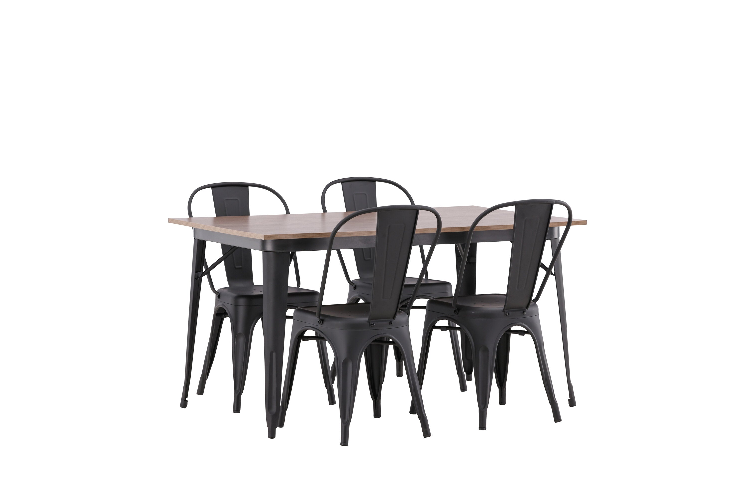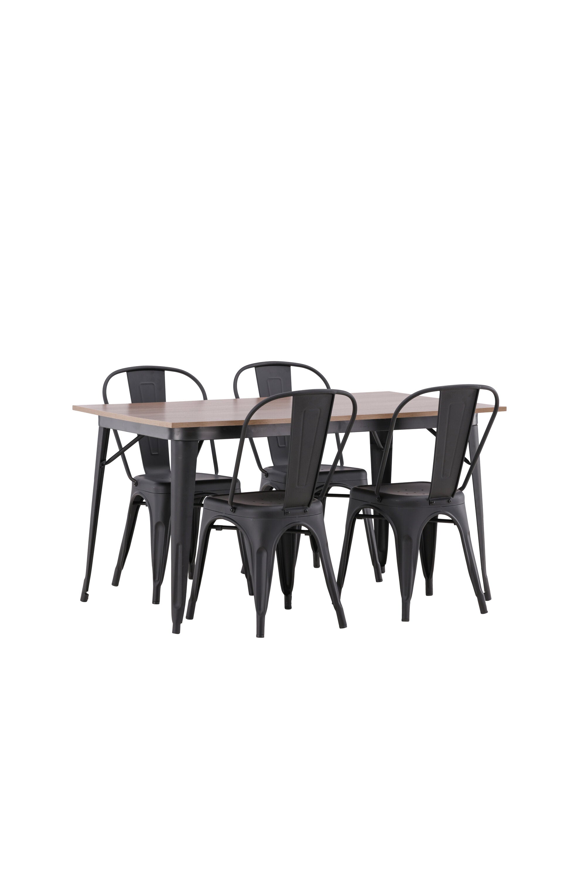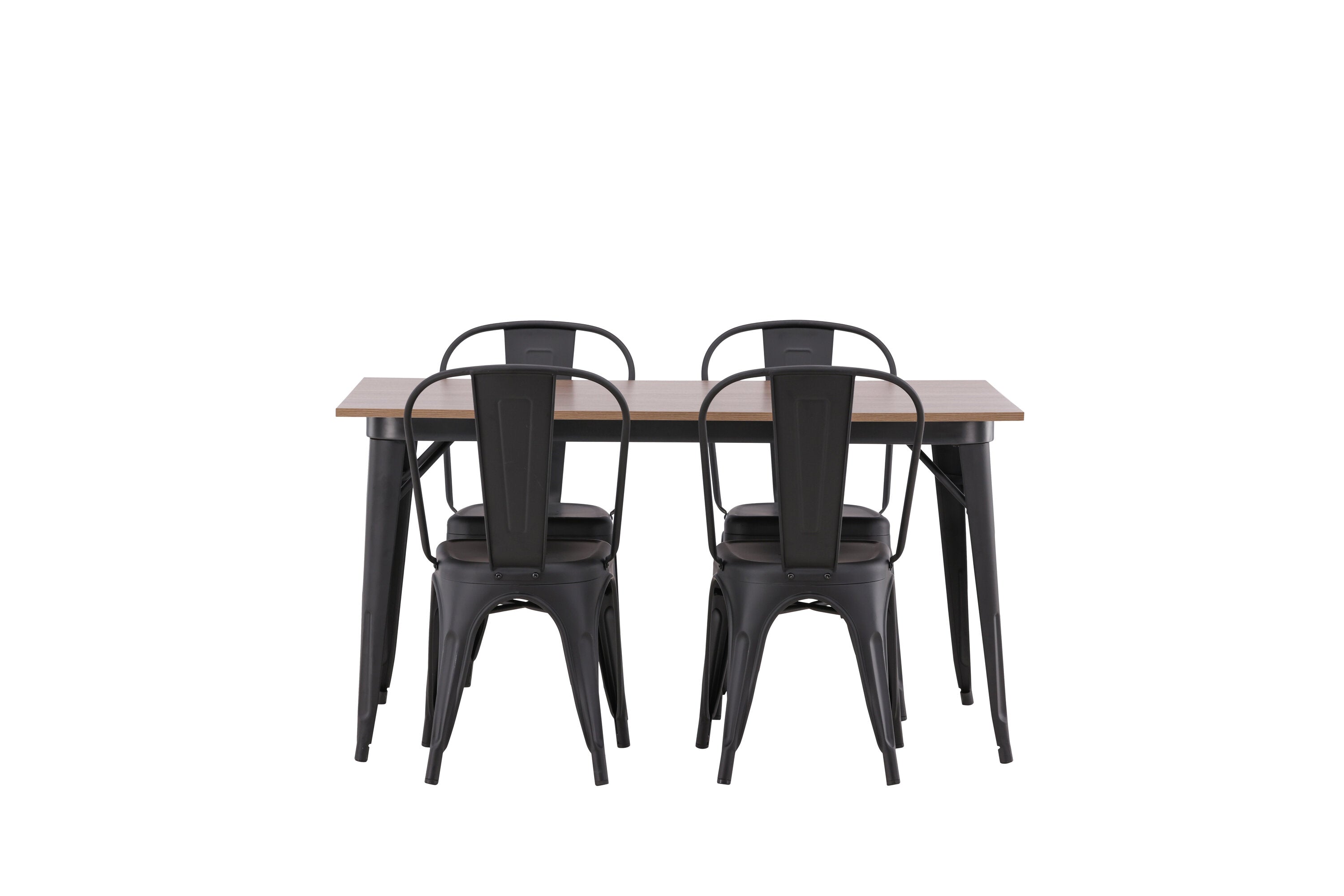 Jídelní stůl Tempe - Černá / Ořech MDF + Jídelní židle Tempe - Matná černá / Kov _4