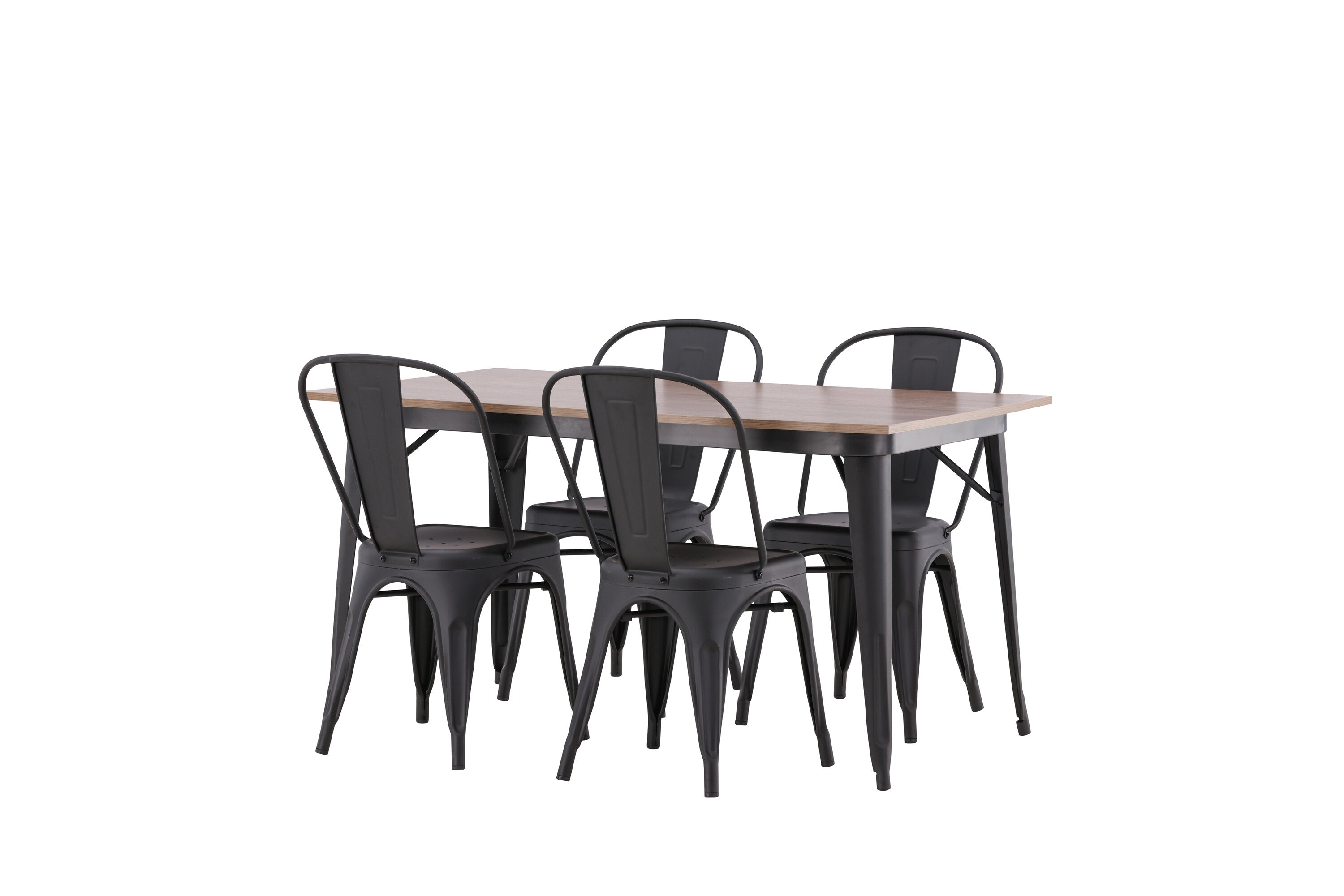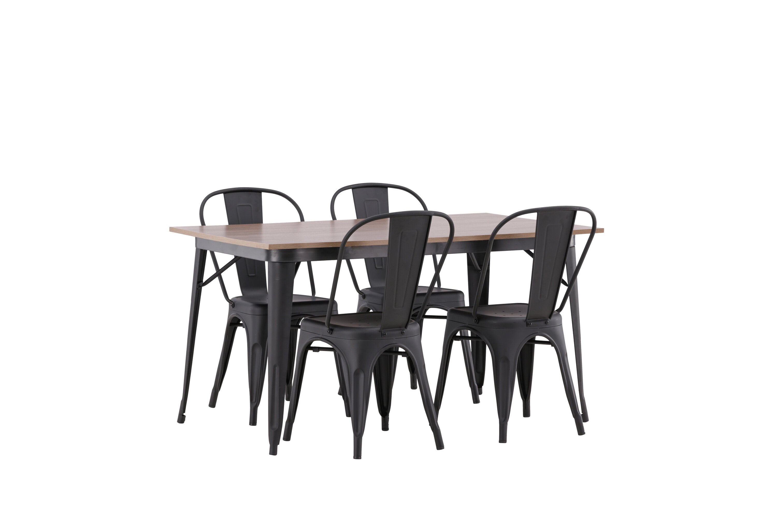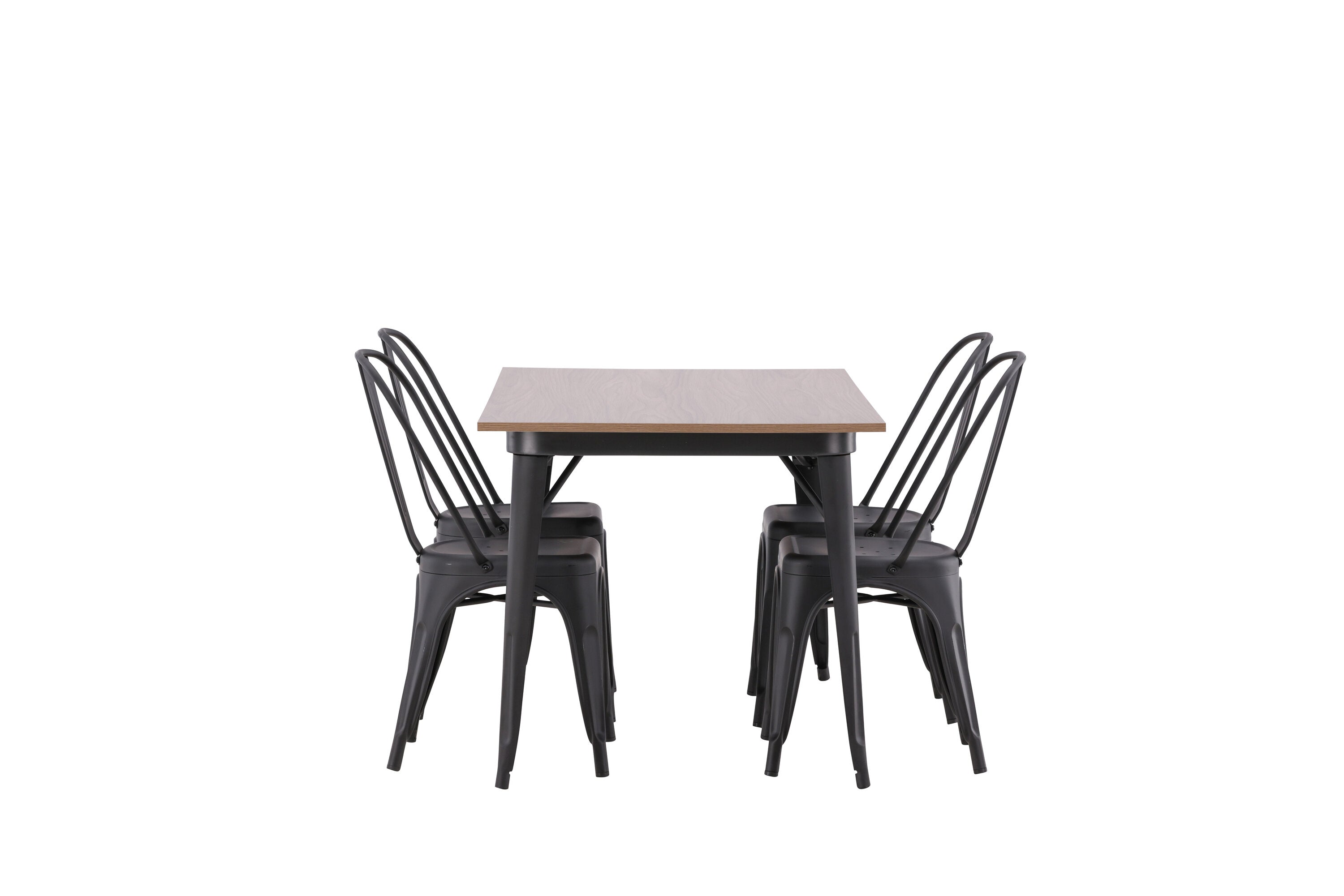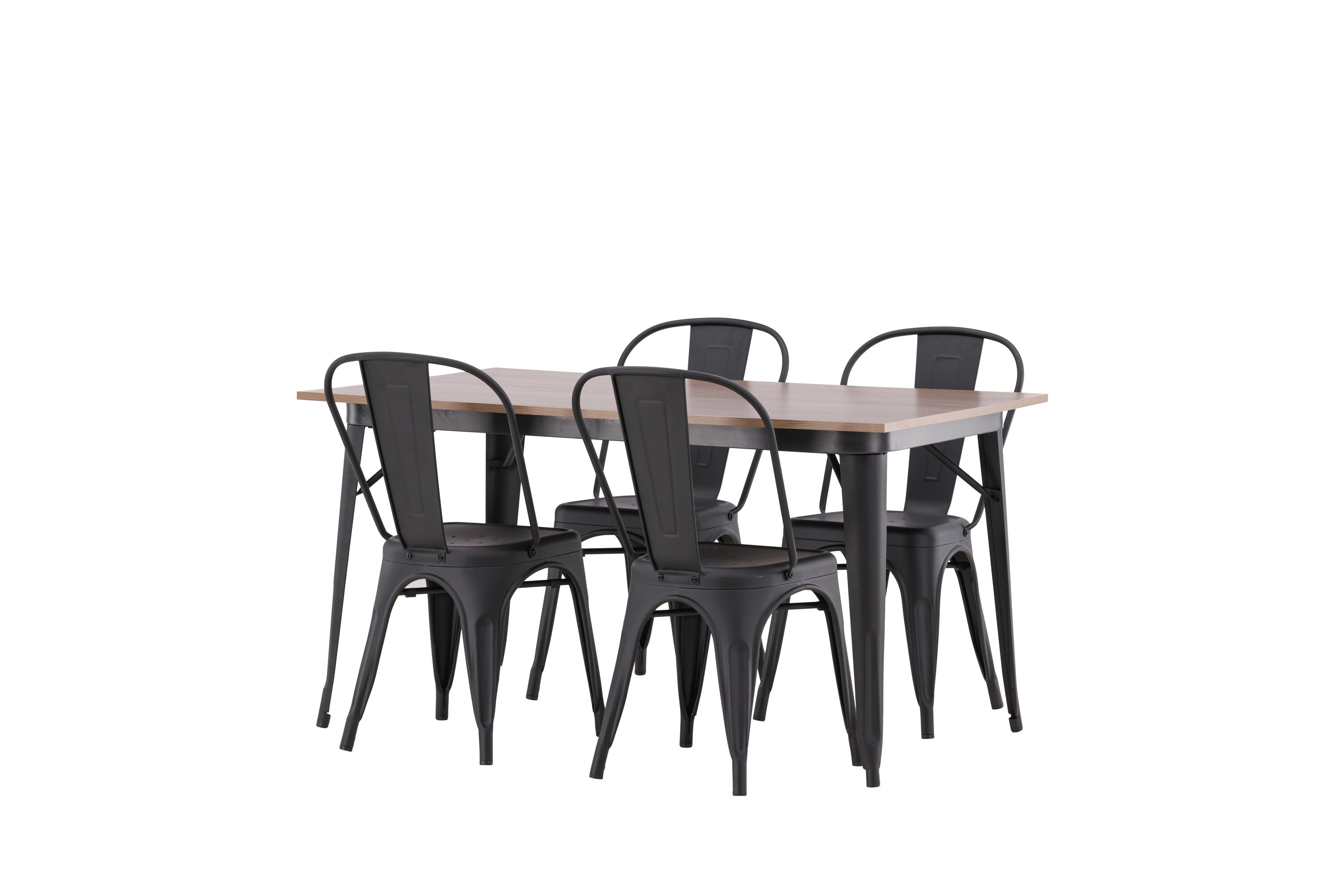 Jídelní stůl Tempe - Černá / Ořech MDF + Jídelní židle Tempe - Matná černá / Kov _4